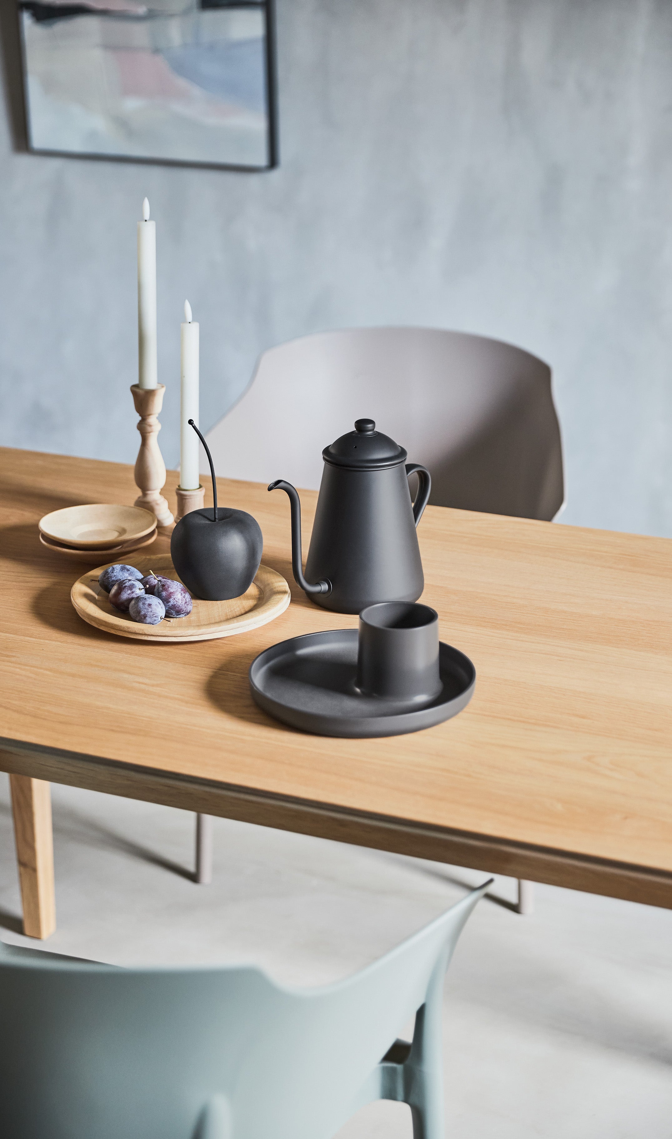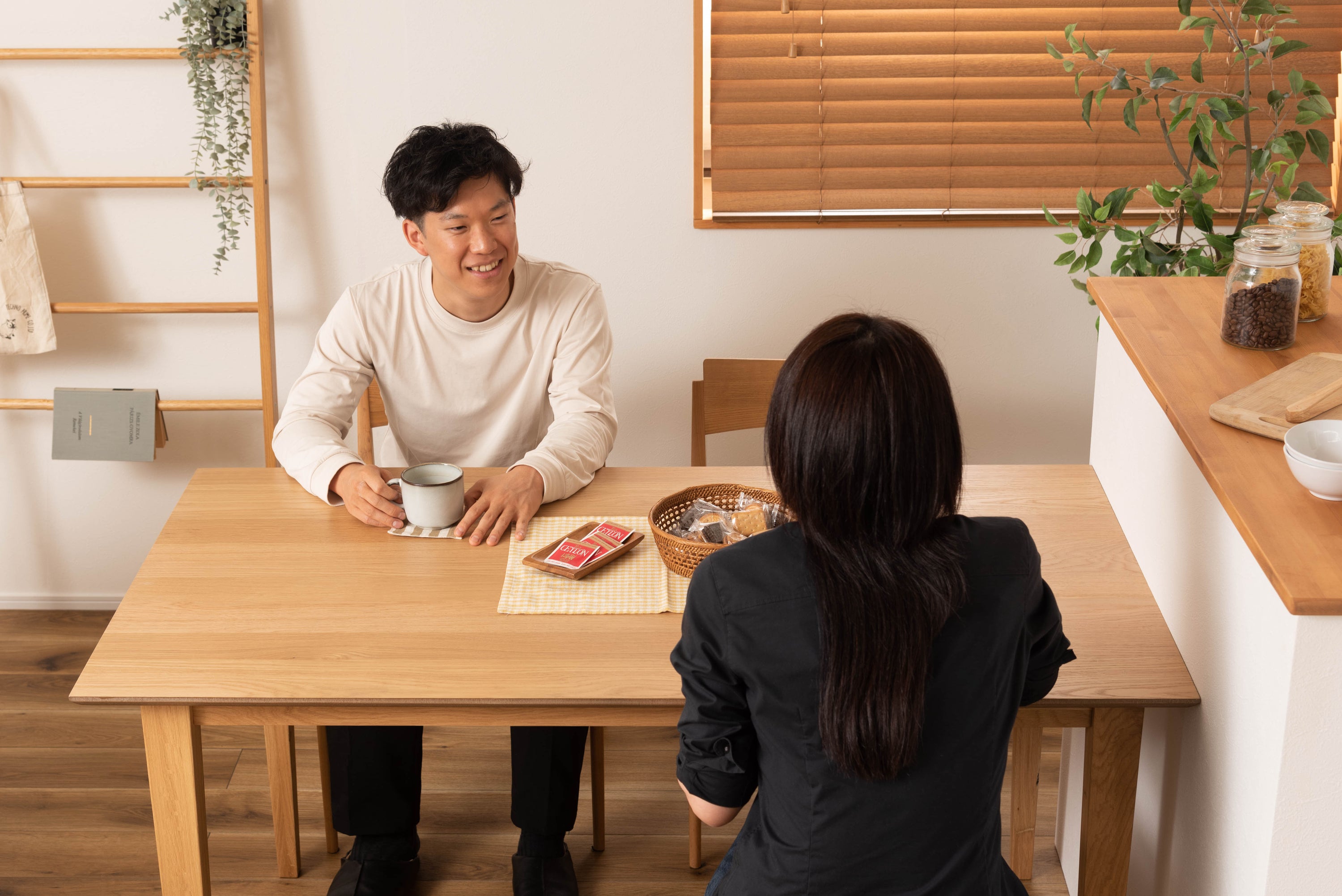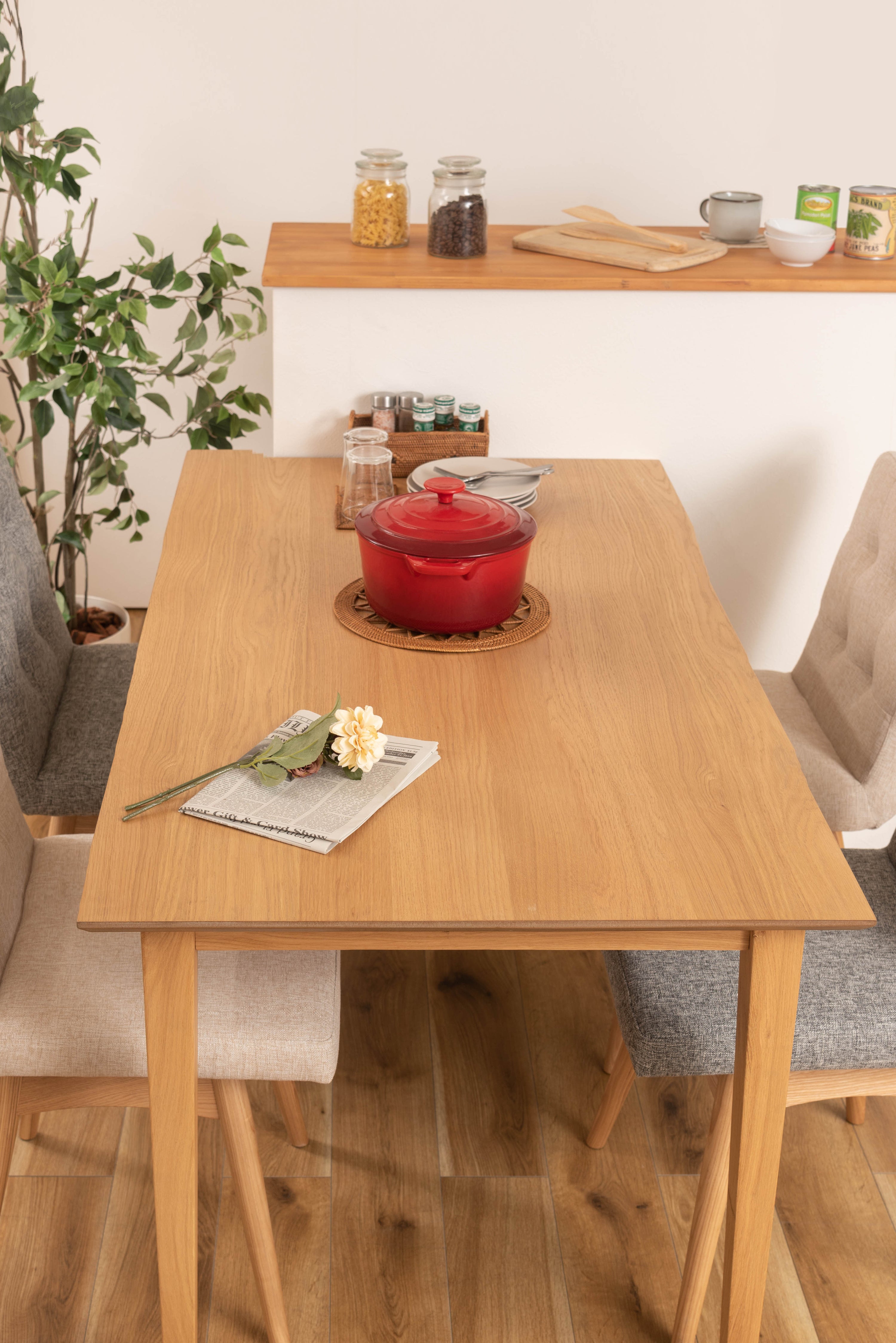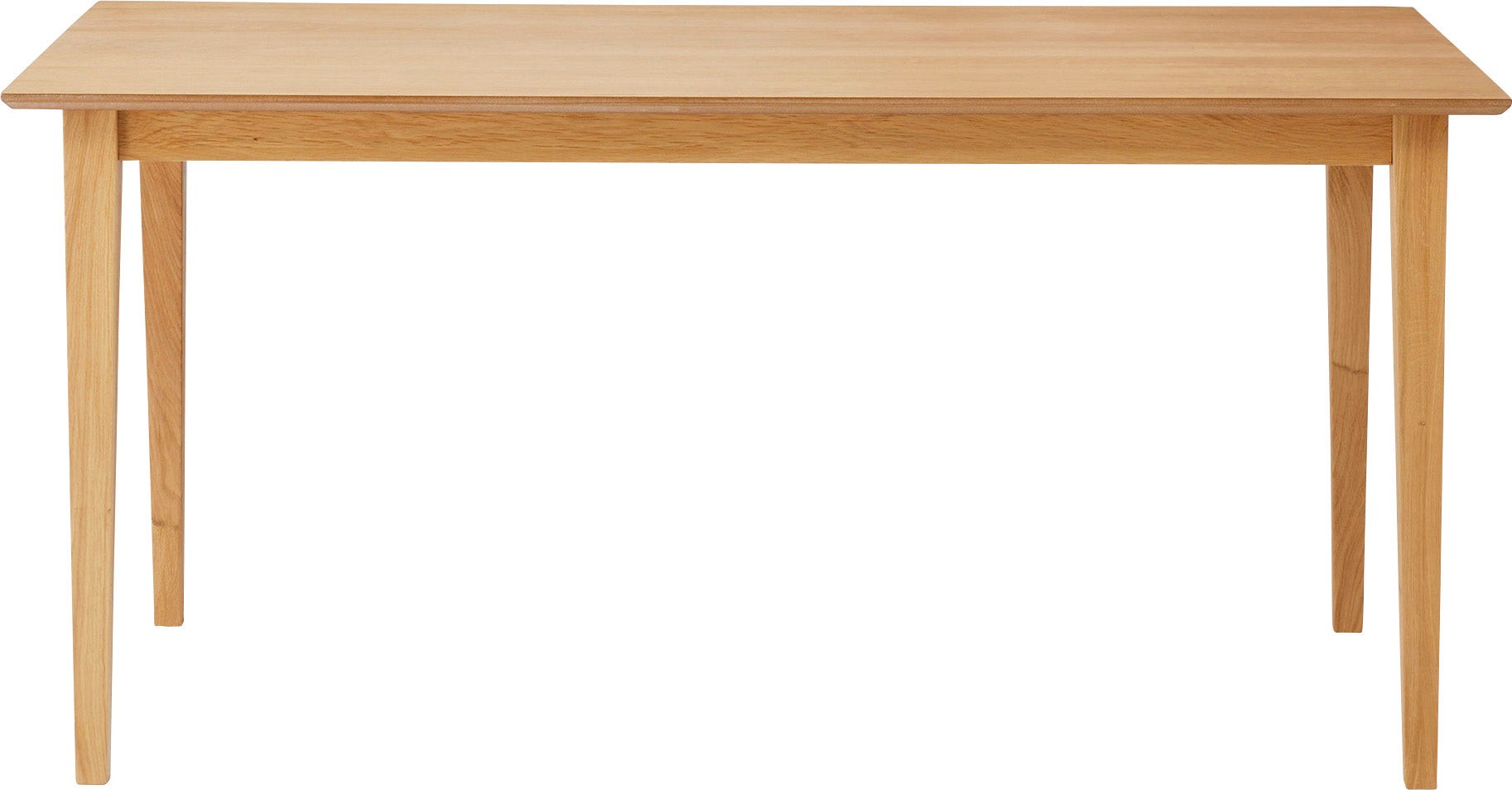 ホワイトオークの木目を活かした、シンプルなデザインのダイニングテーブル。木目が美しいホワイトオークを使用。清楚感があり上品な色味と木目が特徴で、ナチュラル系インテリアの代表的な材として、オーク材の魅力を活かしたシンプルなデザイン。脚は天板側から床側にかけて徐々に細くなっていくテーパードレッグ。ダイニングスペースが重くなりすぎず、様々なチェアに合わせられるデザイン。天板のエッジは斜めにカットしデザイン性の高い仕上がり。サイズ展開は省スペースでも使いやすい135センチと、4人で座ってもゆったりと使用できる150センチの2種類からお選びいただけます。木目の表情を活かした天板が食卓に彩りを与えてくれます。