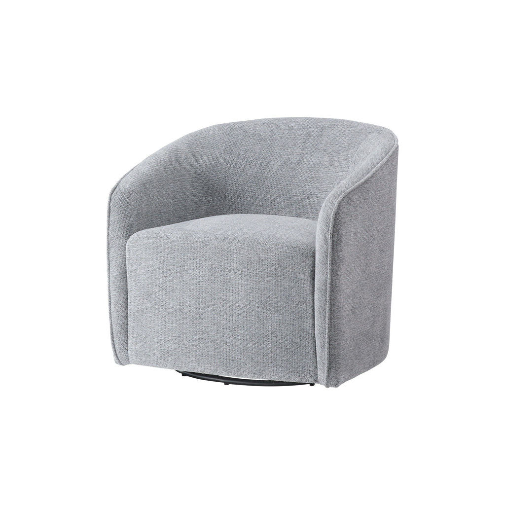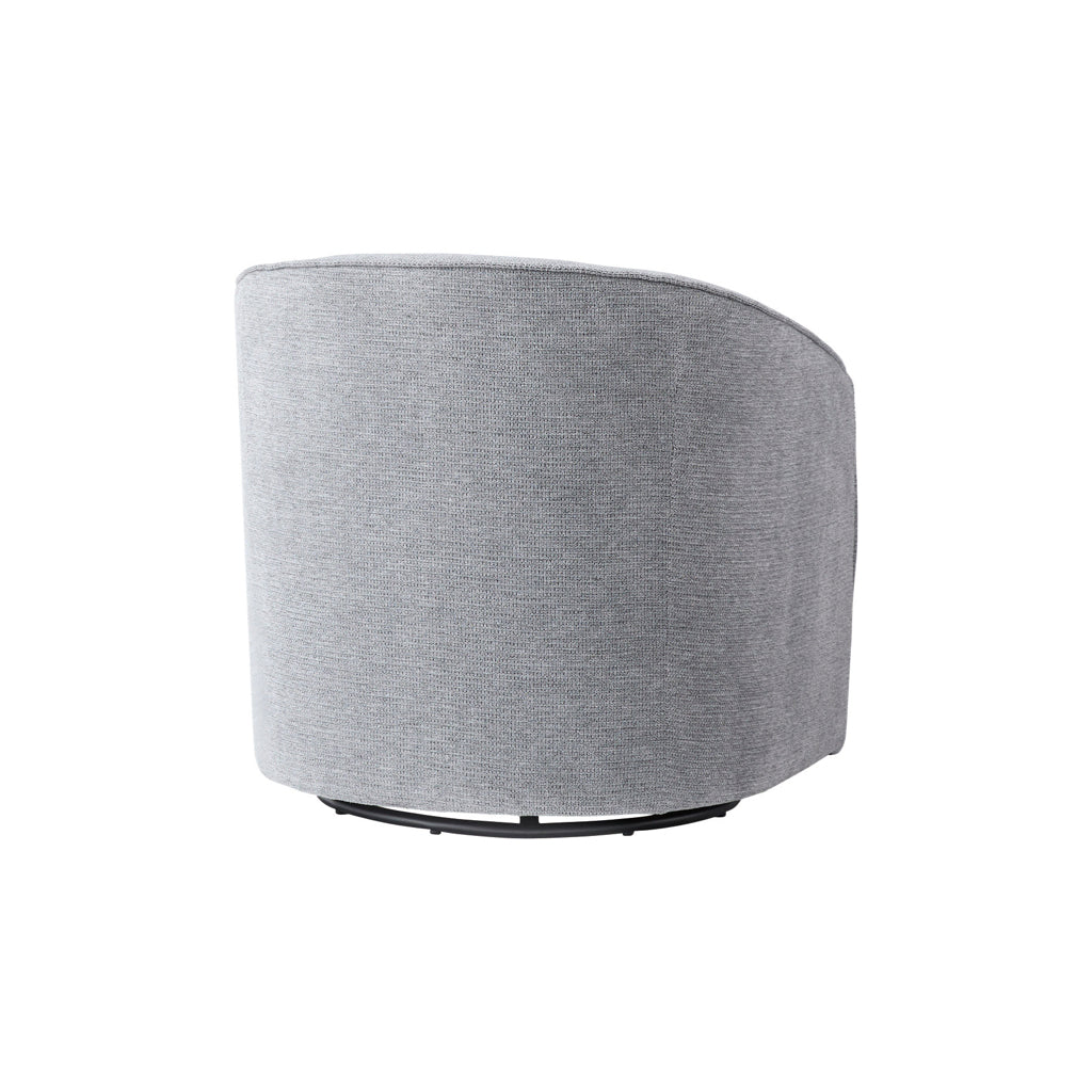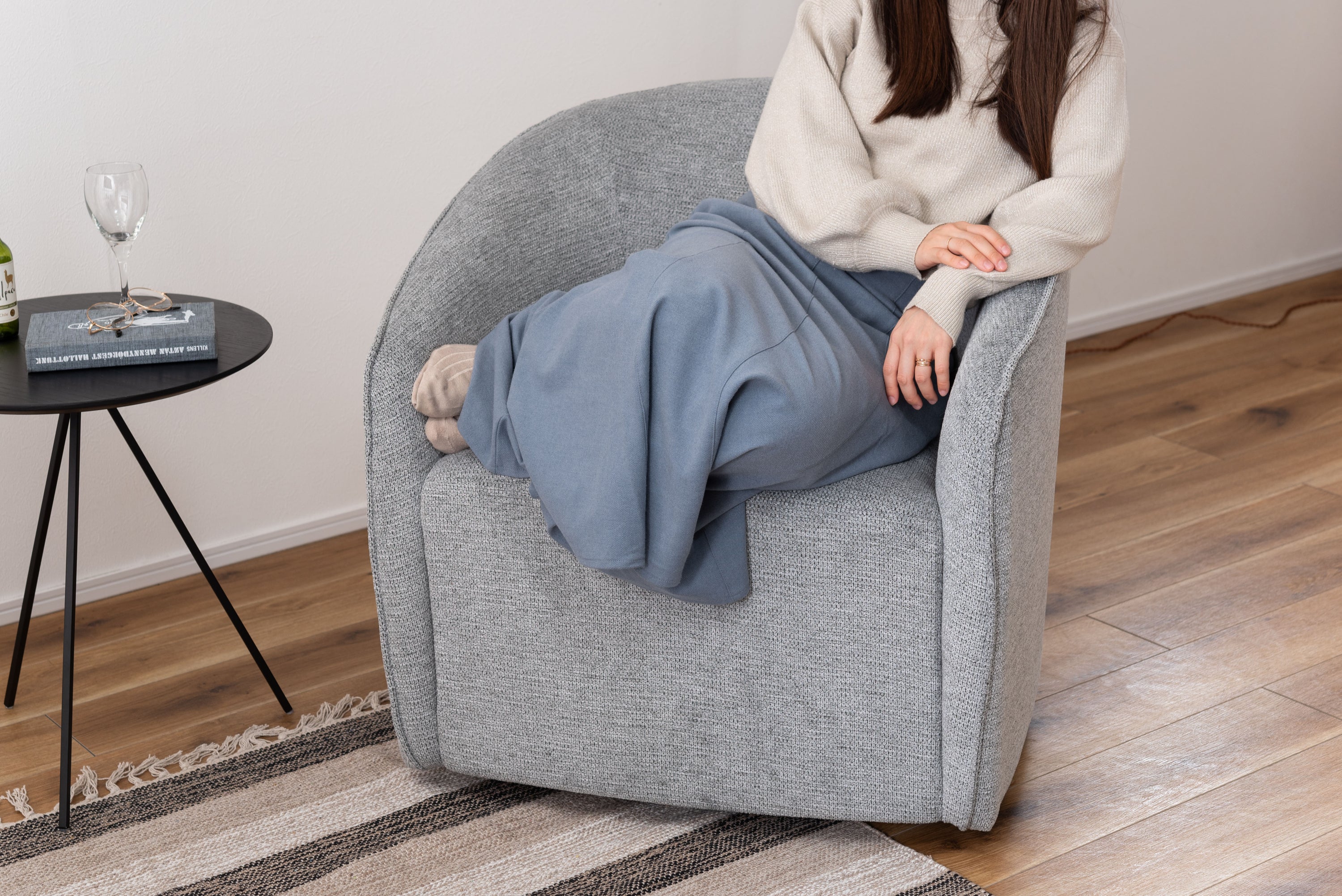 背面からアームかけての曲線が上品なラウンジソファ。背面のクッション性が高く包み込むようなデザイン。ゆったりと身体を預けて、リラックスできる空間を演出。回転式なので座ったまま体の向きを変えることができる、機能性の高いアイテム。しっかりとした固めの座面は長時間腰掛けても疲れにくい設計。優しいさらさらとした触り心地が魅力的なファブリックを使用。座面が360°回転し立ち座りしやすい仕様。