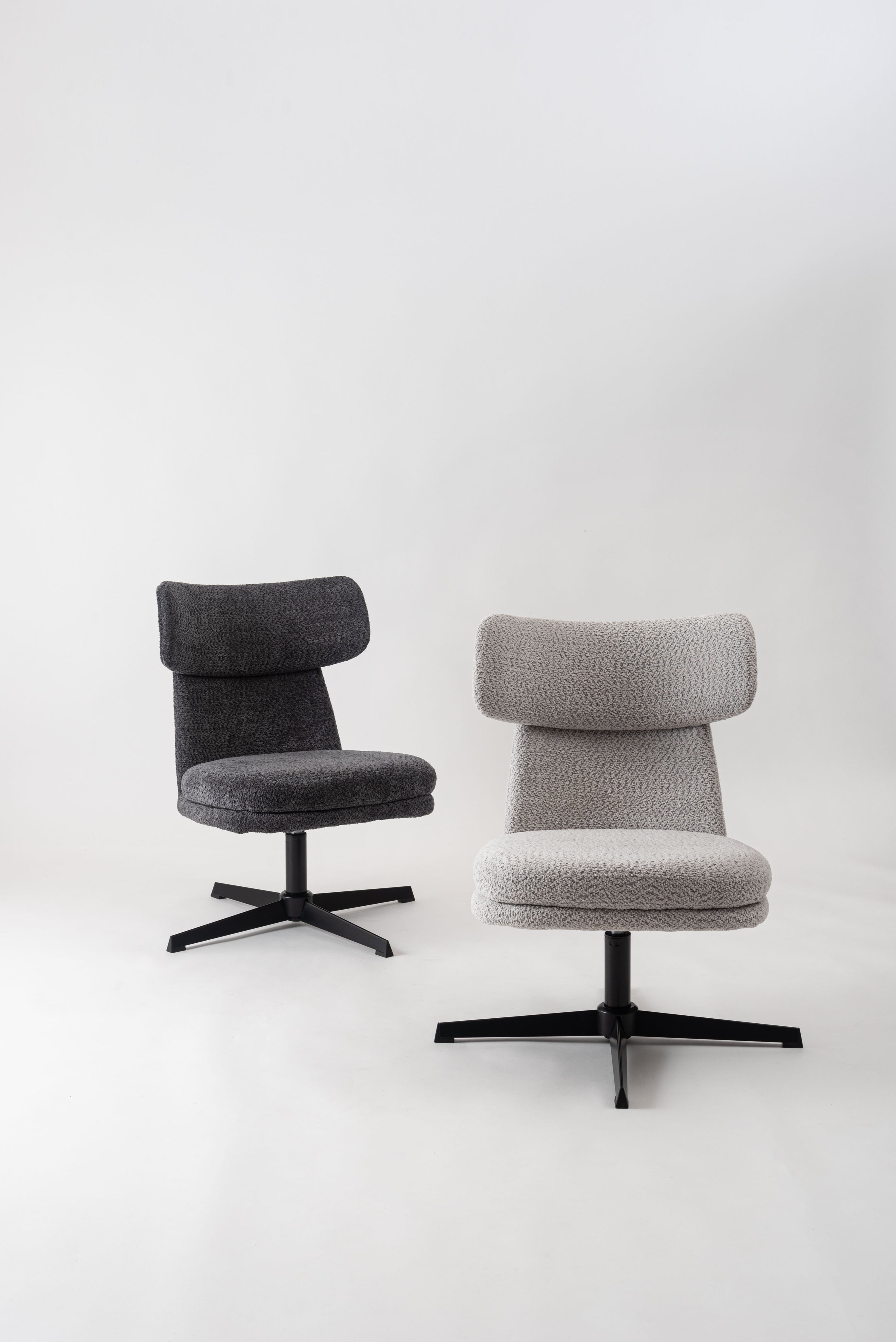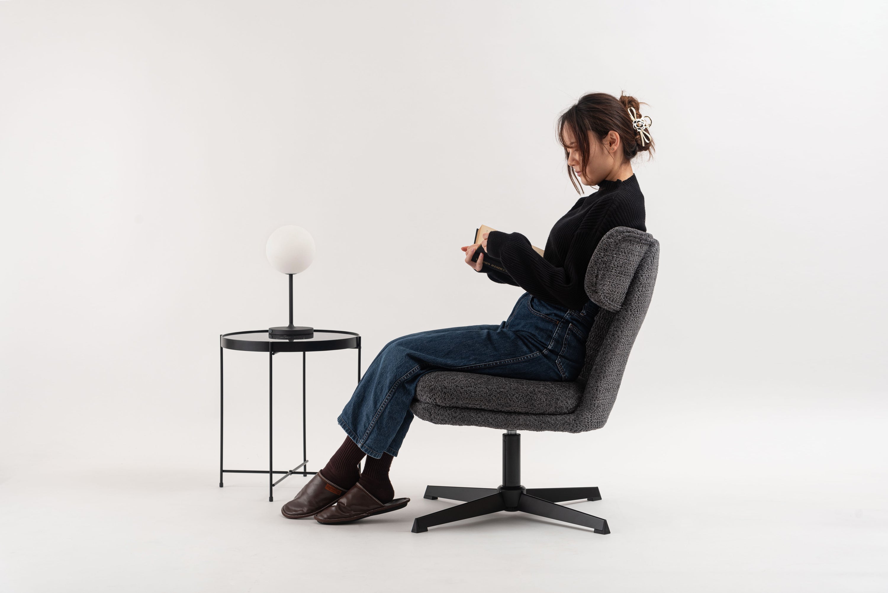 ROOMESSENCEのラウンジチェアダークグレーです。長時間でも快適な座り心地を備え、ダイニングやワークスペースに活躍します。ブランドの美意識を感じる佇まいで、日常づかいから来客時まで幅広く対応。品番:MYS-702DGY。暮らしに上質なアクセントを添える一品です。