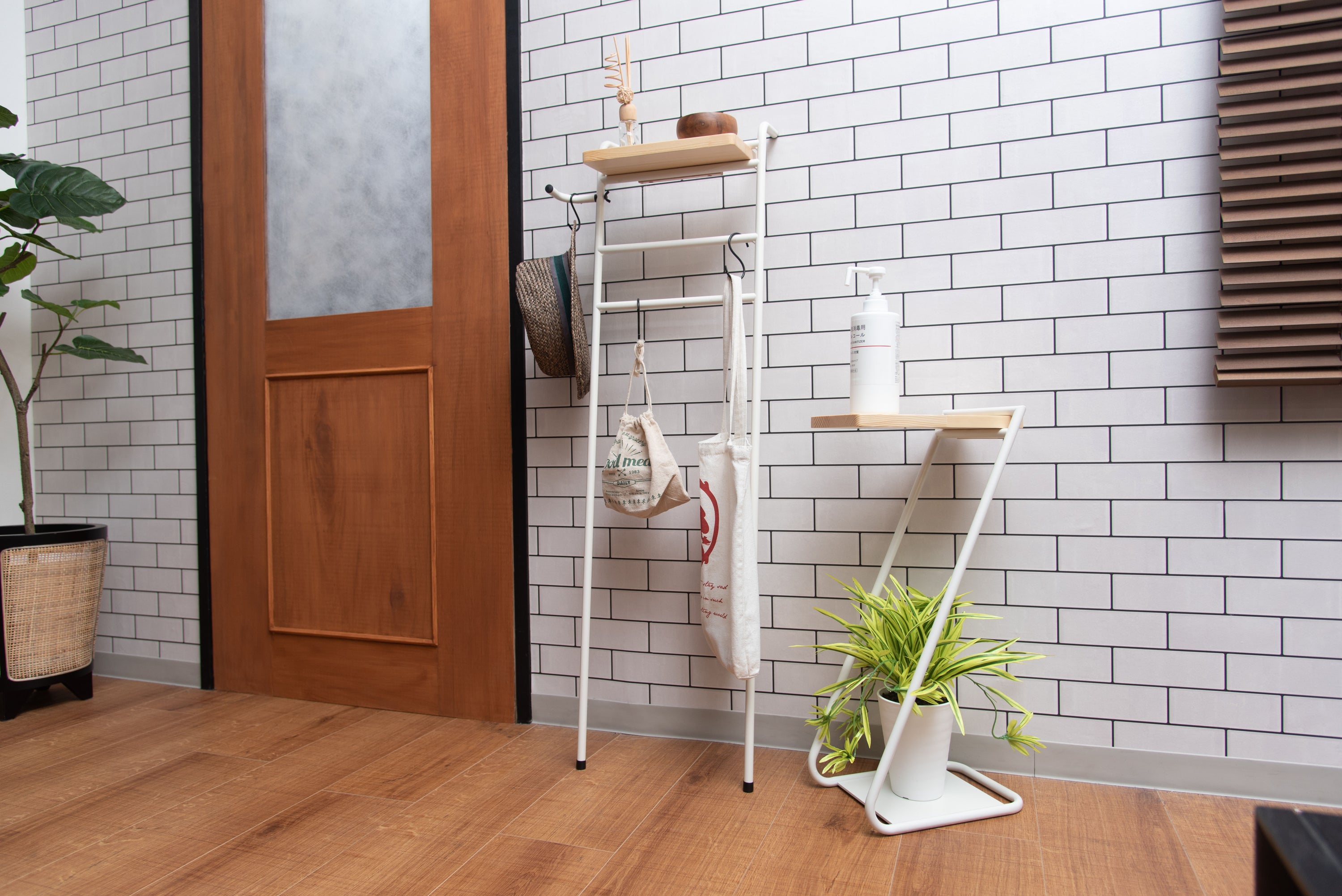 おしゃれと機能性を兼ね備えたアンブレラハンガー。 立て掛けるだけで玄関をセンス良く演出してくれます。 天板には外出時の小物置きや好きなものをディスプレイして楽しむこともできます。