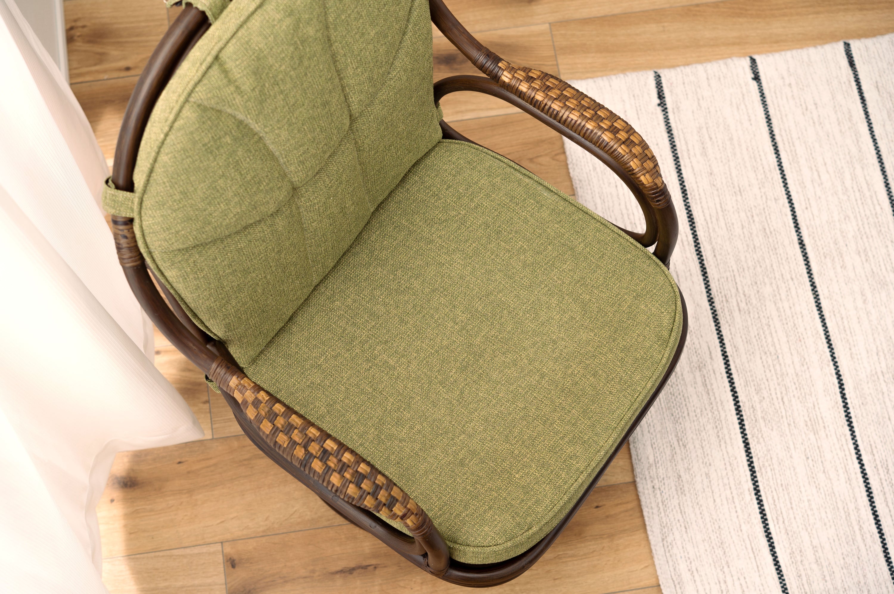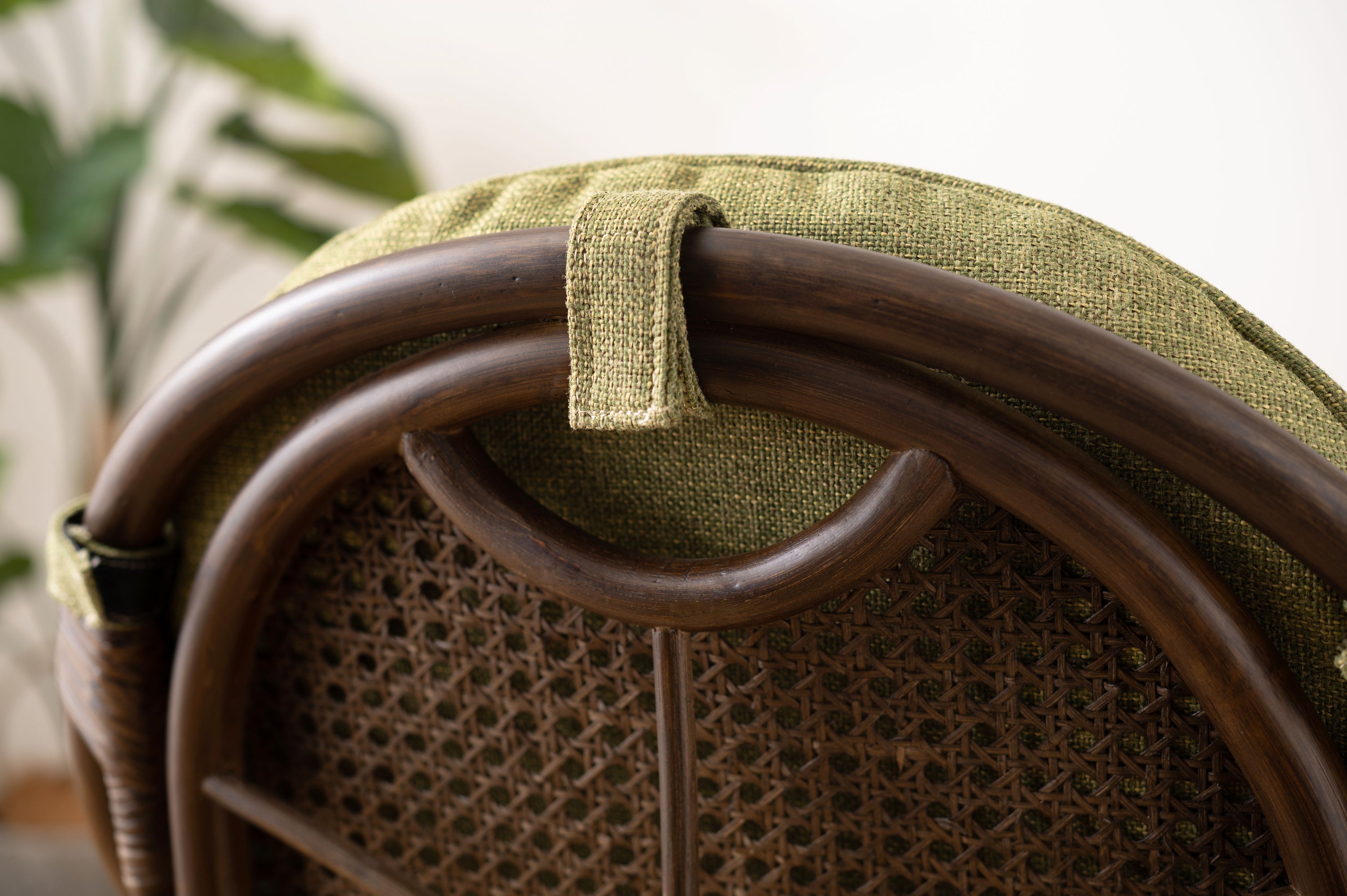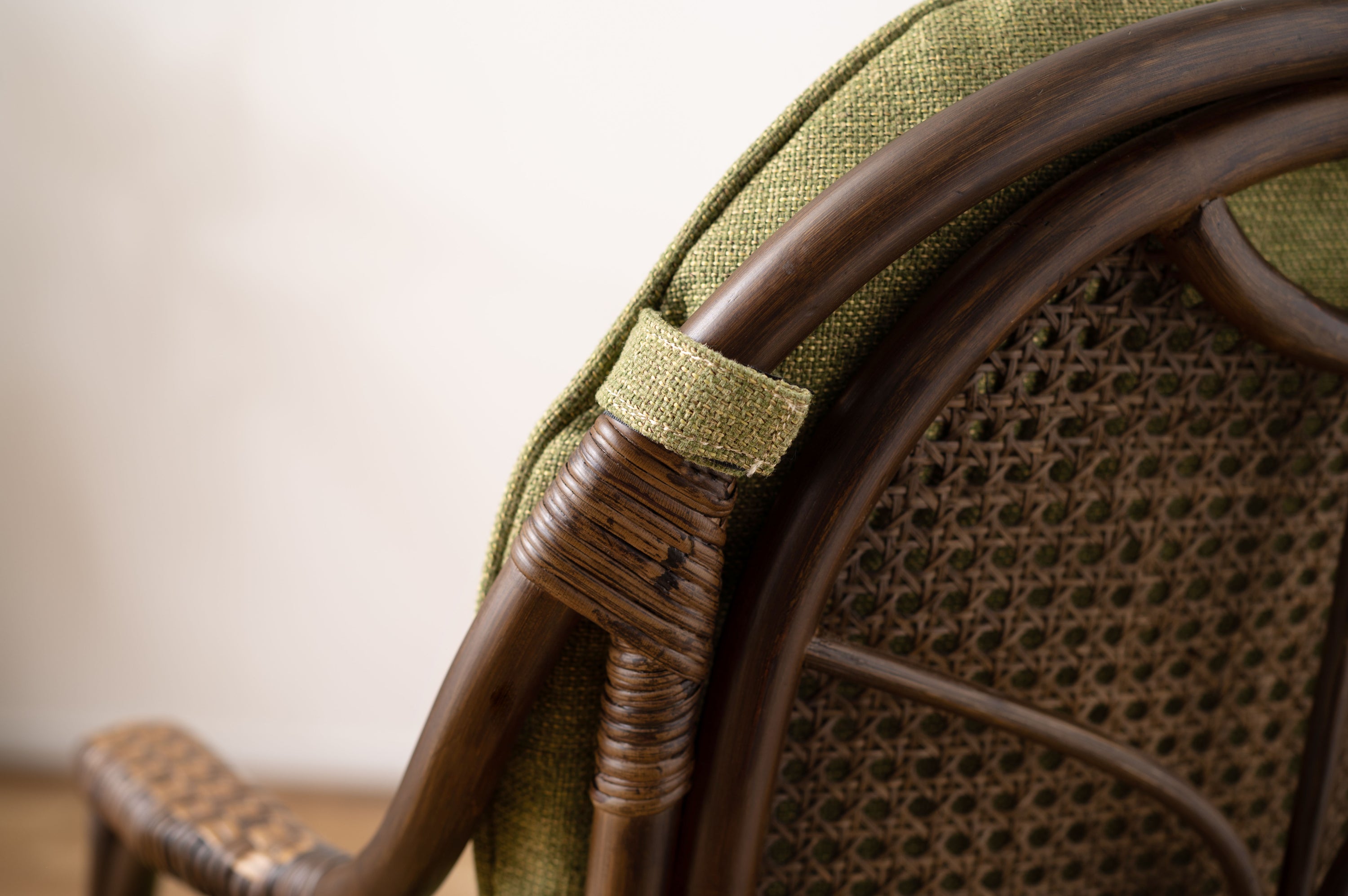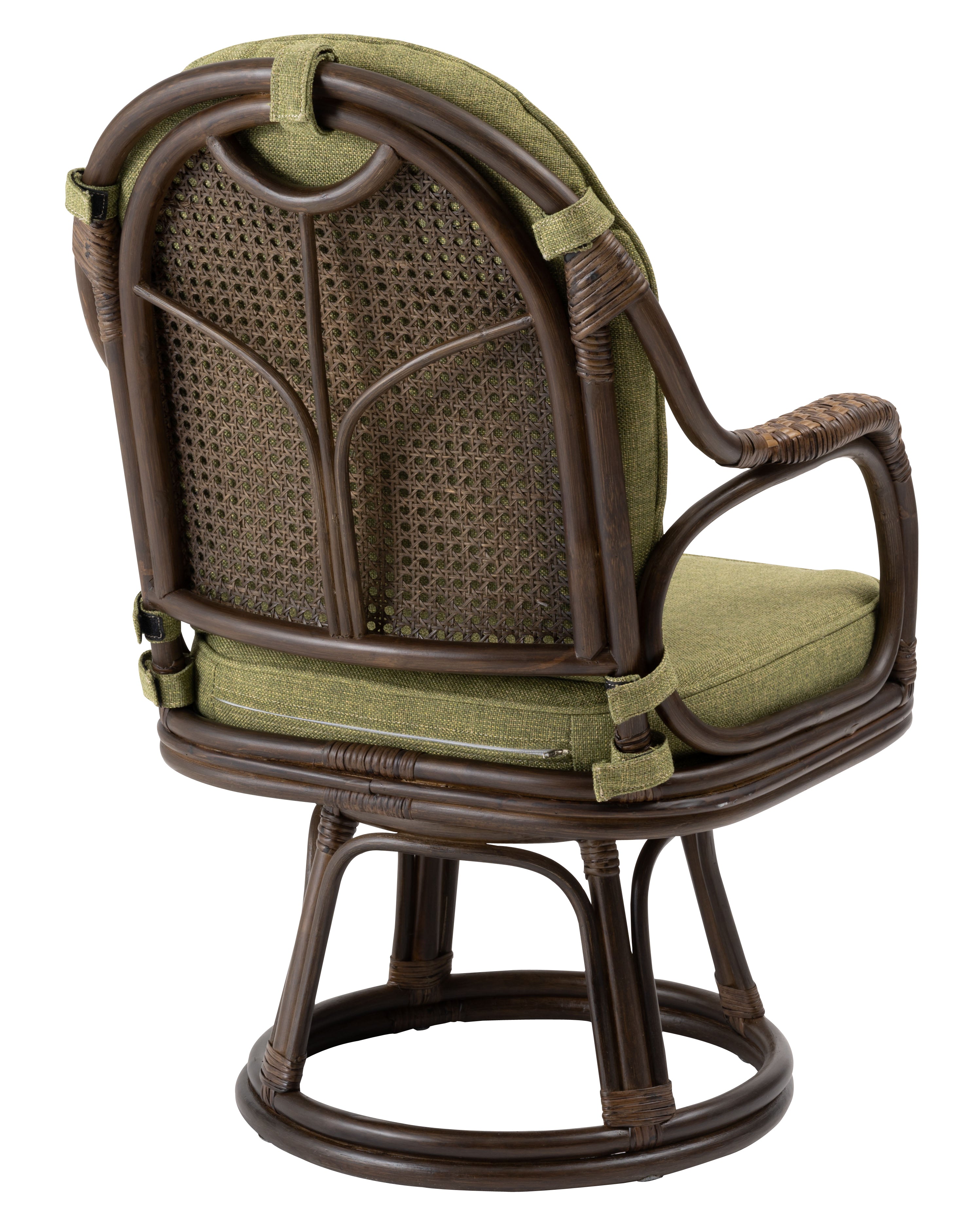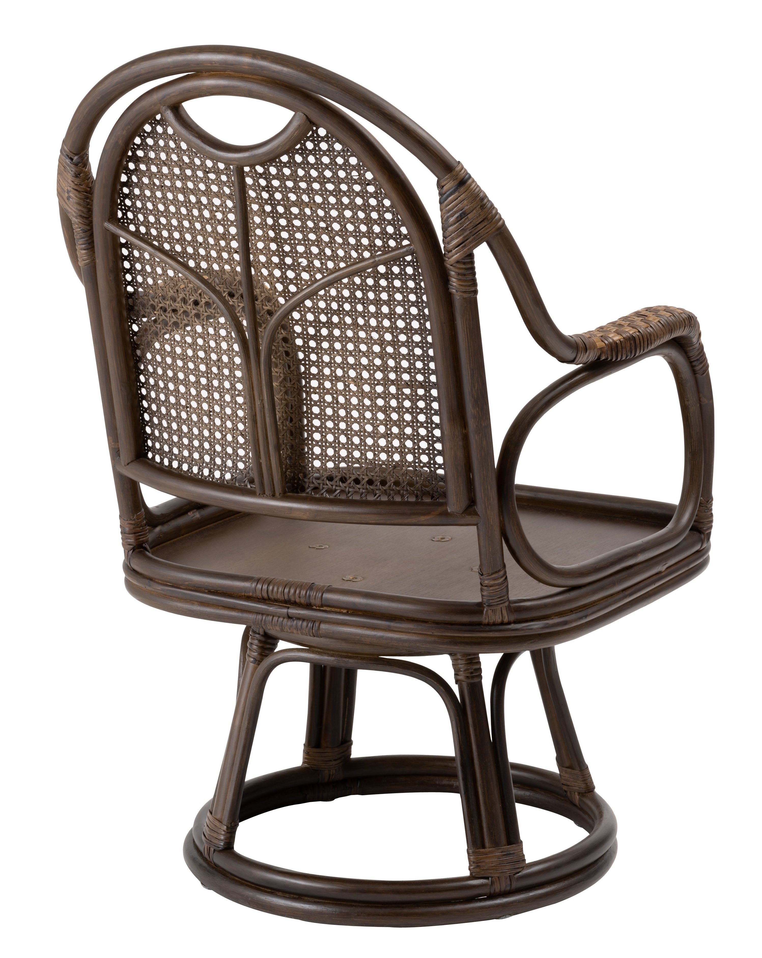 天然ラタンのしなやかな曲線を活かした座椅子。天然素材の風合いを感じながらゆったりとおくつろぎください。背もたれは籠目に編み込まれています。インテリアになじむ風合いとディティール。天然素材の豊かな表情を活かしたカラーリングとしなやかな曲線で表現された特別な座椅子です。軽くて丈夫。クッションは取り外し可能。立ち座りがしやすいアームのグリップと、背もたれには持ち手が付いて持ち運びにも便利です。座椅子部分は360度回転するので、その場で自由に体の向きを変えることができます。