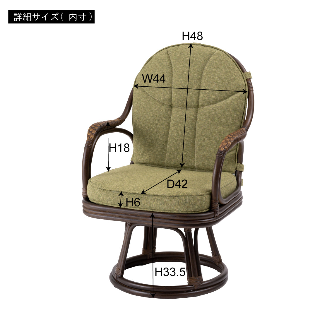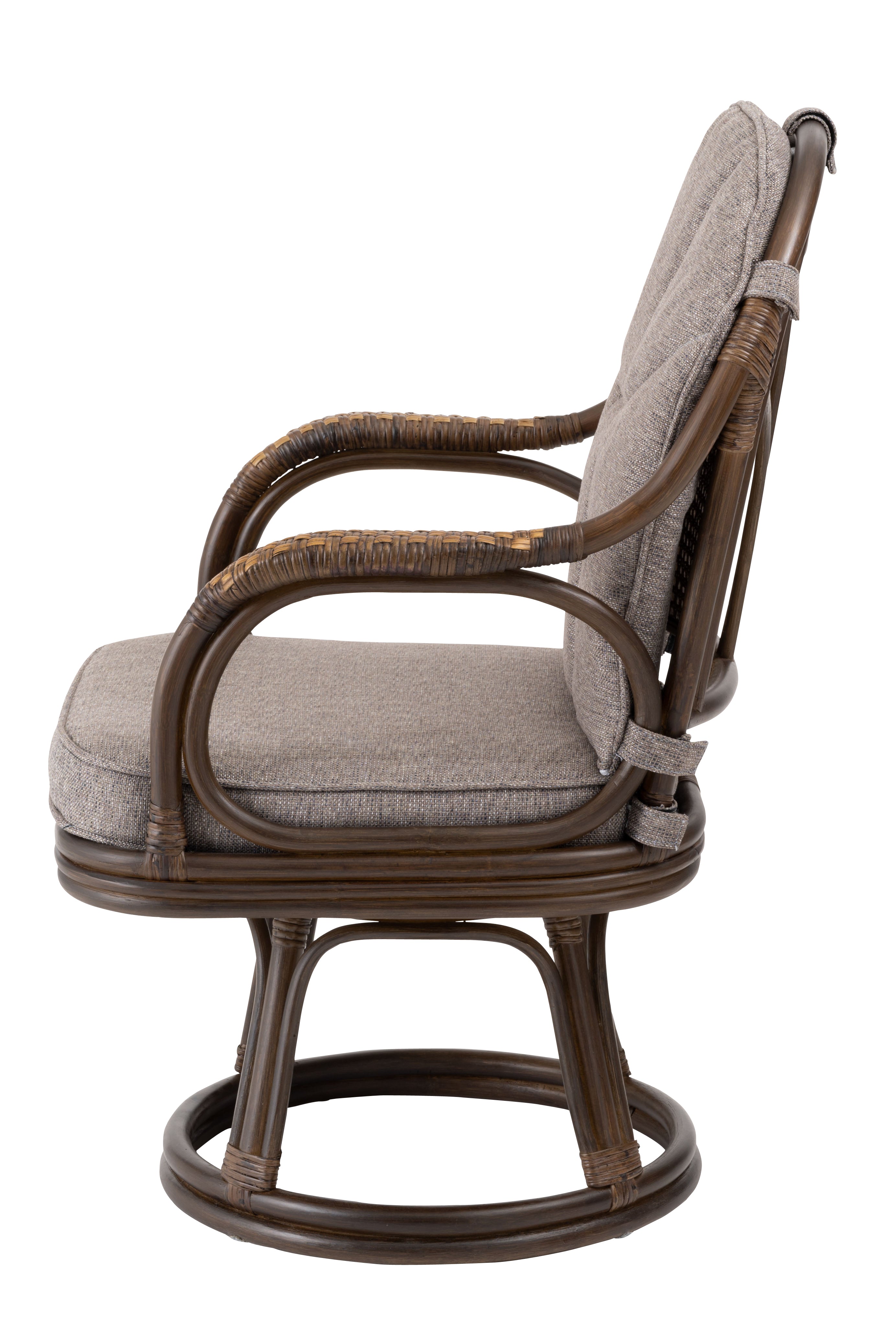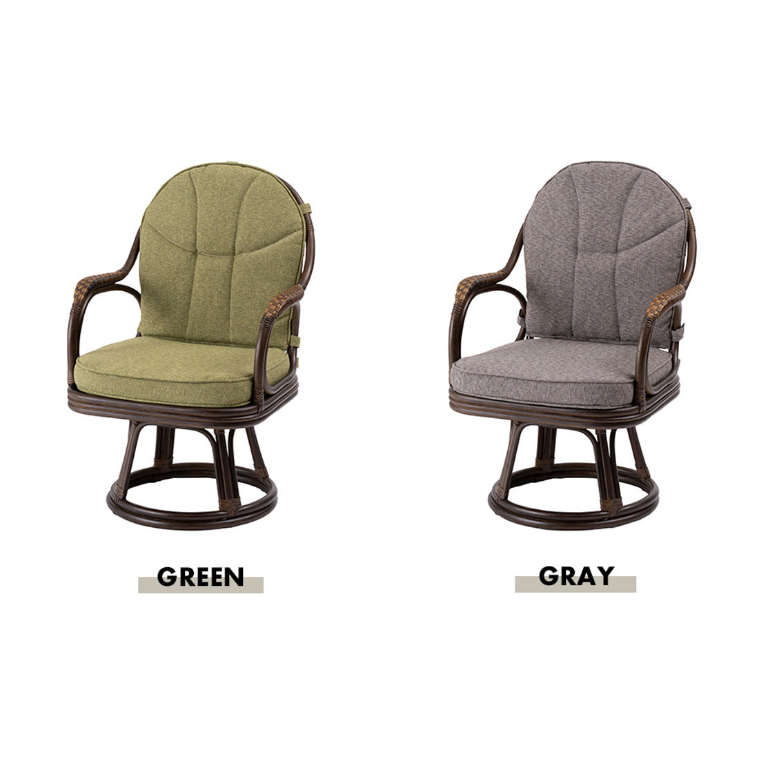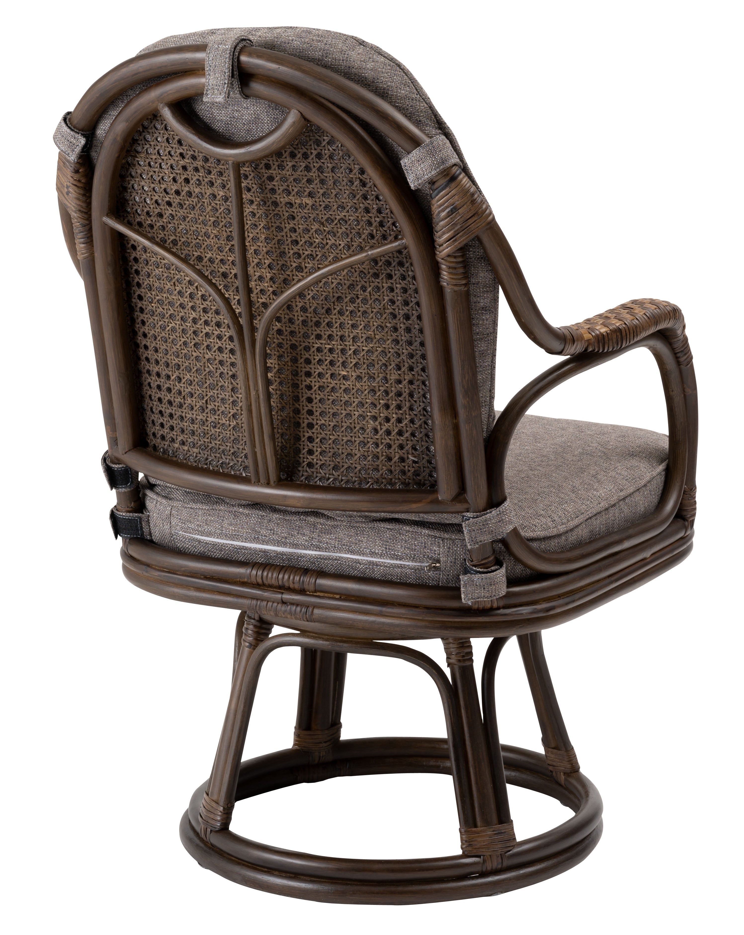 天然ラタンのしなやかな曲線を活かした座椅子。天然素材の風合いを感じながらゆったりとおくつろぎください。背もたれは籠目に編み込まれています。インテリアになじむ風合いとディティール。天然素材の豊かな表情を活かしたカラーリングとしなやかな曲線で表現された特別な座椅子です。軽くて丈夫。クッションは取り外し可能。立ち座りがしやすいアームのグリップと、背もたれには持ち手が付いて持ち運びにも便利です。座椅子部分は360度回転するので、その場で自由に体の向きを変えることができます。