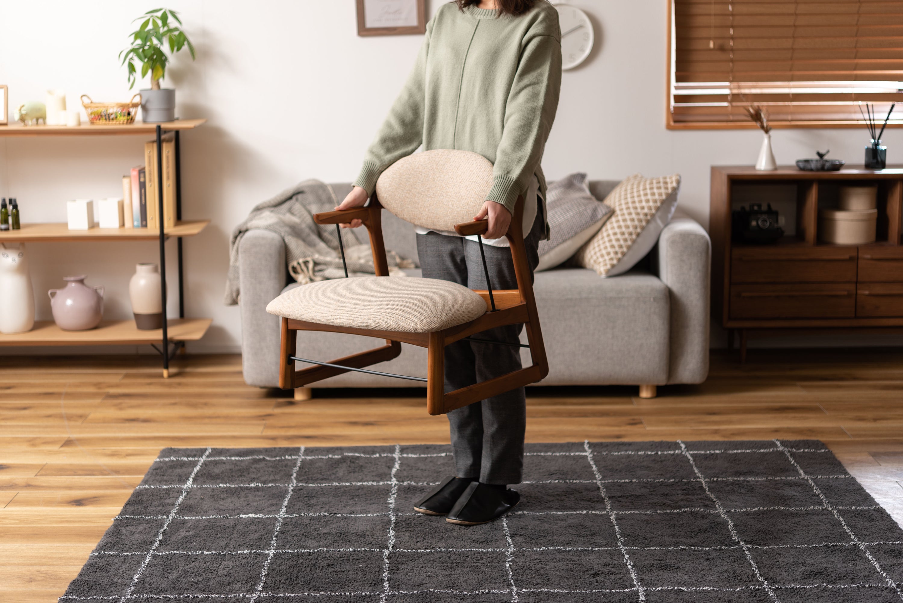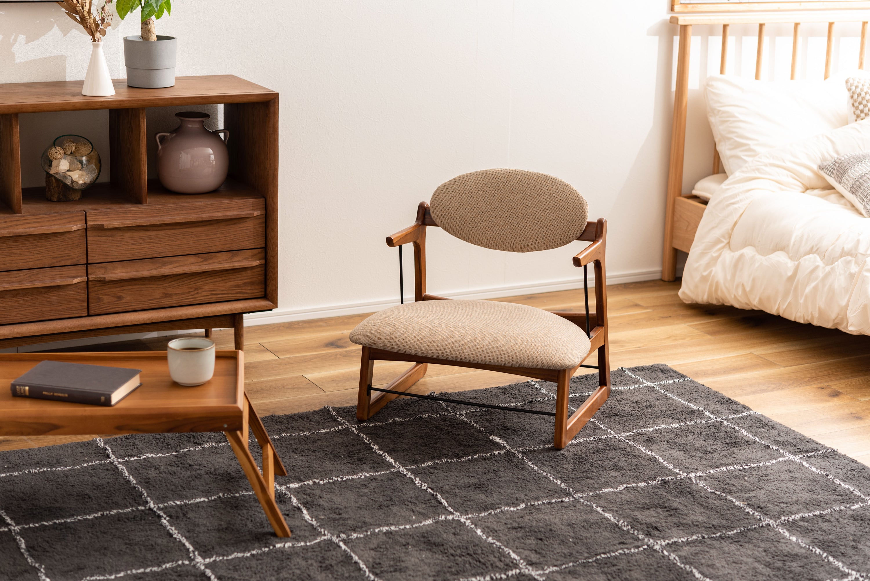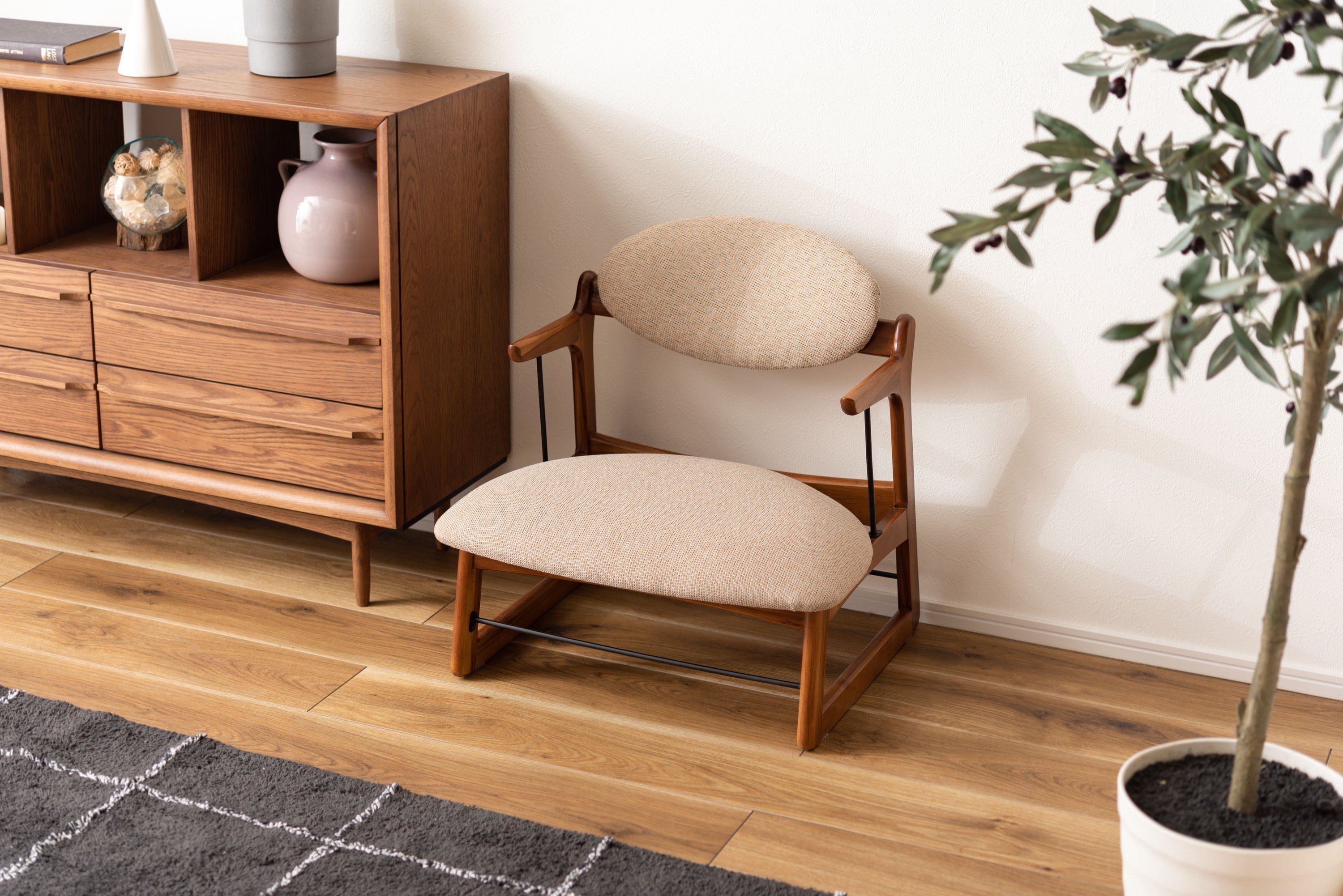 天然木とファブリックの組み合わせと直線的なスチール素材が特徴的なデザインのフロアチェア。コンパクトサイズなので、リビングやダイニング、和室やベッドルームなど様々なシーンで活躍。軽量設計なので持ち運びもラクラク。フレームは高級木材の一つ、天然木(チーク)を採用。品のある風合いはインテリアにも最適です。手にしっくり馴染む天然木のぬくもりも魅力の一つ。脚裏フェルト付きなので、床への傷防止になり安心です。3サイズ展開なので、用途や場所に合わせてお選びいただけます。