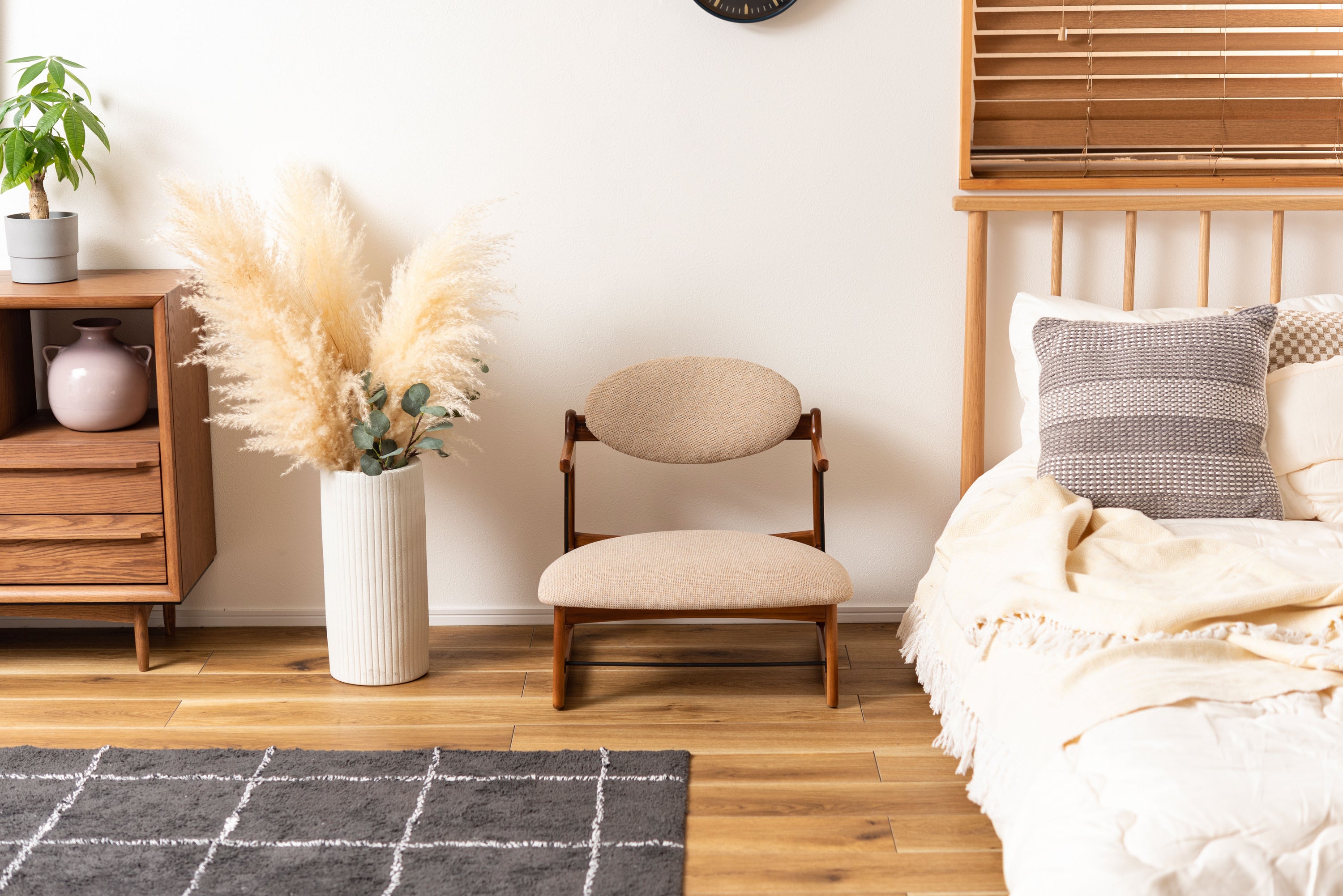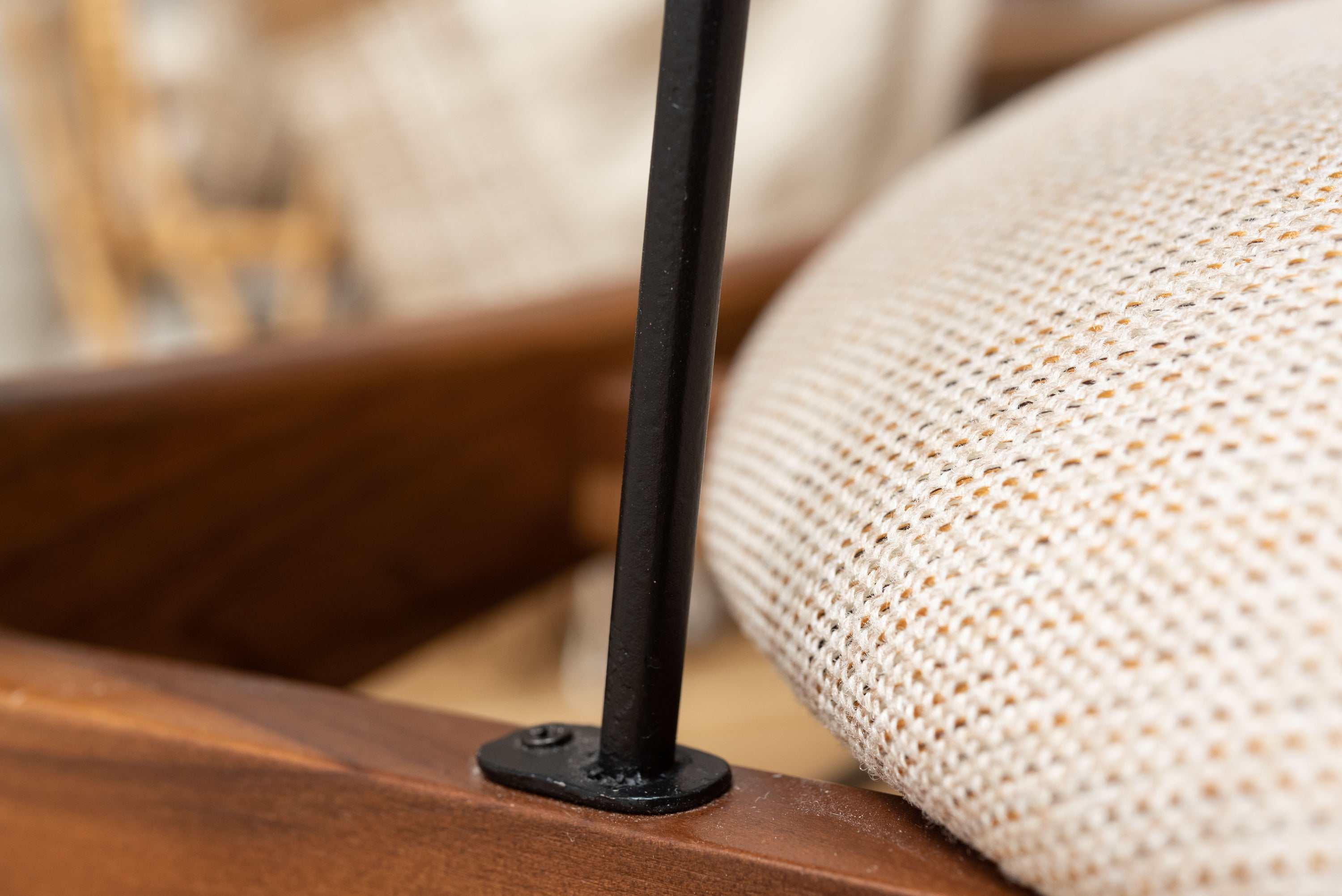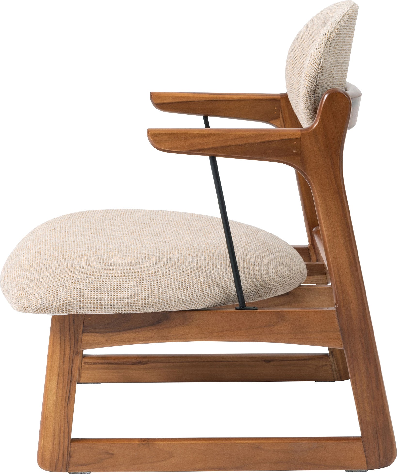天然木とファブリックの組み合わせと直線的なスチール素材が特徴的なデザインのフロアチェア。コンパクトサイズなので、リビングやダイニング、和室やベッドルームなど様々なシーンで活躍。軽量設計なので持ち運びもラクラク。フレームは高級木材の一つ、天然木(チーク)を採用。品のある風合いはインテリアにも最適です。手にしっくり馴染む天然木のぬくもりも魅力の一つ。脚裏フェルト付きなので、床への傷防止になり安心です。3サイズ展開なので、用途や場所に合わせてお選びいただけます。
