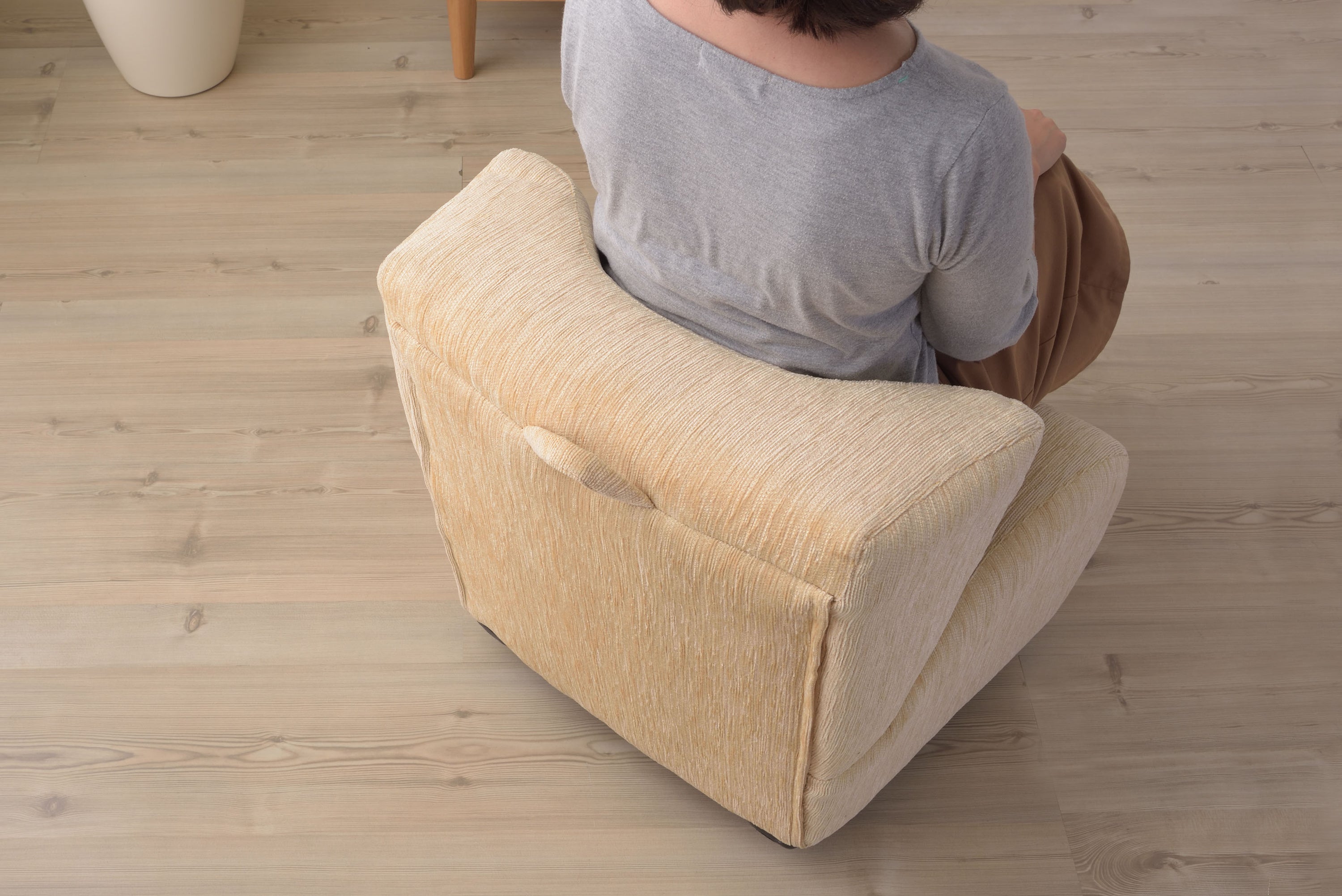 傾斜のある座面と背もたれで身体をしっかりと支えます。 座るだけで背筋が伸び、猫背にならず理想的な姿勢を維持できます。 コンパクトなサイズ感はかわいらしく、お部屋を圧迫しません。 ロータイプでも使用可能なので生活シーンに合わせて使い分けが可能です。