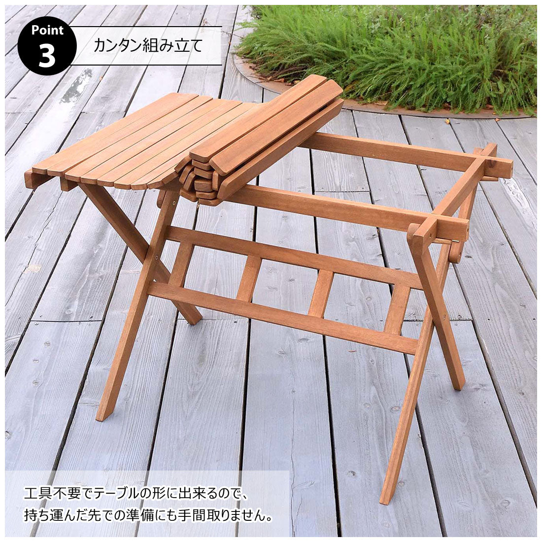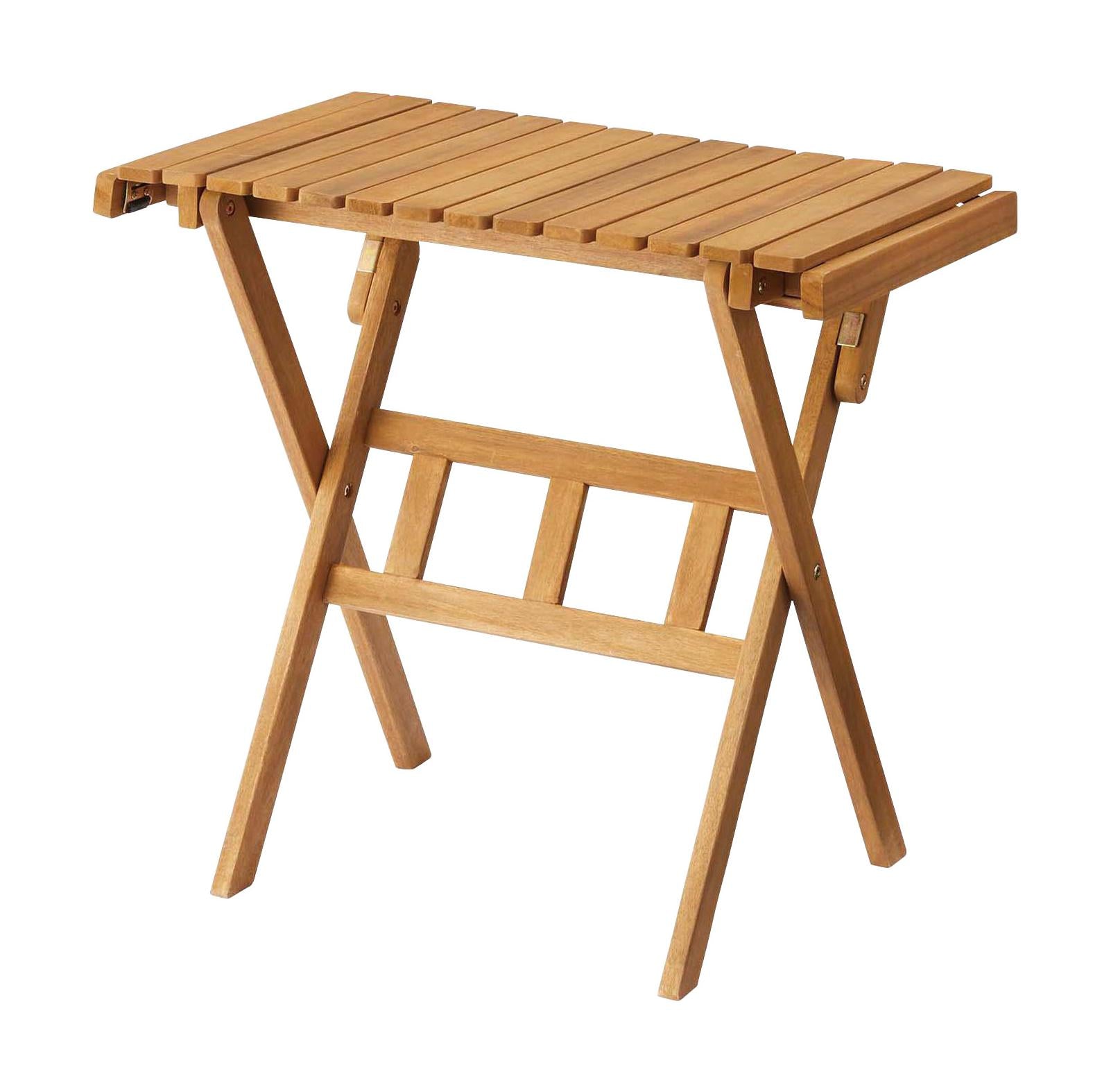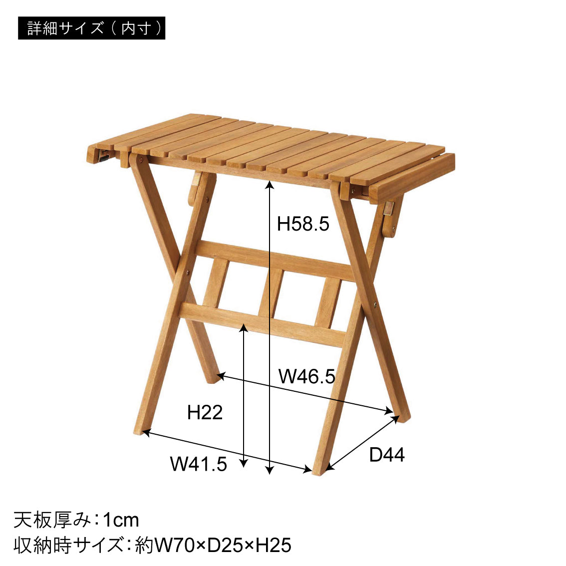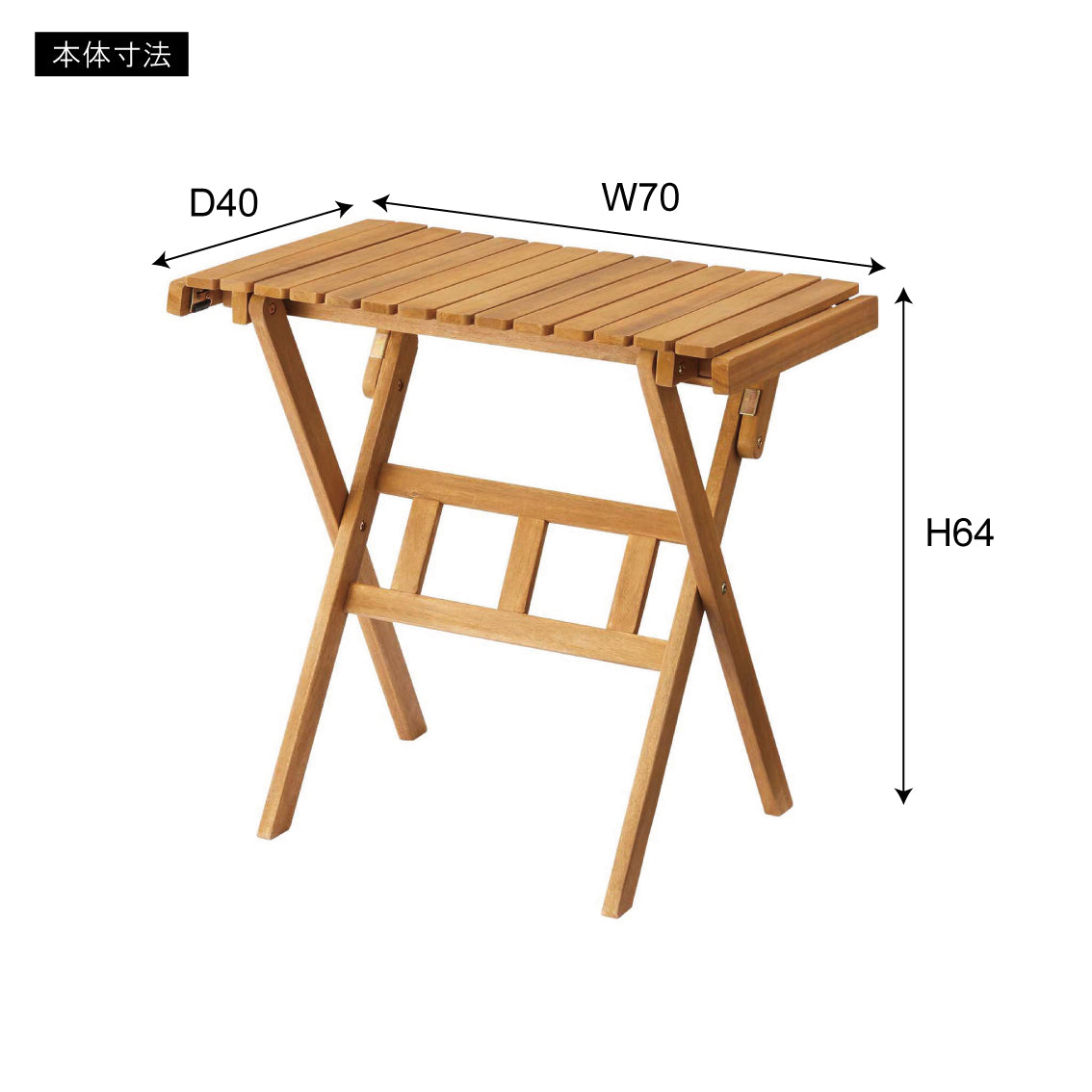 天然木の温もりを感じるロールトップ式ハイテーブル。 組立式でコンパクトになるので、アウトドア・キャンプにも最適。 アウトドアシーン以外に室内使用にもおすすめのテーブル。 来客用テーブルとしても優秀。 専用収納ケース付きで各部材をすっきり収納。持ち運びもかさばらずアウトドアに最適。 工具不要で簡単組立式なので準備にも手間取らず簡単にセット。 天然木(アカシア)にオイル仕上げで完成させた、風合いのあるテーブル。 高さ64cmのハイタイプテーブルなので、ちょっとした作業台としても便利。 玄関周りの多用途テーブルとして。 チェア横のサイドテーブルとして。