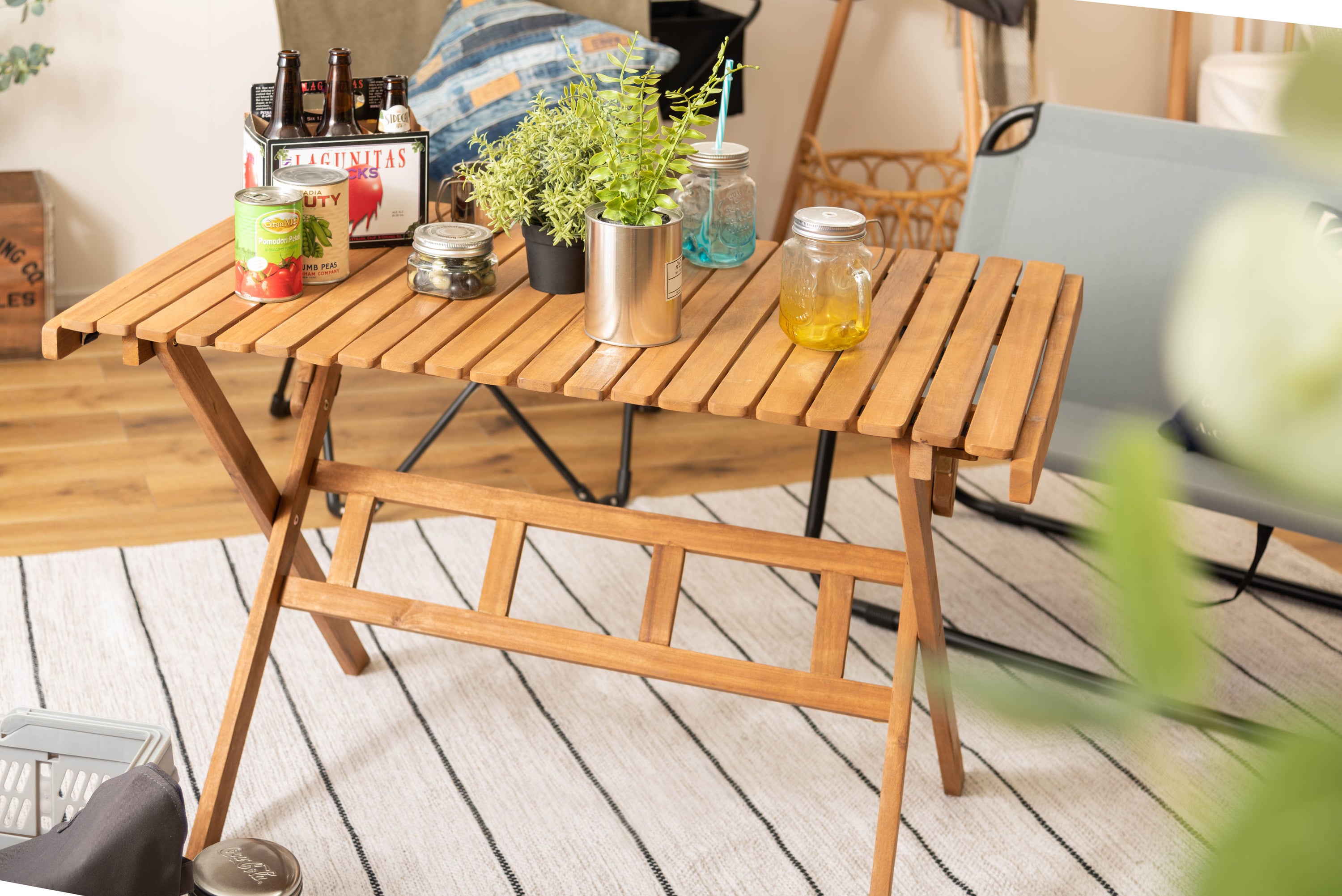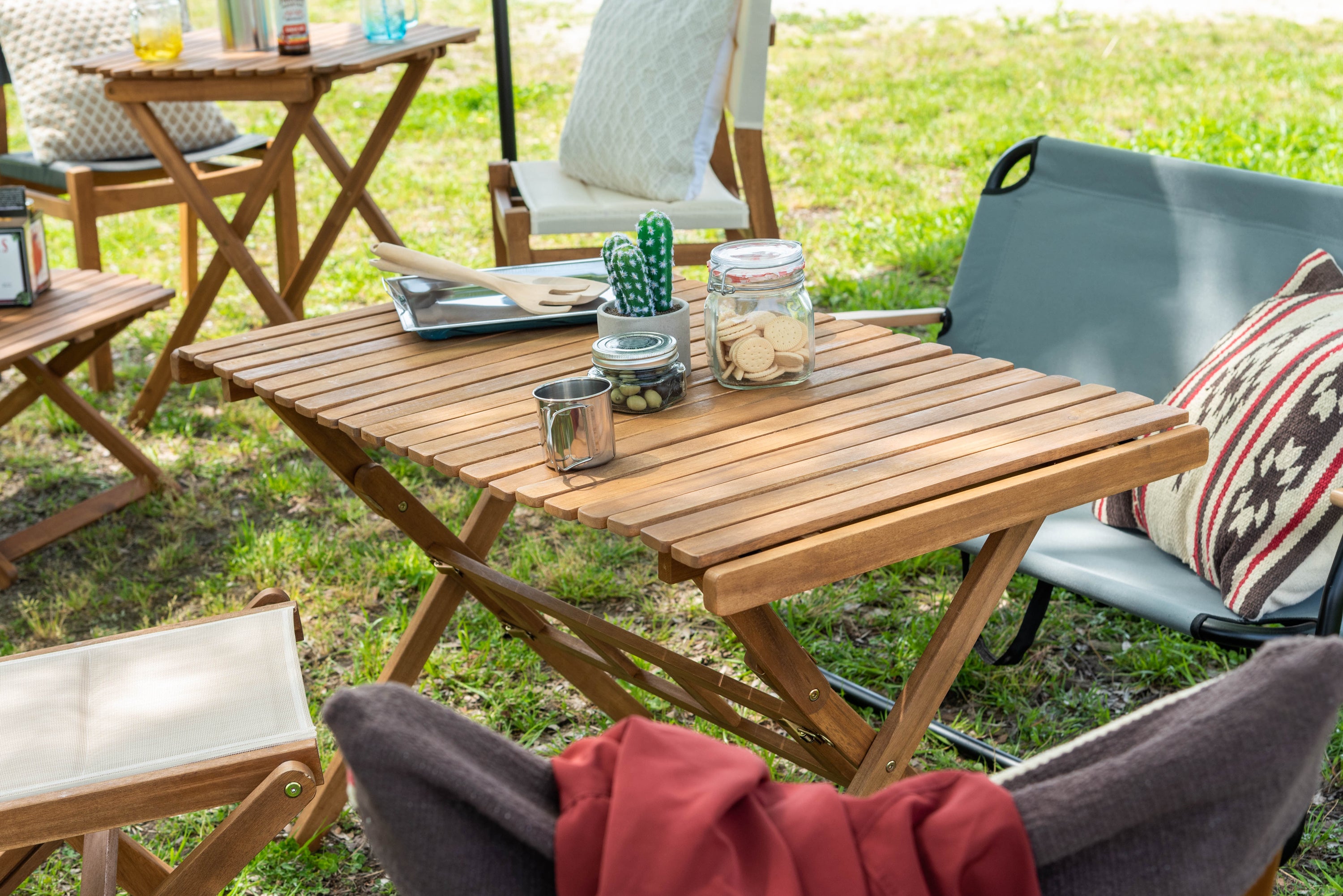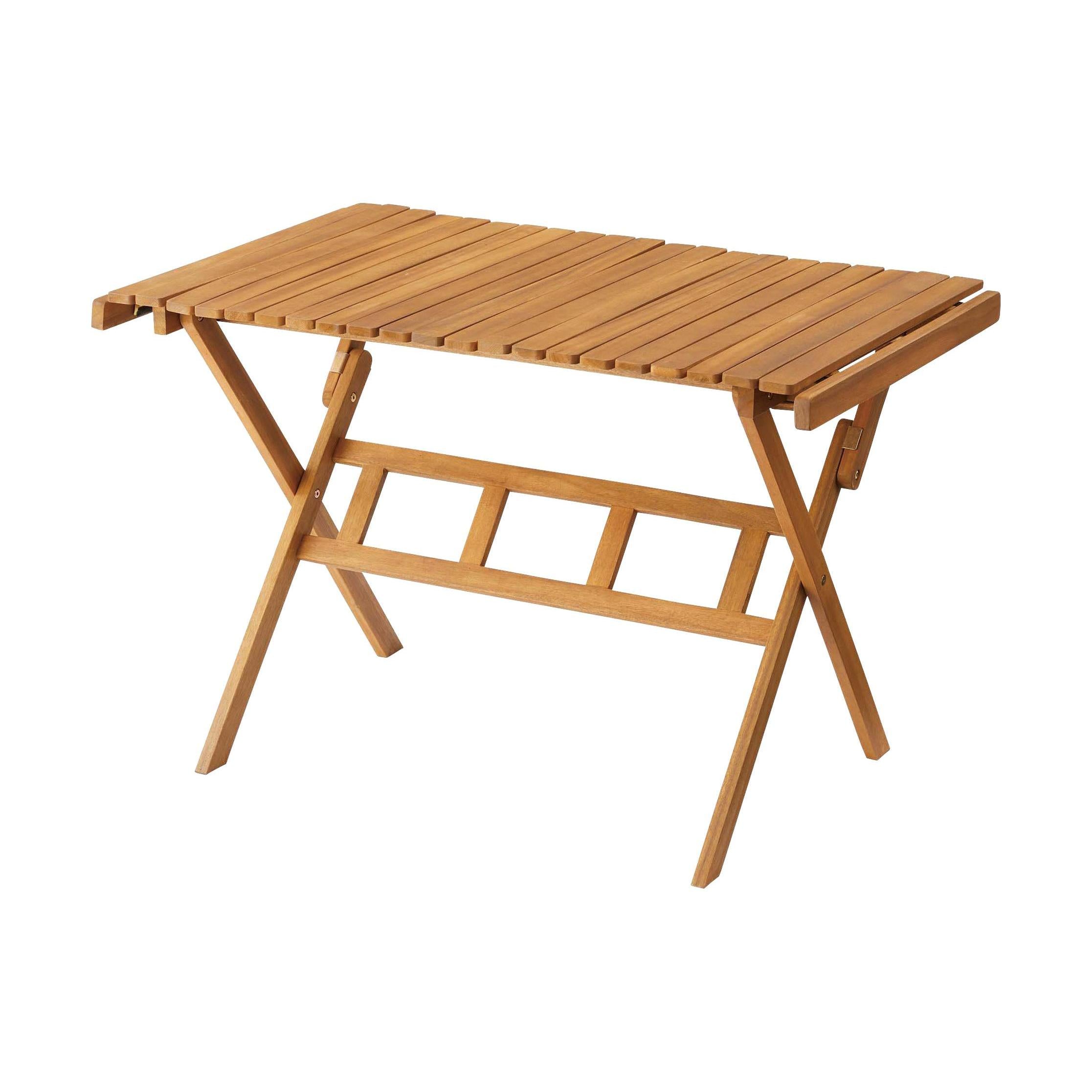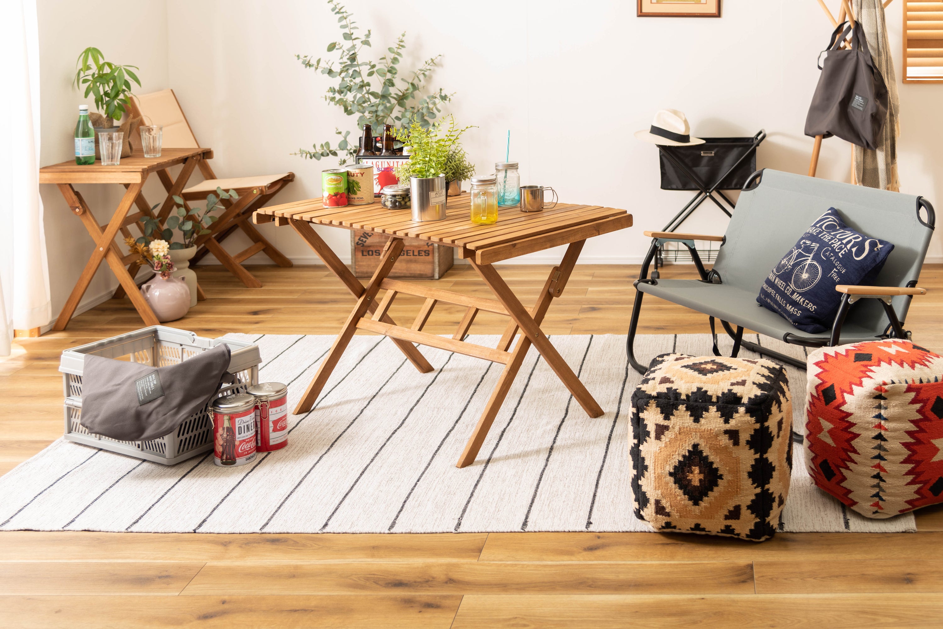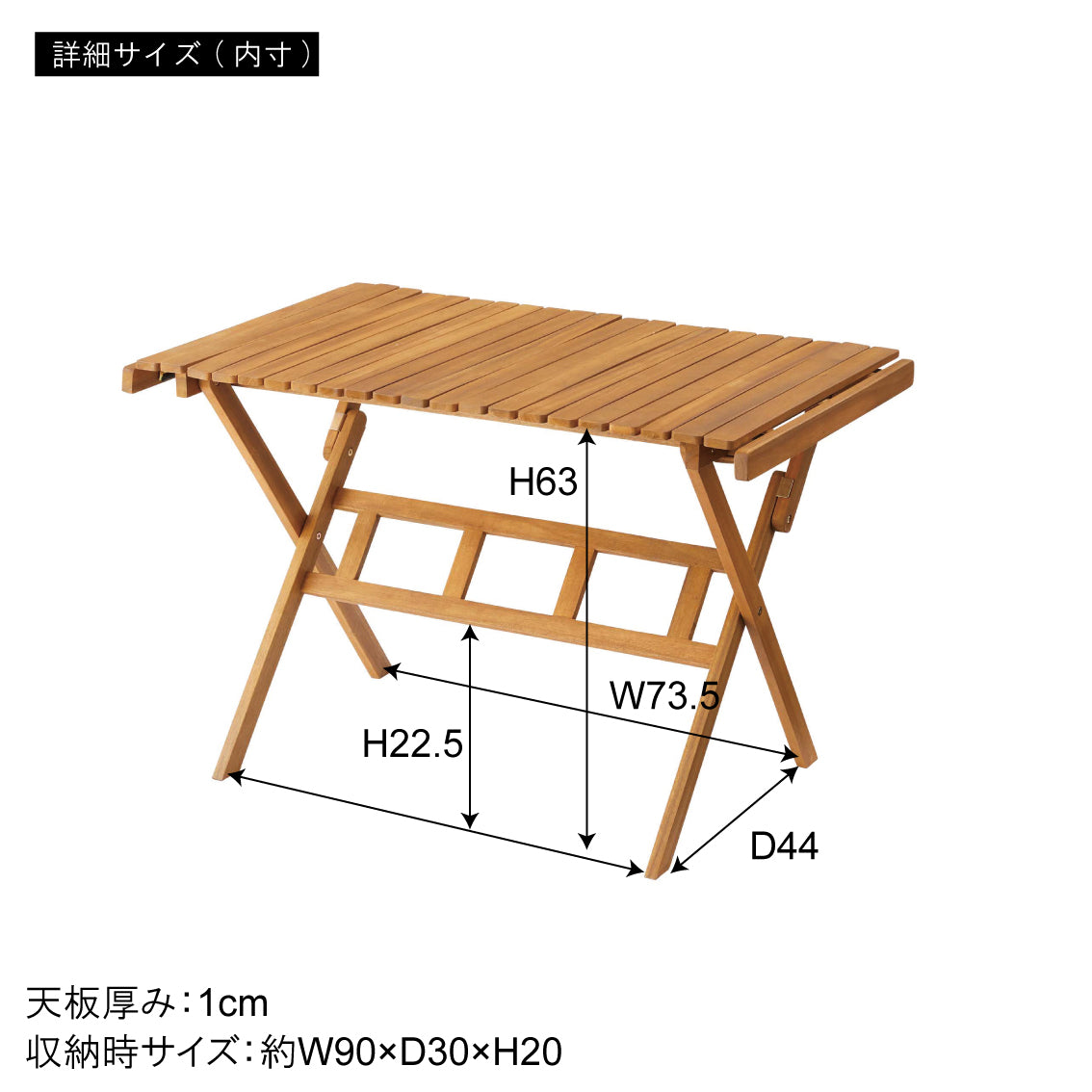 天然木の温もりを感じるロールトップ式ハイテーブル。 組立式でコンパクトになるので、アウトドア・キャンプにも最適。 アウトドアシーン以外に室内使用にもおすすめのテーブル。 来客用テーブルとしても優秀。 専用収納ケース付きで各部材をすっきり収納。持ち運びもかさばらずアウトドアに最適。 工具不要で簡単組立式なので準備にも手間取らず簡単にセット。 天然木(アカシア)にオイル仕上げで完成させた、風合いのあるテーブル。 高さ64cmのハイタイプテーブルなので、ちょっとした作業台としても便利。 ソファ前のハイテーブルとして。 来客時用のテーブルとして。
