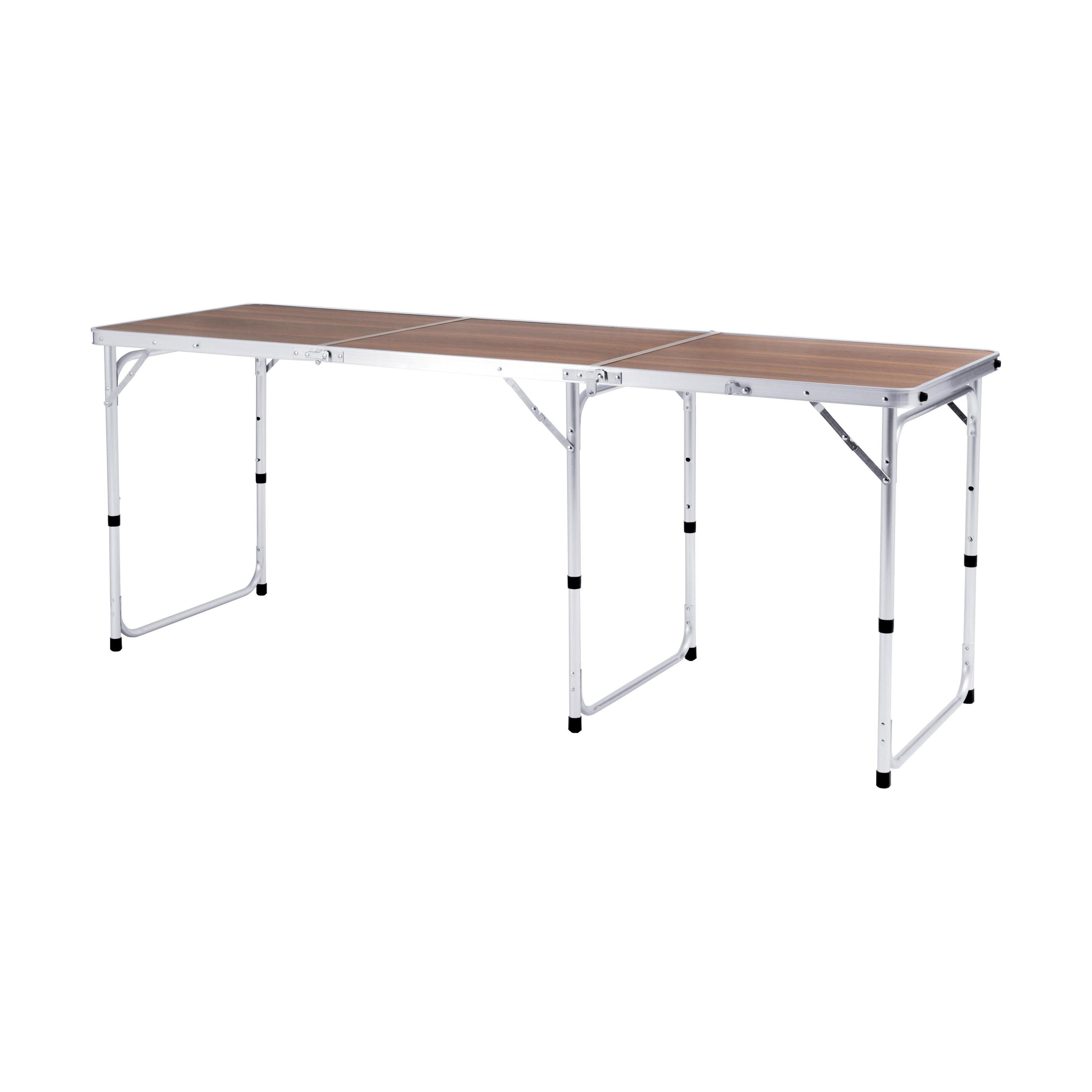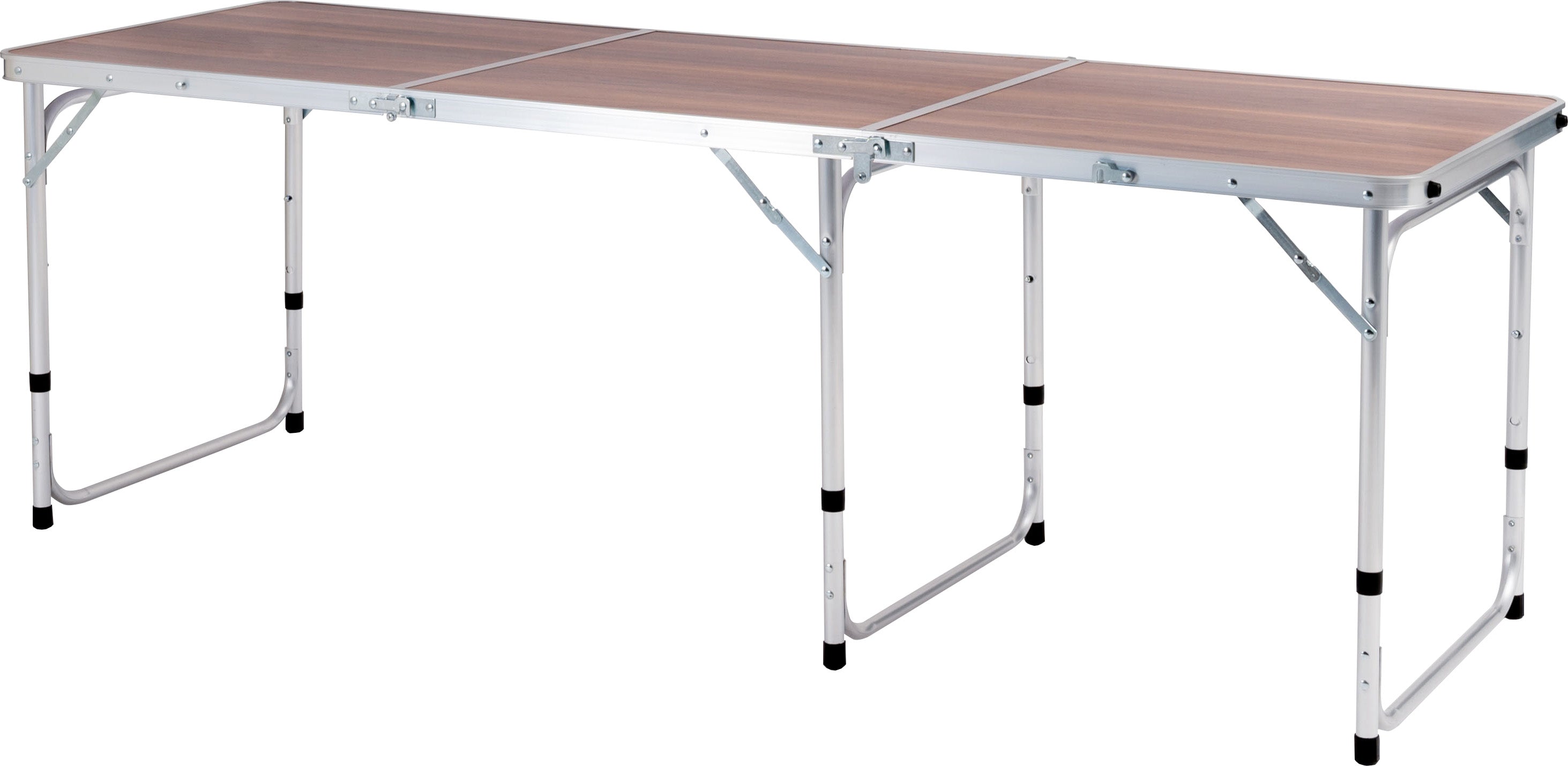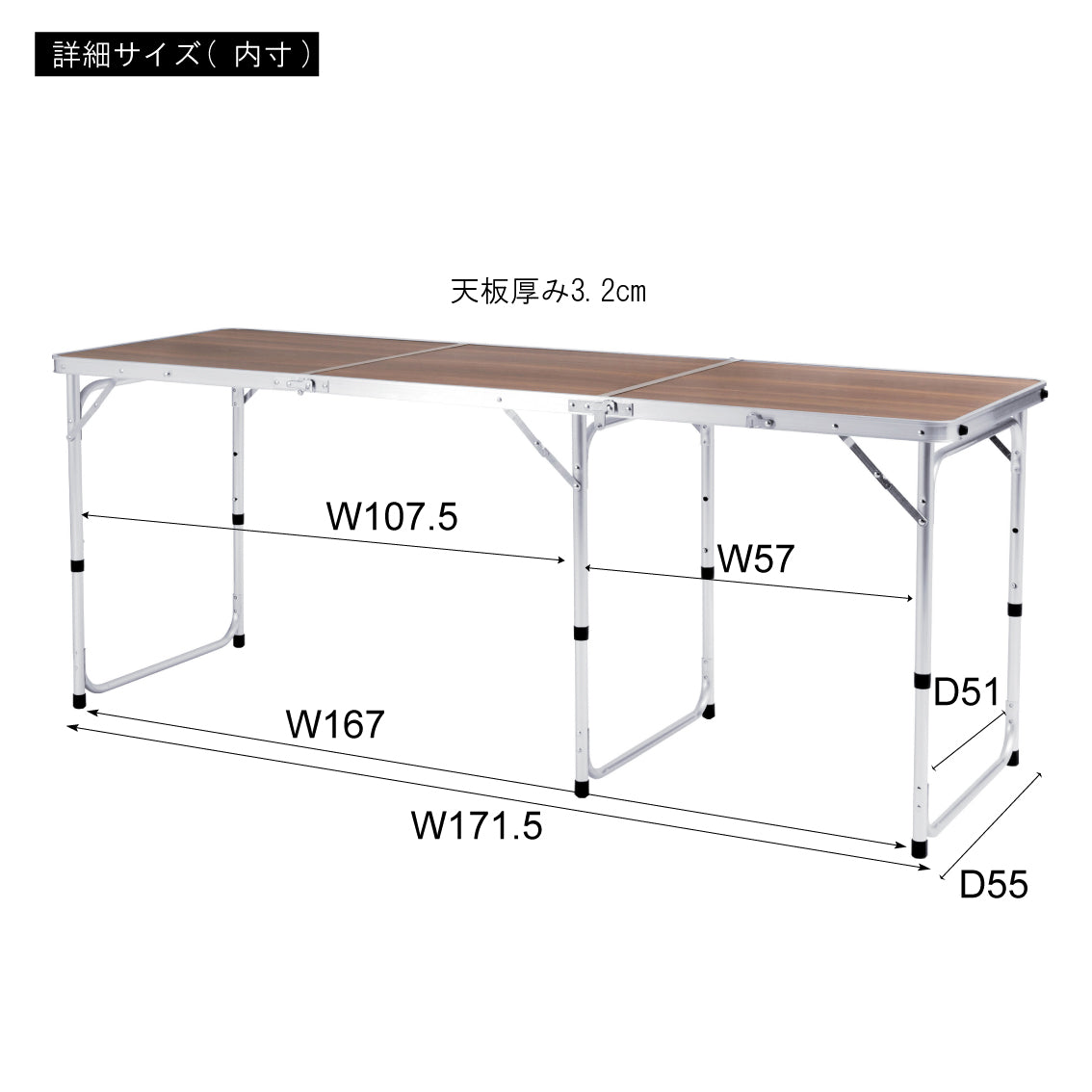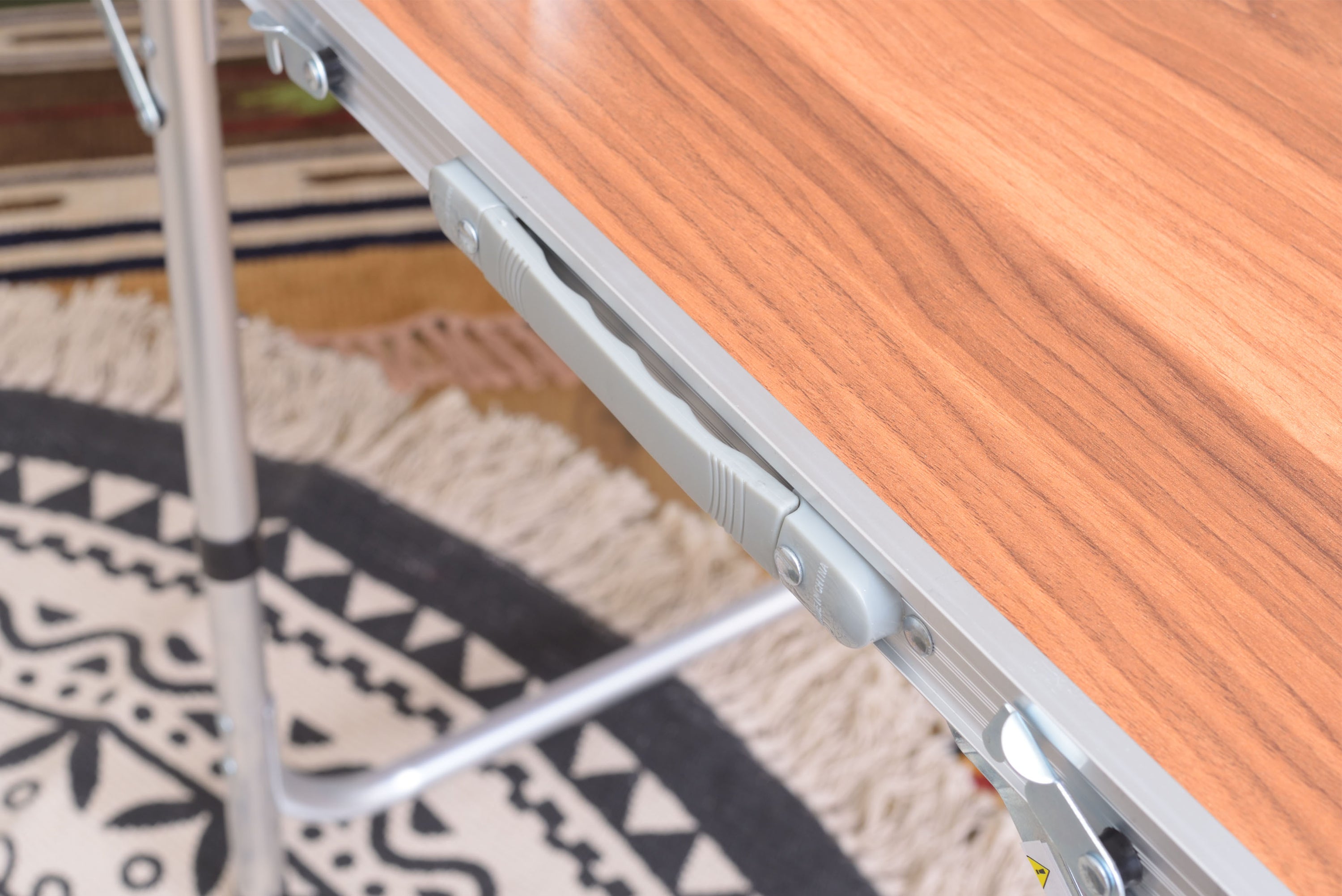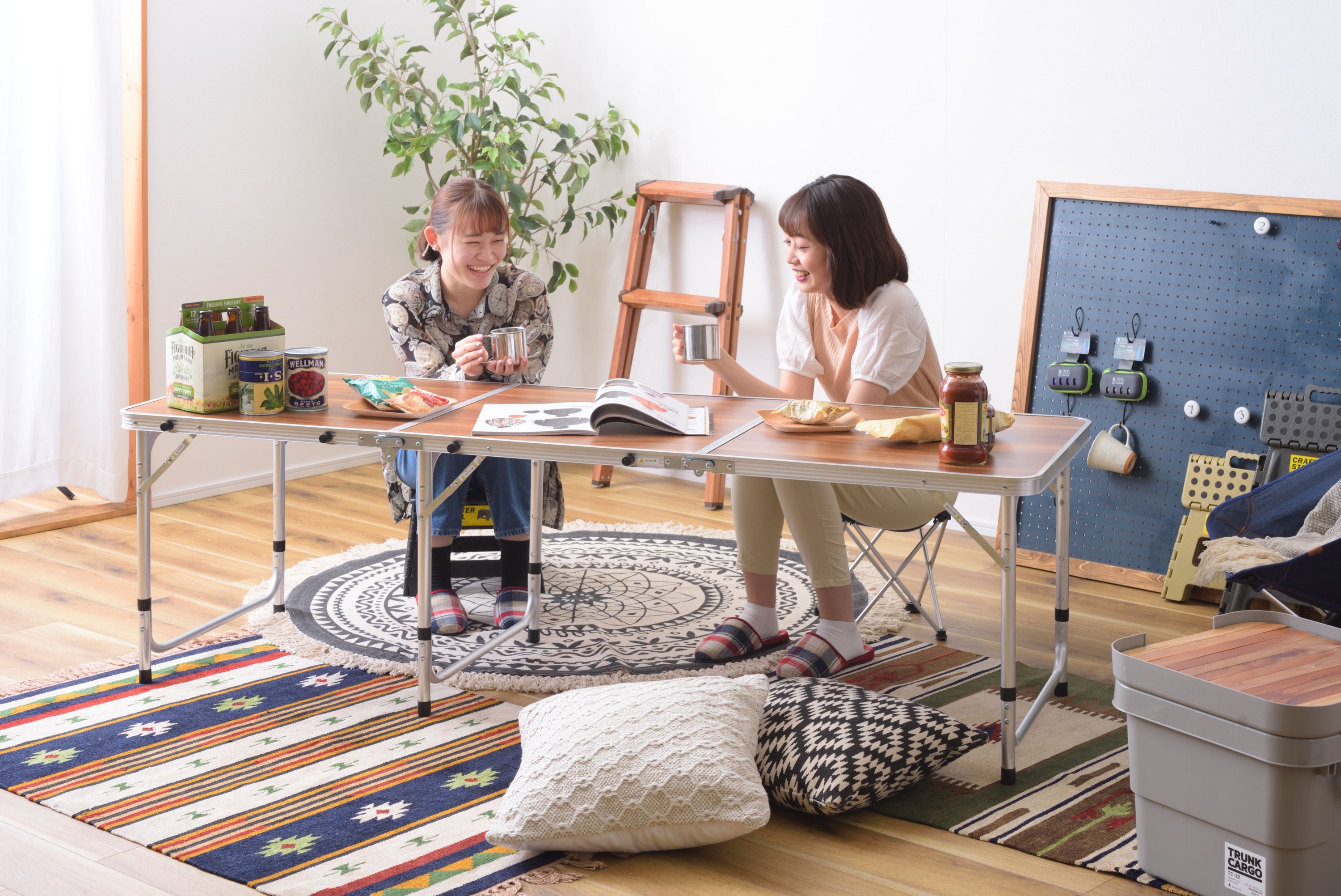 W180の大型フォールディングテーブル。 アウトドアはもちろん、ちょっとした会議や作業台、 イベントの受け付け用としても使えます。 3等分に折れ曲がりコンパクトになるので手軽に持ち運びができ、 場所を取らず収納ができます。高さも3段階調節ができますので 高さが異なるチェア、スツールなどに合わせることが可能です。