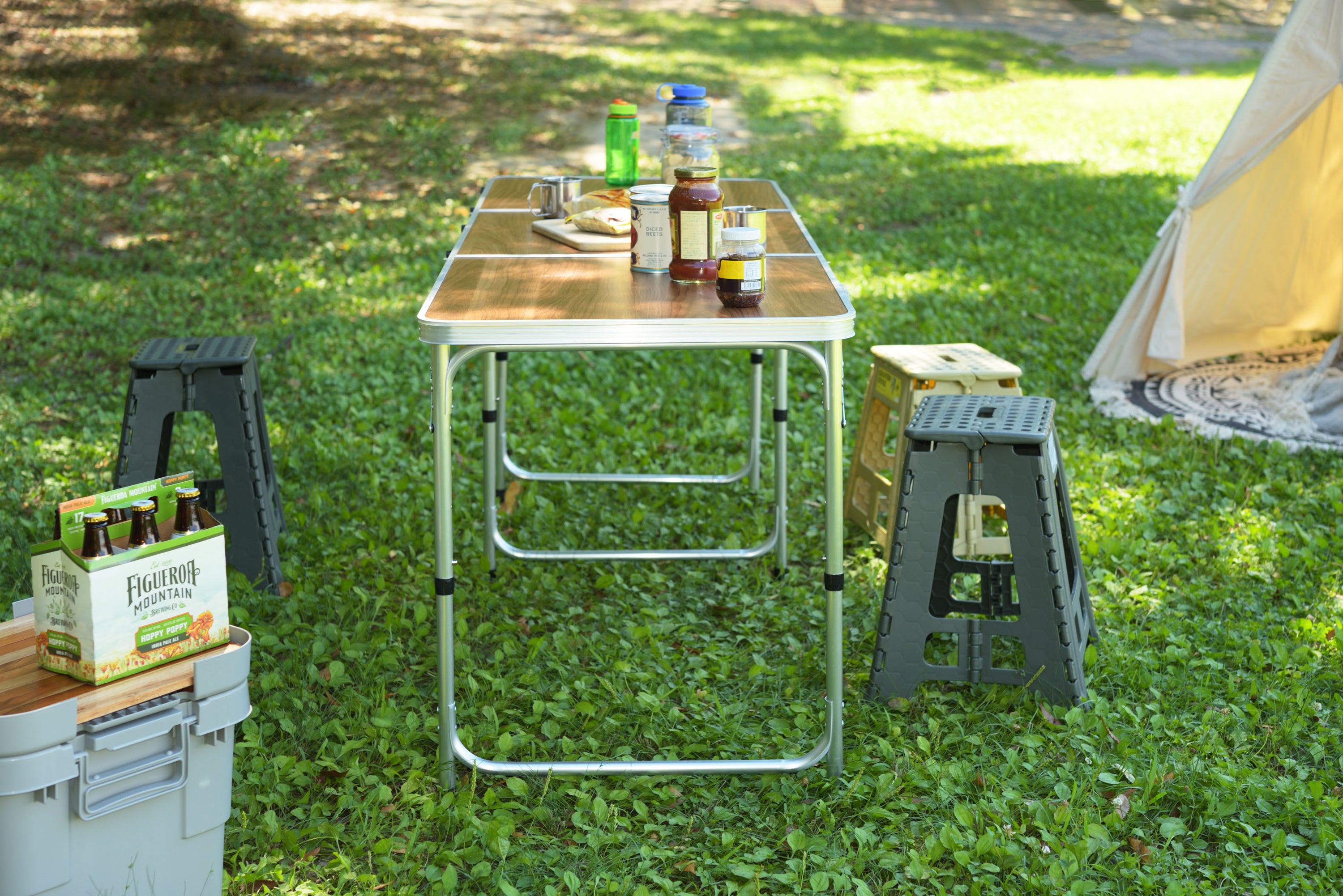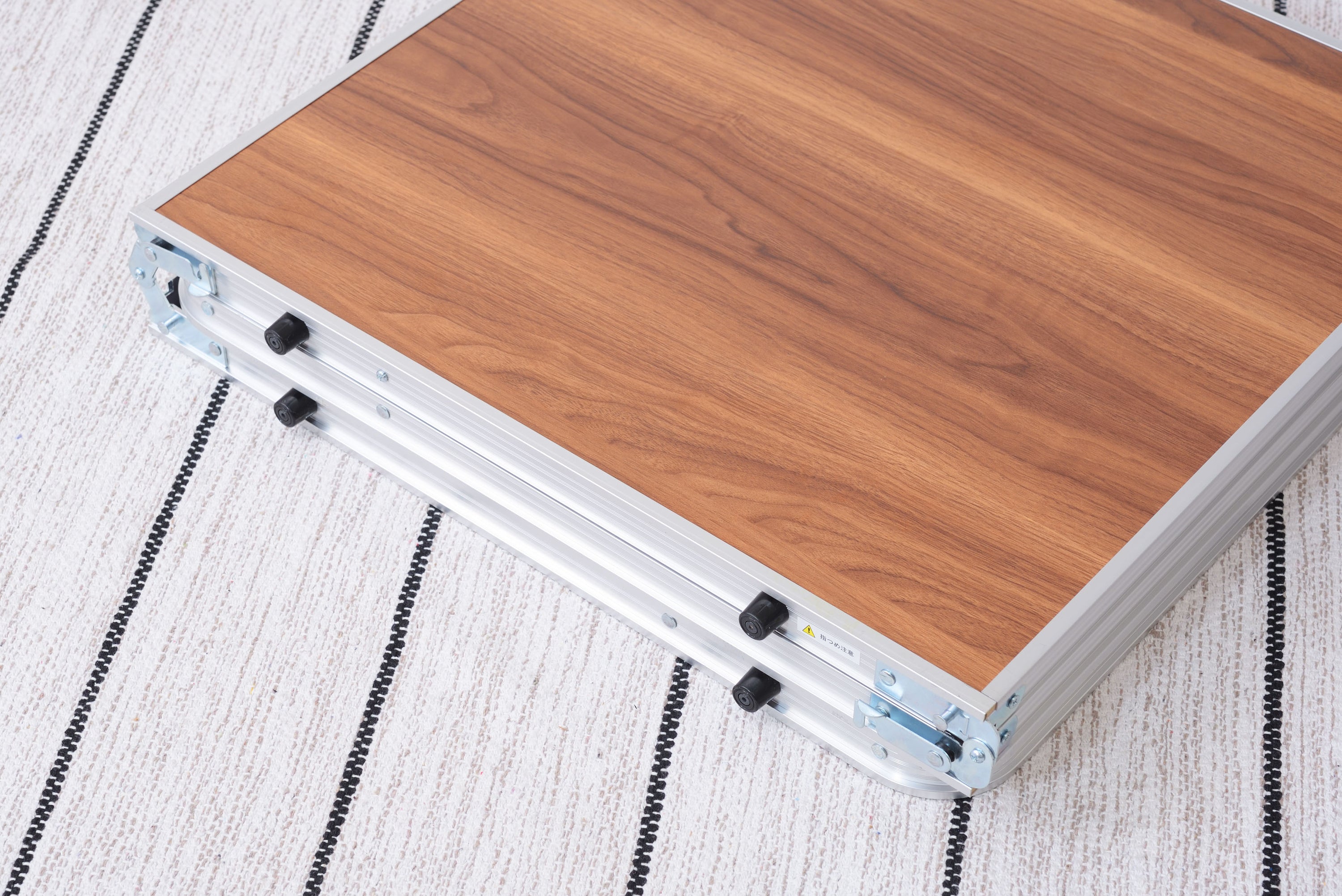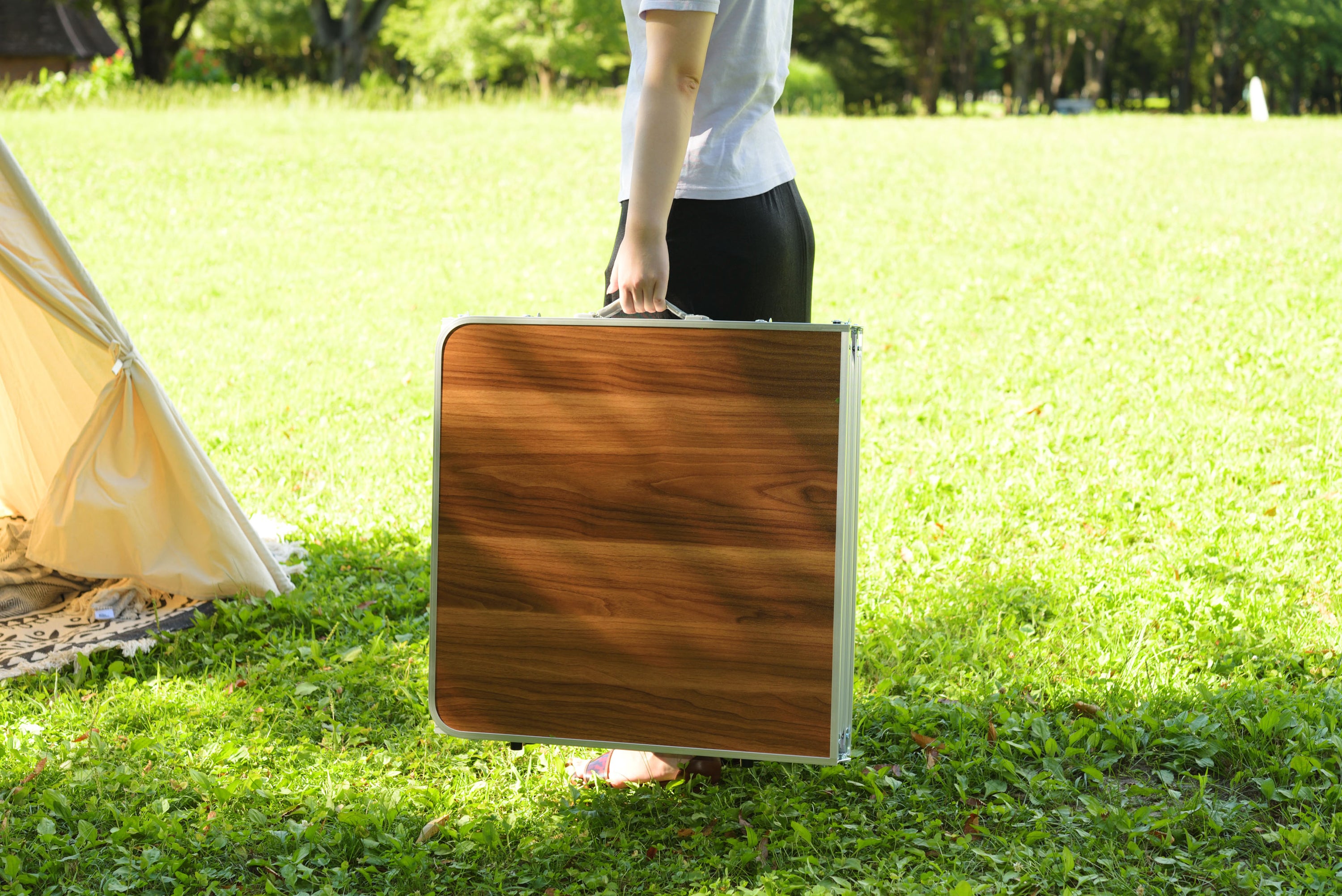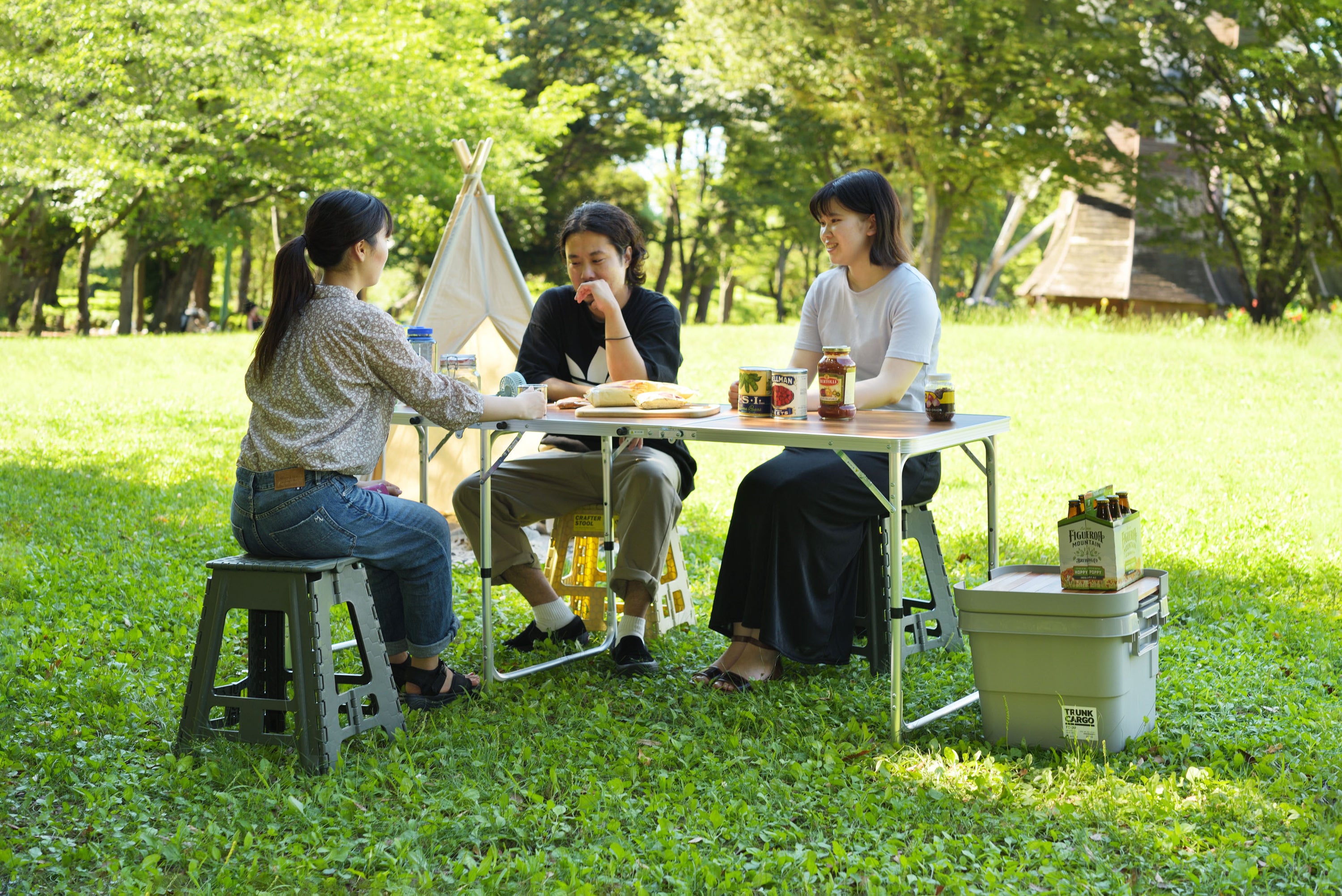 W180の大型フォールディングテーブル。 アウトドアはもちろん、ちょっとした会議や作業台、 イベントの受け付け用としても使えます。 3等分に折れ曲がりコンパクトになるので手軽に持ち運びができ、 場所を取らず収納ができます。高さも3段階調節ができますので 高さが異なるチェア、スツールなどに合わせることが可能です。