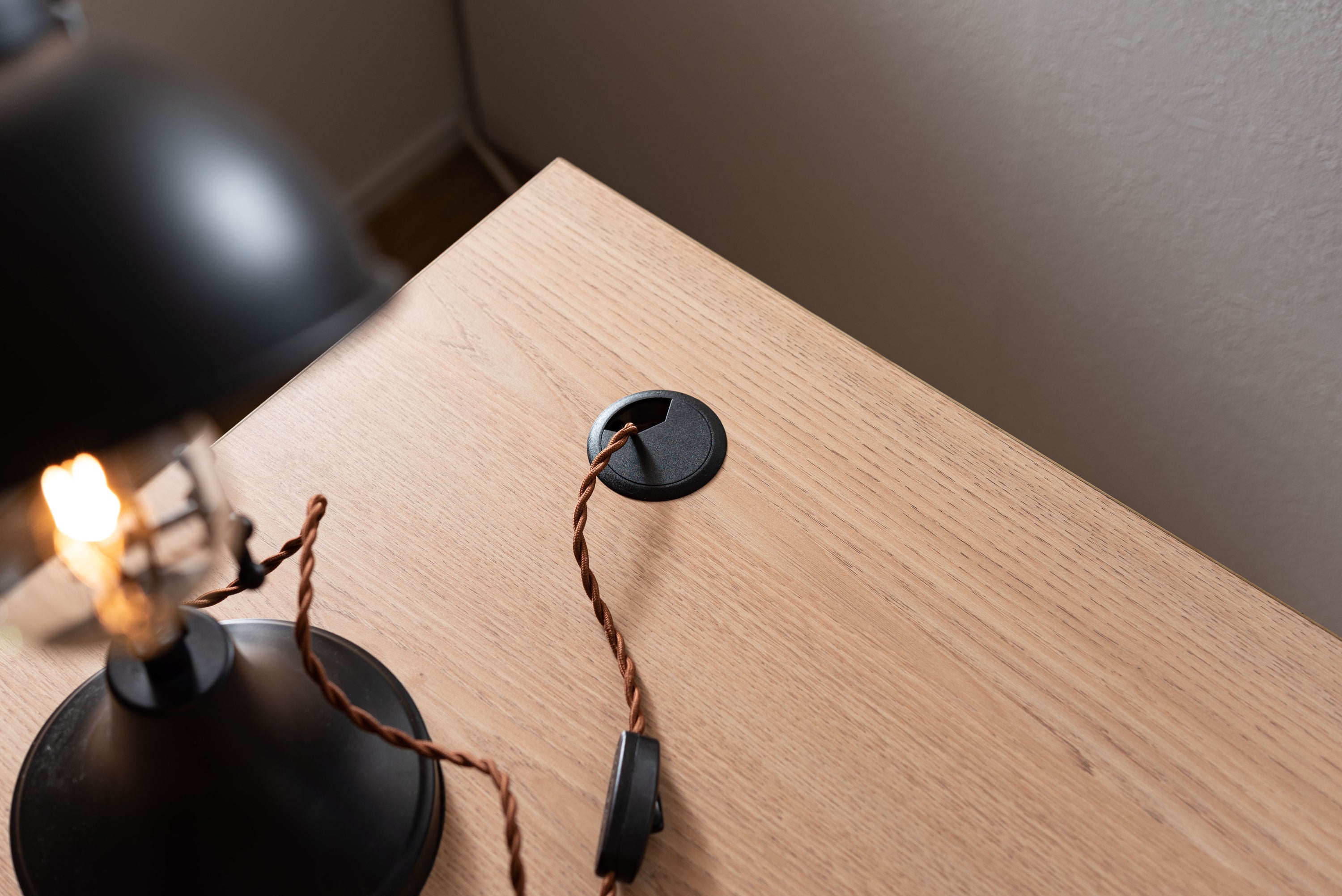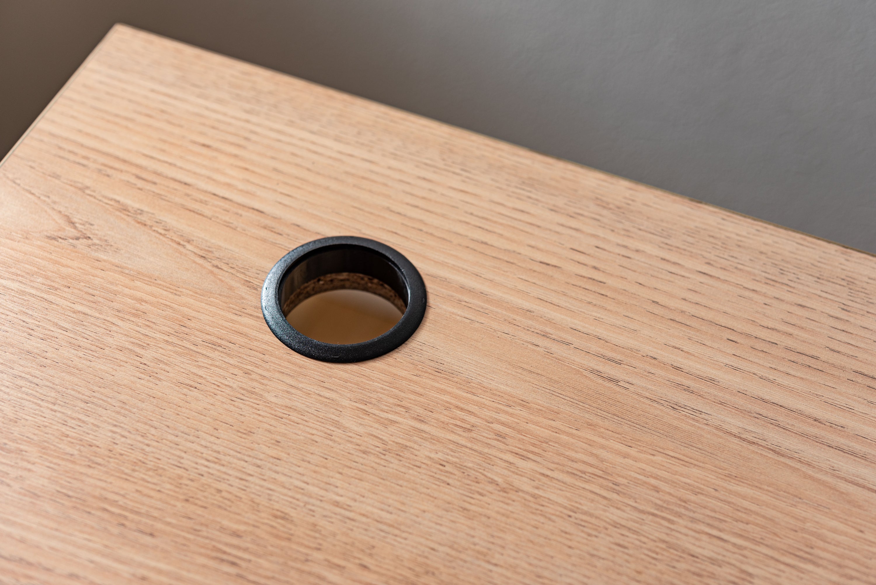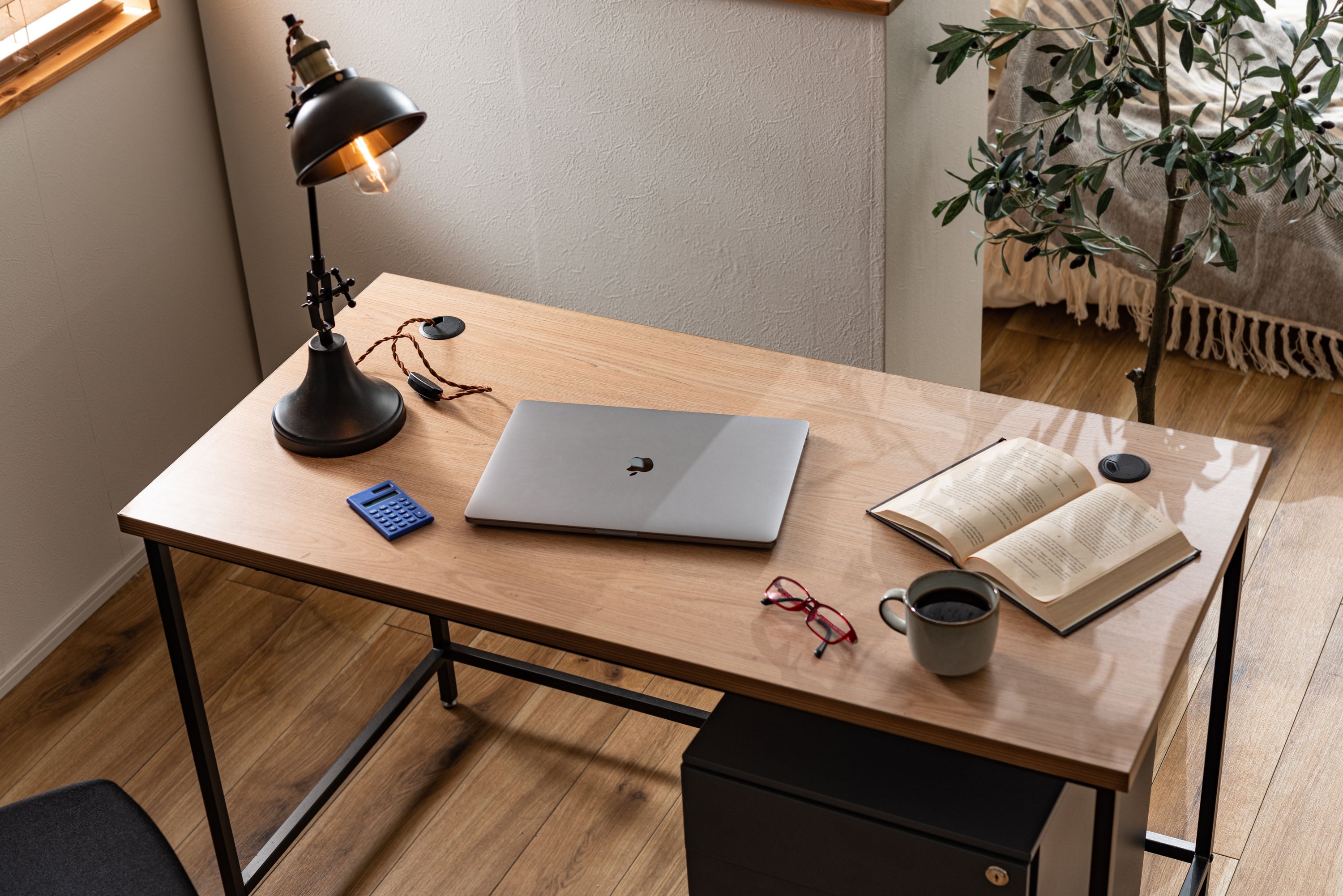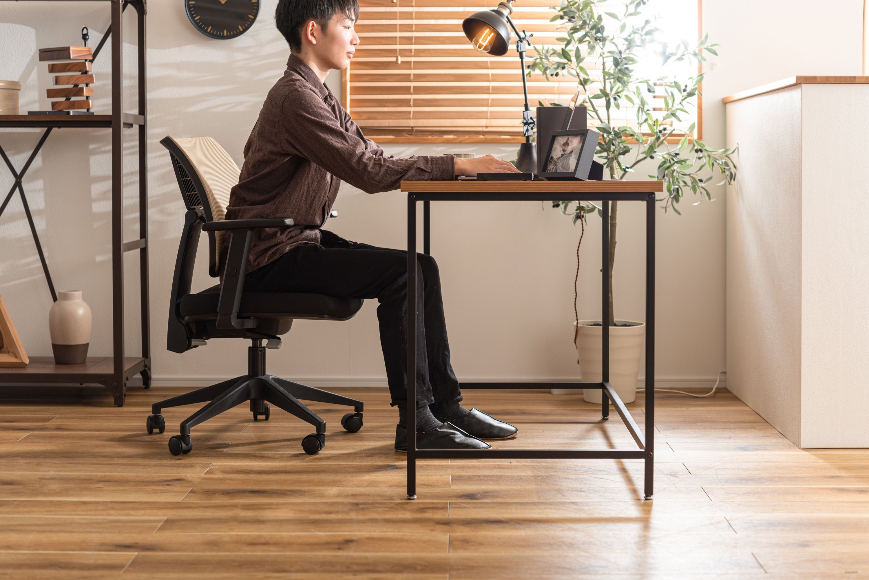 シンプルでスタイリッシュなデスクが登場。すっきりとしたデスクと鍵付きで多機能なワゴンの組み合わせで快適なオフィスライフを実現します。 デスクは強度の高い木目調のメラミンシートを採用。お手入れも簡単でいつでも清潔な状態をキープする事ができて安心です。フチ部分は積層合板のシートでアクセントを入れたこだわりデザイン。天板の左右にコード穴を付けてあるので、配線処理も楽に行なえます。