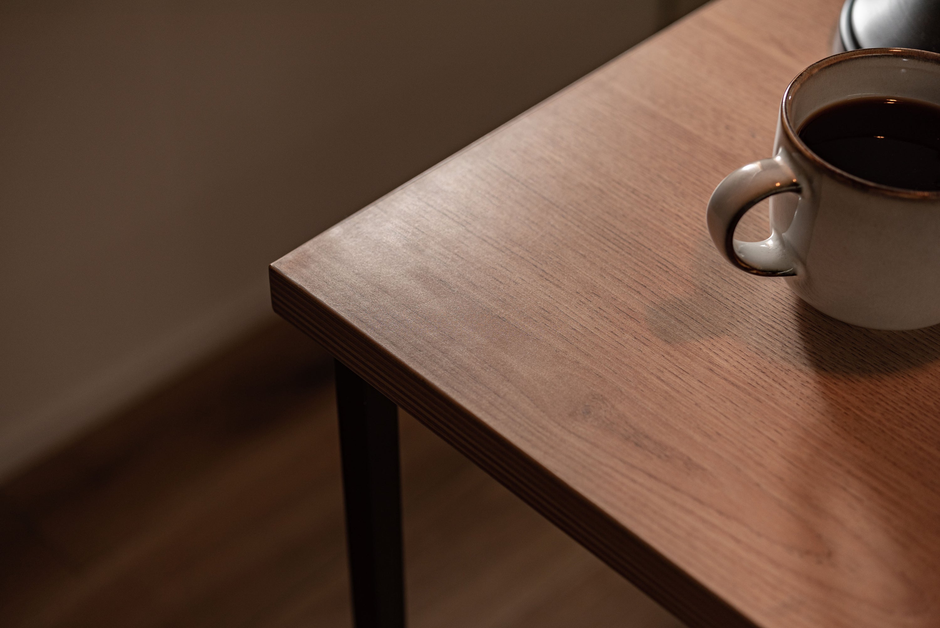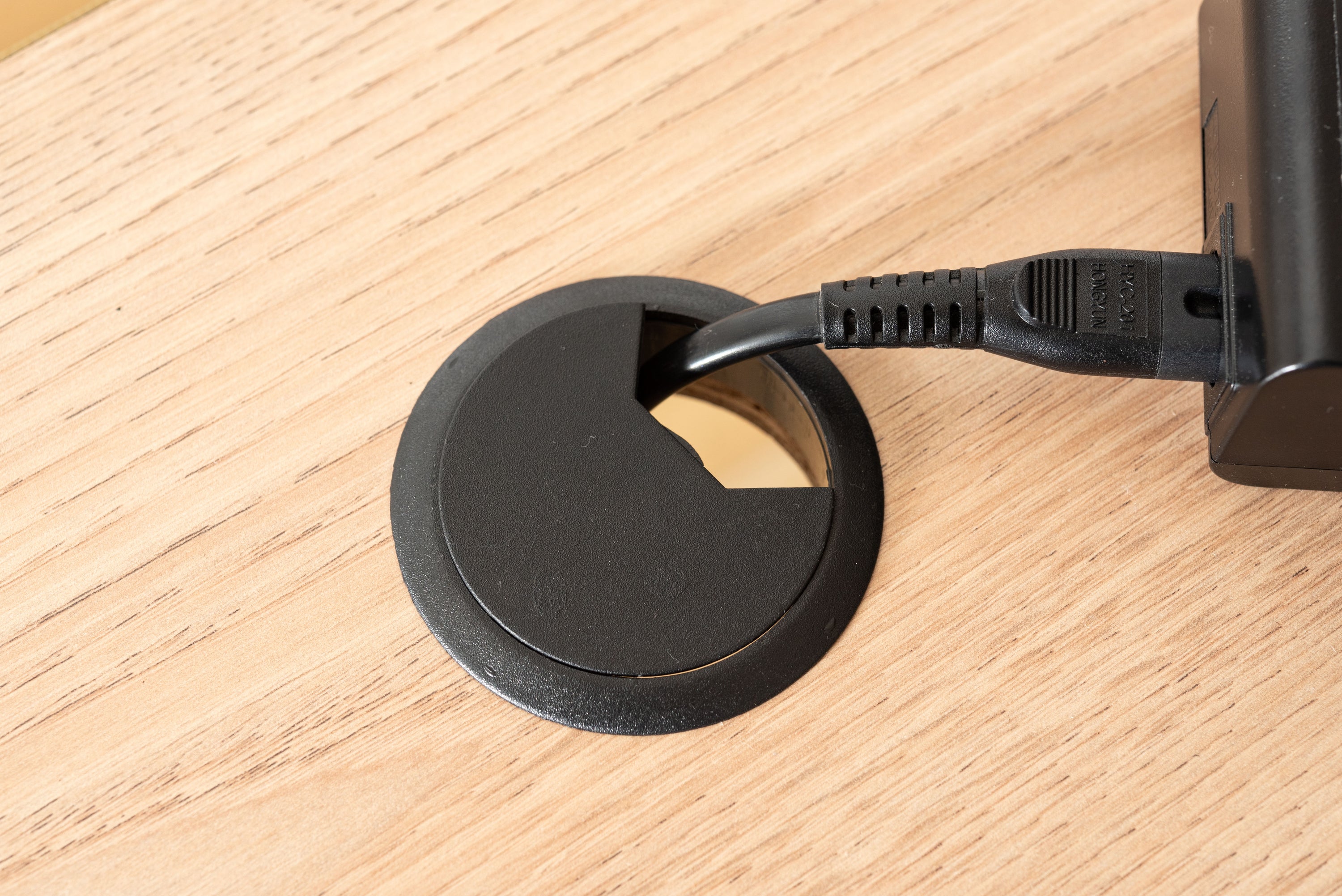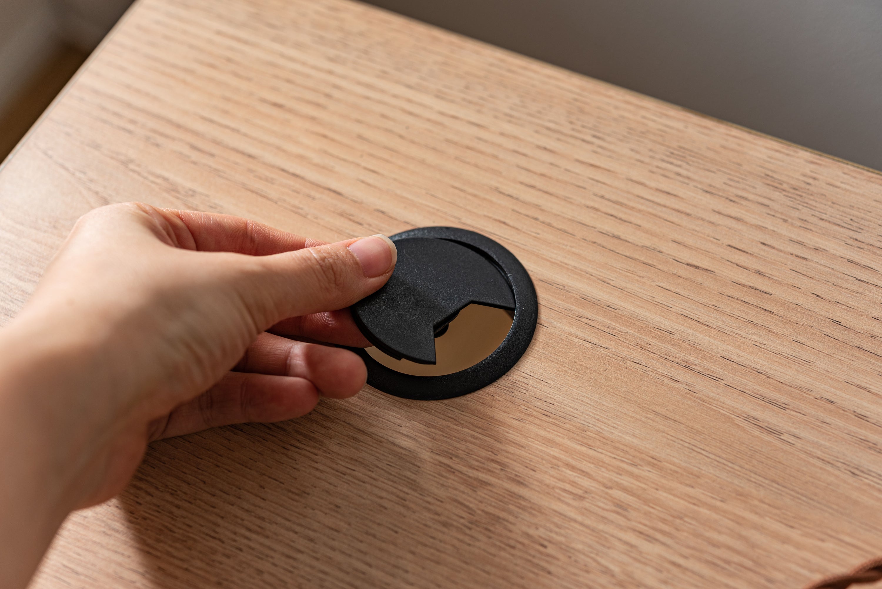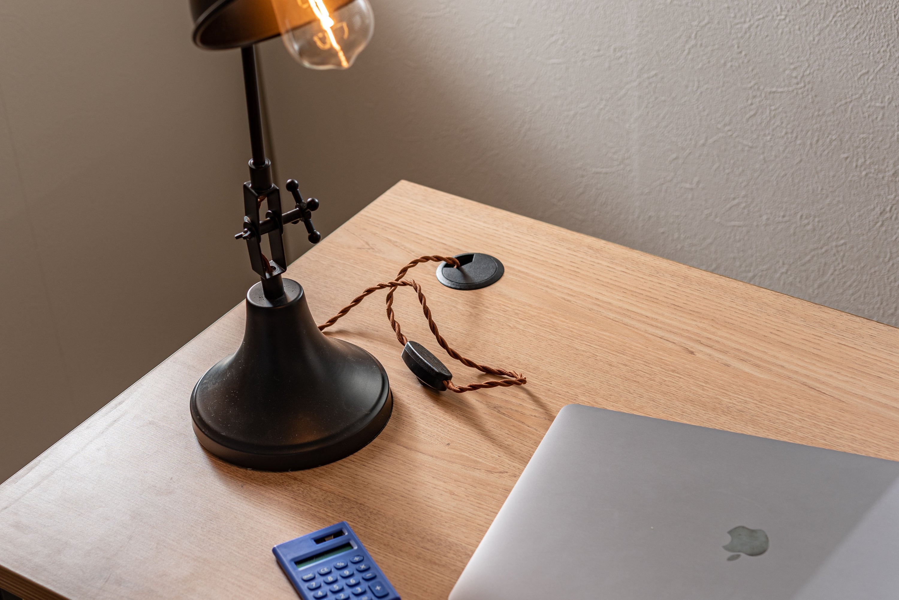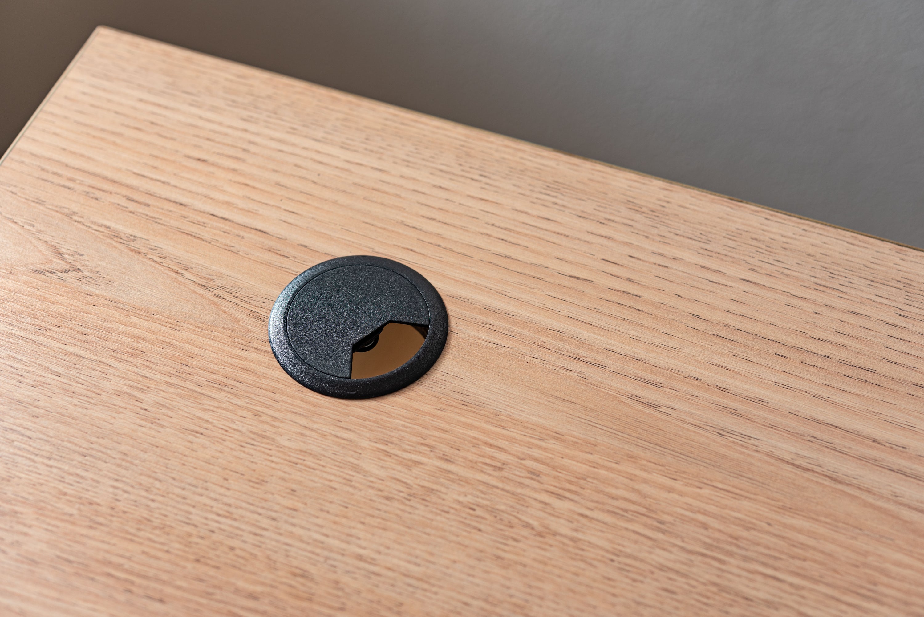 シンプルでスタイリッシュなデスクが登場。すっきりとしたデスクと鍵付きで多機能なワゴンの組み合わせで快適なオフィスライフを実現します。 デスクは強度の高い木目調のメラミンシートを採用。お手入れも簡単でいつでも清潔な状態をキープする事ができて安心です。フチ部分は積層合板のシートでアクセントを入れたこだわりデザイン。天板の左右にコード穴を付けてあるので、配線処理も楽に行なえます。