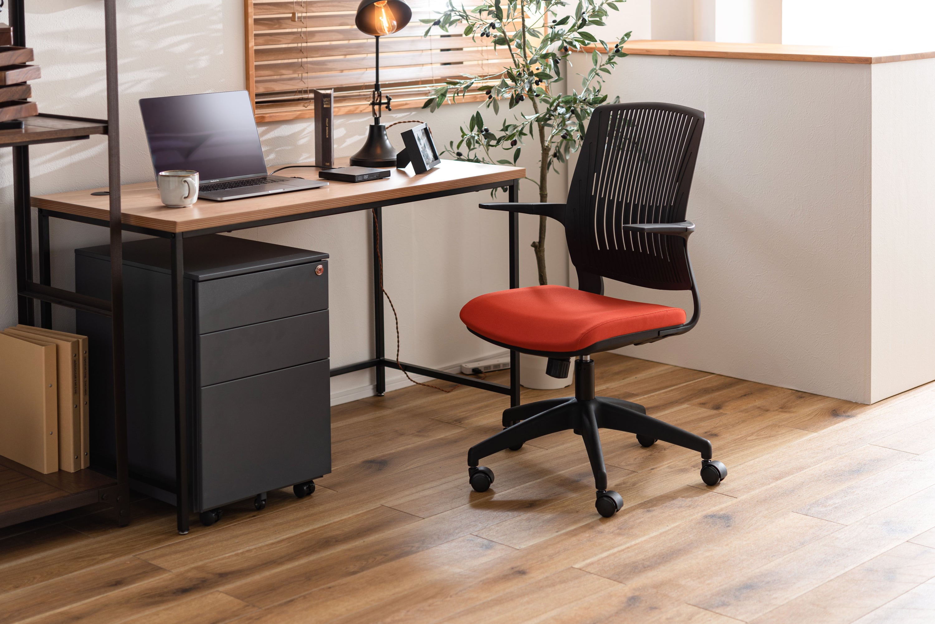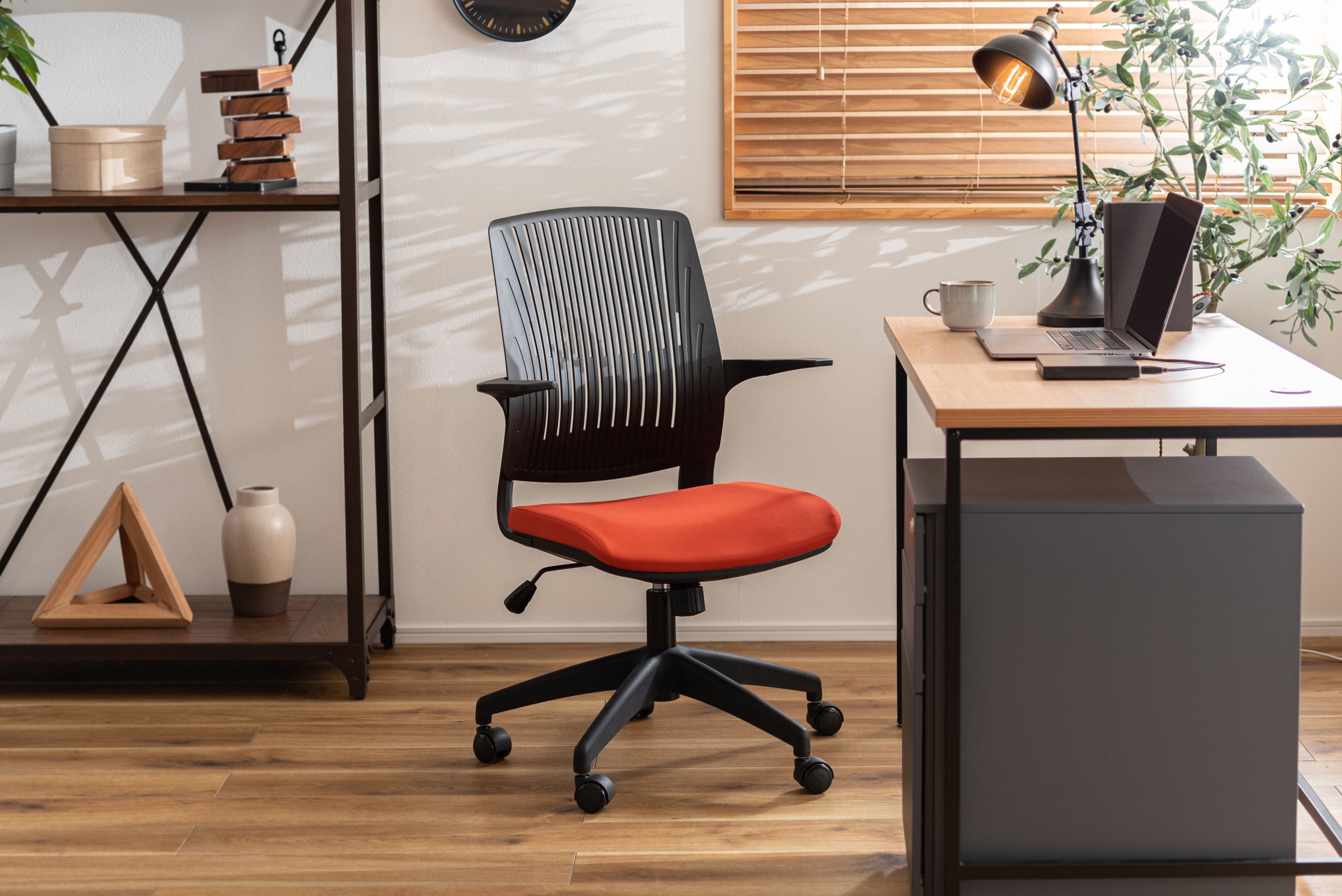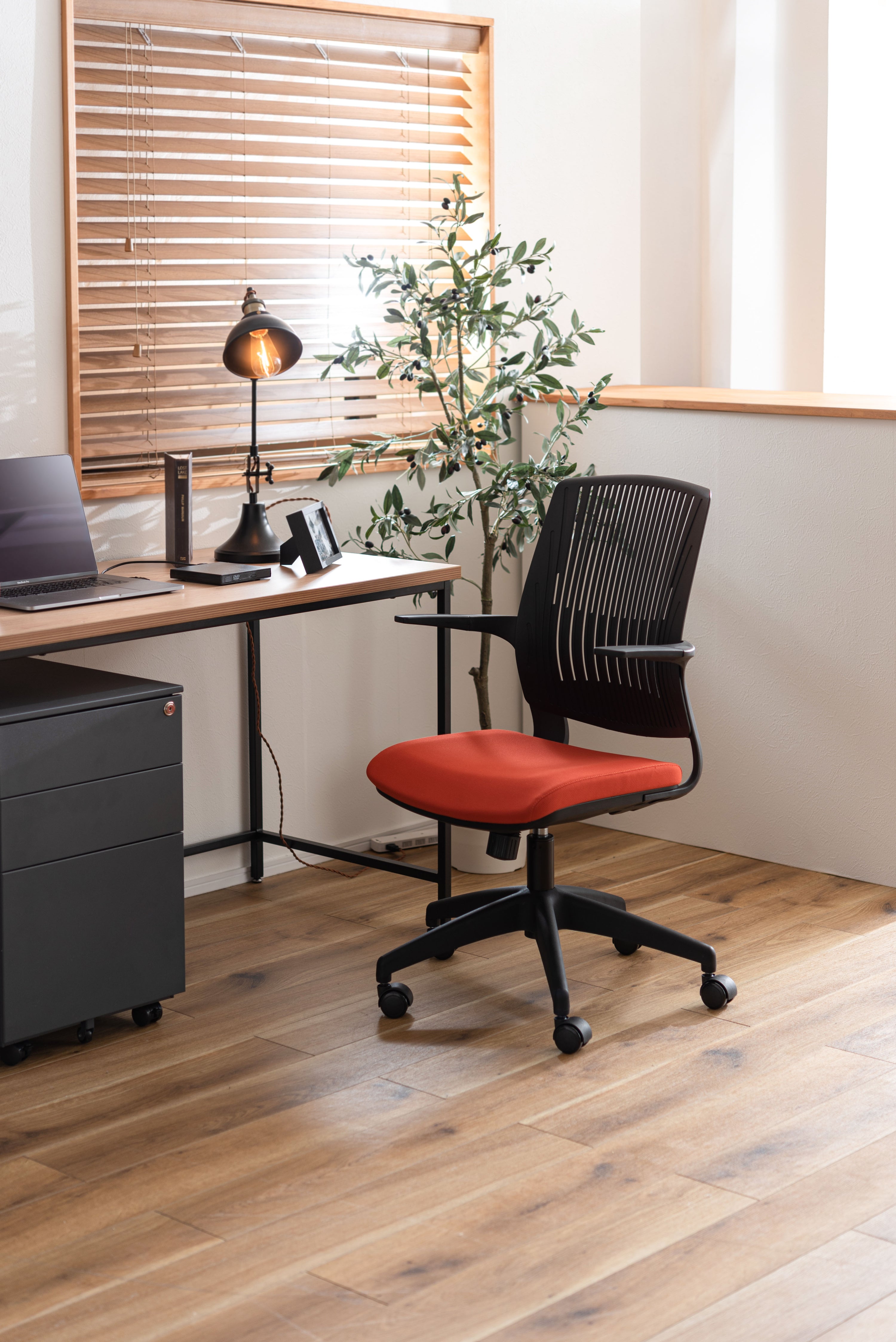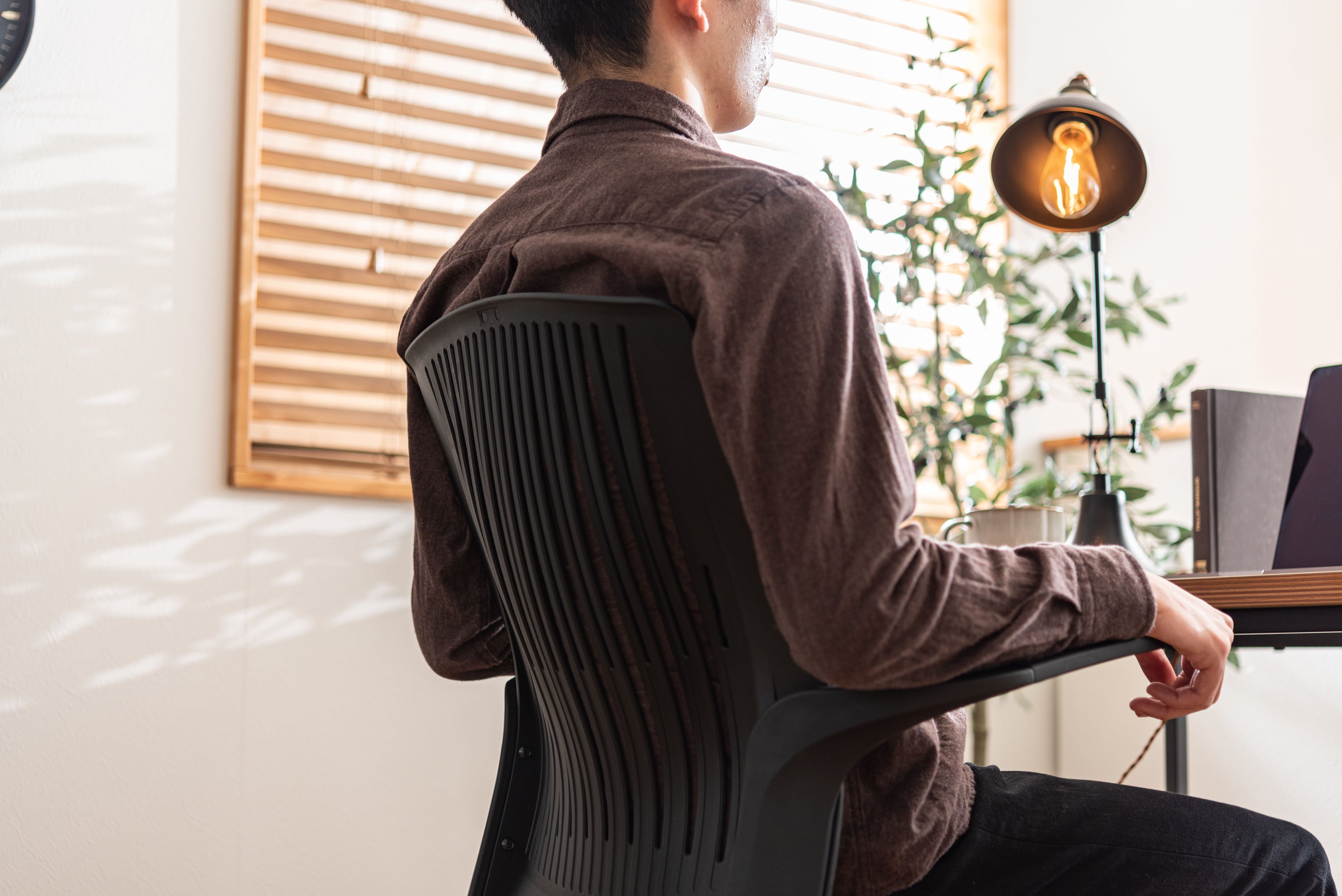 背もたれが背中に合わせて形状が変わるオフィスチェア。背もたれの特殊加工により座りながら背中をぐっと反らせることができるので、作業中にストレッチ&リフレッシュができます。カラーリングもブラックフレームベースで3色、ホワイトフレームベースで3色の合計6色のラインナップなので、様々なテイストに合わせる事ができます。