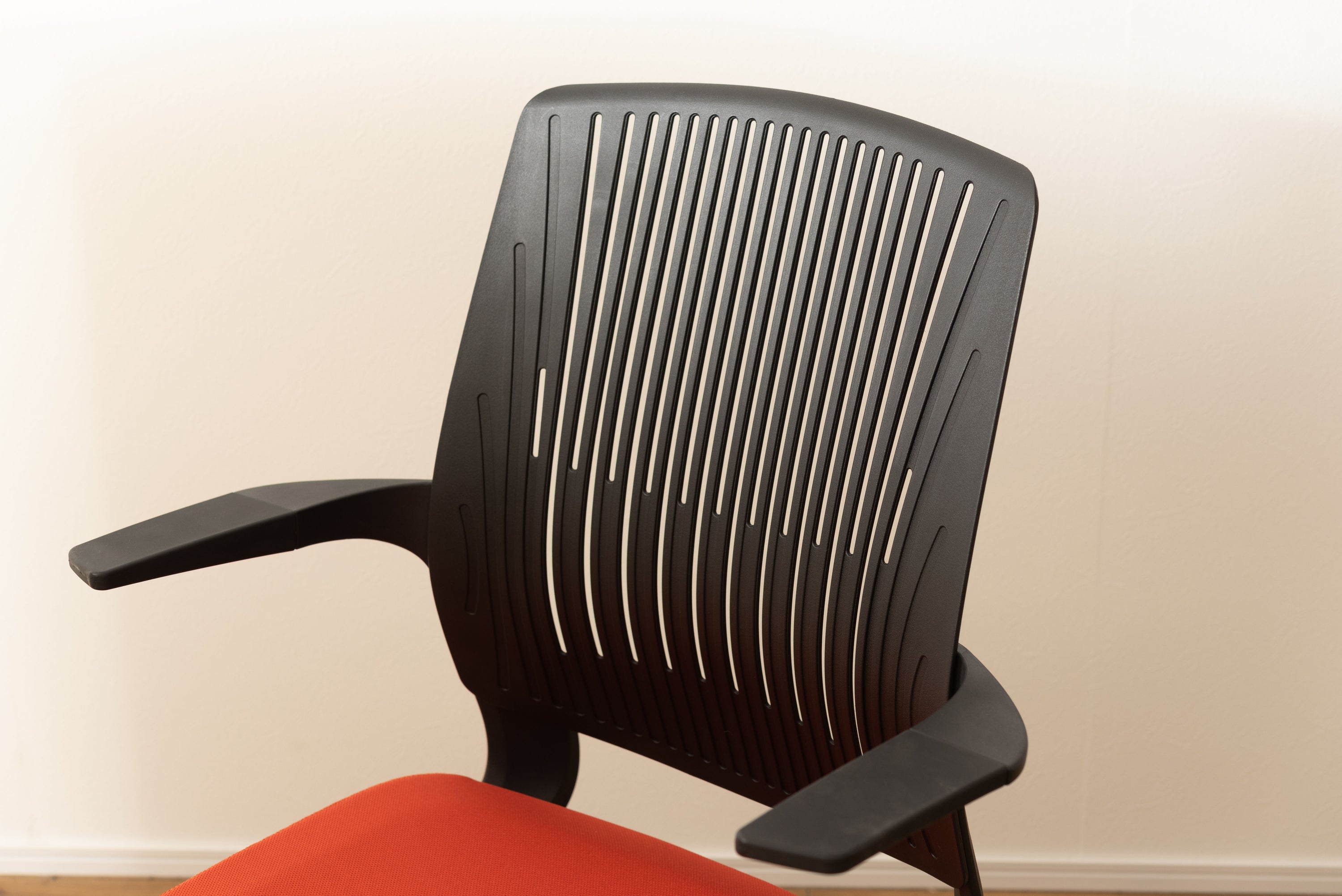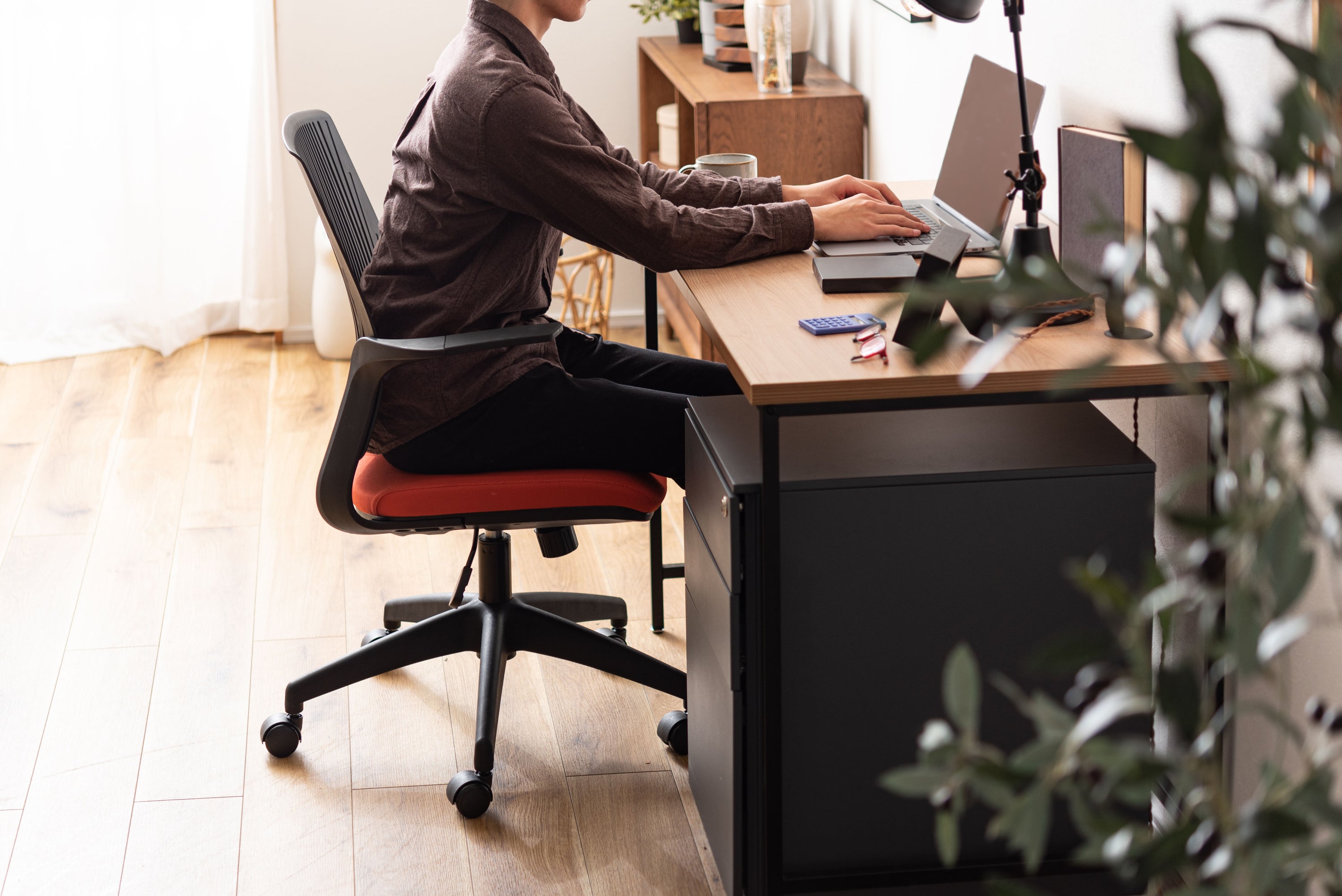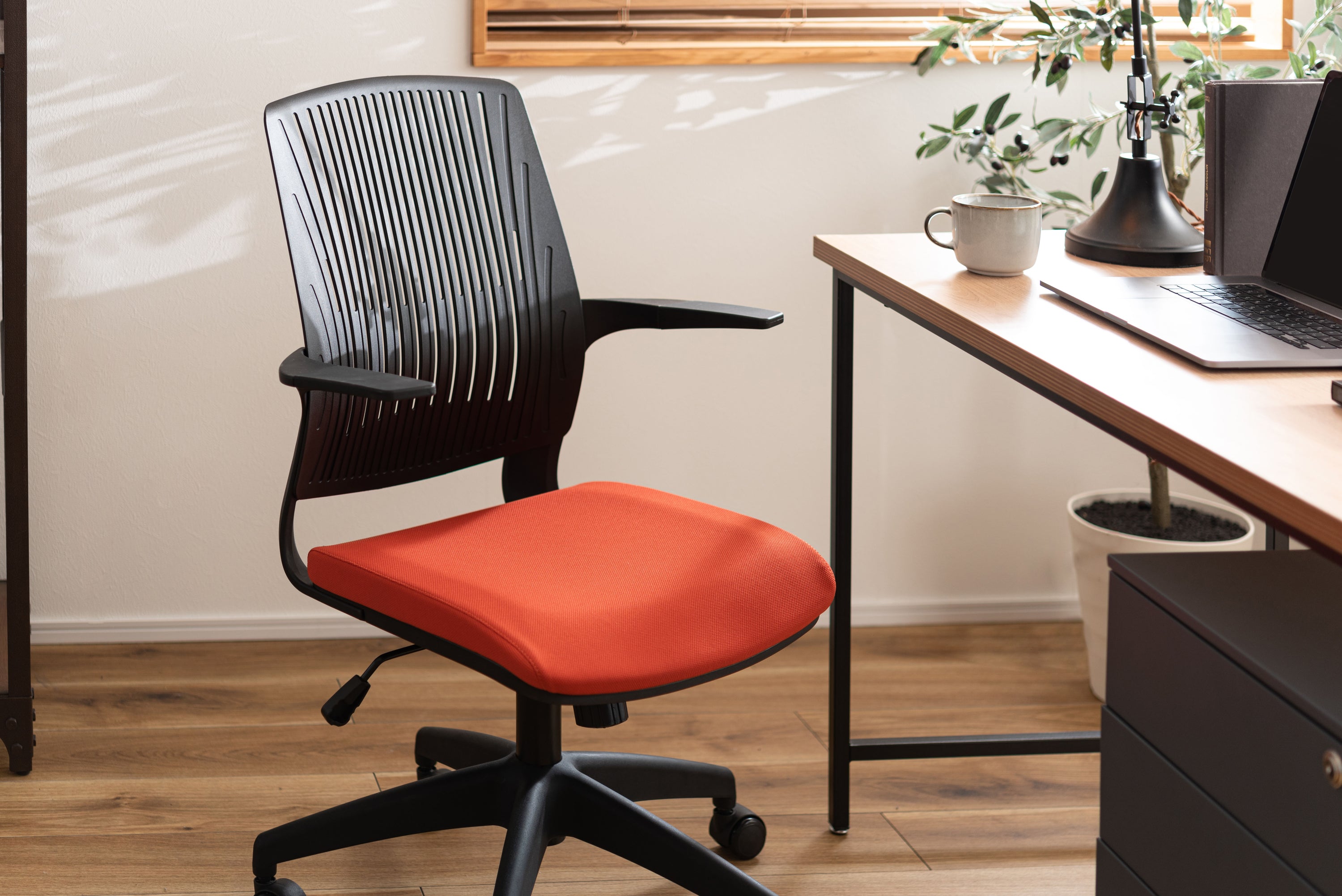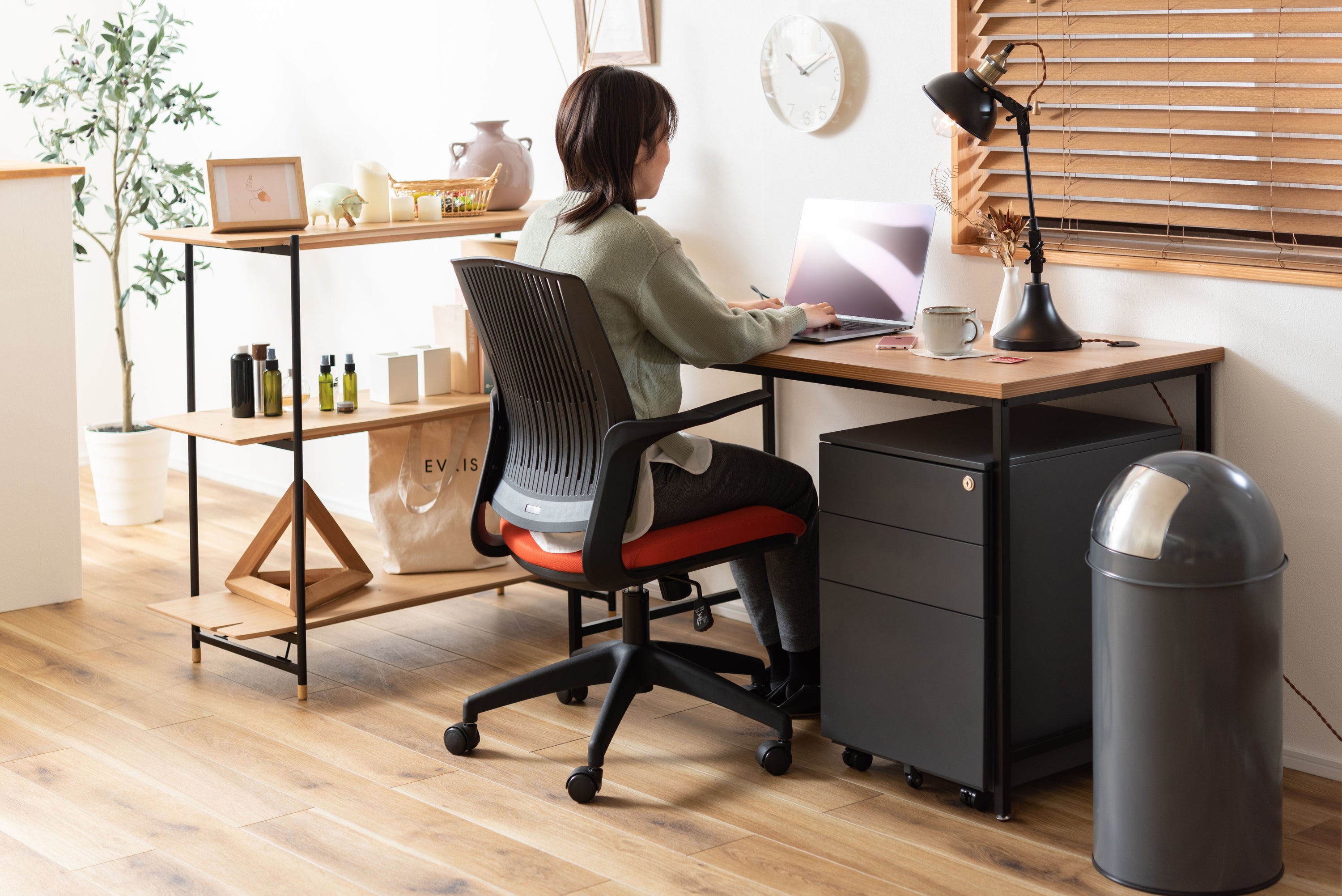 背もたれが背中に合わせて形状が変わるオフィスチェア。背もたれの特殊加工により座りながら背中をぐっと反らせることができるので、作業中にストレッチ&リフレッシュができます。カラーリングもブラックフレームベースで3色、ホワイトフレームベースで3色の合計6色のラインナップなので、様々なテイストに合わせる事ができます。