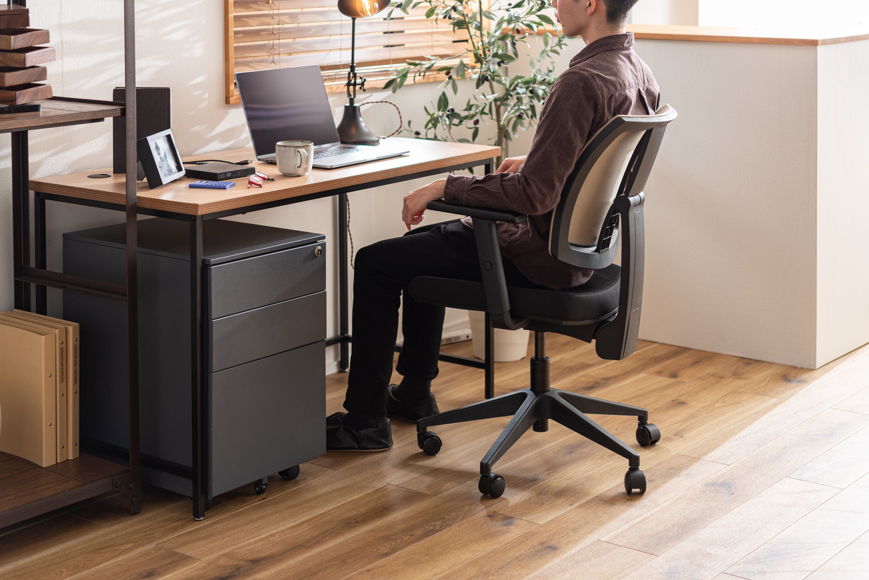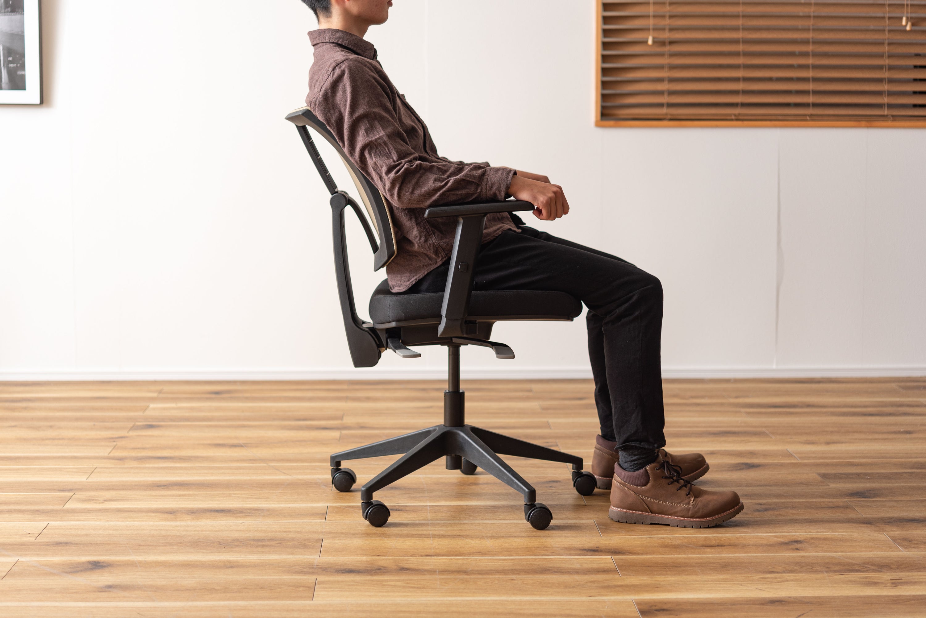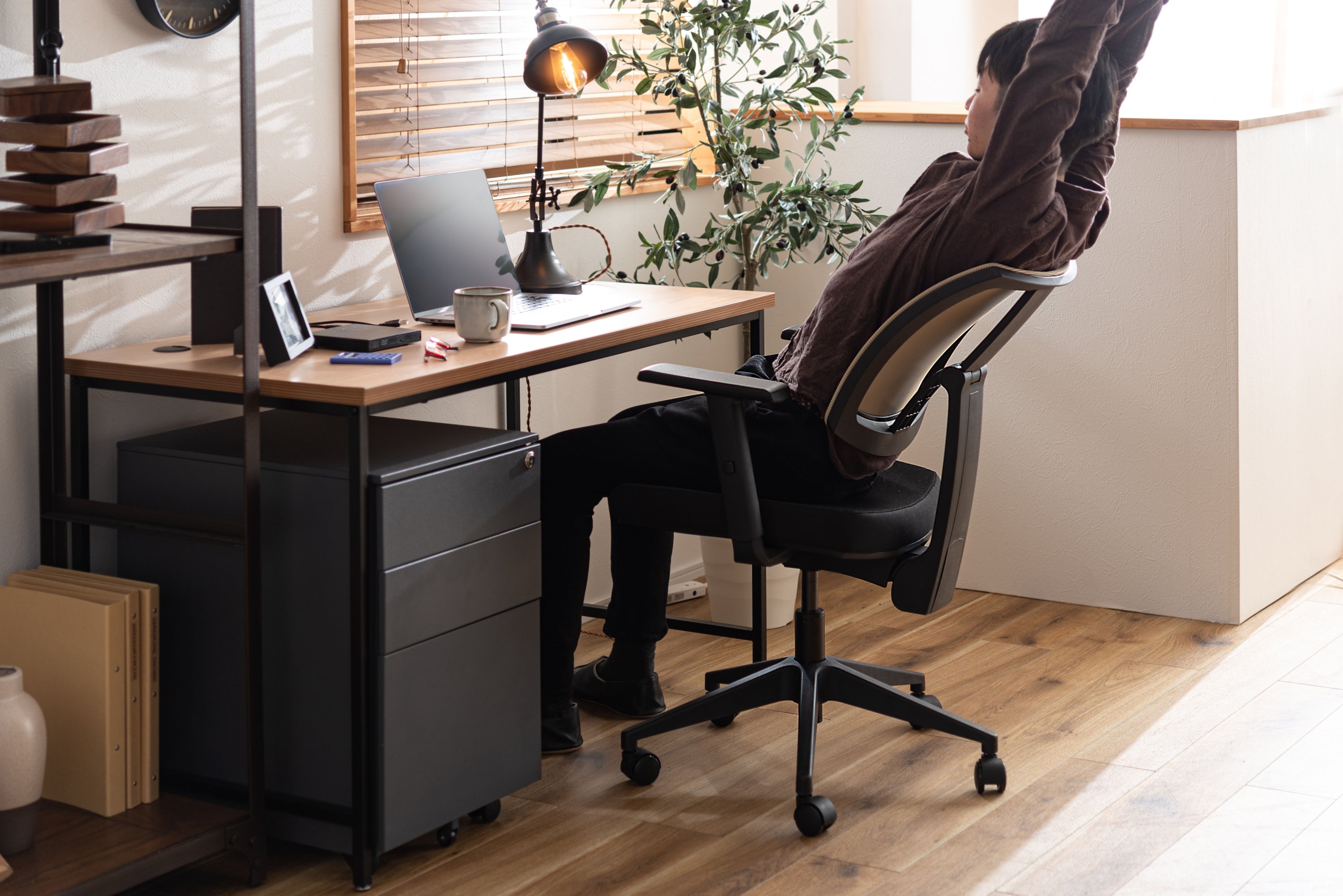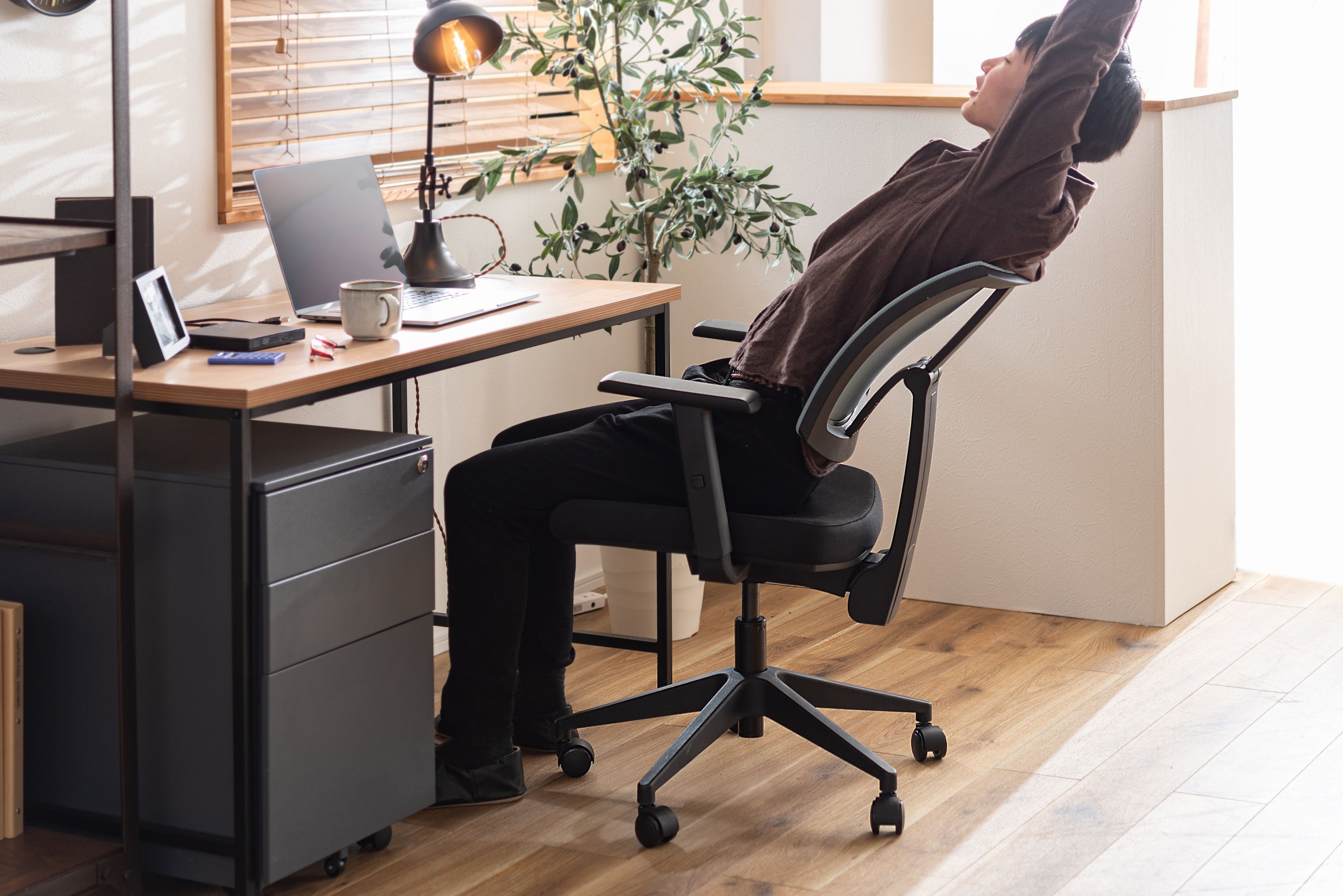 車のシートのようにリクライニングができる、座る人に合わせて背もたれや肘掛の調節ができる多機能なオフィスチェア。姿勢を正したい時や、くつろぎたい時に簡単に背もたれの傾きを変えることができます。肘の高さも変更できるので、お好みのスタイルに調整が可能です。洗練されたデザインでオフィスになじみます。