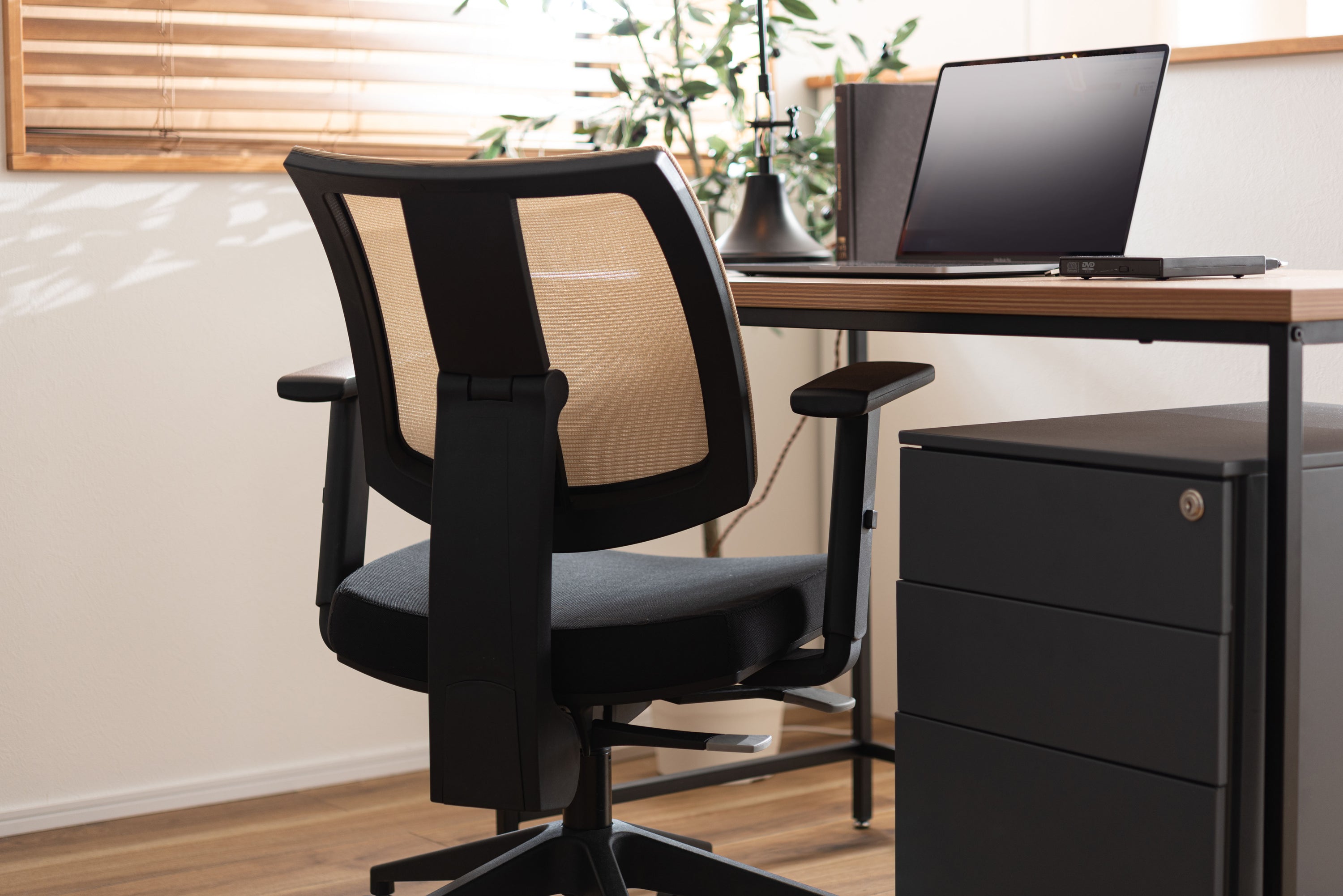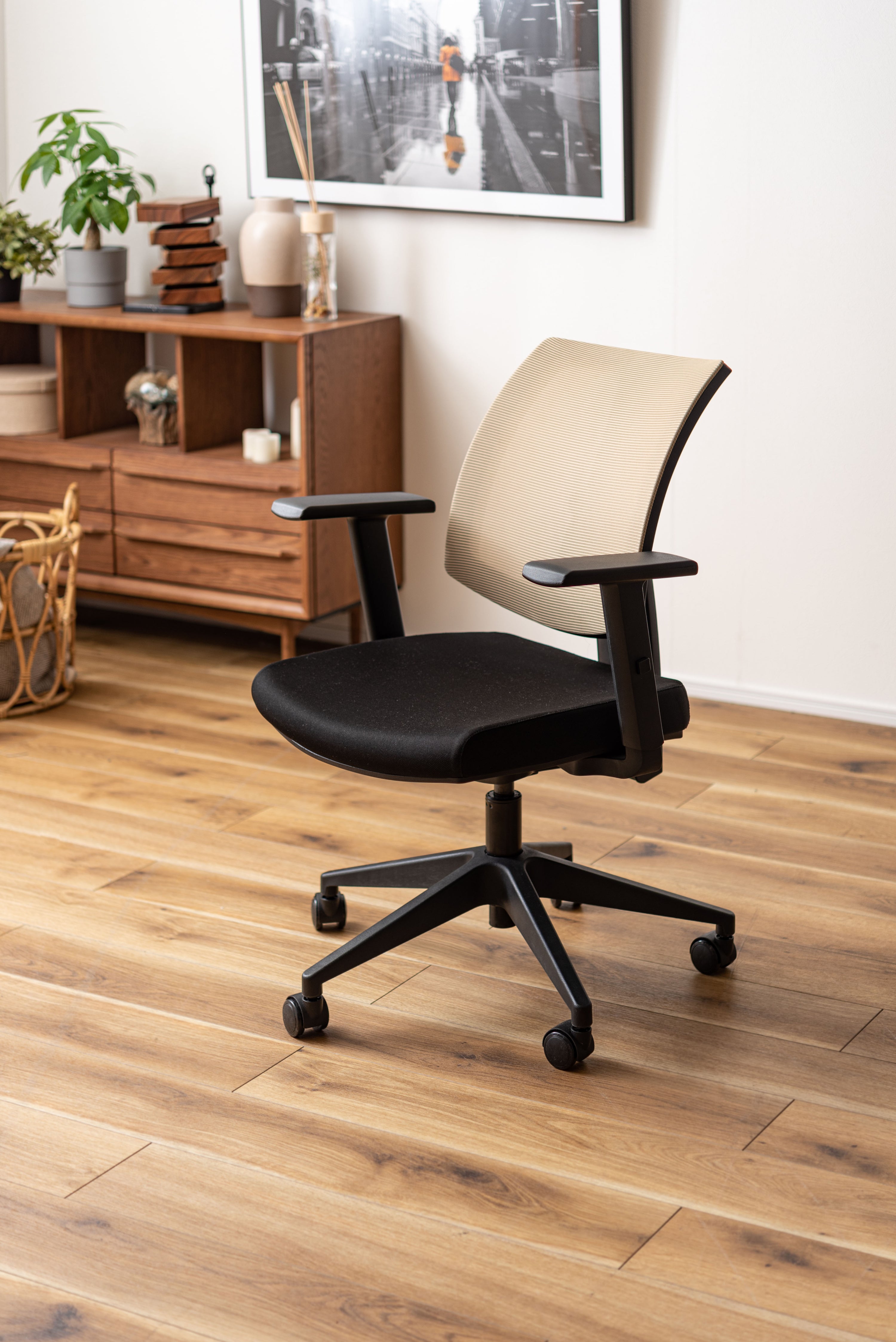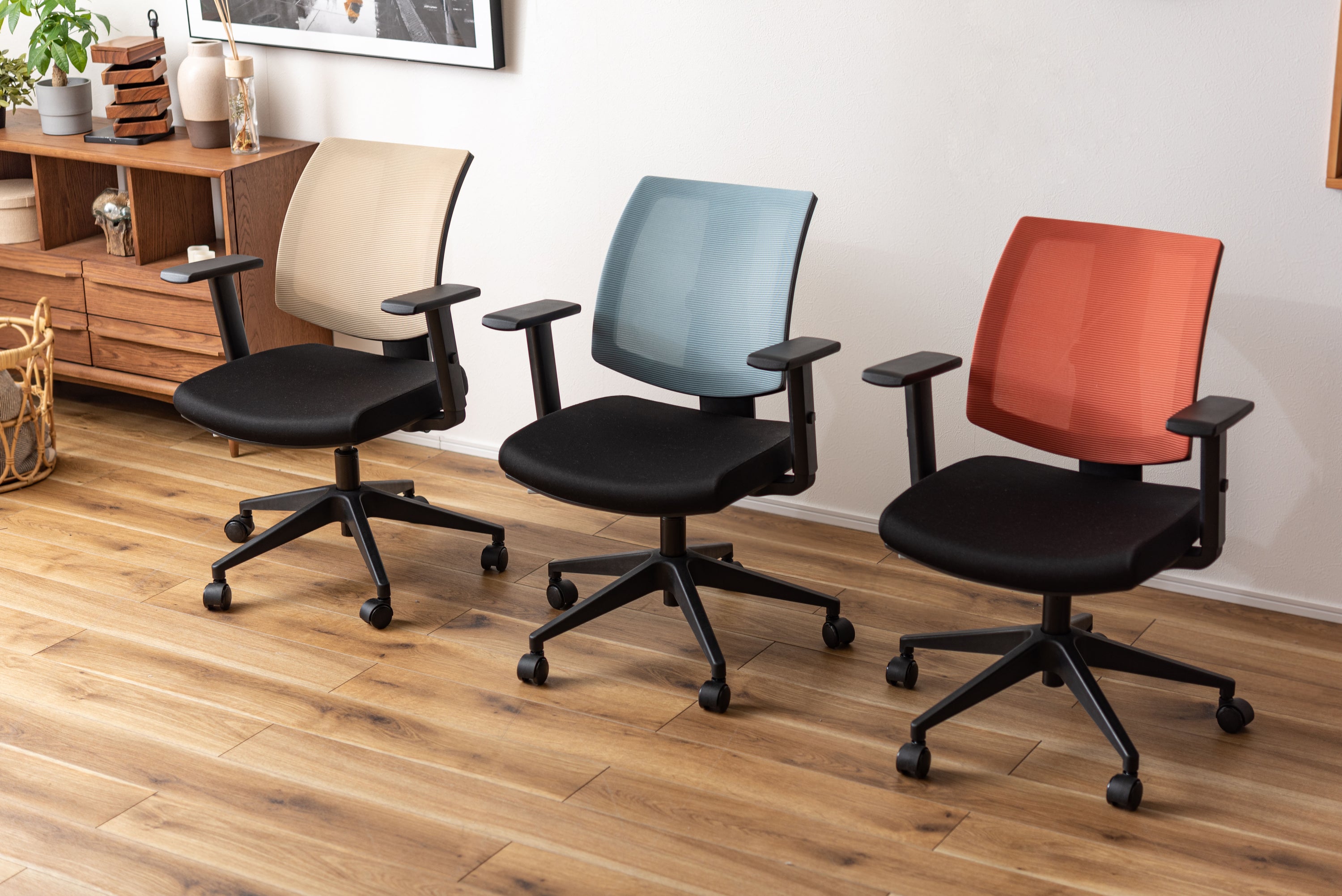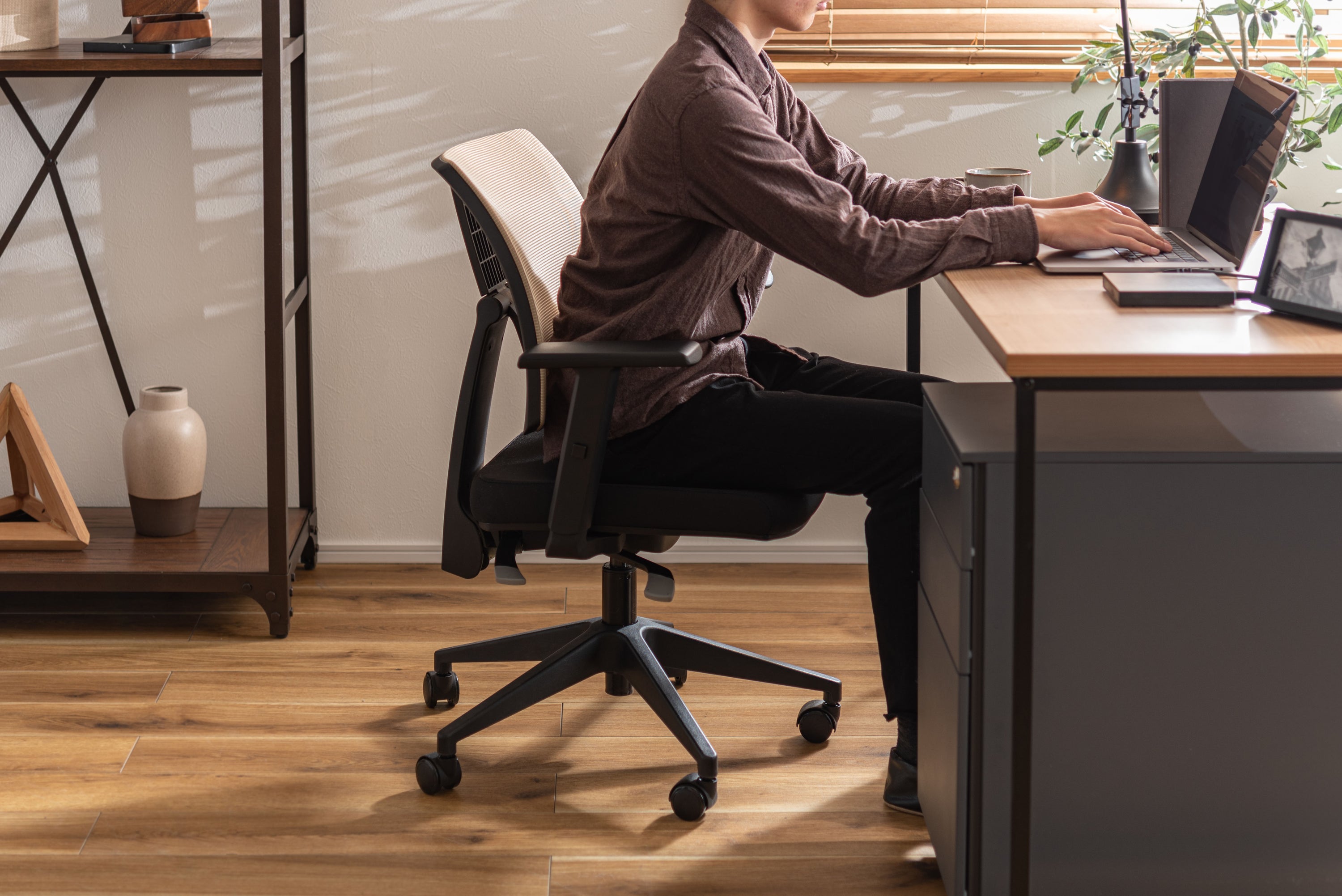 車のシートのようにリクライニングができる、座る人に合わせて背もたれや肘掛の調節ができる多機能なオフィスチェア。姿勢を正したい時や、くつろぎたい時に簡単に背もたれの傾きを変えることができます。肘の高さも変更できるので、お好みのスタイルに調整が可能です。洗練されたデザインでオフィスになじみます。