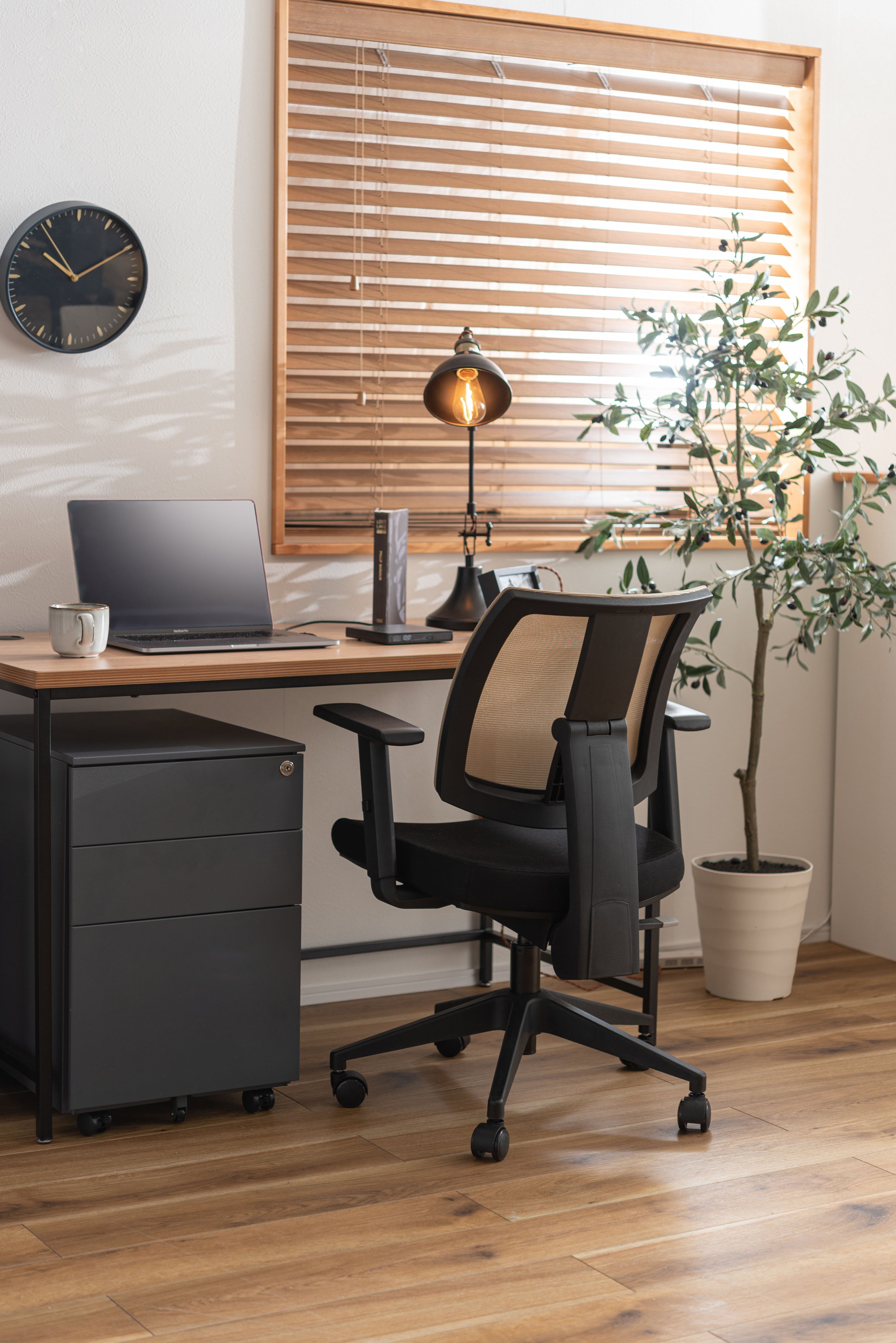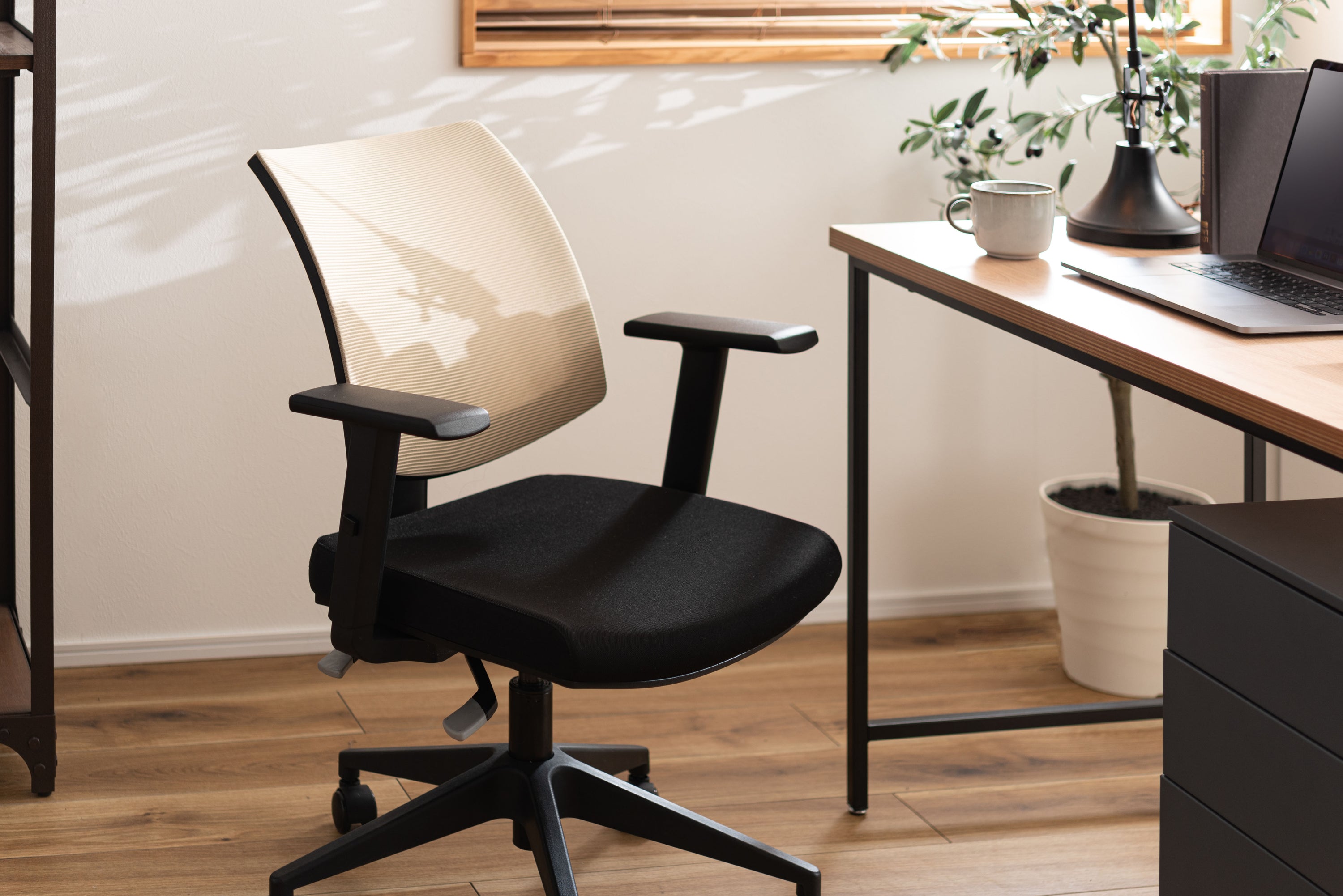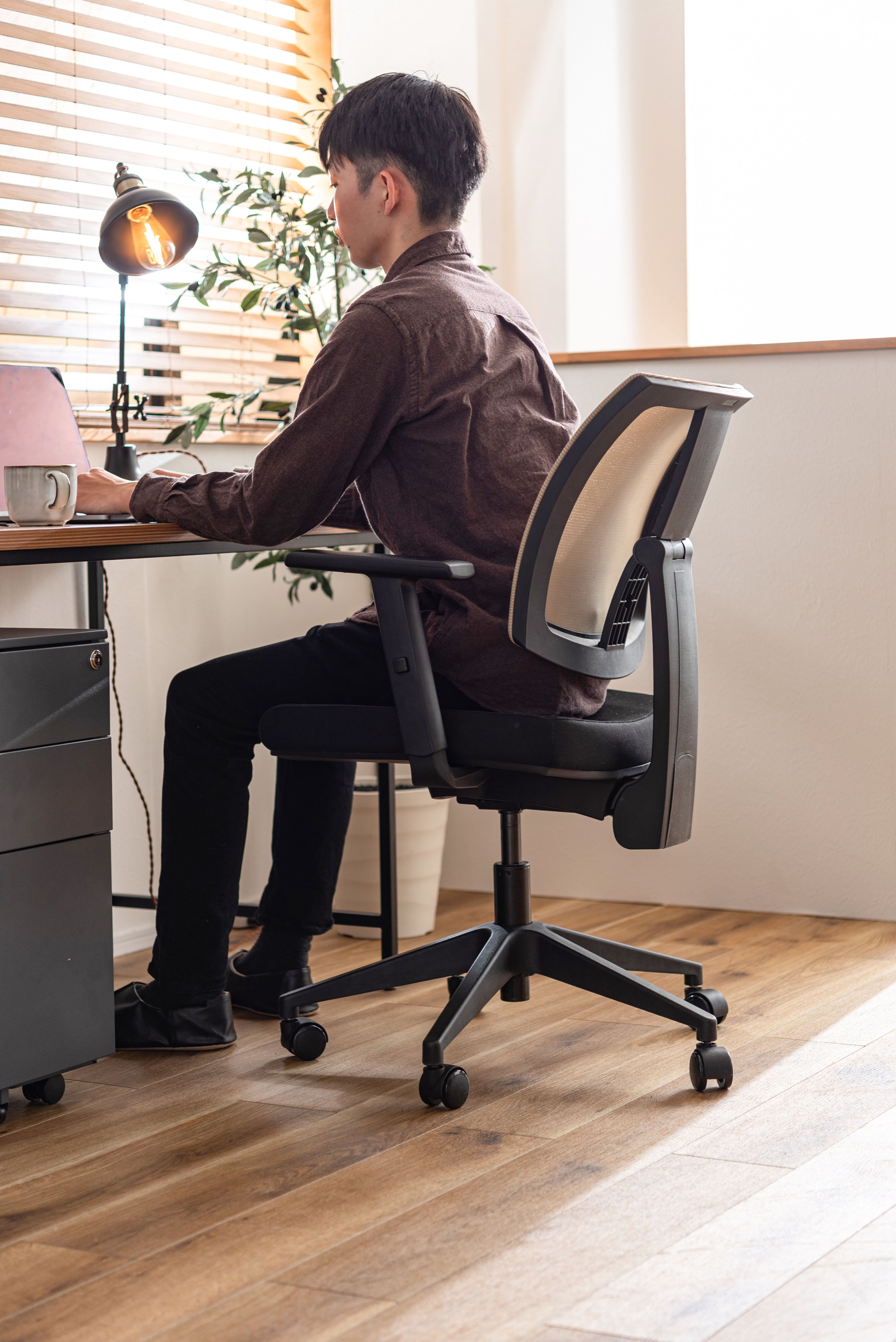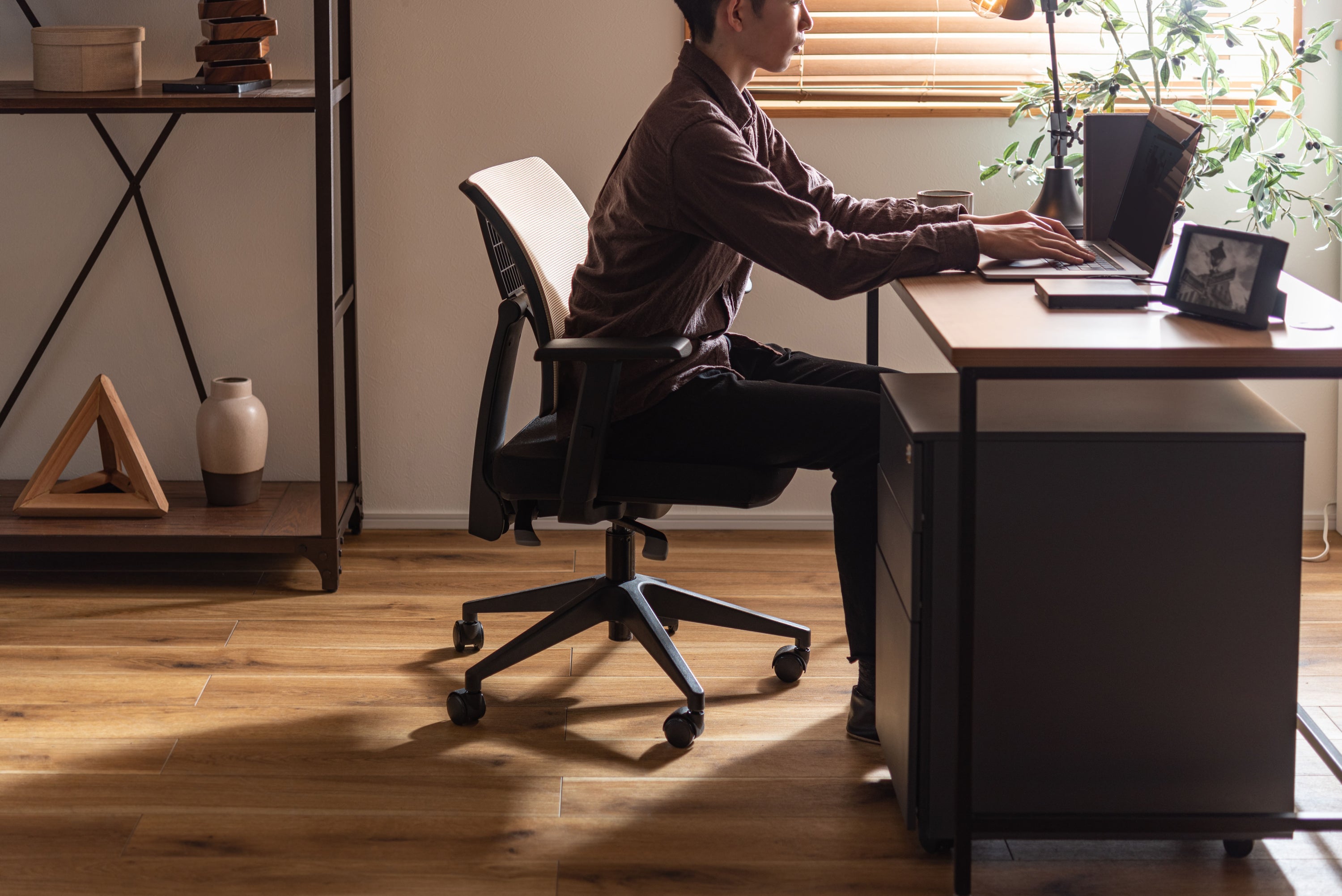 車のシートのようにリクライニングができる、座る人に合わせて背もたれや肘掛の調節ができる多機能なオフィスチェア。姿勢を正したい時や、くつろぎたい時に簡単に背もたれの傾きを変えることができます。肘の高さも変更できるので、お好みのスタイルに調整が可能です。洗練されたデザインでオフィスになじみます。