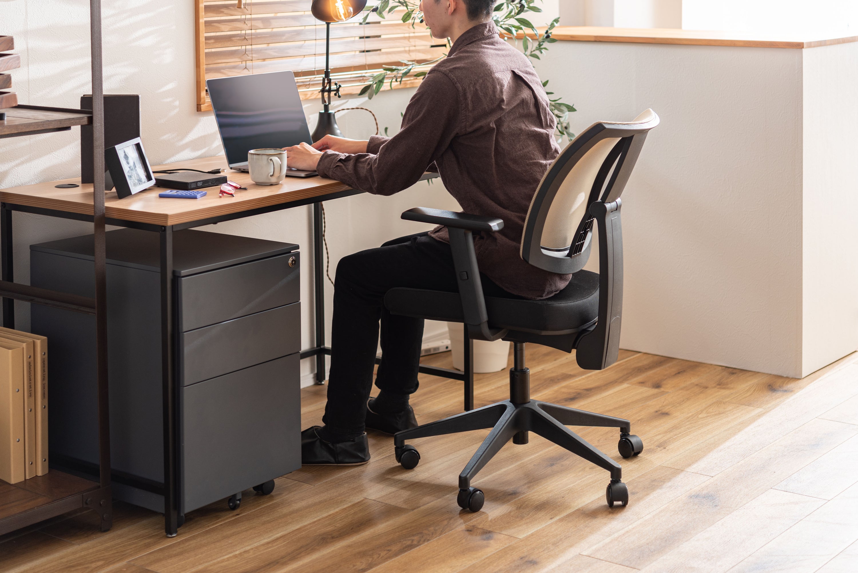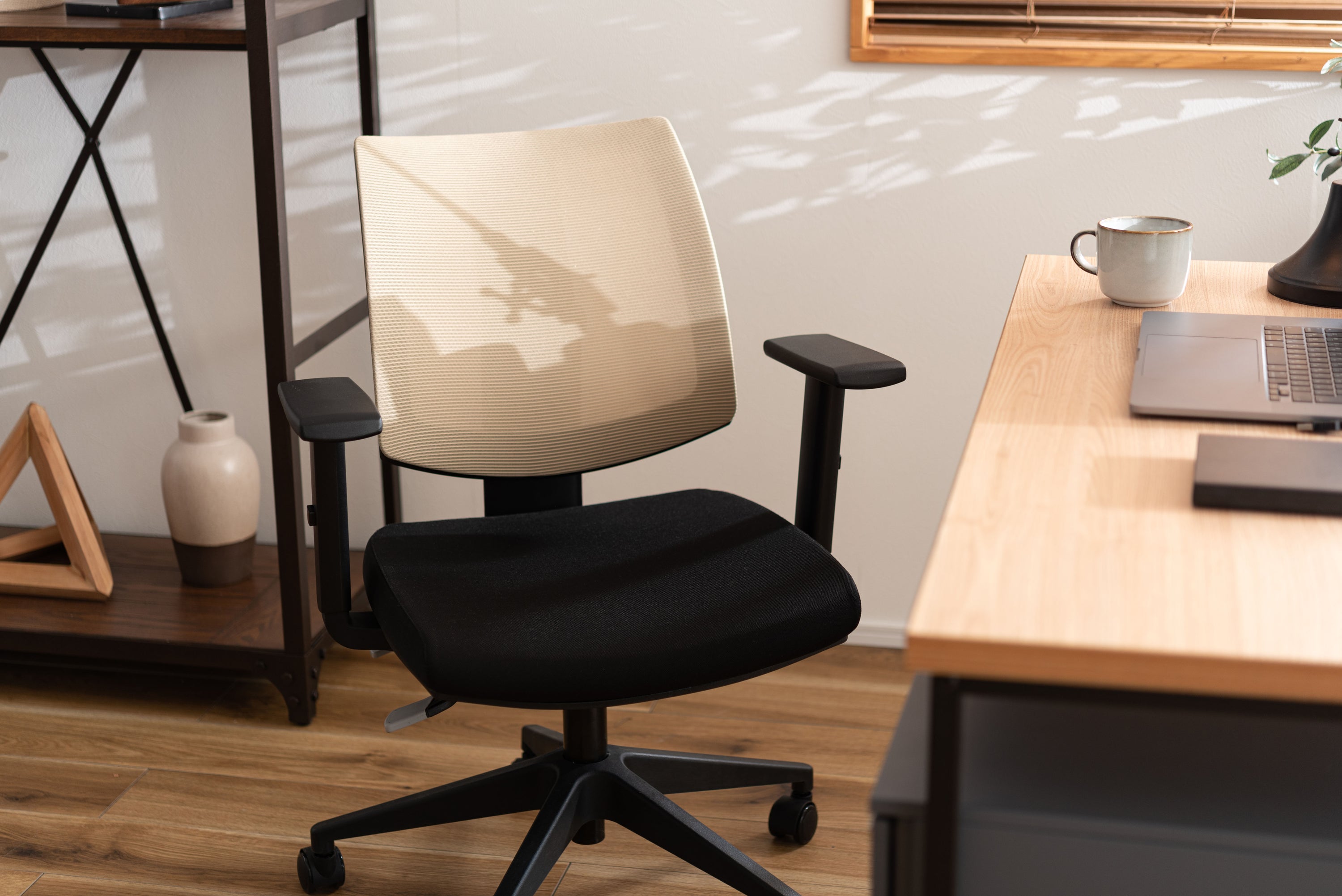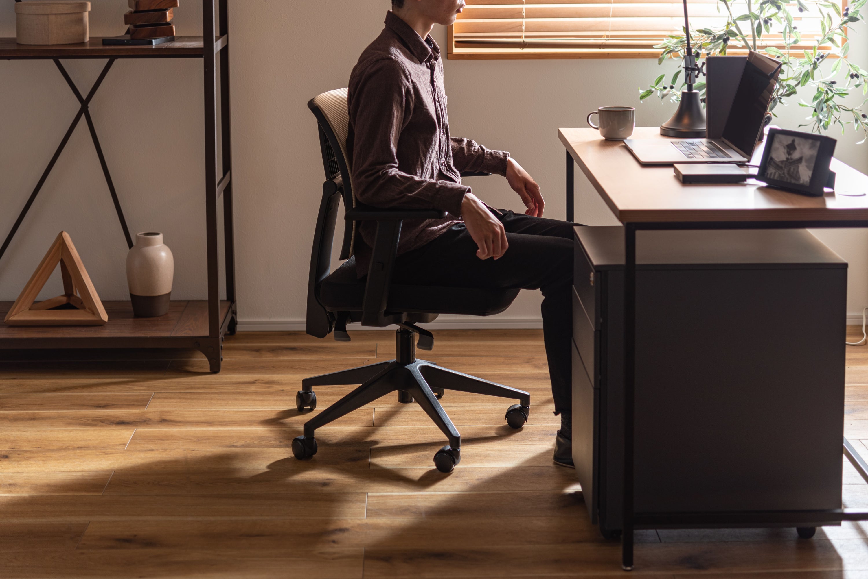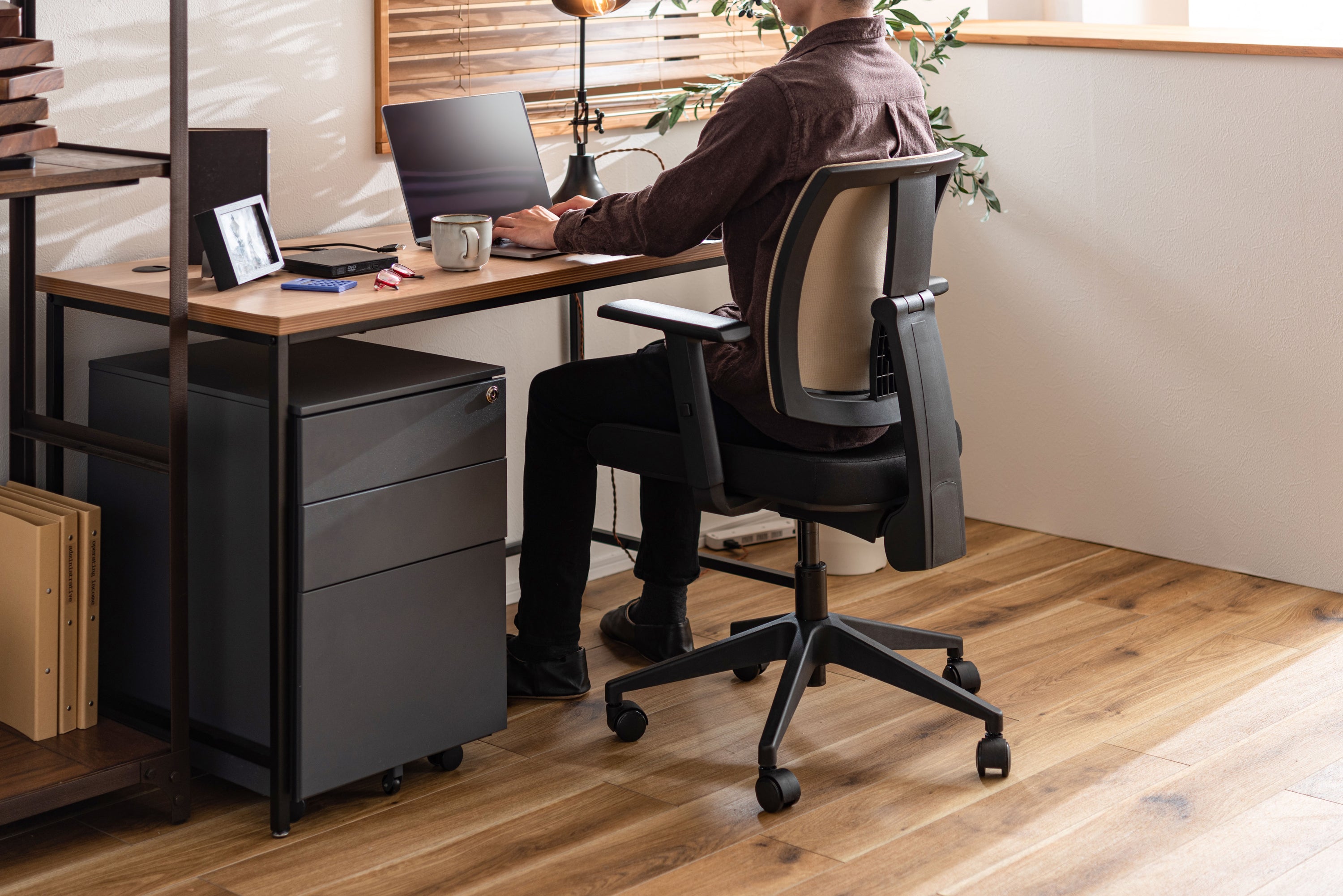 車のシートのようにリクライニングができる、座る人に合わせて背もたれや肘掛の調節ができる多機能なオフィスチェア。姿勢を正したい時や、くつろぎたい時に簡単に背もたれの傾きを変えることができます。肘の高さも変更できるので、お好みのスタイルに調整が可能です。洗練されたデザインでオフィスになじみます。