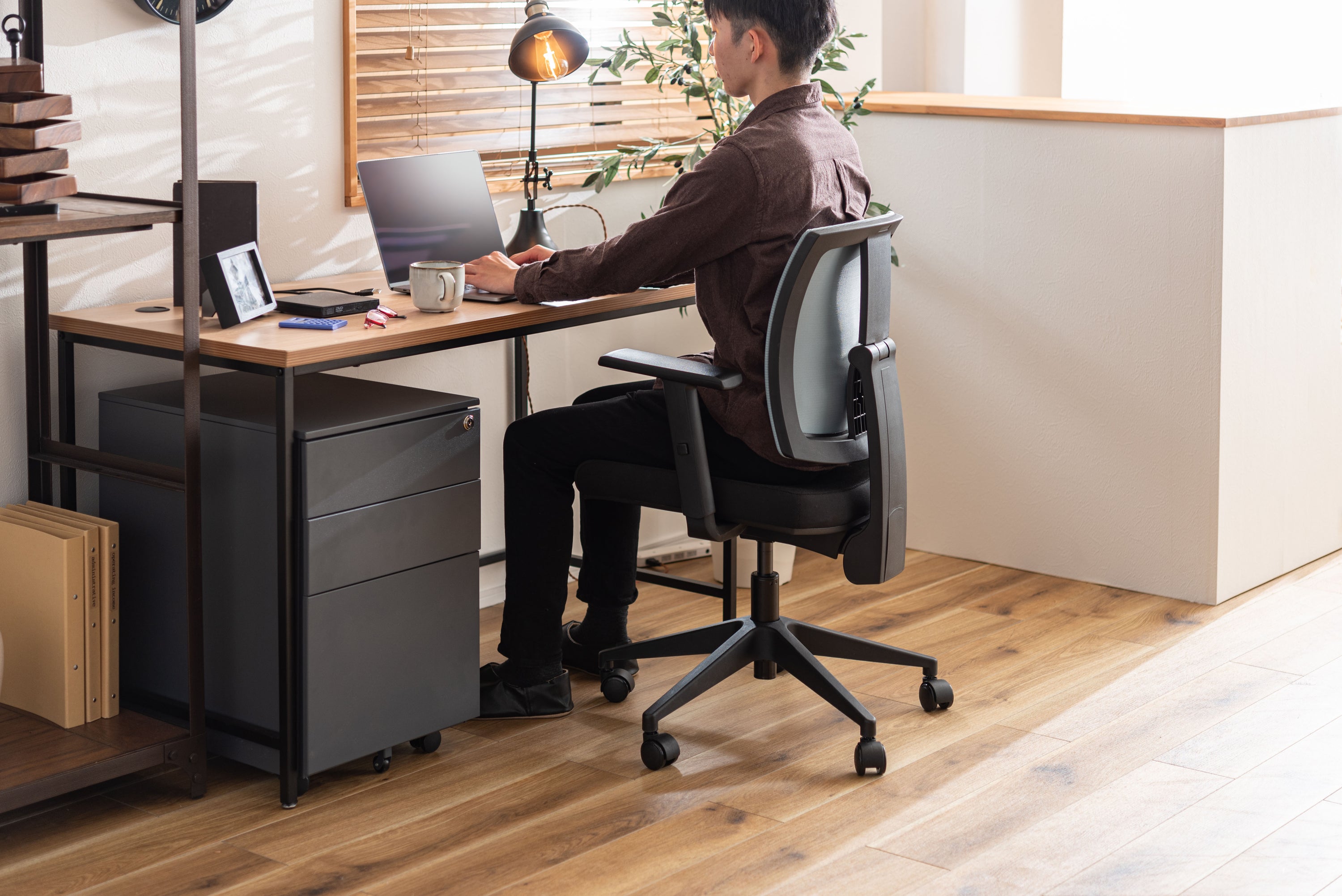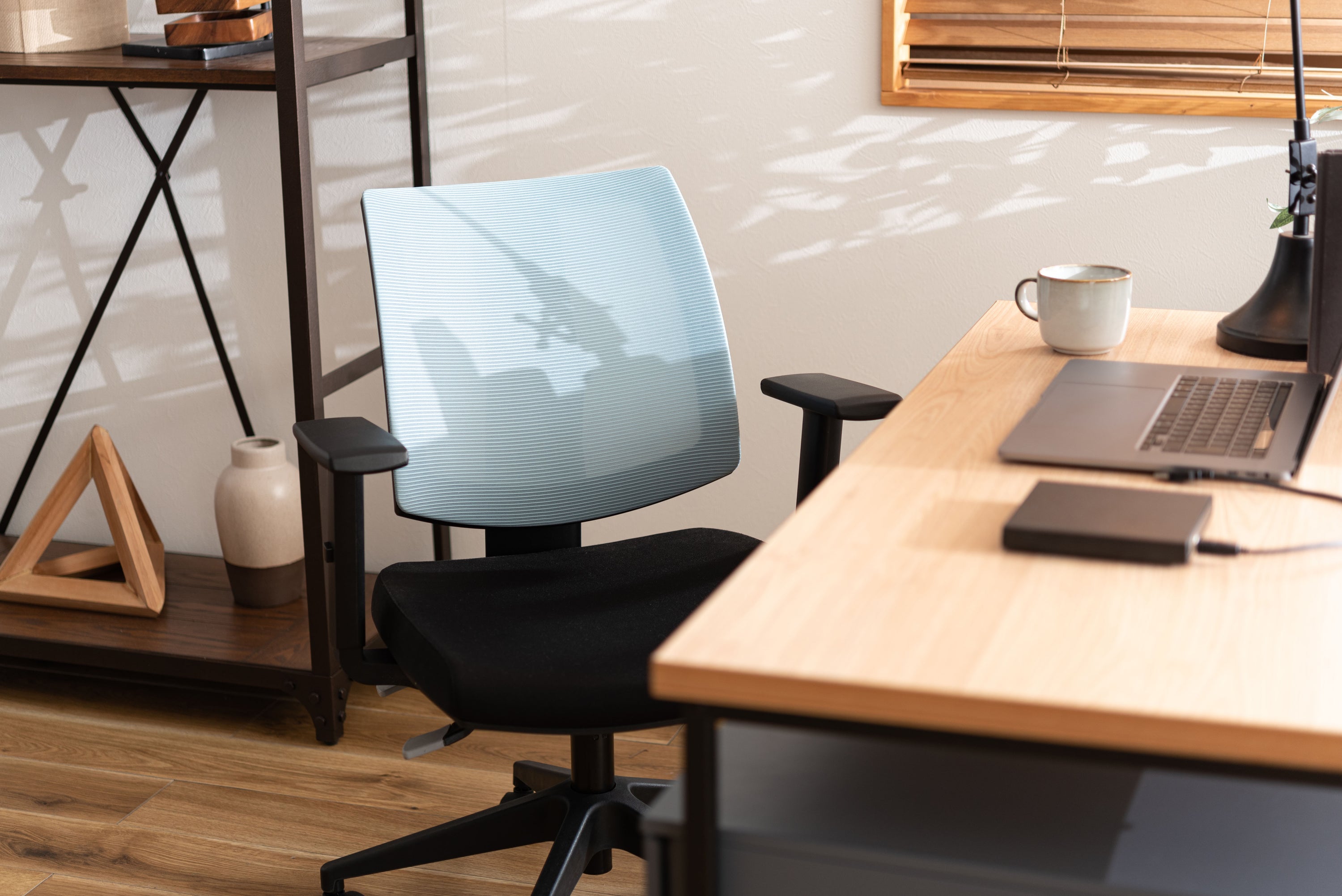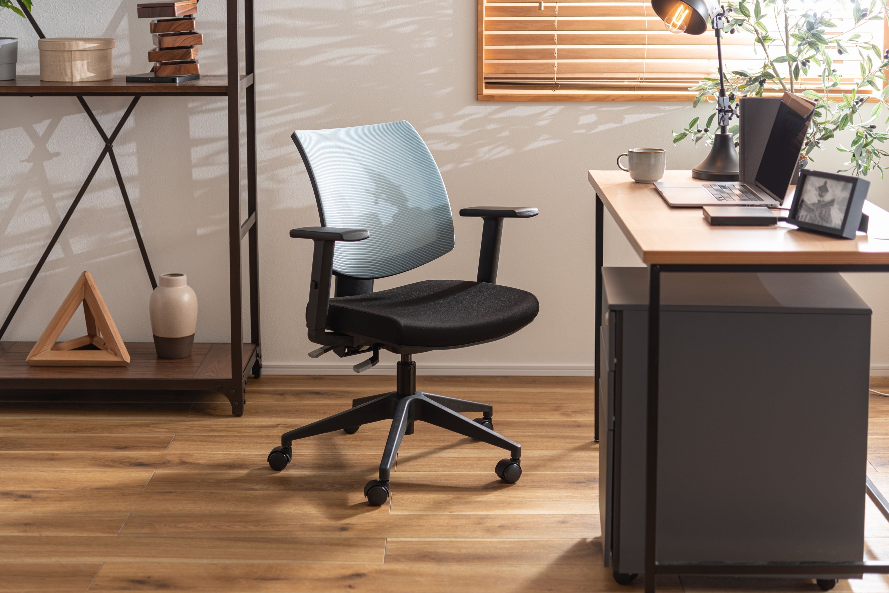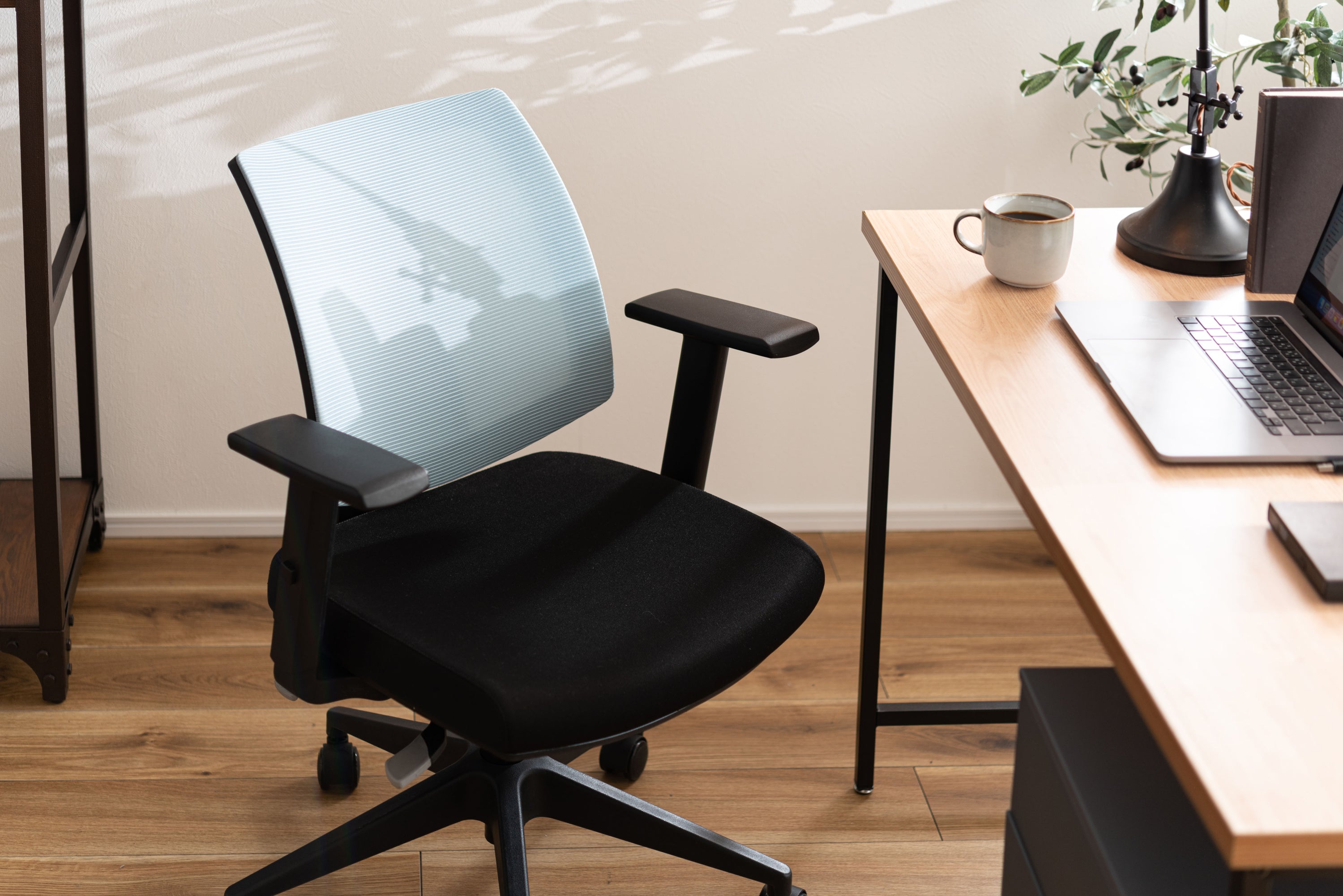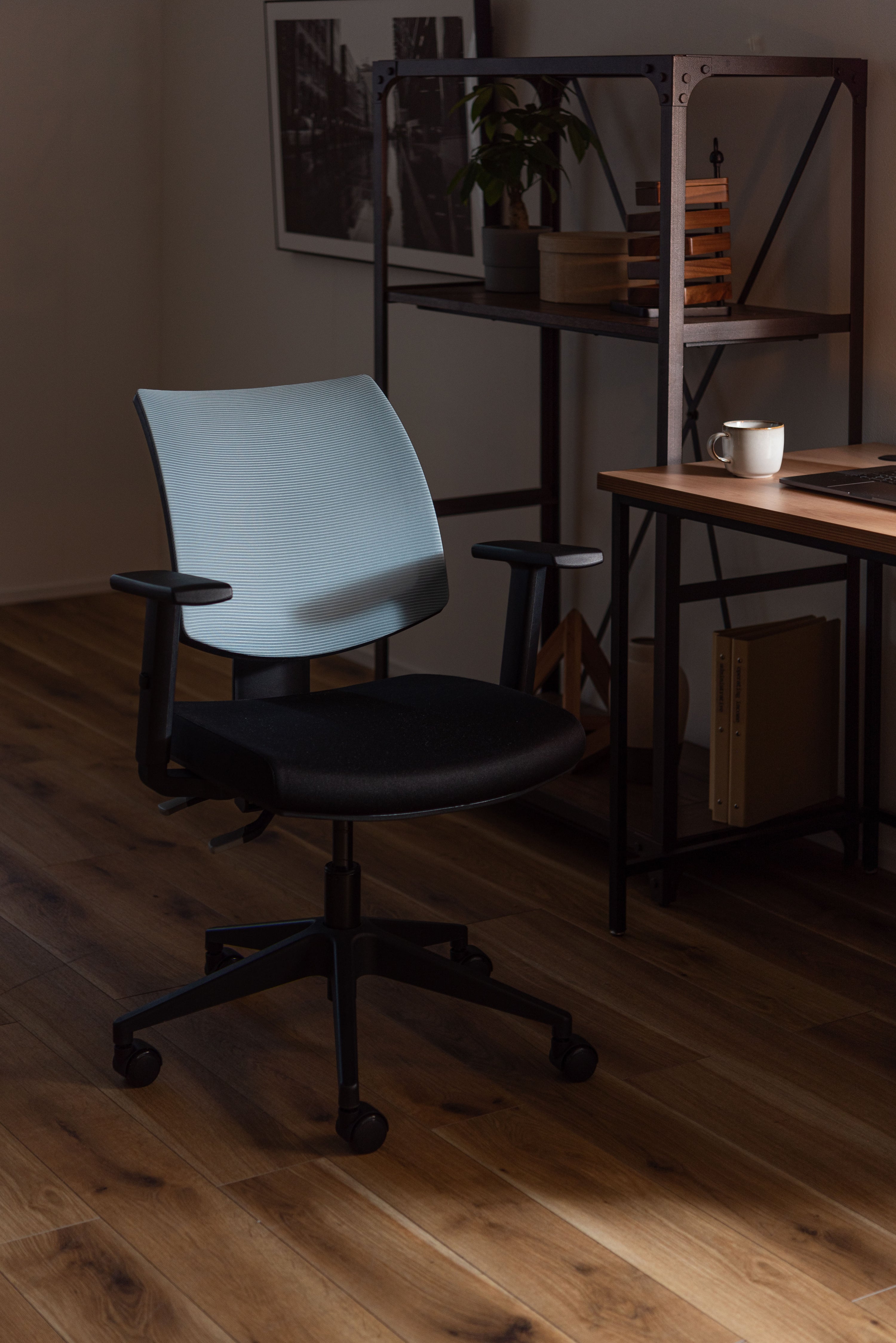 車のシートのようにリクライニングができる、座る人に合わせて背もたれや肘掛の調節ができる多機能なオフィスチェア。姿勢を正したい時や、くつろぎたい時に簡単に背もたれの傾きを変えることができます。肘の高さも変更できるので、お好みのスタイルに調整が可能です。洗練されたデザインでオフィスになじみます。