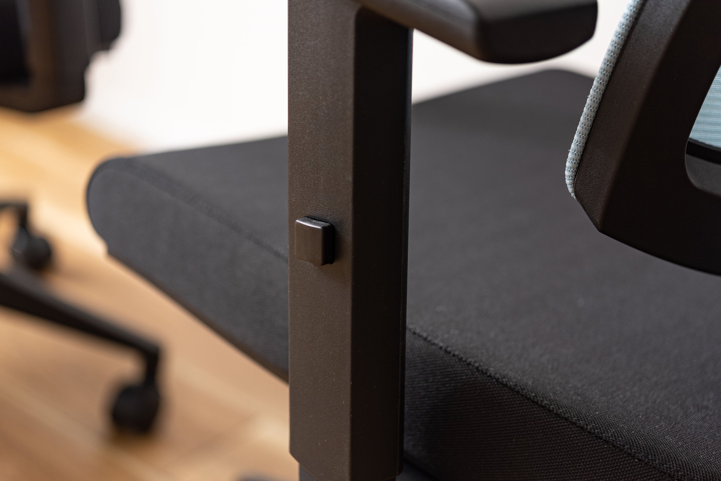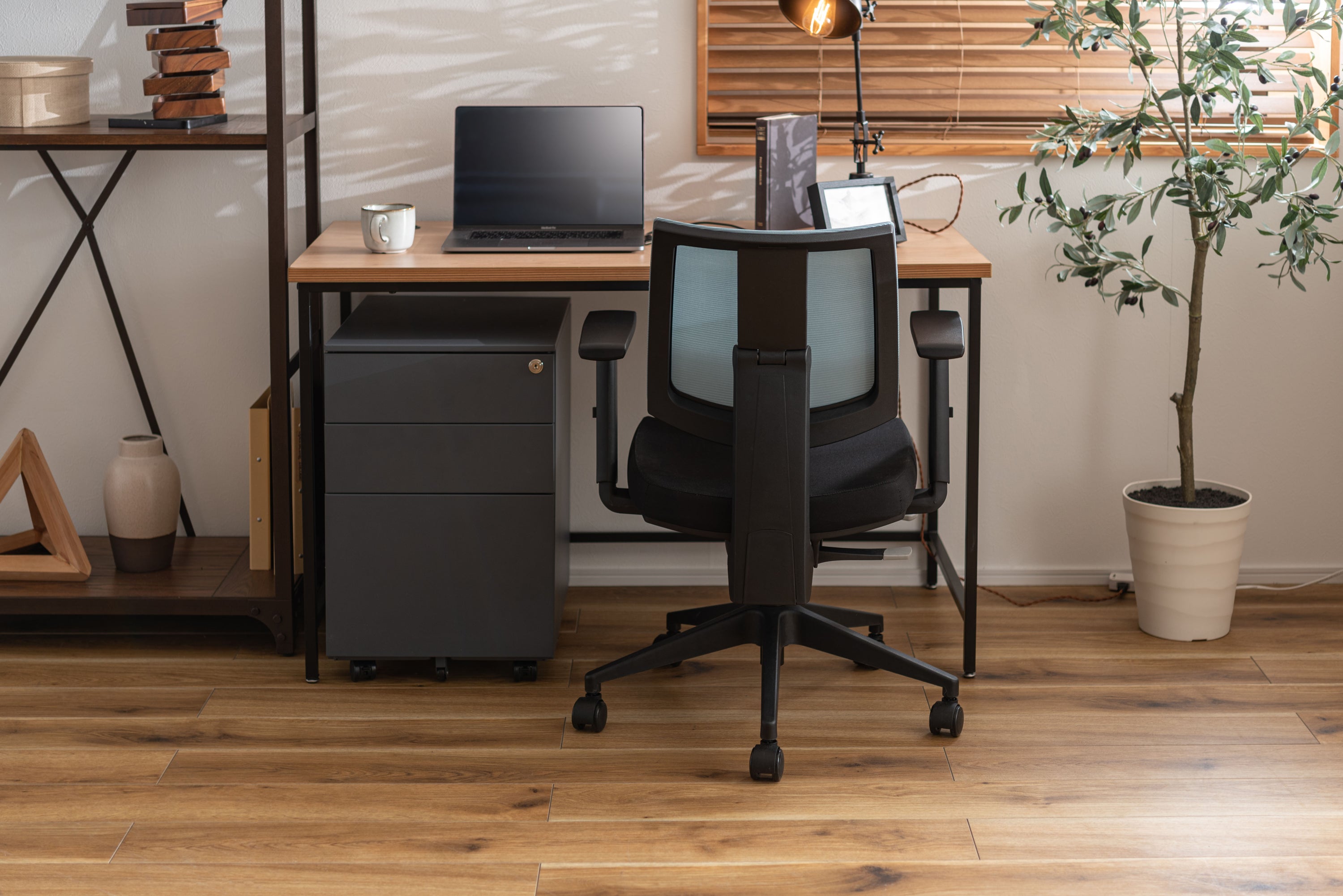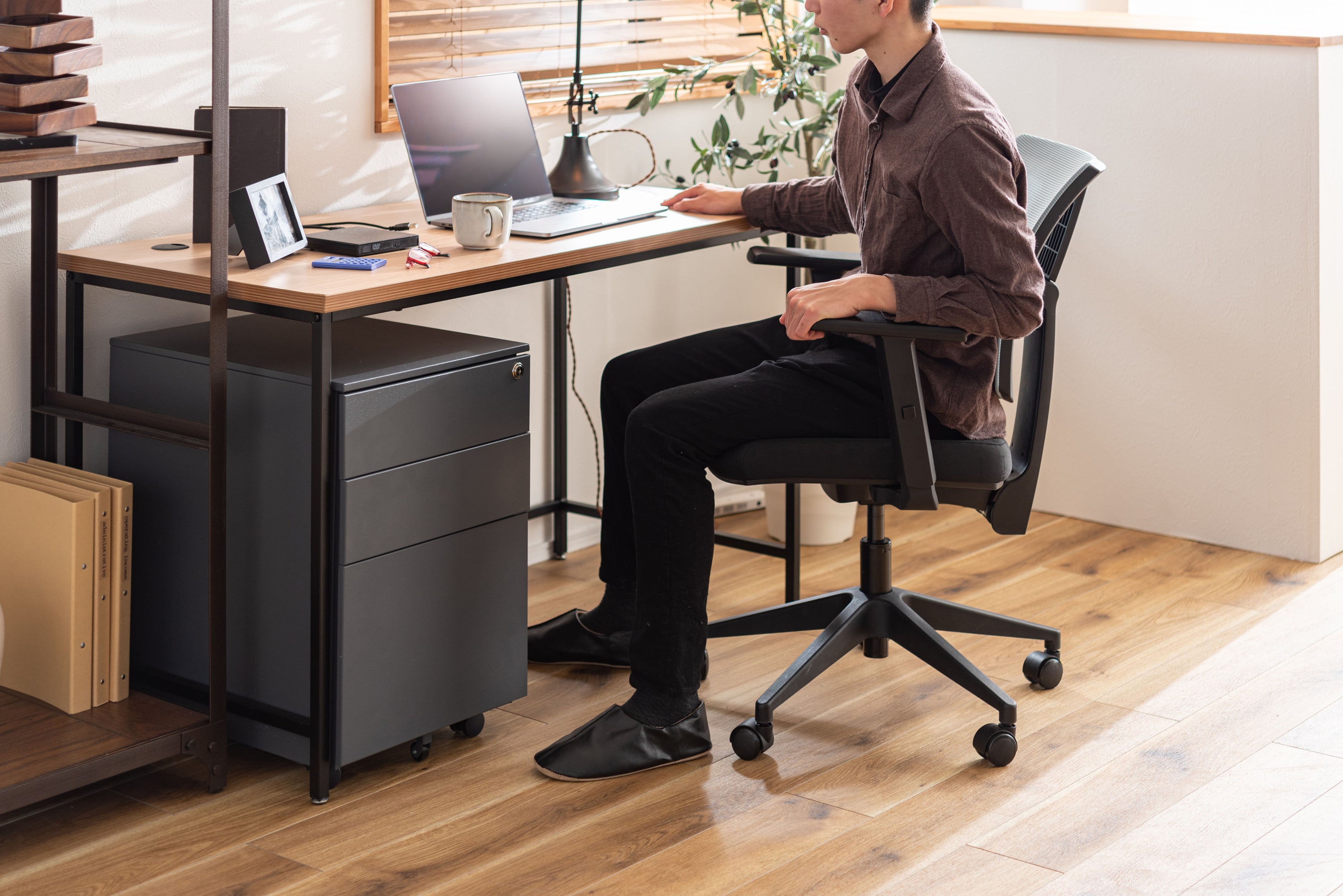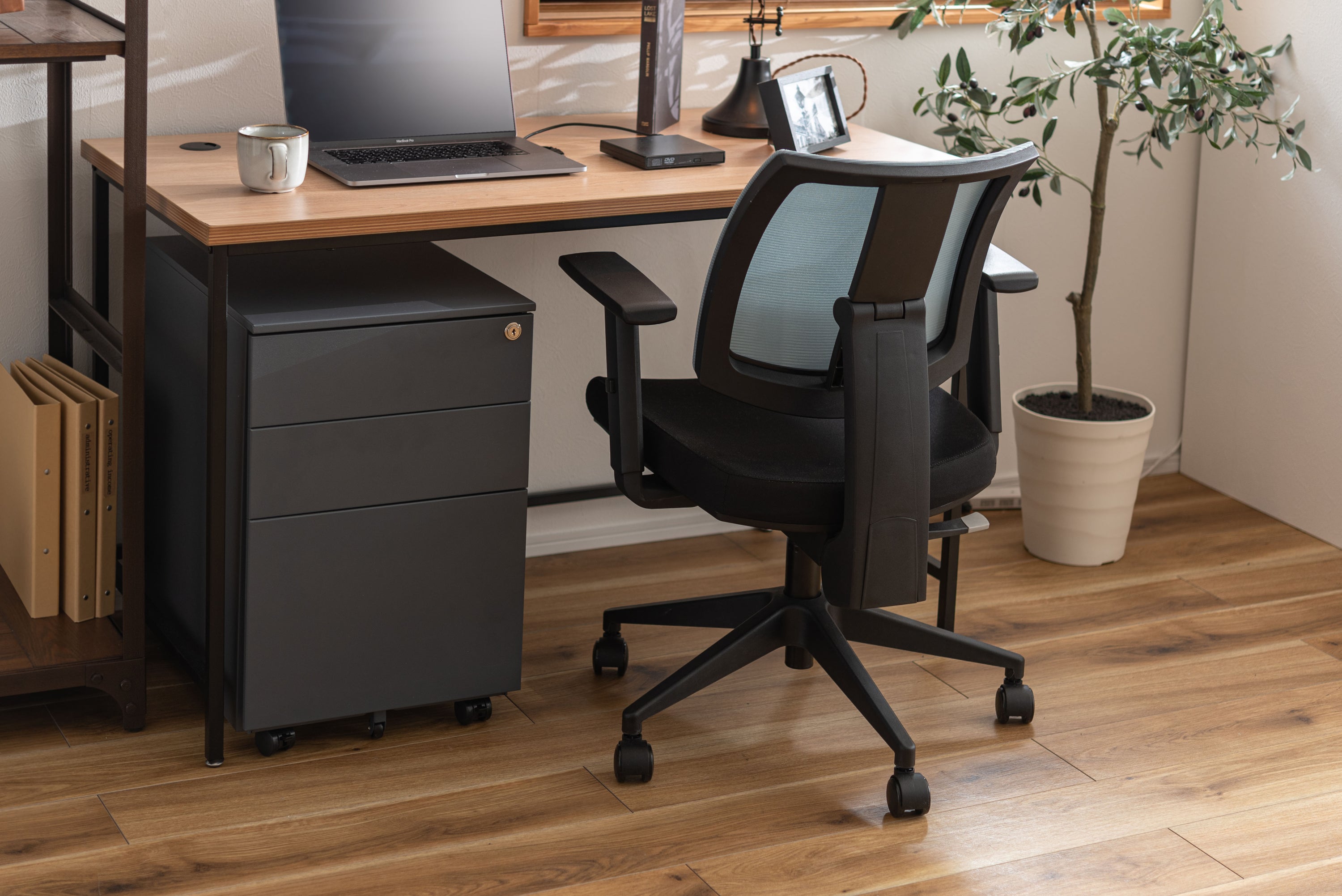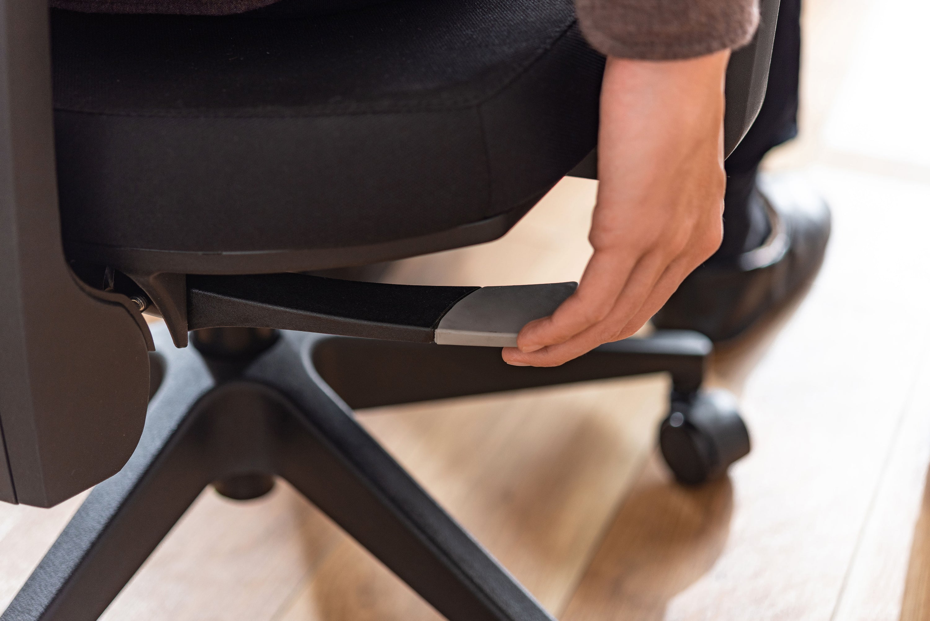 車のシートのようにリクライニングができる、座る人に合わせて背もたれや肘掛の調節ができる多機能なオフィスチェア。姿勢を正したい時や、くつろぎたい時に簡単に背もたれの傾きを変えることができます。肘の高さも変更できるので、お好みのスタイルに調整が可能です。洗練されたデザインでオフィスになじみます。