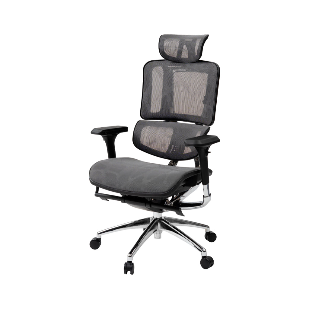 様々なワークスタイルをしっかりサポート。ハイスペックで存在感のあるデザインの高級オフィスチェア。様々な調整機能が備わっており快適な座り心地を体感できます。昇降式/座面は50~59cmまで高さ調整が可能。背もたれ・座面・ヘッドレストはメッシュ生地/通気性の良いメッシュ生地を採用。長時間のオフィスワークでも熱がこもらないのでいつでも快適。腰サポート(ランバーサポート)/腰部分に腰サポート(ランバーサポート)付き。長時間ワークに適しており、腰への負担軽減に。ここもメッシュ生地を使用しているので快適性も抜群。ヘッドレスト/前後への位置調整、首振り、高さ調整が可能。常に最適な位置にフィットさせられるヘッドレスト。