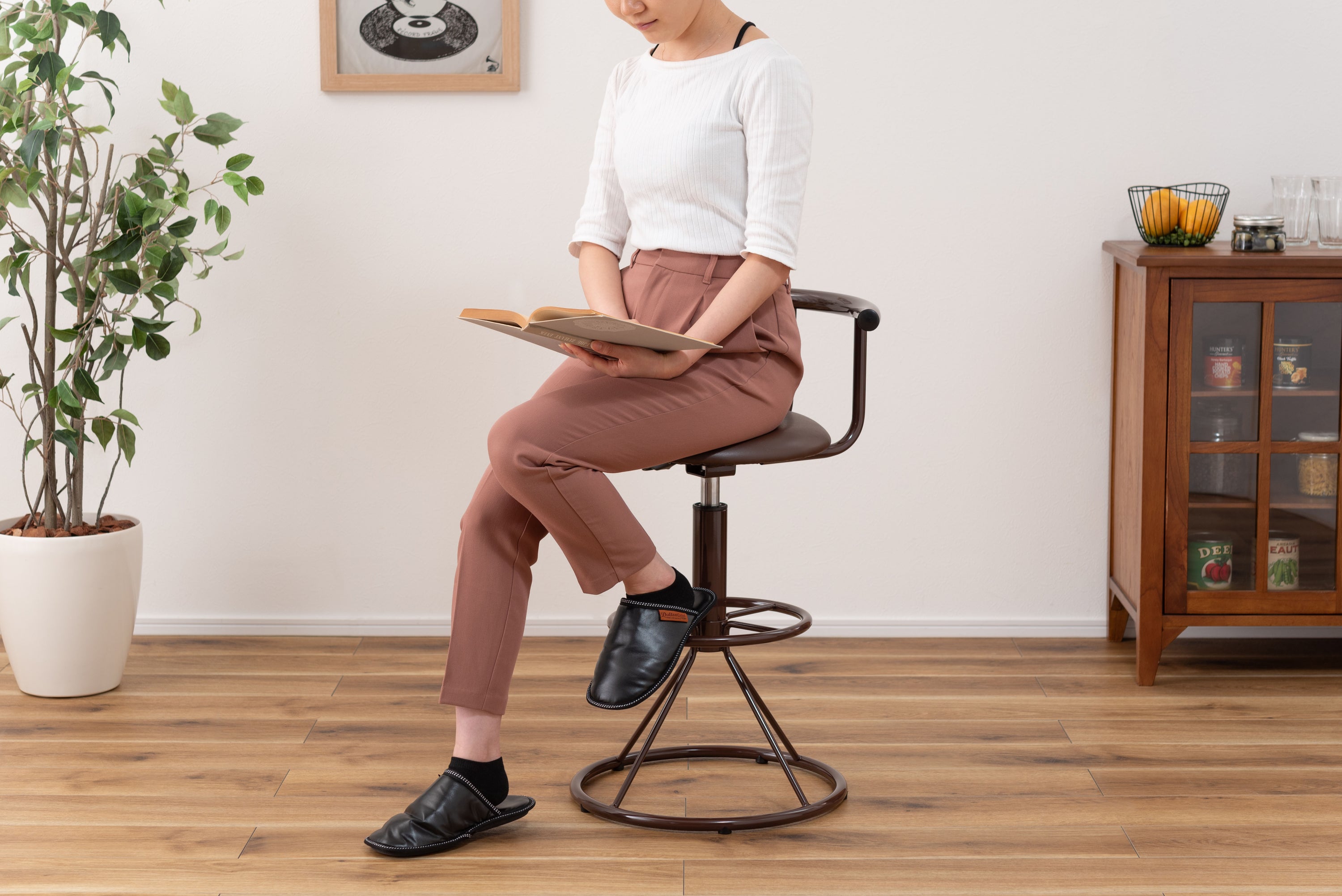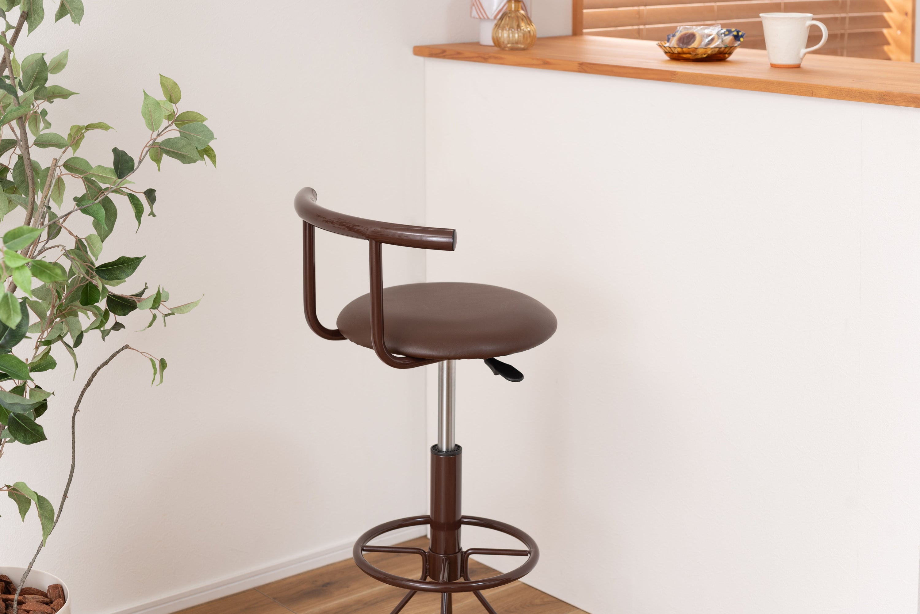 ROOMESSENCEのキリクキッチンハイチェアブラウンです。長時間でも快適な座り心地を備え、ダイニングやワークスペースに活躍します。ブランドの美意識を感じる佇まいで、日常づかいから来客時まで幅広く対応。品番:PC-105BR。暮らしに上質なアクセントを添える一品です。