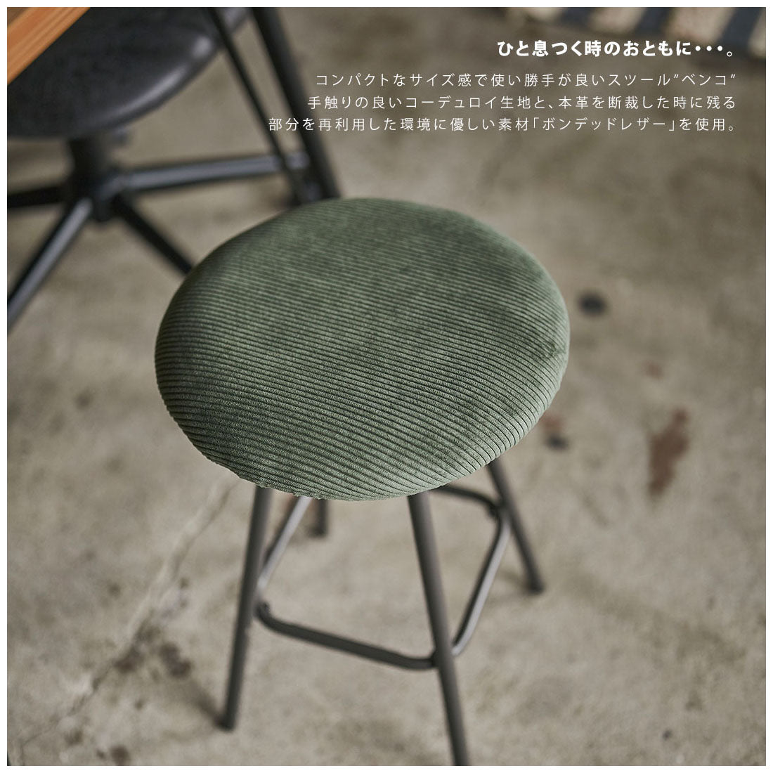 ひと息つく時のおともに… コンパクトなサイズ感で使い勝手が良いスツール「ベンコ」 手触りの良いコーデュロイ生地を使用