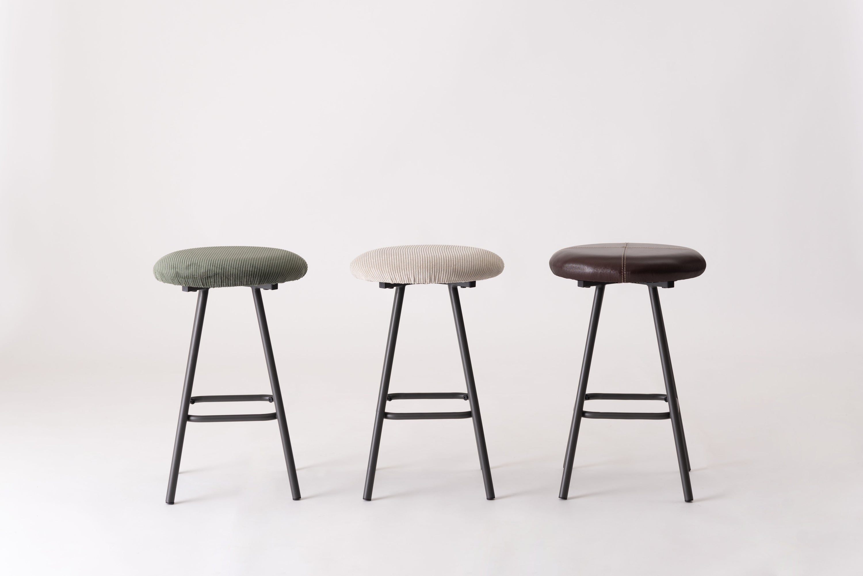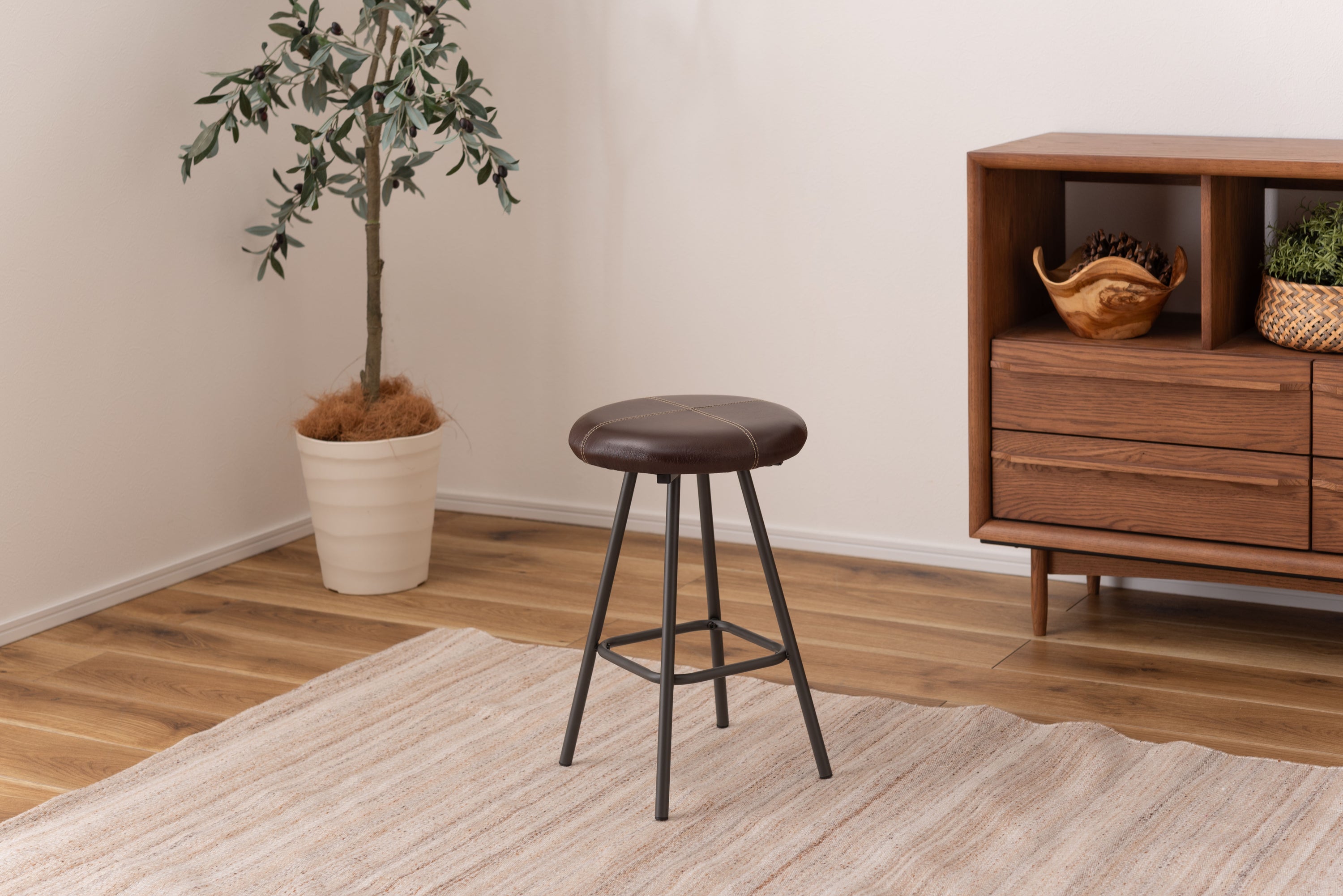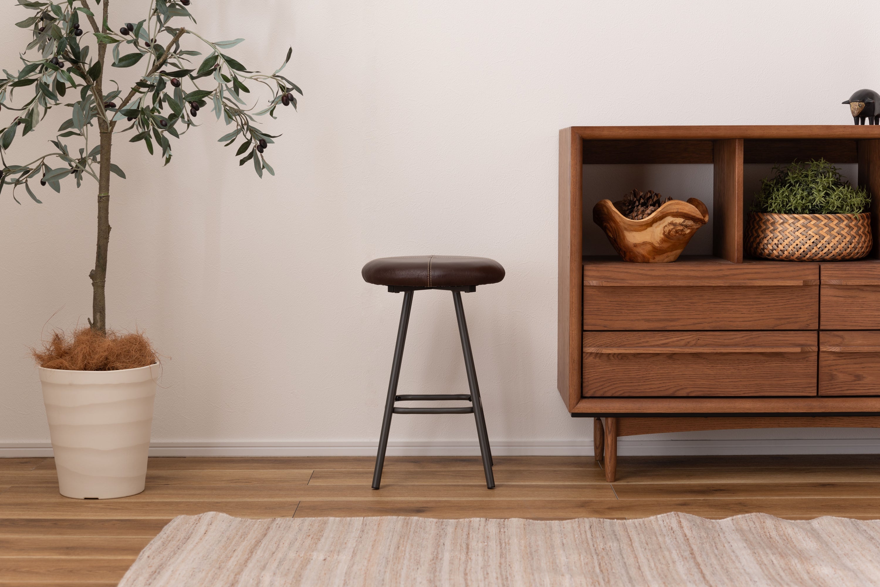 ひと息つく時のおともに… コンパクトなサイズ感で使い勝手が良いスツール「ベンコ」 本革を断裁した時に残る部分を再利用した環境に優しい素材「ボンデッドレザー」を使用
