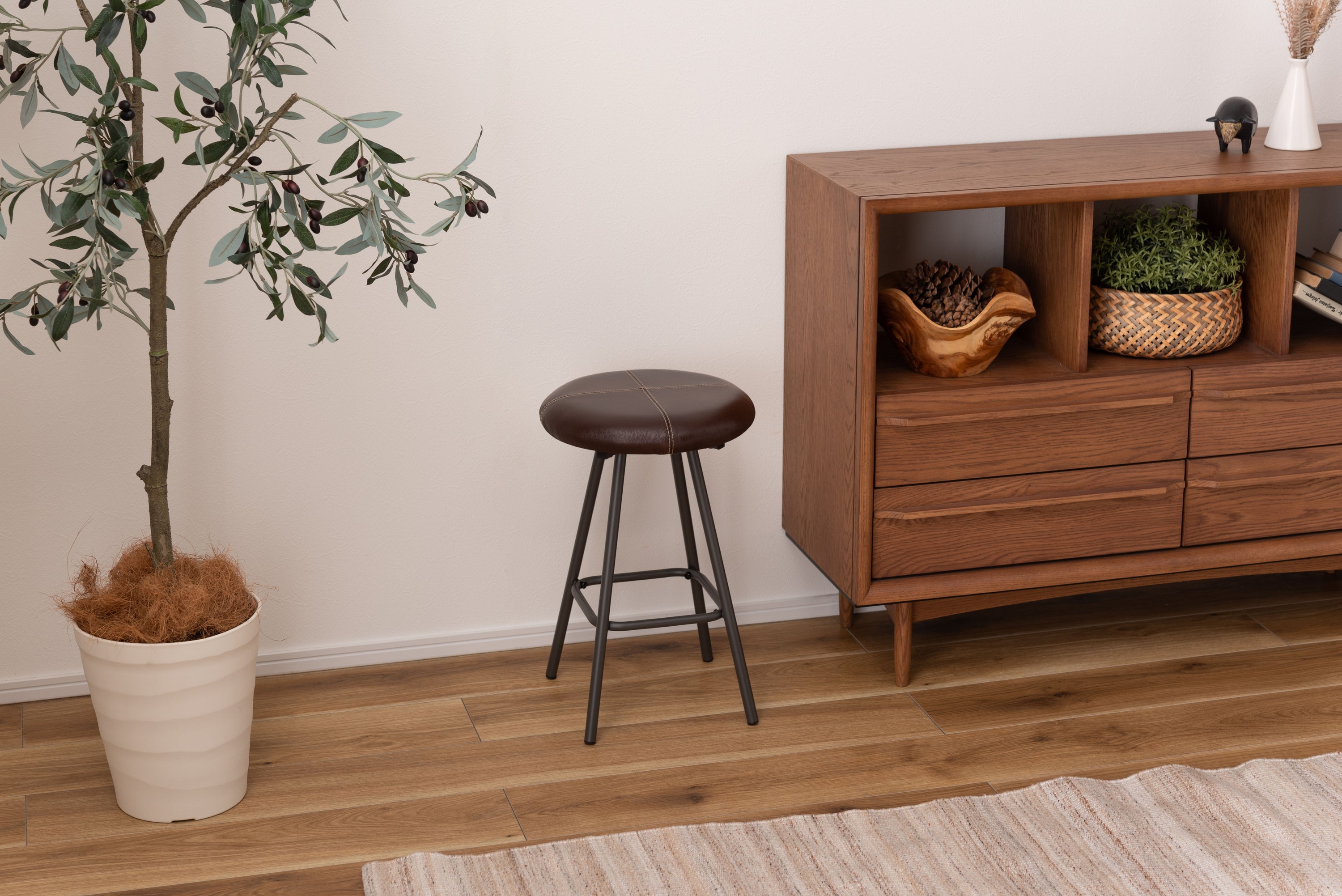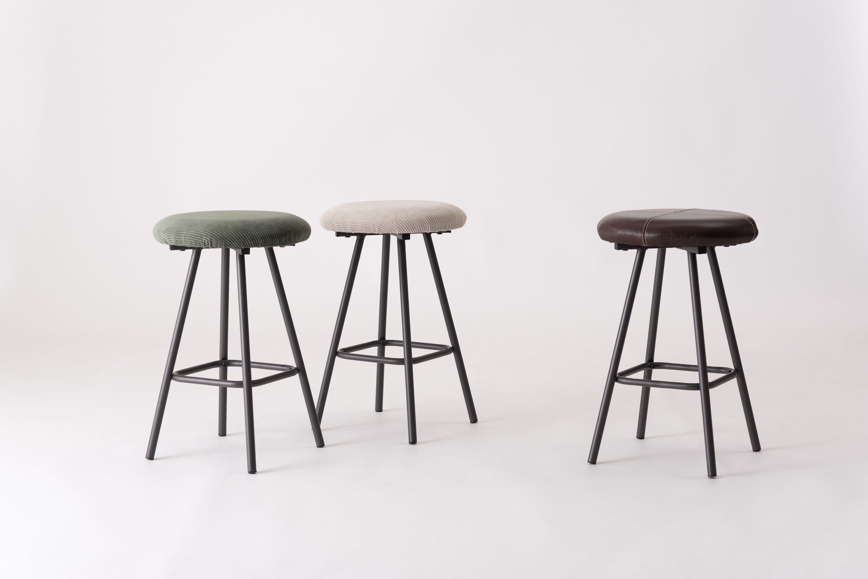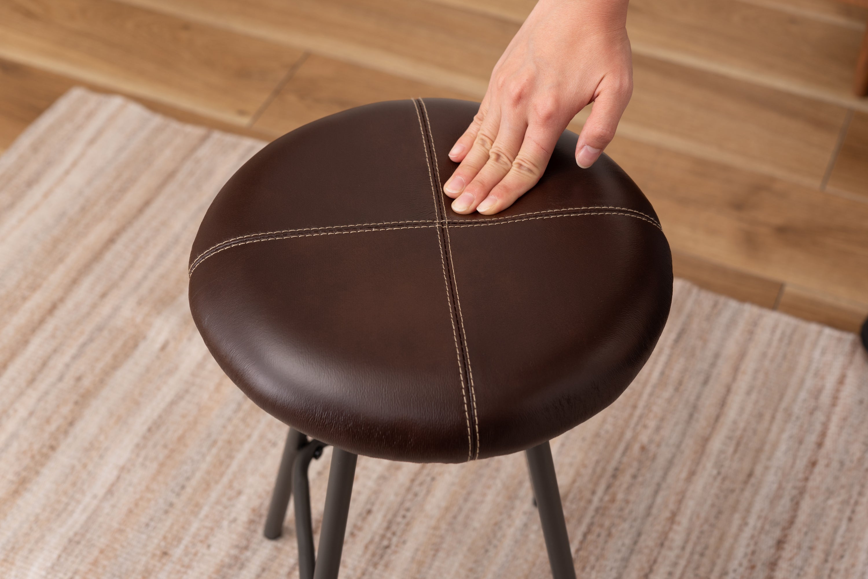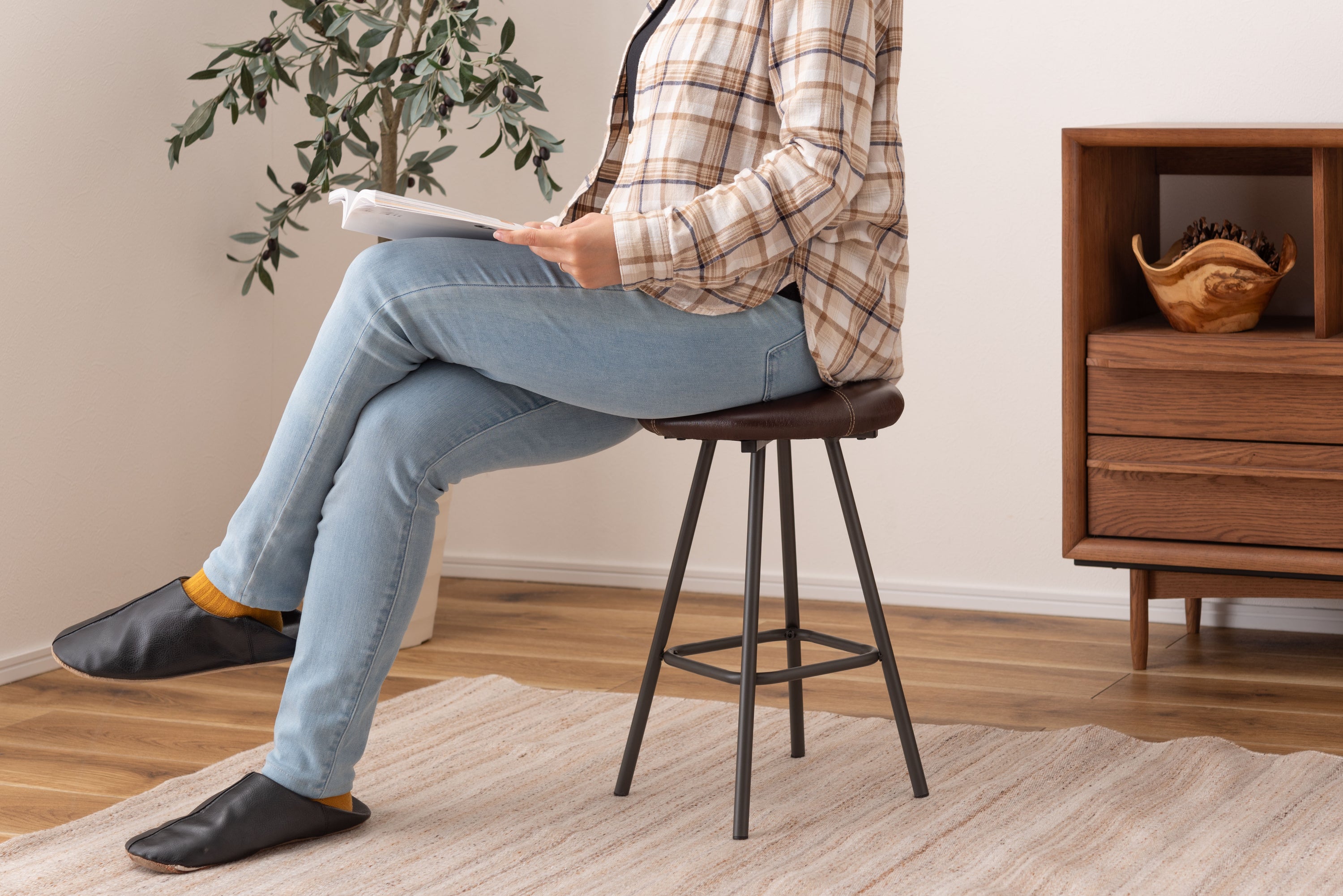 ひと息つく時のおともに… コンパクトなサイズ感で使い勝手が良いスツール「ベンコ」 本革を断裁した時に残る部分を再利用した環境に優しい素材「ボンデッドレザー」を使用