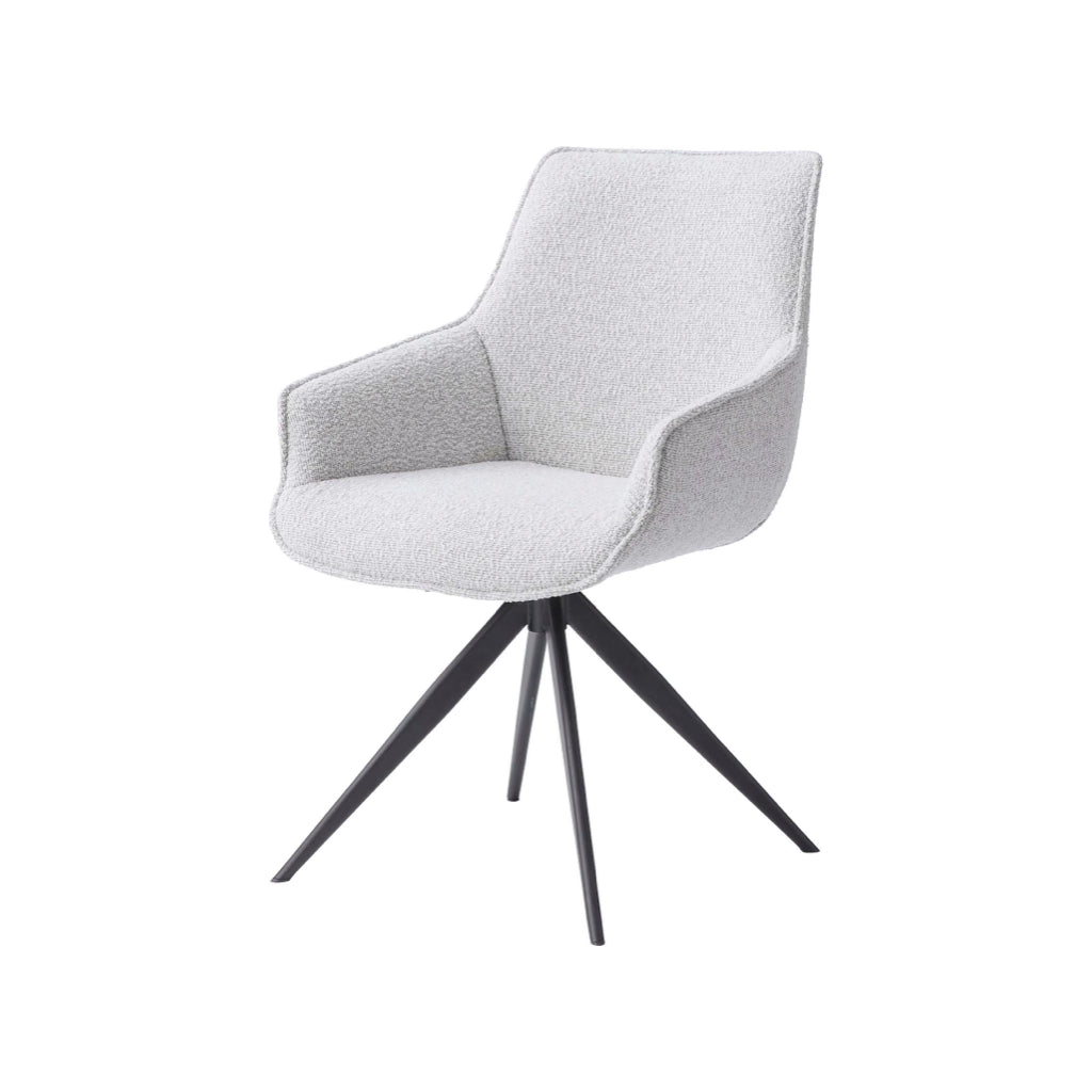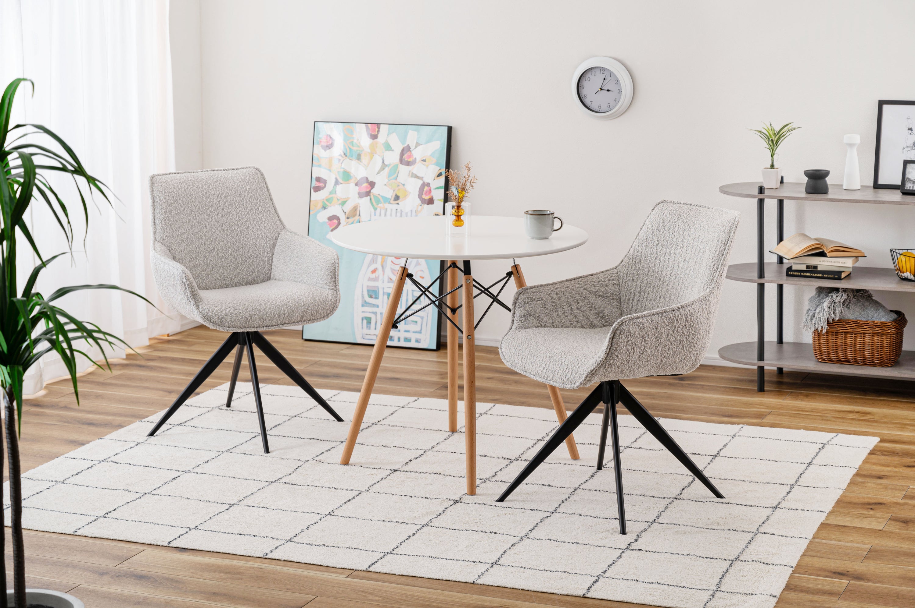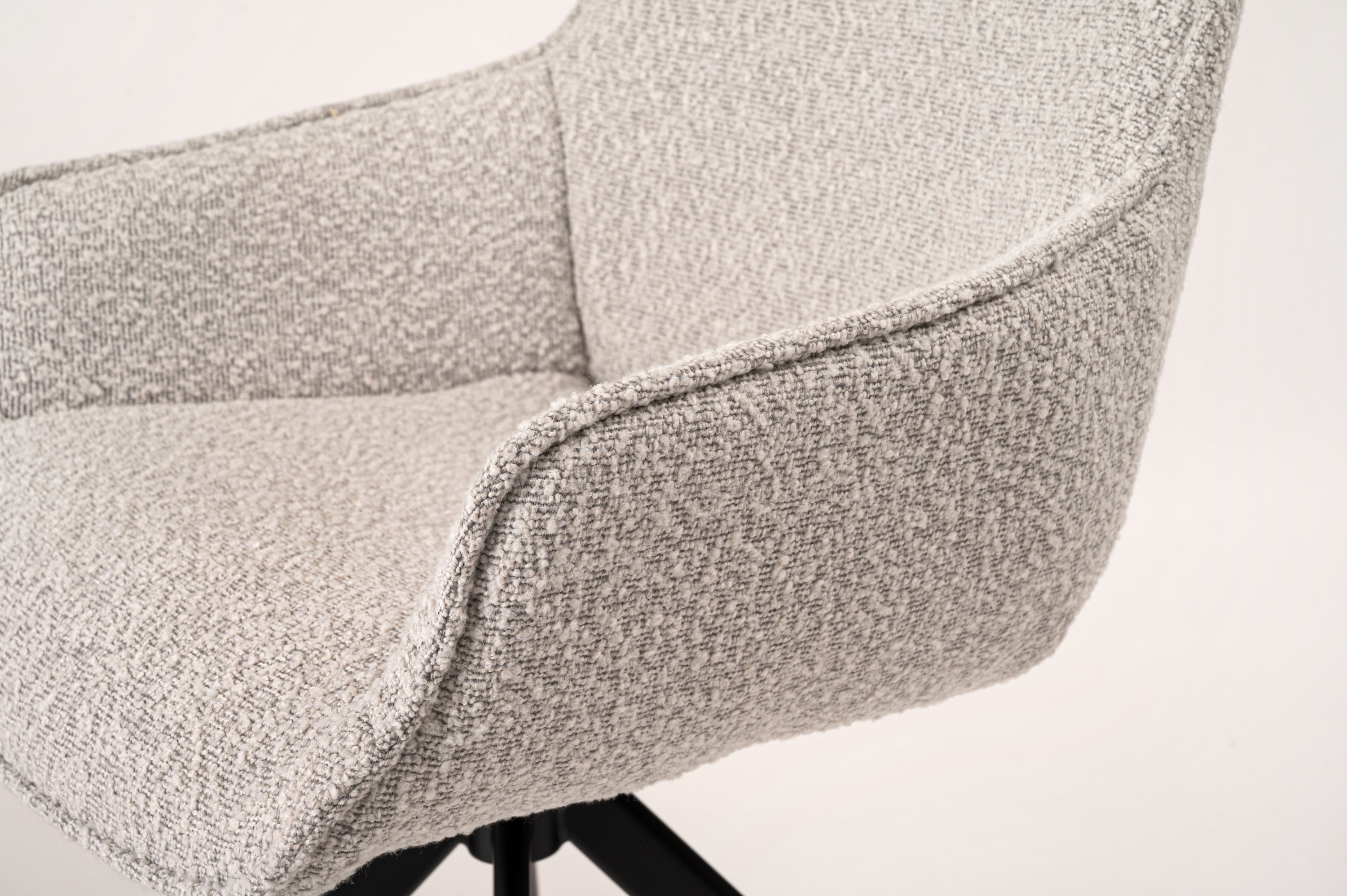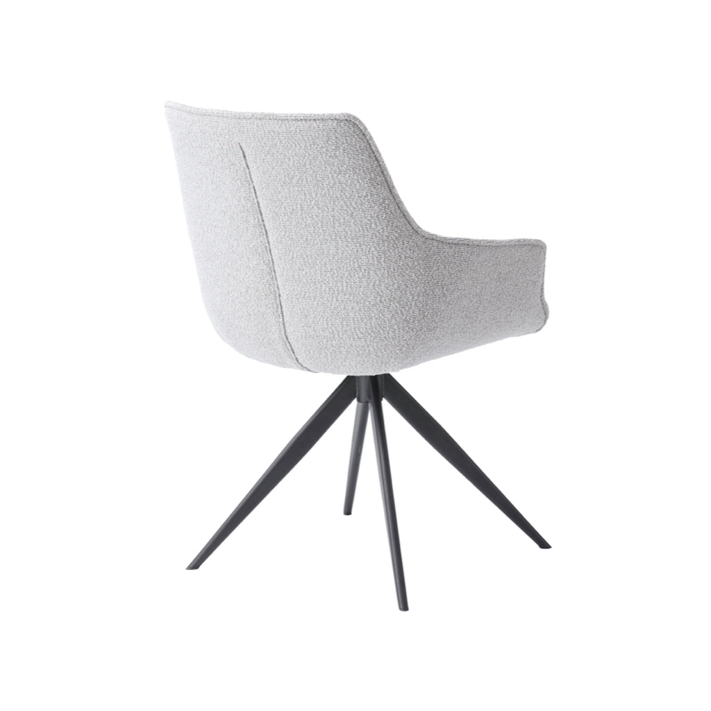立体的で動きのあるファブリックを採用し、シンプルで洗練された印象の回転チェア。座面が360°回転式なので、テーブルへの出入りの動作がスムーズに。ゆるやかに湾曲した背もたれが、優しく包み込むように身体にフィット。柔らかすぎず固すぎない、程よいクッション性の座面。細身のスチール脚が全体のイメージを引き締め、スタイリッシュさを演出。