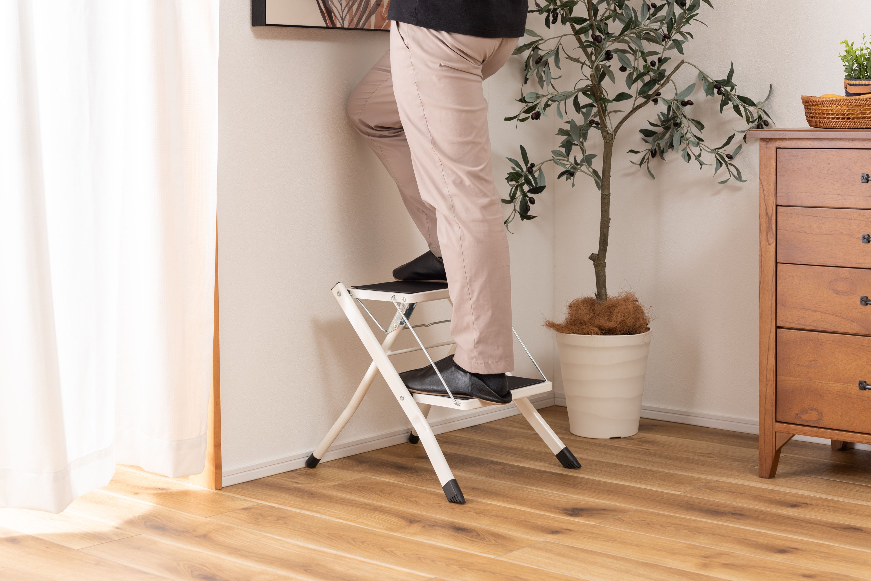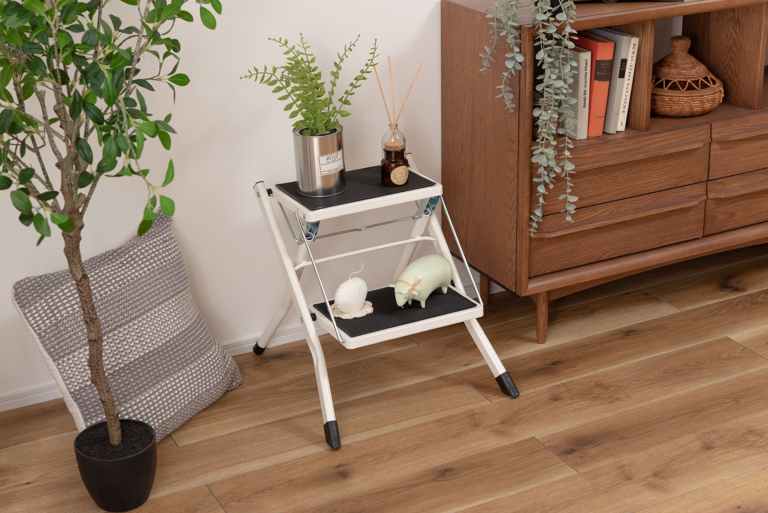 踏み台としてはもちろん、ディスプレイ台や簡易チェアとしても活躍してくれます。折りたたみが可能なので、使わないときは場所を取らずに収納することができます。折りたためて持ち運び簡単すべり防止キャップ付き美しい粉体塗装開閉しやすいグリップ付き折りたたんで収納可能すべりにくいノンスリップ仕様