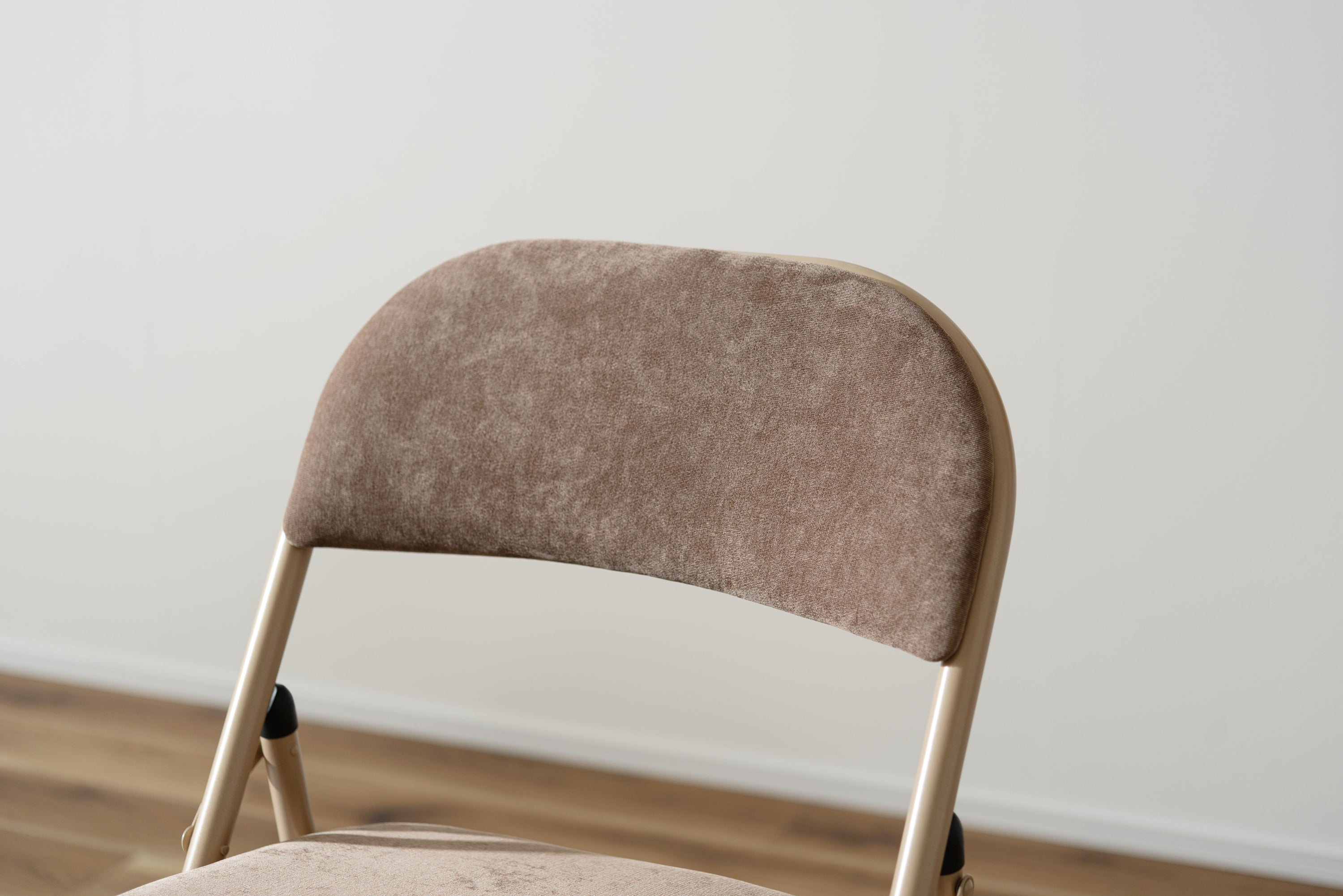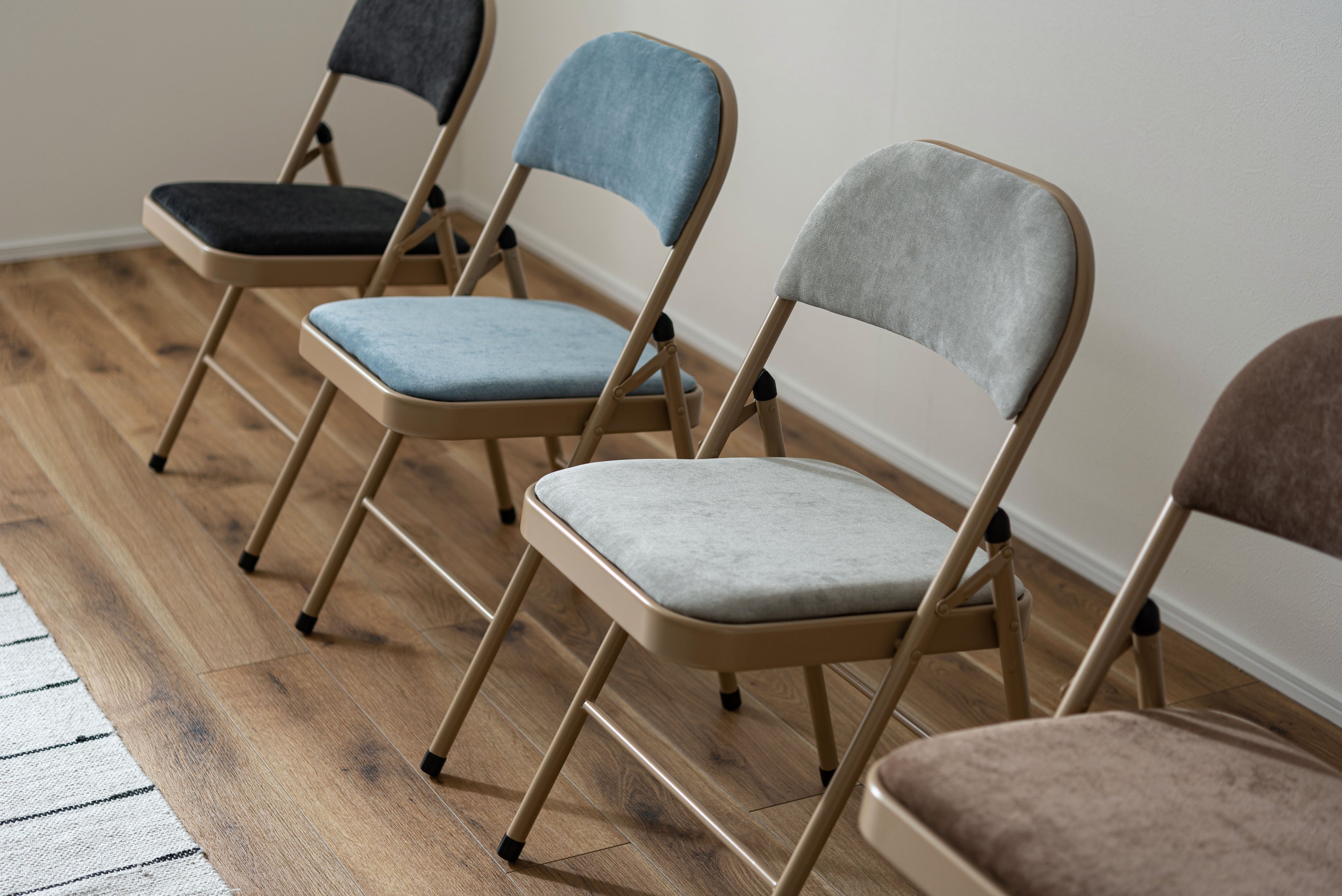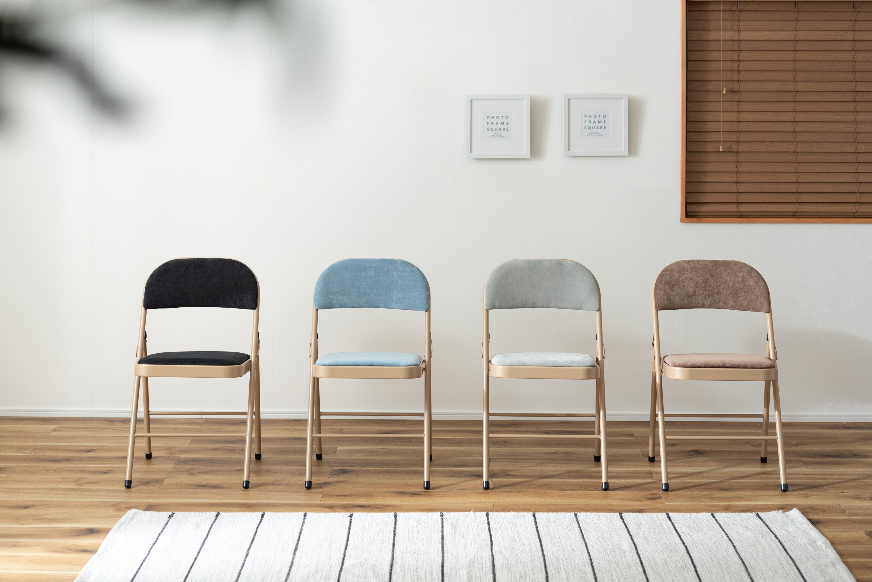 オフィスワークやテレワークなど、様々なシーンで活躍するフォールディングチェアです。上品な色合いのスチールと高級感を感じるベロア調の生地がハイセンスな空間を演出してくれます。一般的なパイプ椅子のイメージを覆すおしゃれなデザインです。使わないときはサッと折りたたんで、お部屋のちょっとした隙間に収納しておくことができます。