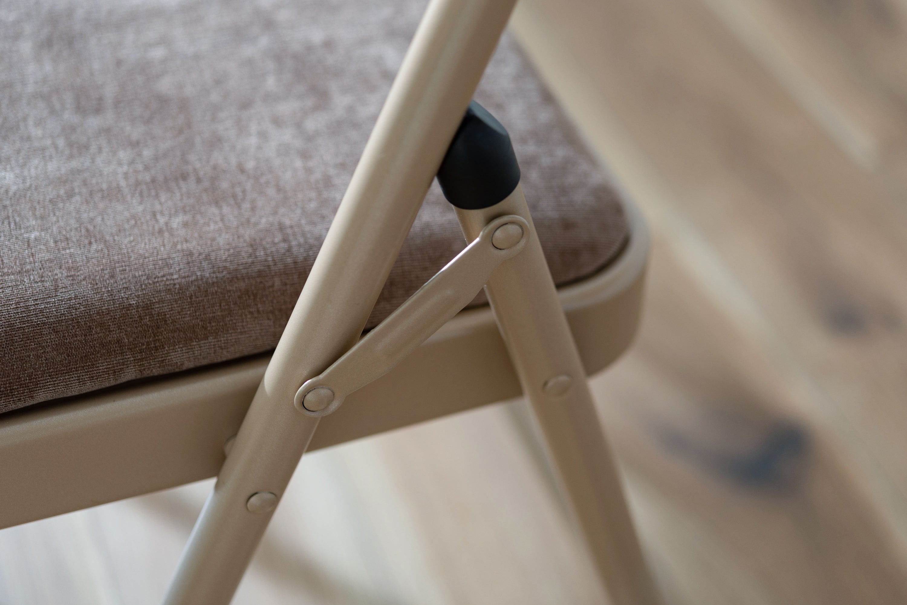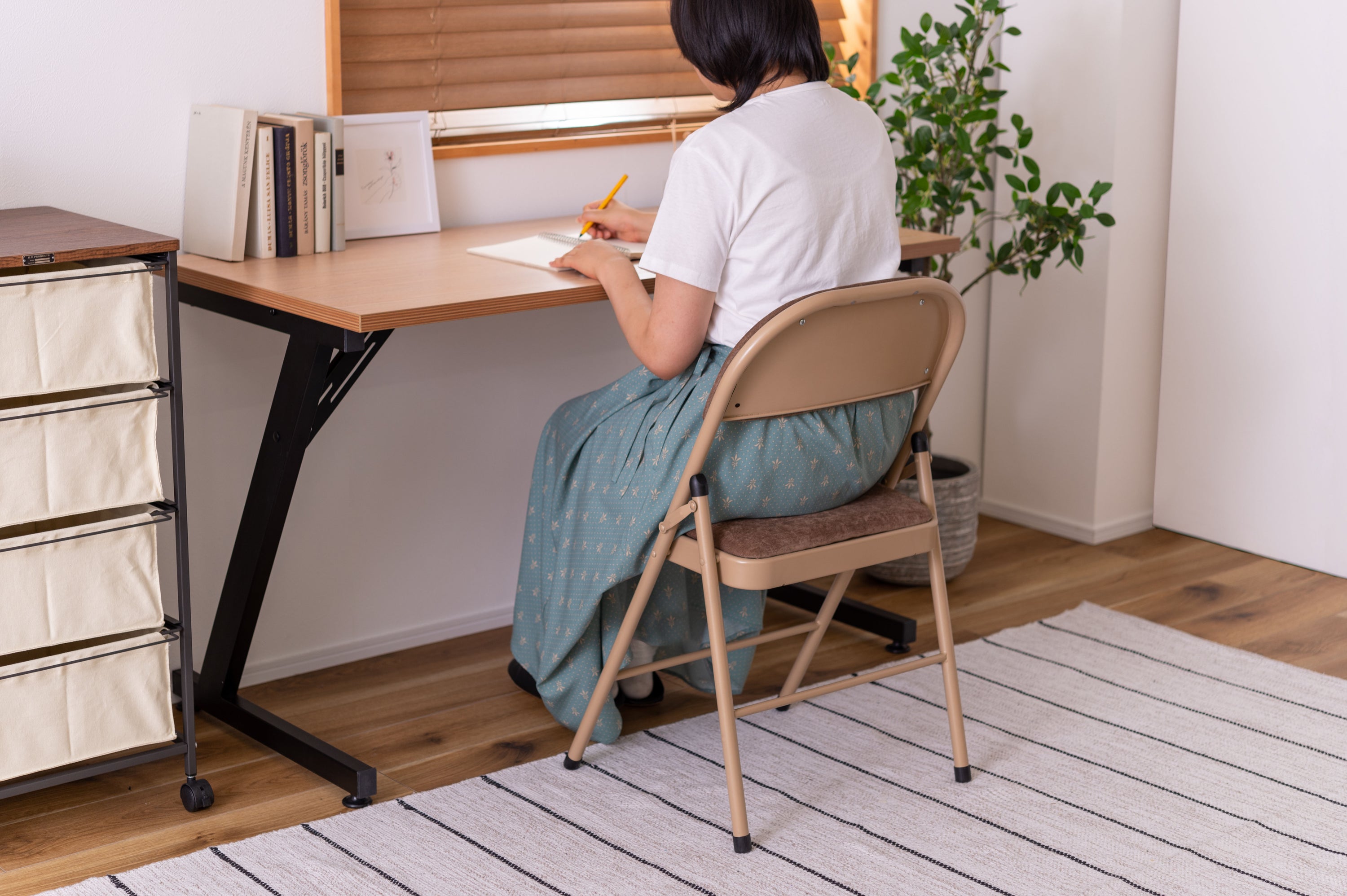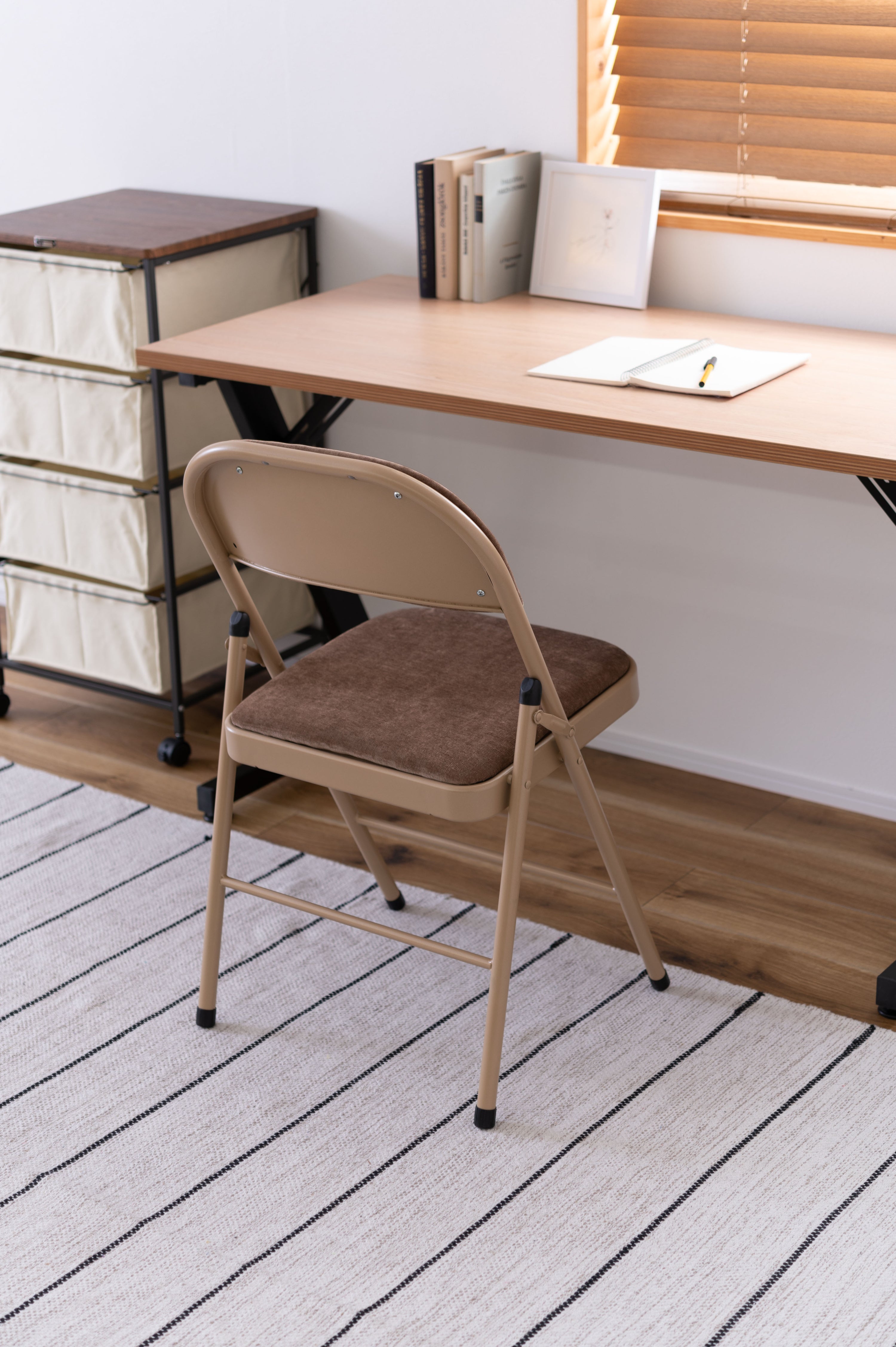 オフィスワークやテレワークなど、様々なシーンで活躍するフォールディングチェアです。上品な色合いのスチールと高級感を感じるベロア調の生地がハイセンスな空間を演出してくれます。一般的なパイプ椅子のイメージを覆すおしゃれなデザインです。使わないときはサッと折りたたんで、お部屋のちょっとした隙間に収納しておくことができます。