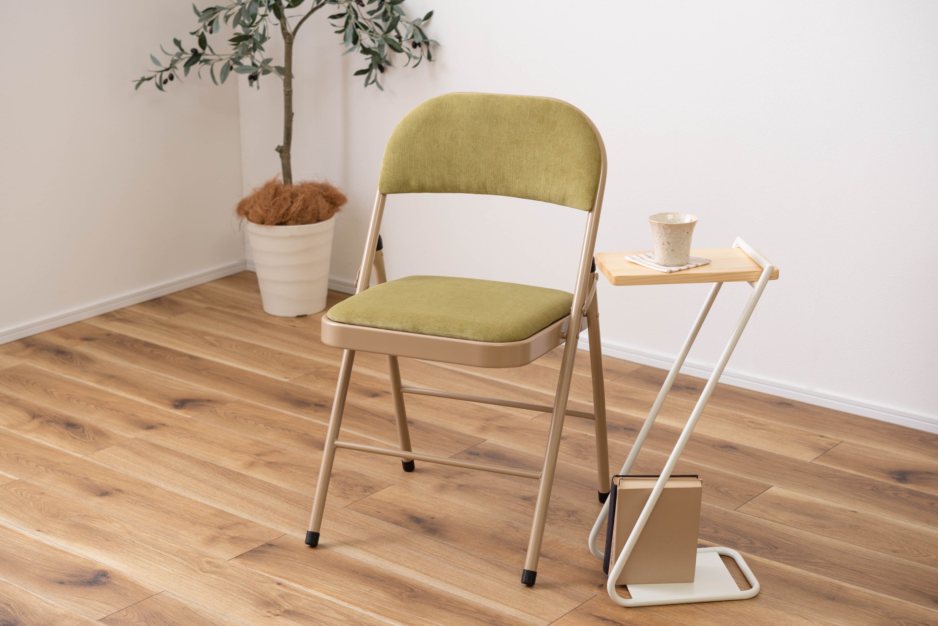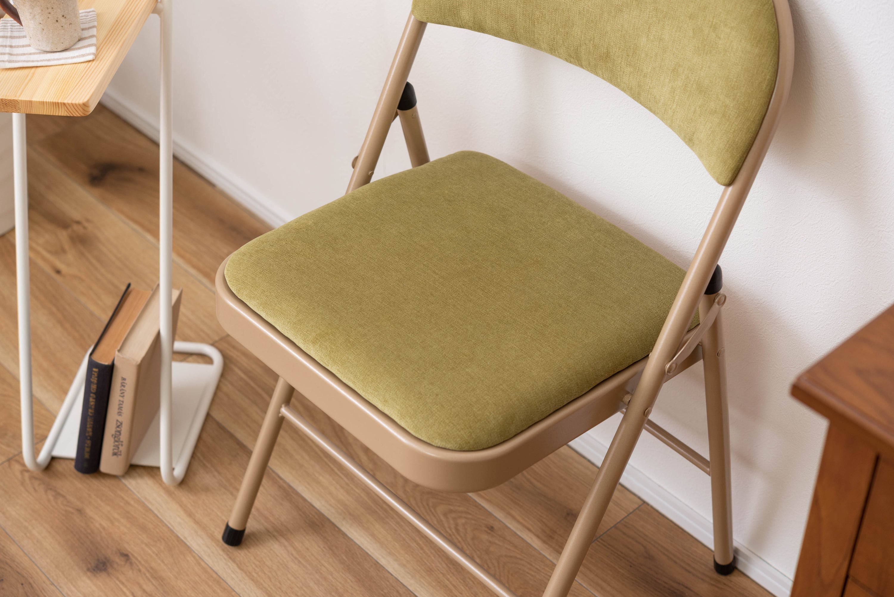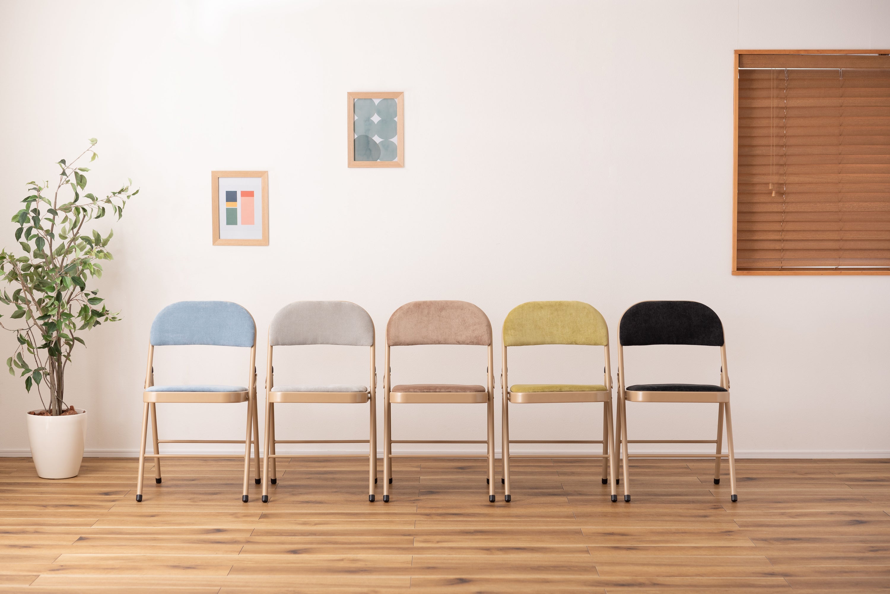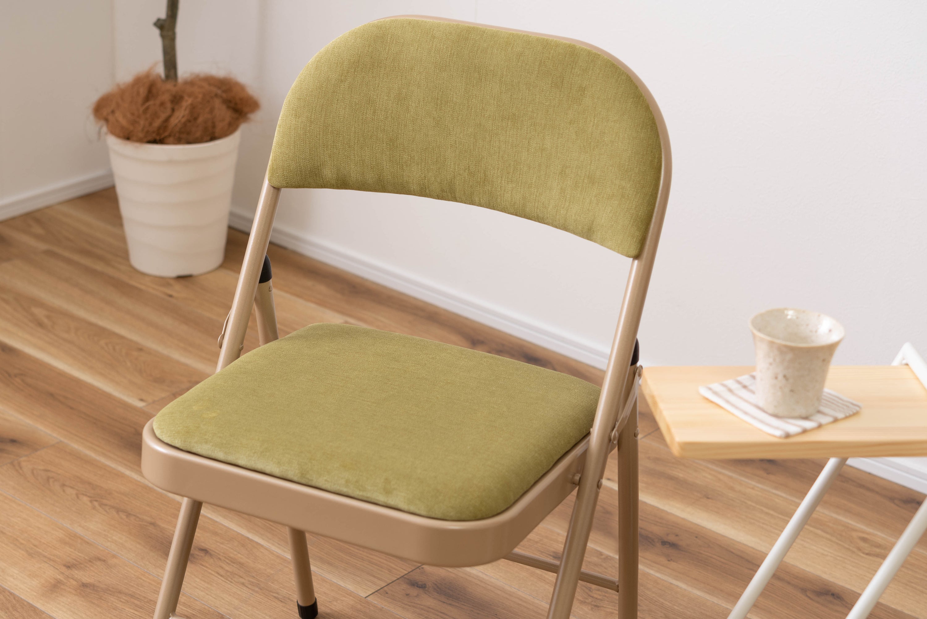 オフィスワークやテレワークなど、様々なシーンで活躍するフォールディングチェアです。上品な色合いのスチールと高級感を感じるベロア調の生地がハイセンスな空間を演出してくれます。一般的なパイプ椅子のイメージを覆すおしゃれなデザインです。使わないときはサッと折りたたんで、お部屋のちょっとした隙間に収納しておくことができます。