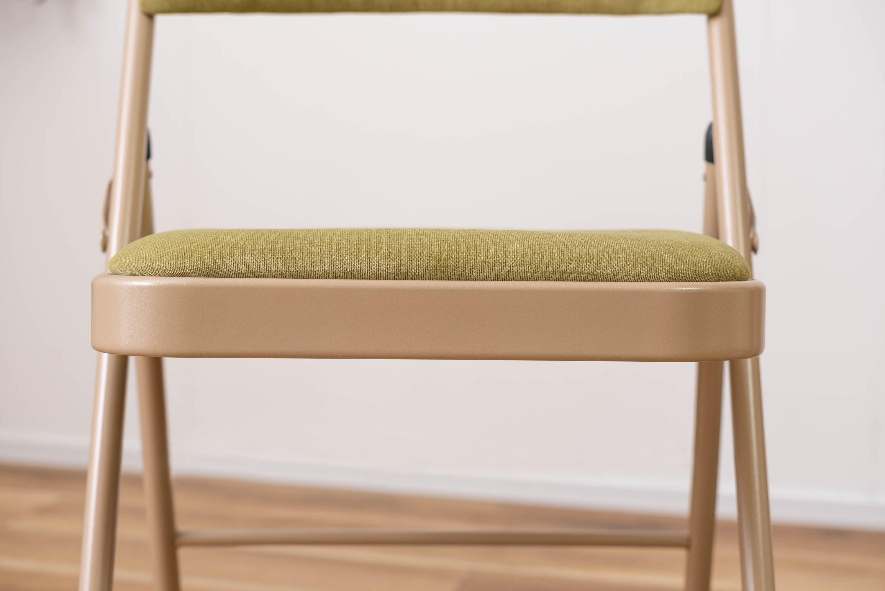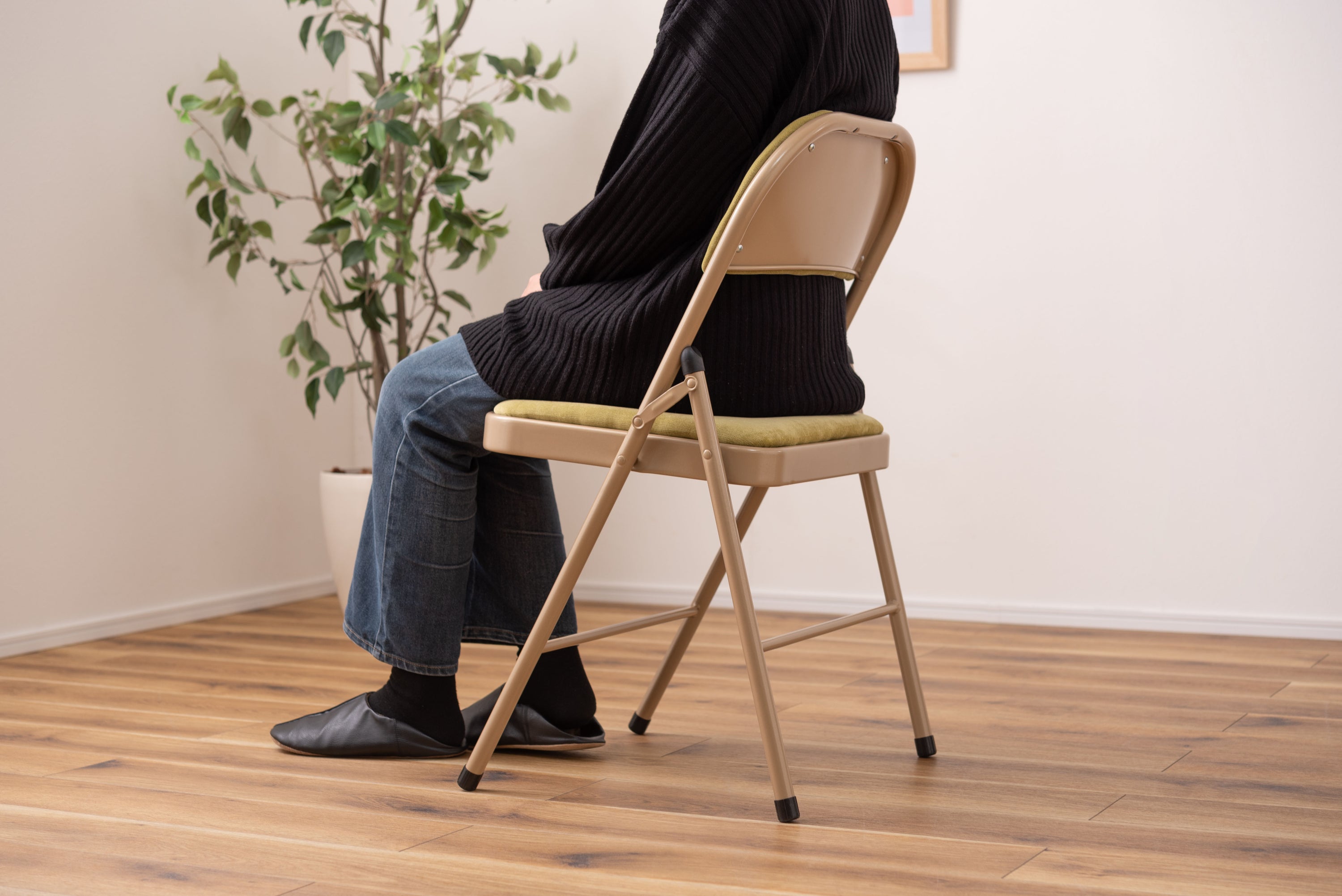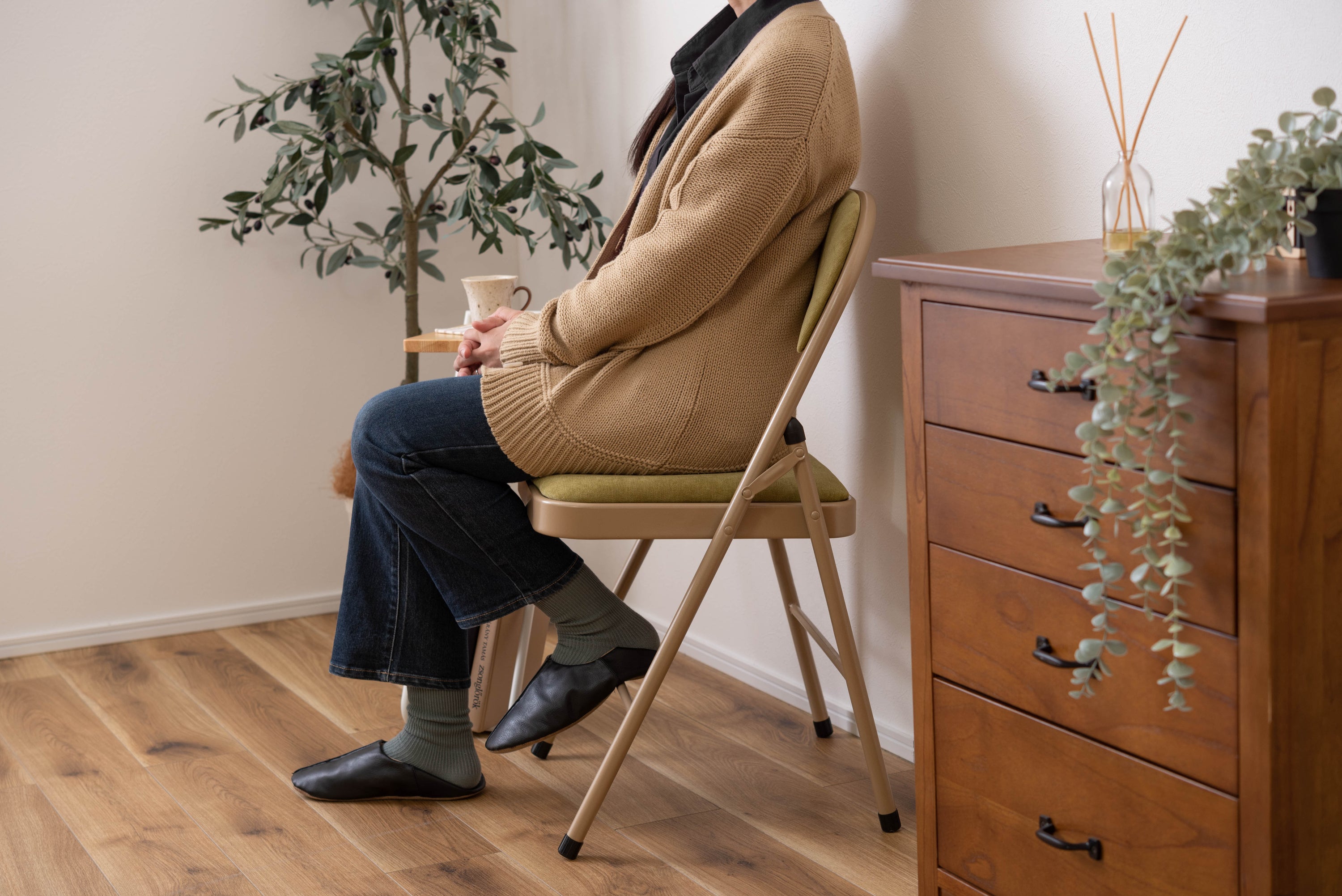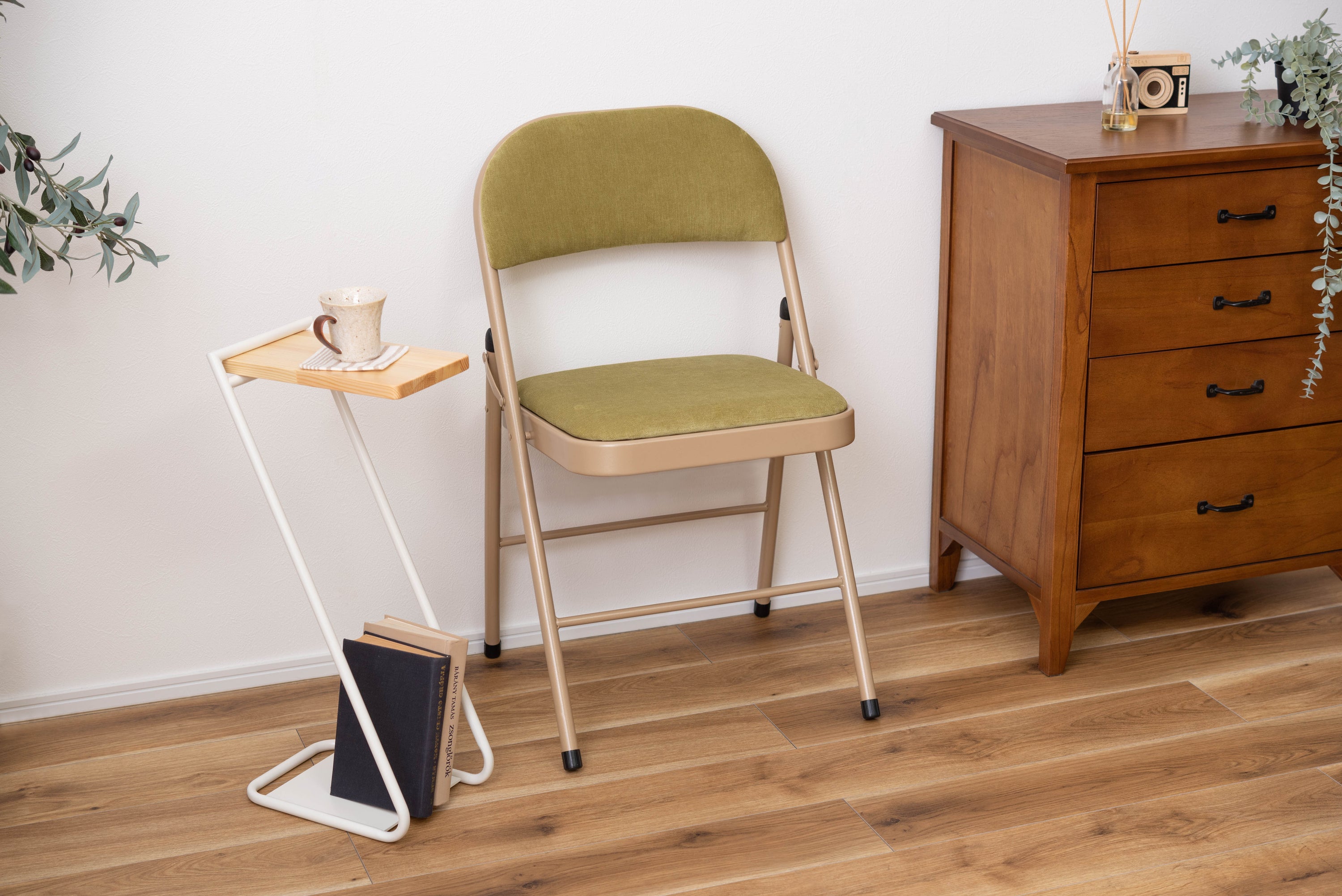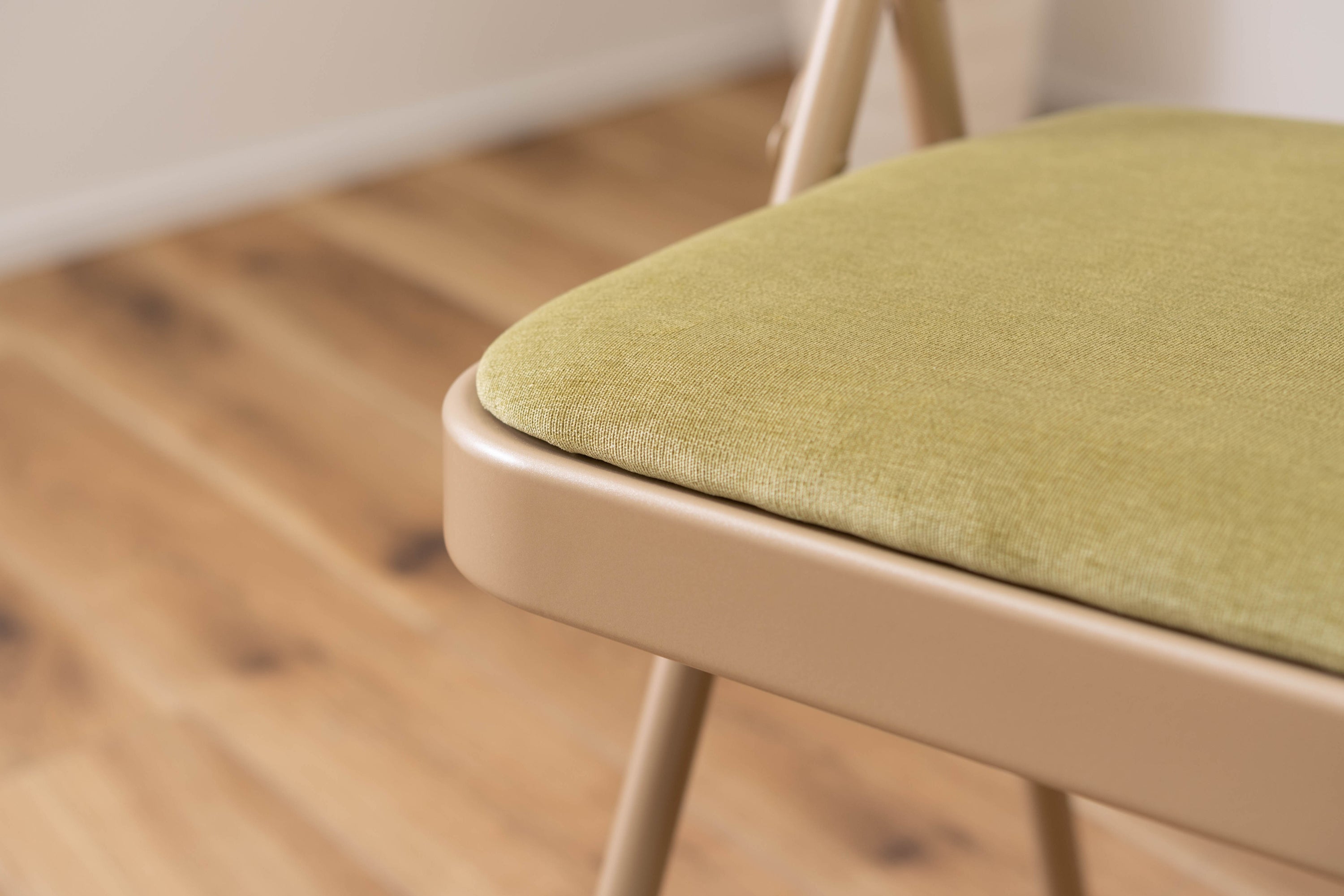 オフィスワークやテレワークなど、様々なシーンで活躍するフォールディングチェアです。上品な色合いのスチールと高級感を感じるベロア調の生地がハイセンスな空間を演出してくれます。一般的なパイプ椅子のイメージを覆すおしゃれなデザインです。使わないときはサッと折りたたんで、お部屋のちょっとした隙間に収納しておくことができます。