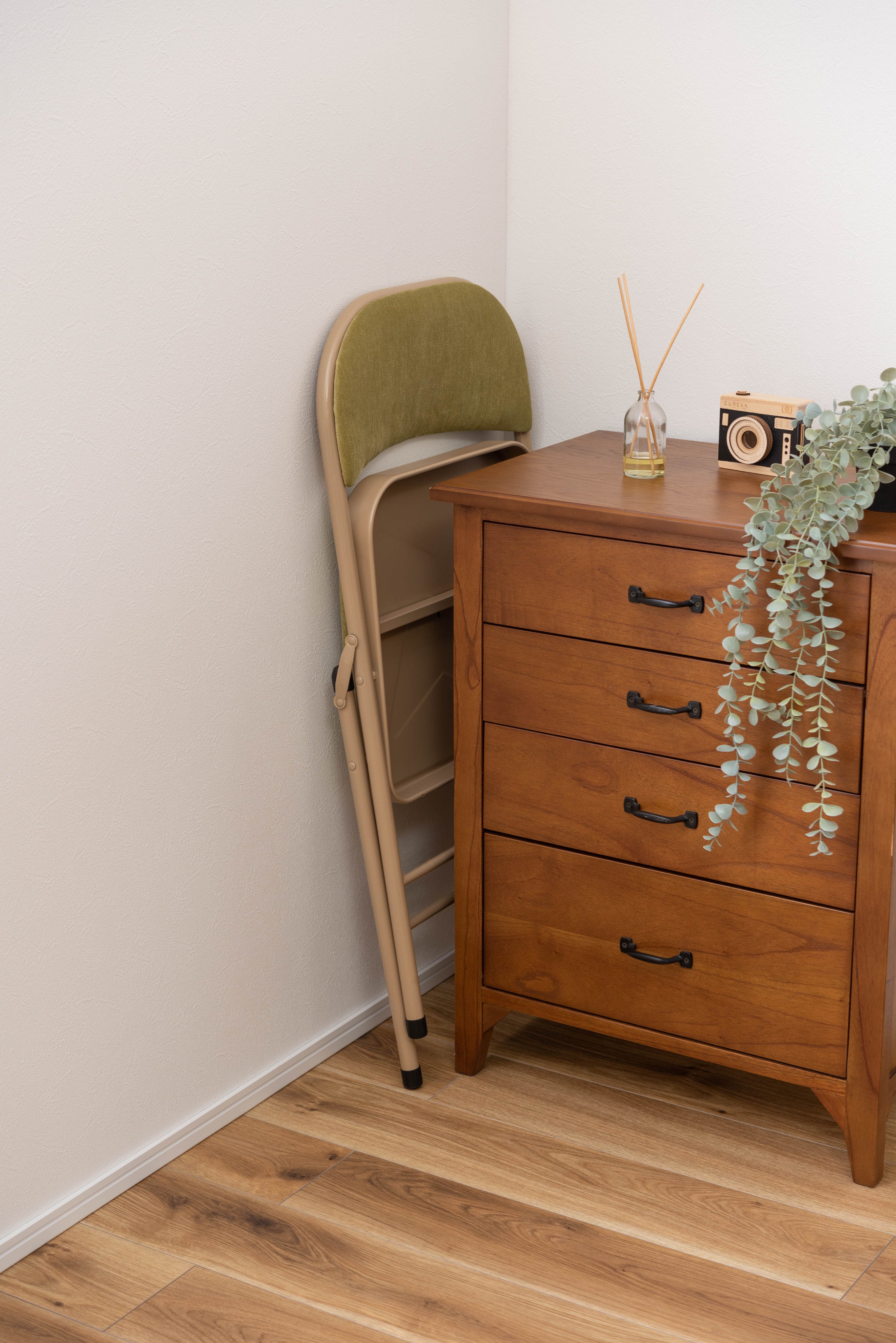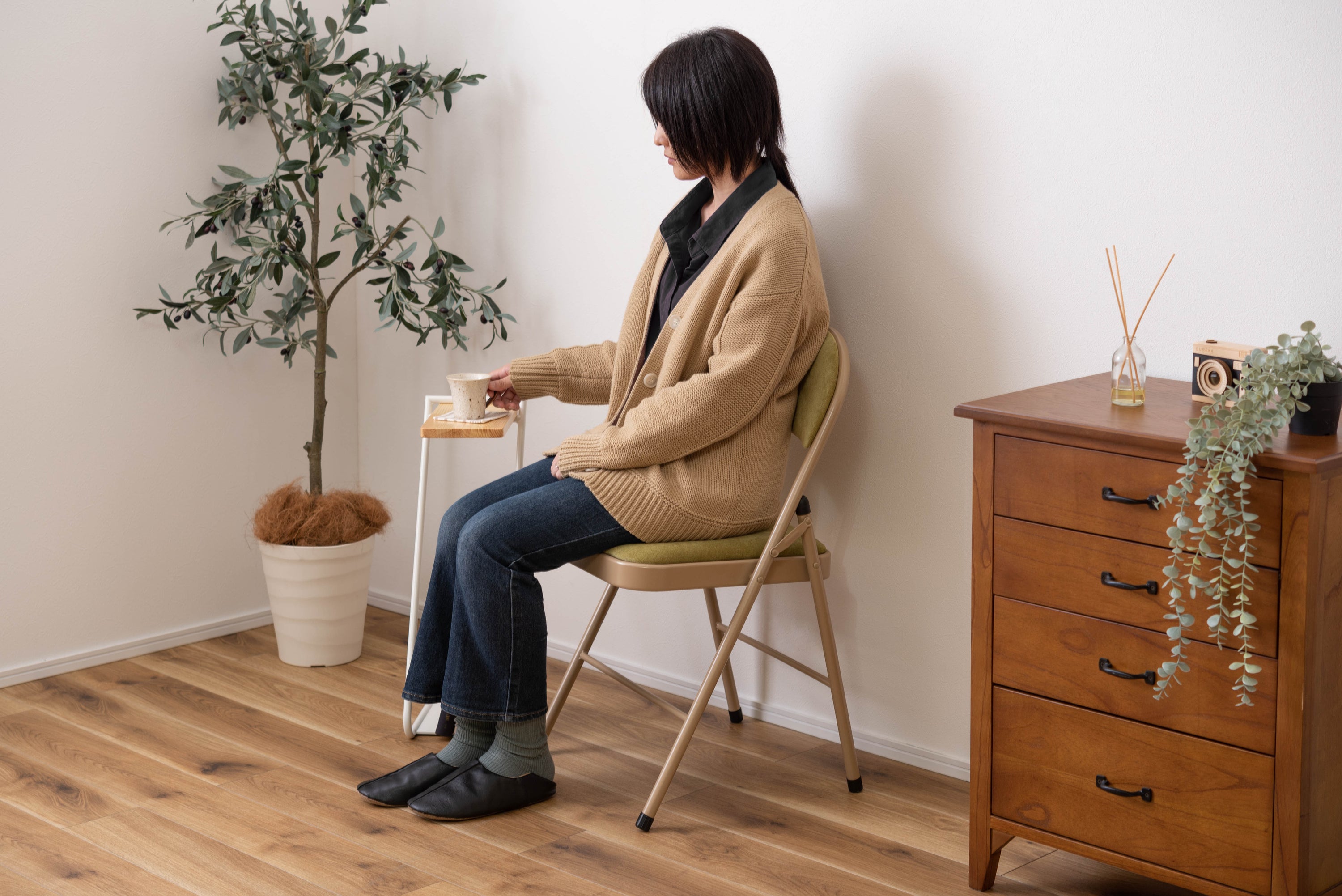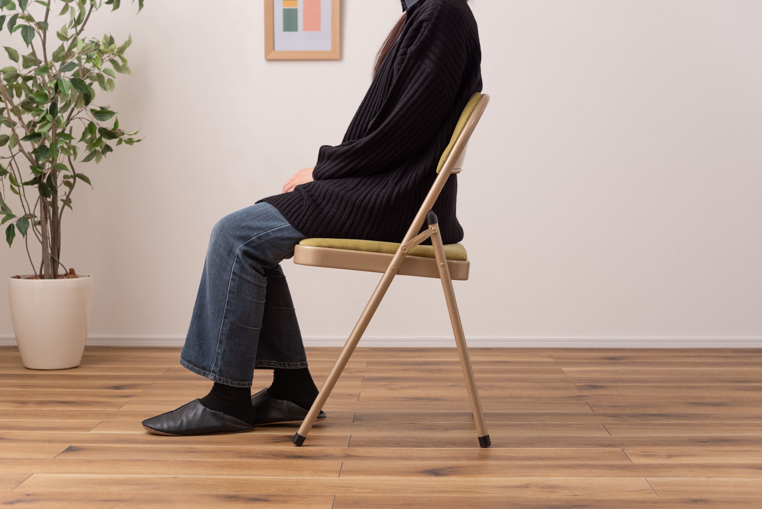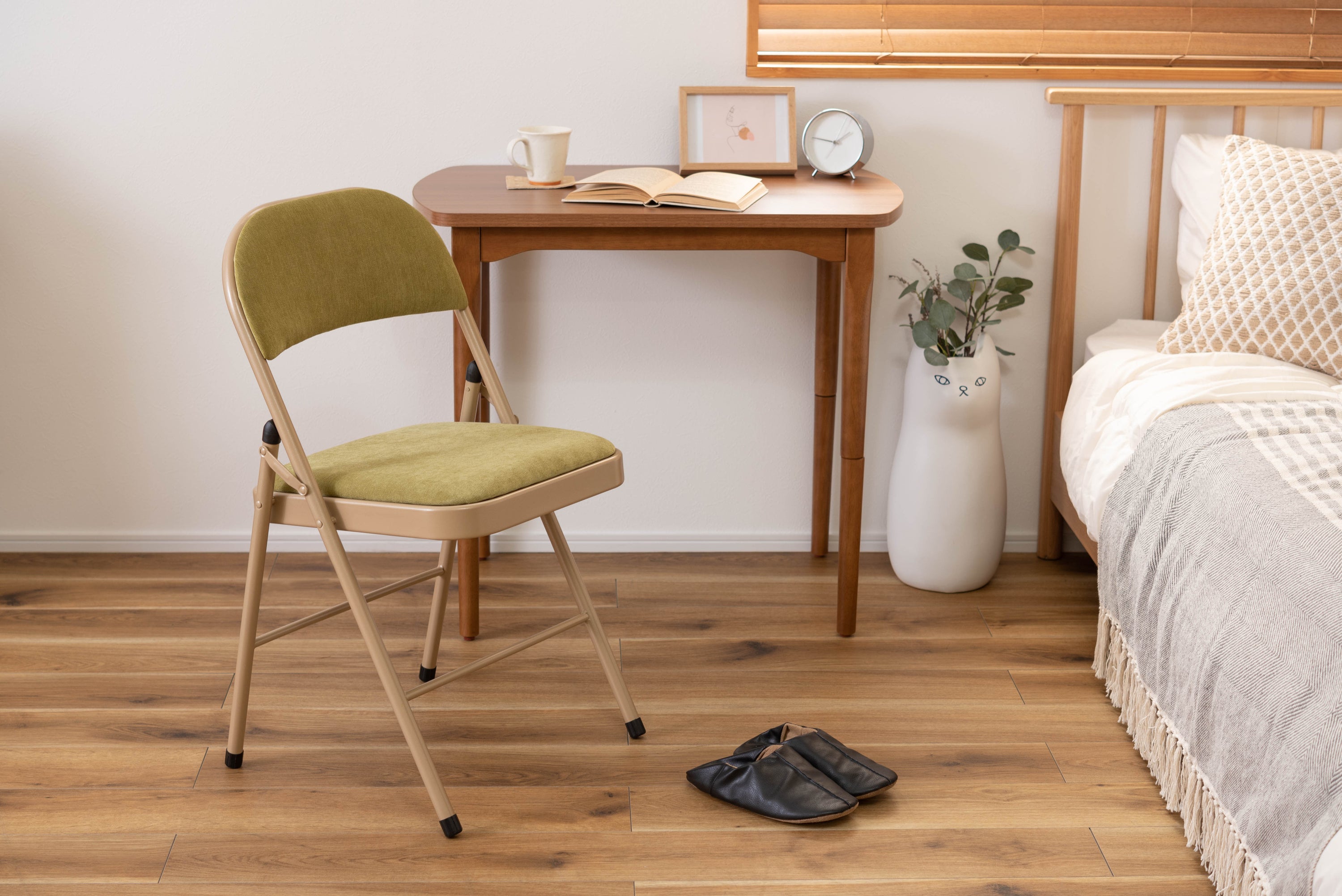 オフィスワークやテレワークなど、様々なシーンで活躍するフォールディングチェアです。上品な色合いのスチールと高級感を感じるベロア調の生地がハイセンスな空間を演出してくれます。一般的なパイプ椅子のイメージを覆すおしゃれなデザインです。使わないときはサッと折りたたんで、お部屋のちょっとした隙間に収納しておくことができます。