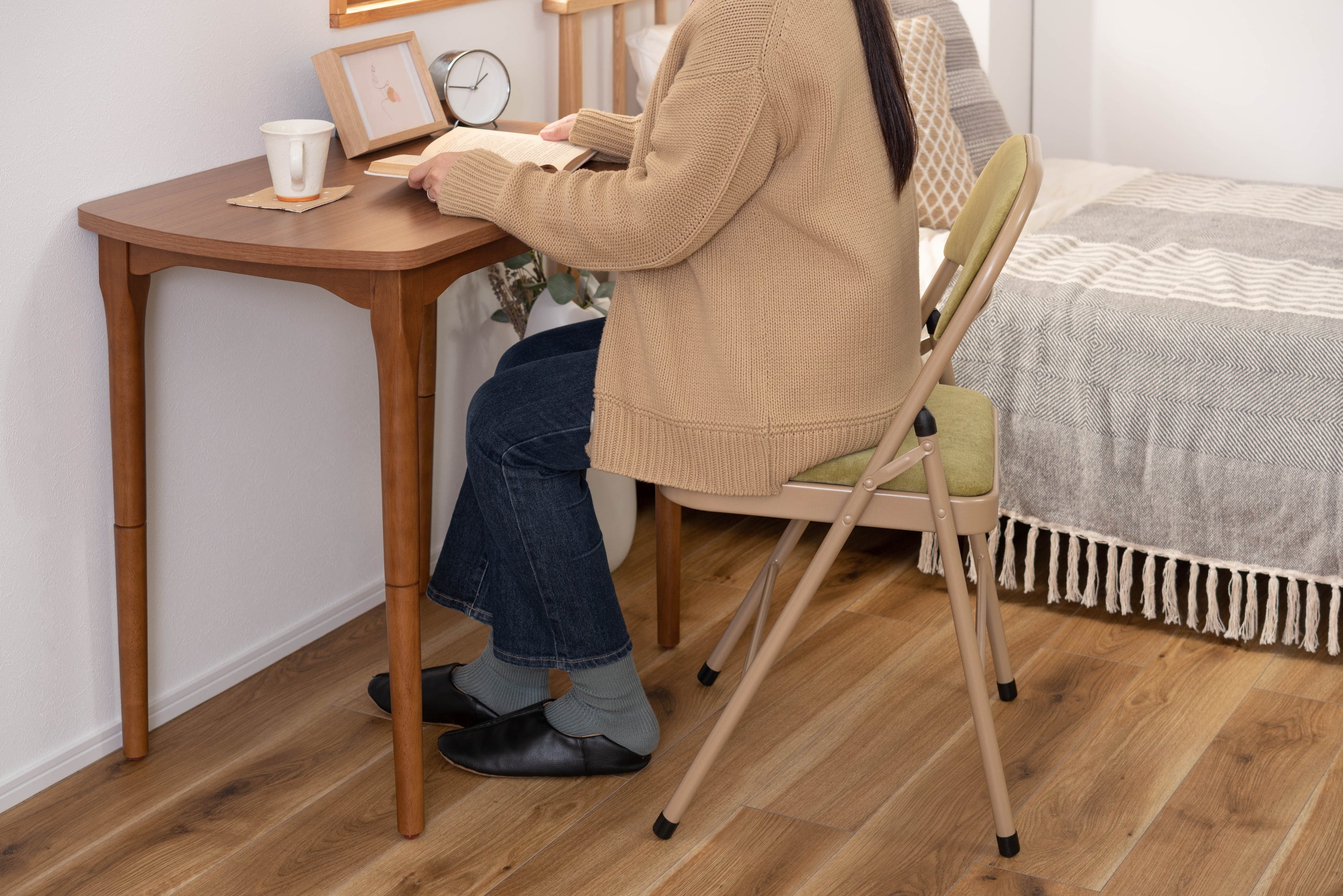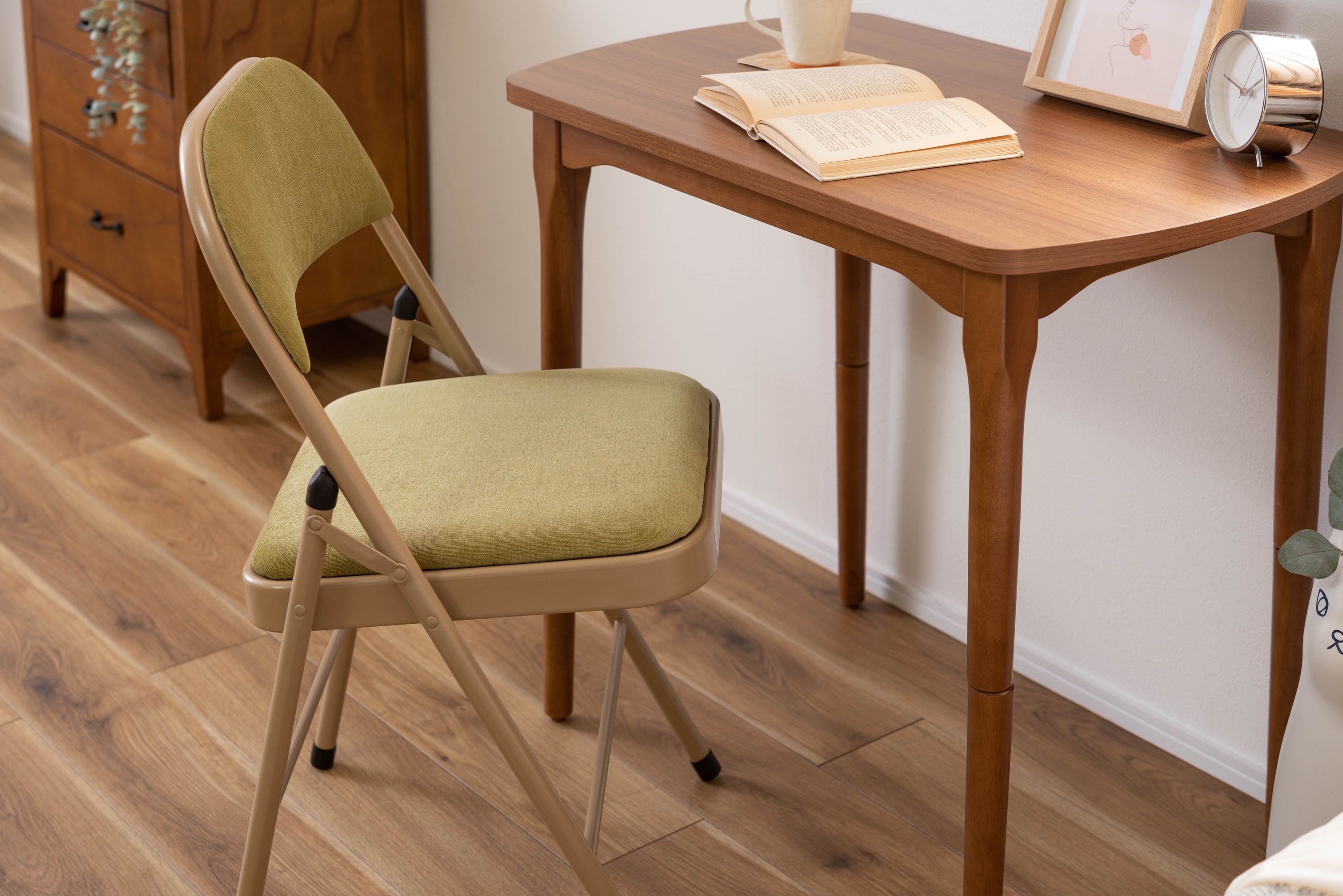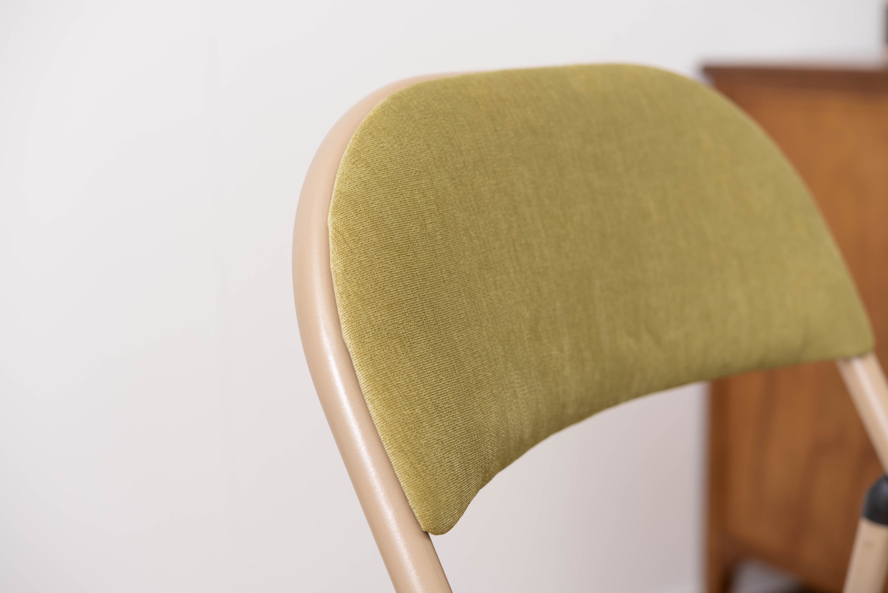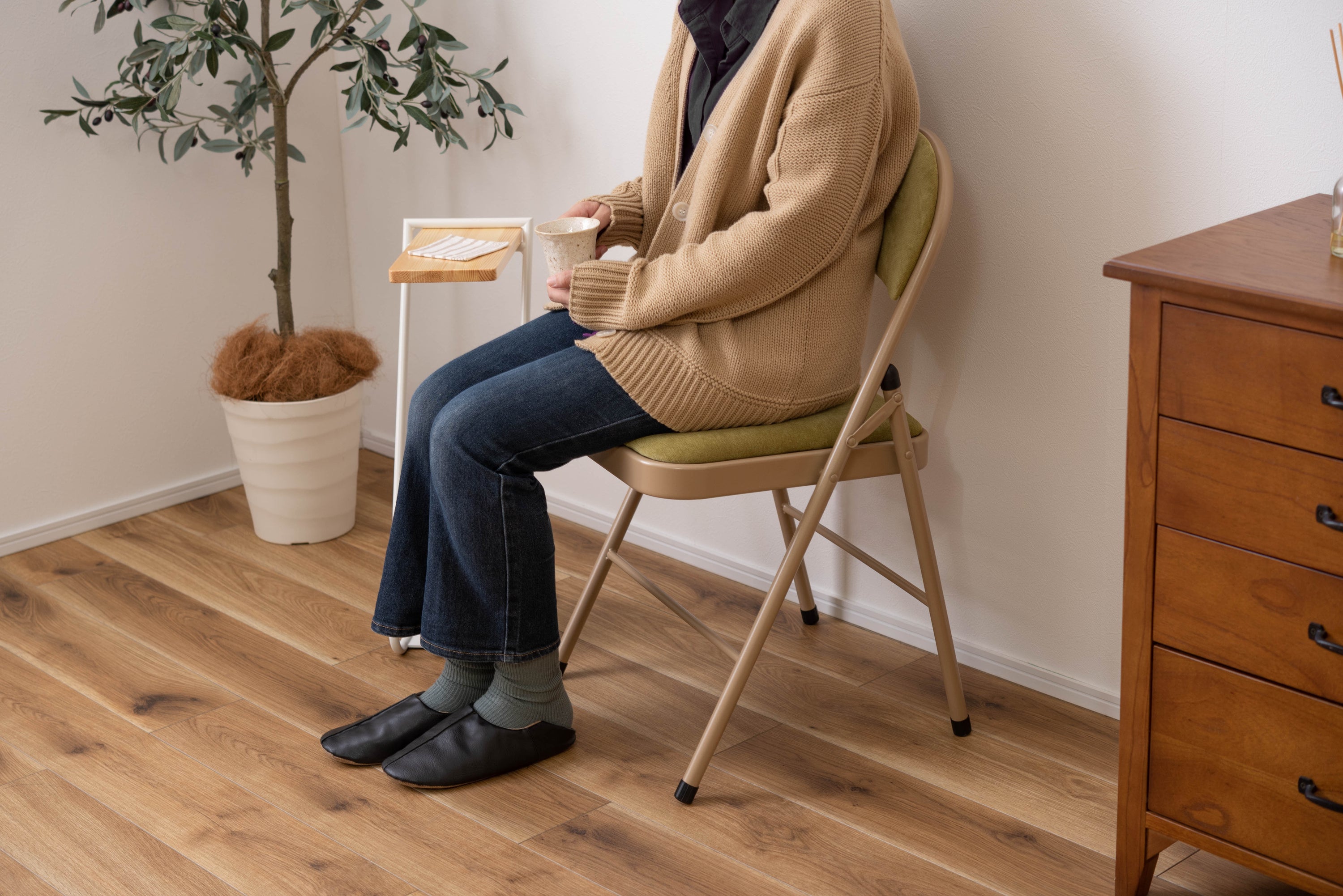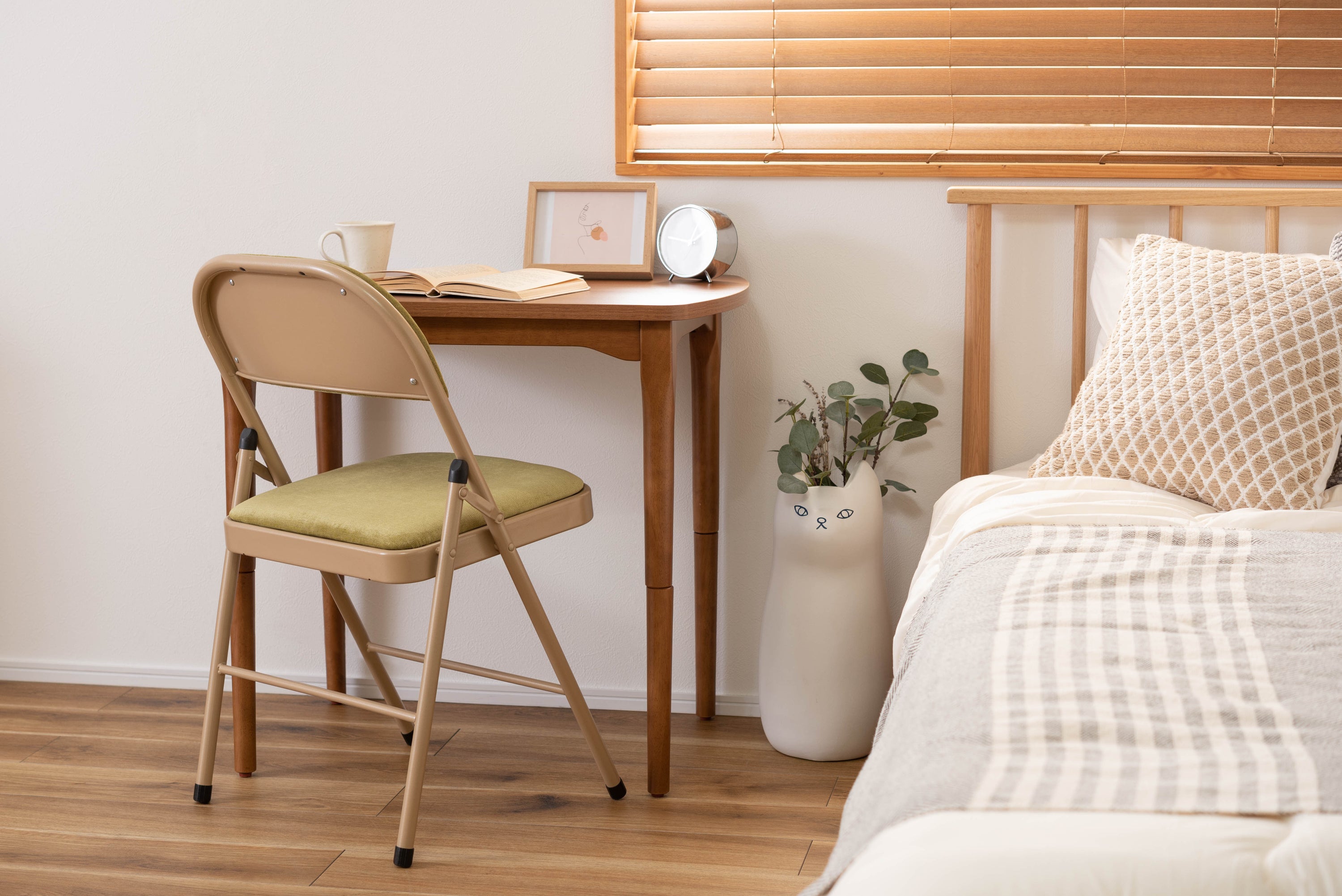 オフィスワークやテレワークなど、様々なシーンで活躍するフォールディングチェアです。上品な色合いのスチールと高級感を感じるベロア調の生地がハイセンスな空間を演出してくれます。一般的なパイプ椅子のイメージを覆すおしゃれなデザインです。使わないときはサッと折りたたんで、お部屋のちょっとした隙間に収納しておくことができます。
