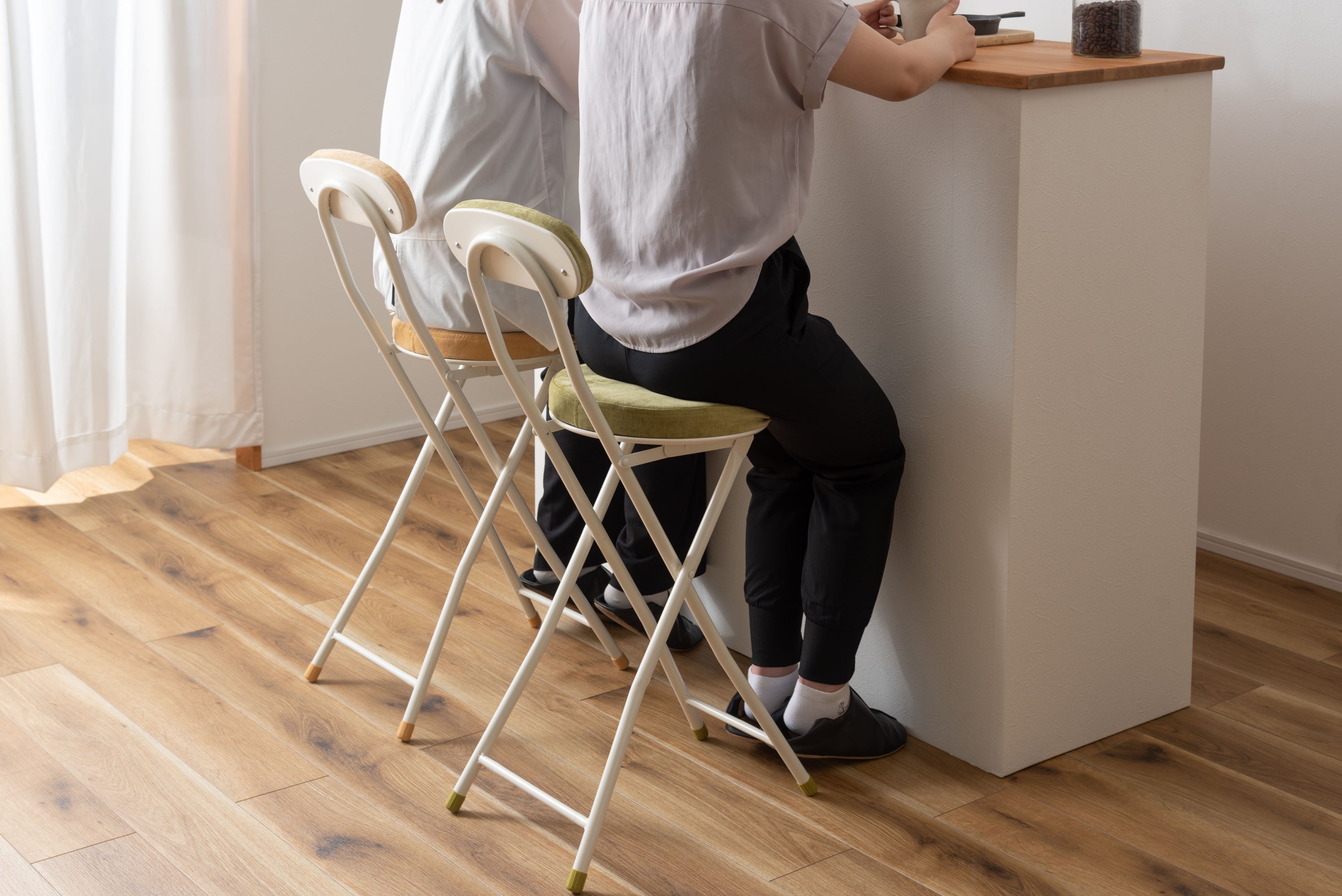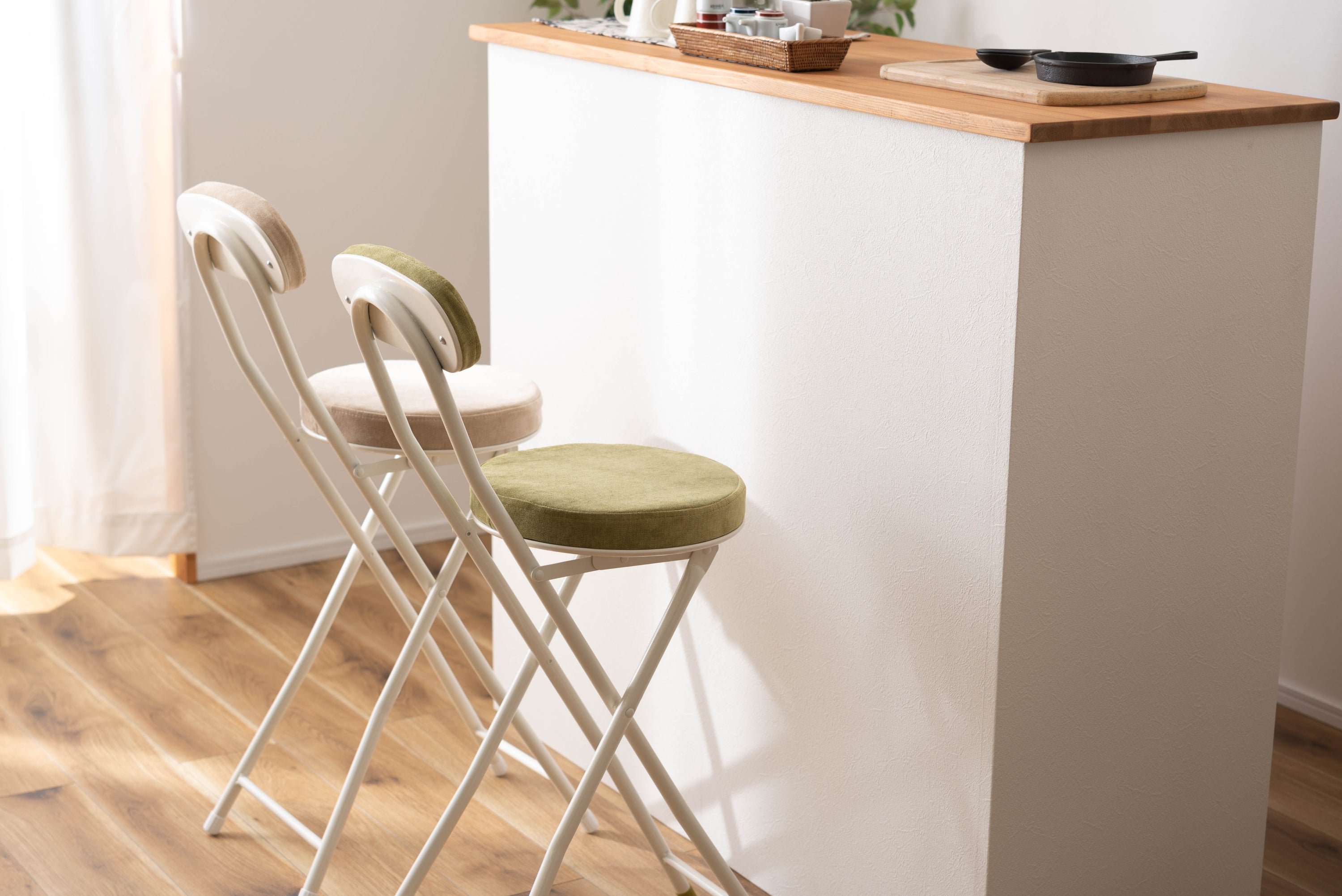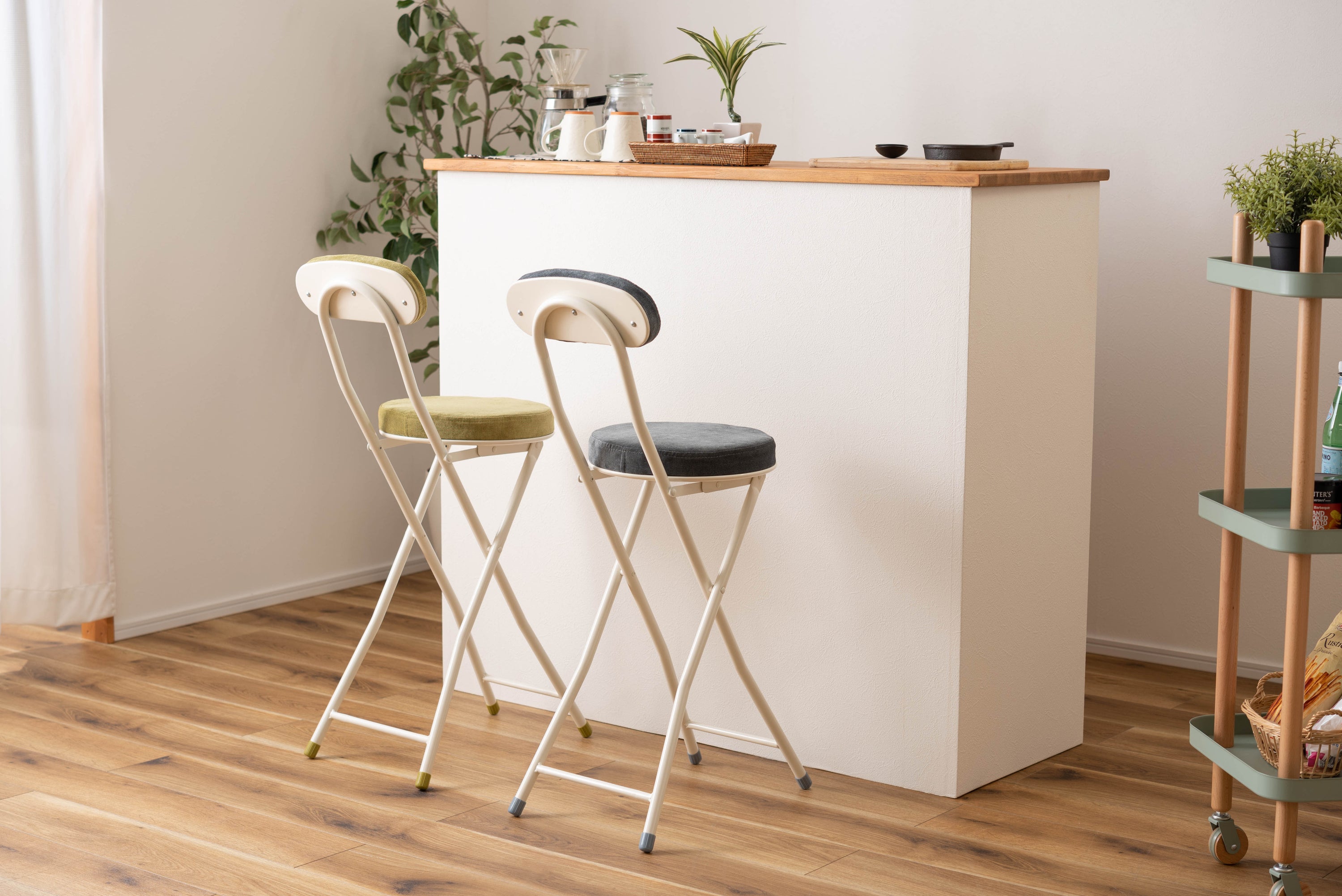 人気の折りたたみチェアにハイバージョンが登場。コンパクト感はそのままに、カウンターや高めのテーブルなどにピッタリのサイズ。クッション性抜群で座り心地の良い分厚い座面。安心のロック付き。軽量なので持ち運びもラクラク。折りたたみ式(フォールディング式)なので、隙間収納に最適。ベロア生地のように細かく起毛した手触りの良い生地。脚先キャップは座面の色と同色に揃えたデザイン。床への傷防止にもなり安心です