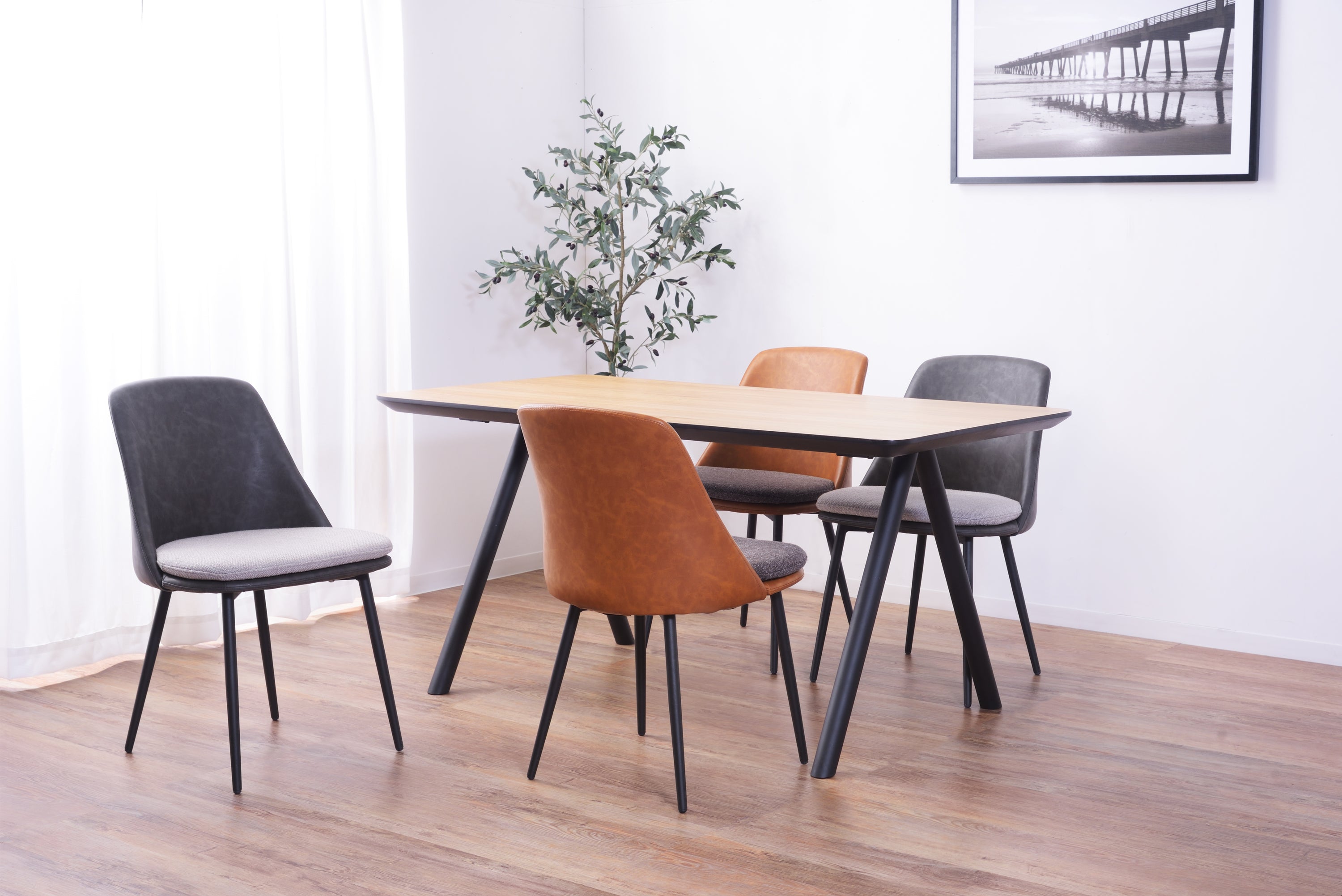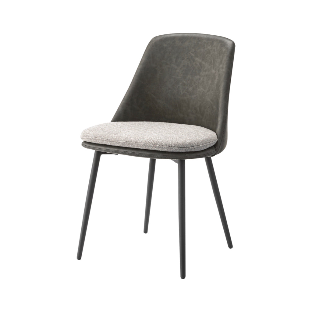 レザーと布地の貼地が目を引くアファブルチェア 座面の幅が広いのでゆったりとした座り心地を体感できます。 座面クッション取り外し不可