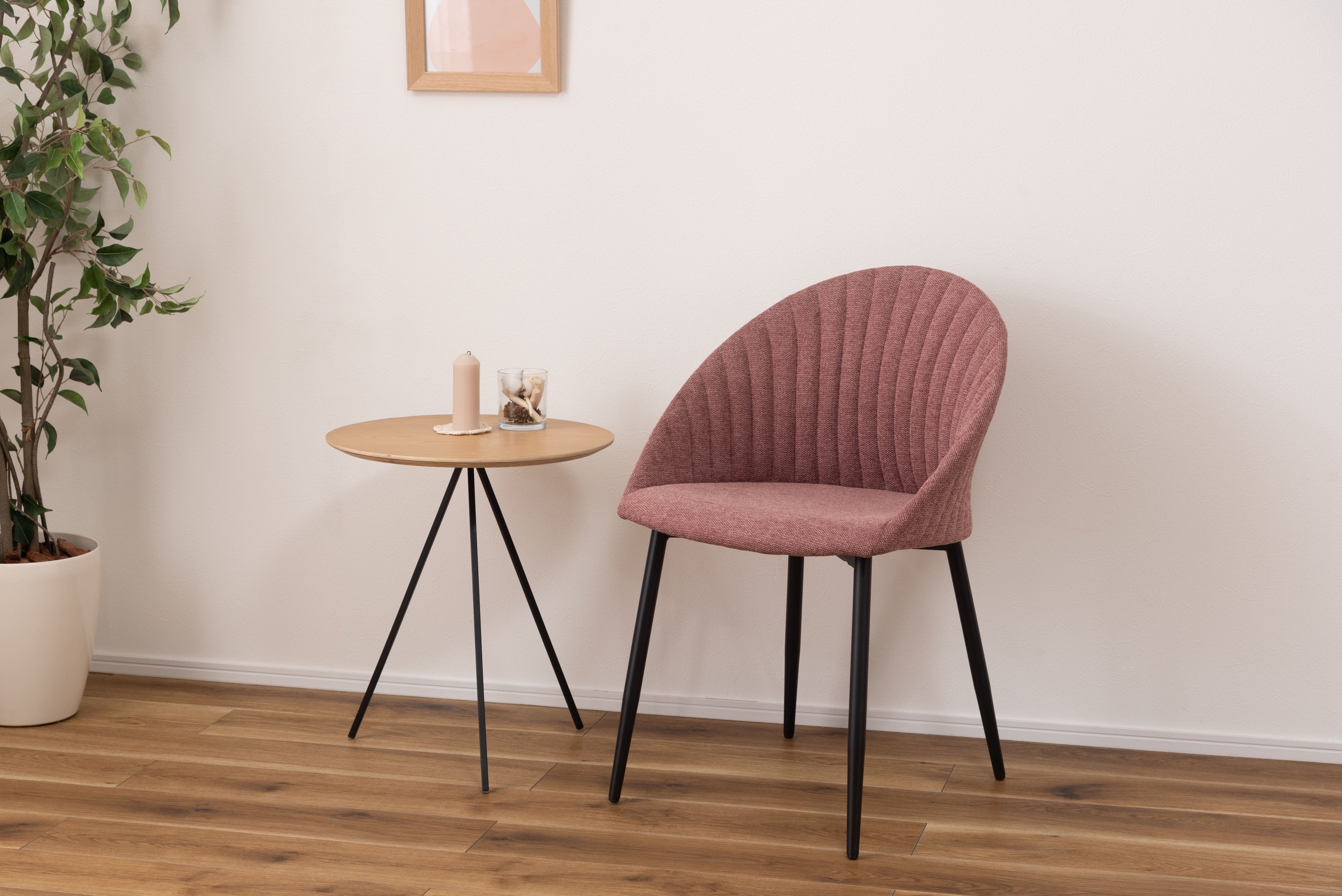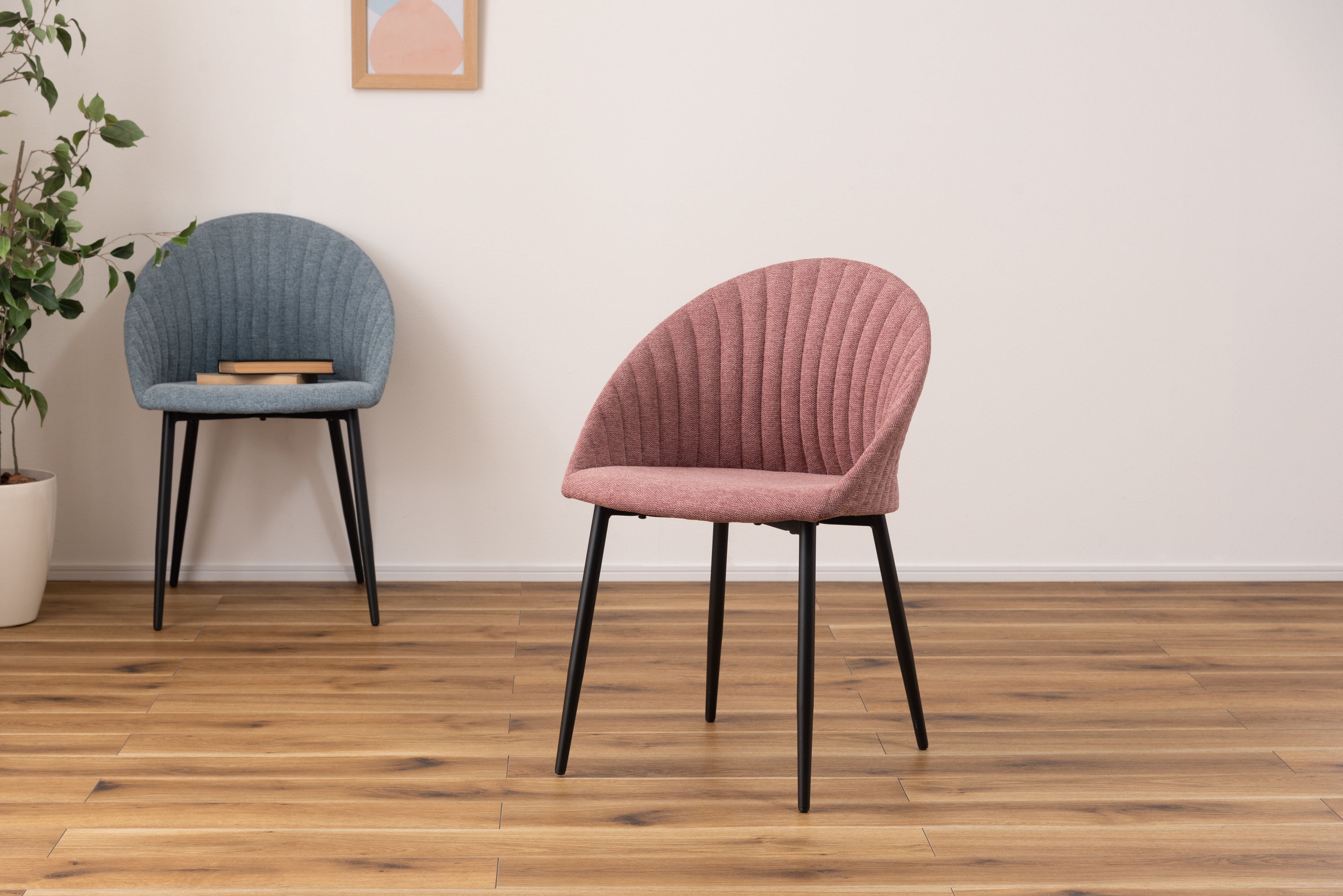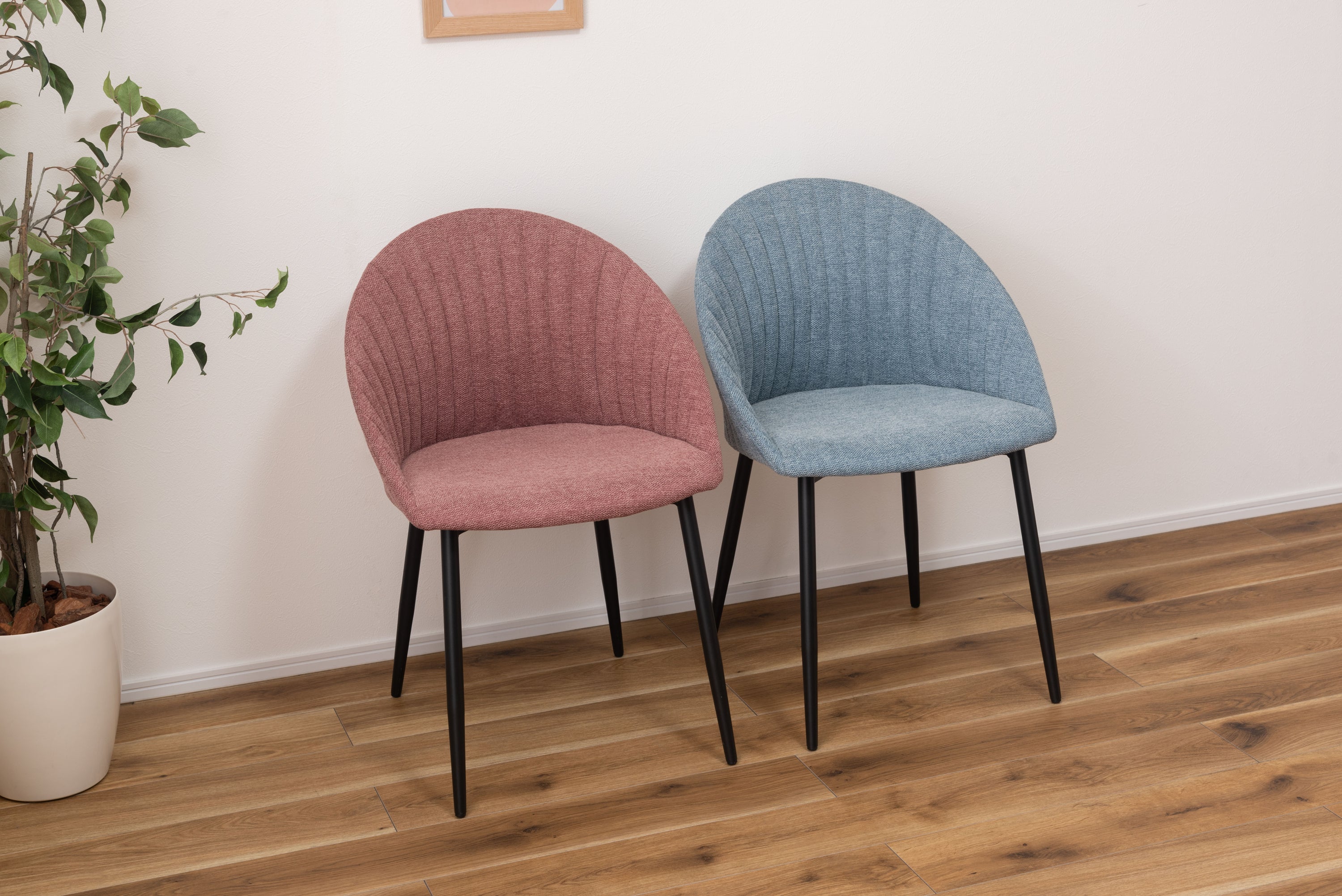 貝殻のようなコロンとした形が特徴的なリリムチェア。包み込まれるような立体構造でゆったりとくつろぐことができ、スタイリッシュなスチール脚がモダンな印象を与えます。ゆったりと座れる広めに作られた座面。背もたれの内側・外側どちらにも施されたデザイン性のあるステッチ。脚先に向けて細くなるテーパードレッグデザインなので、スチール脚のダイニングテーブルから北欧ナチュラルテイストのダイニングテーブルまで幅広く合わせられるチェア。脚先には保護パーツが付いているので、床への傷防止にもなり安心。