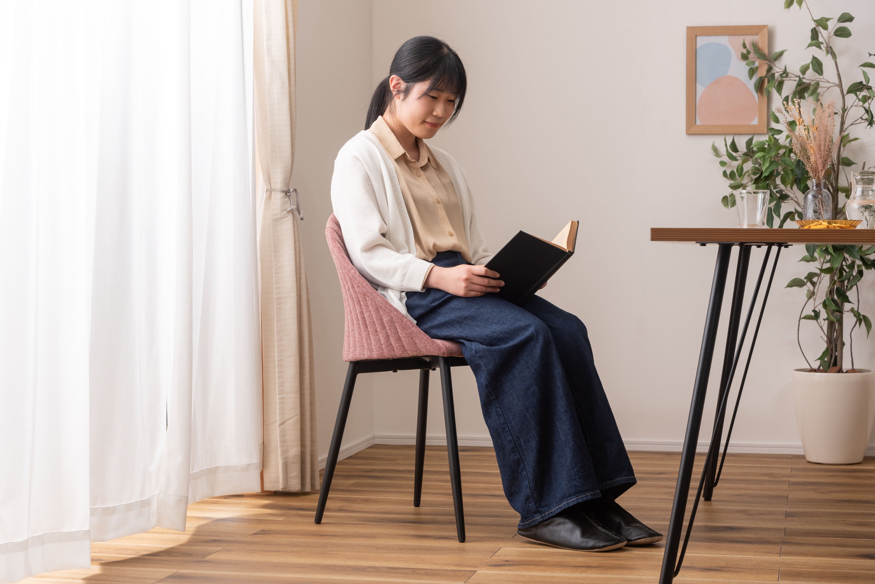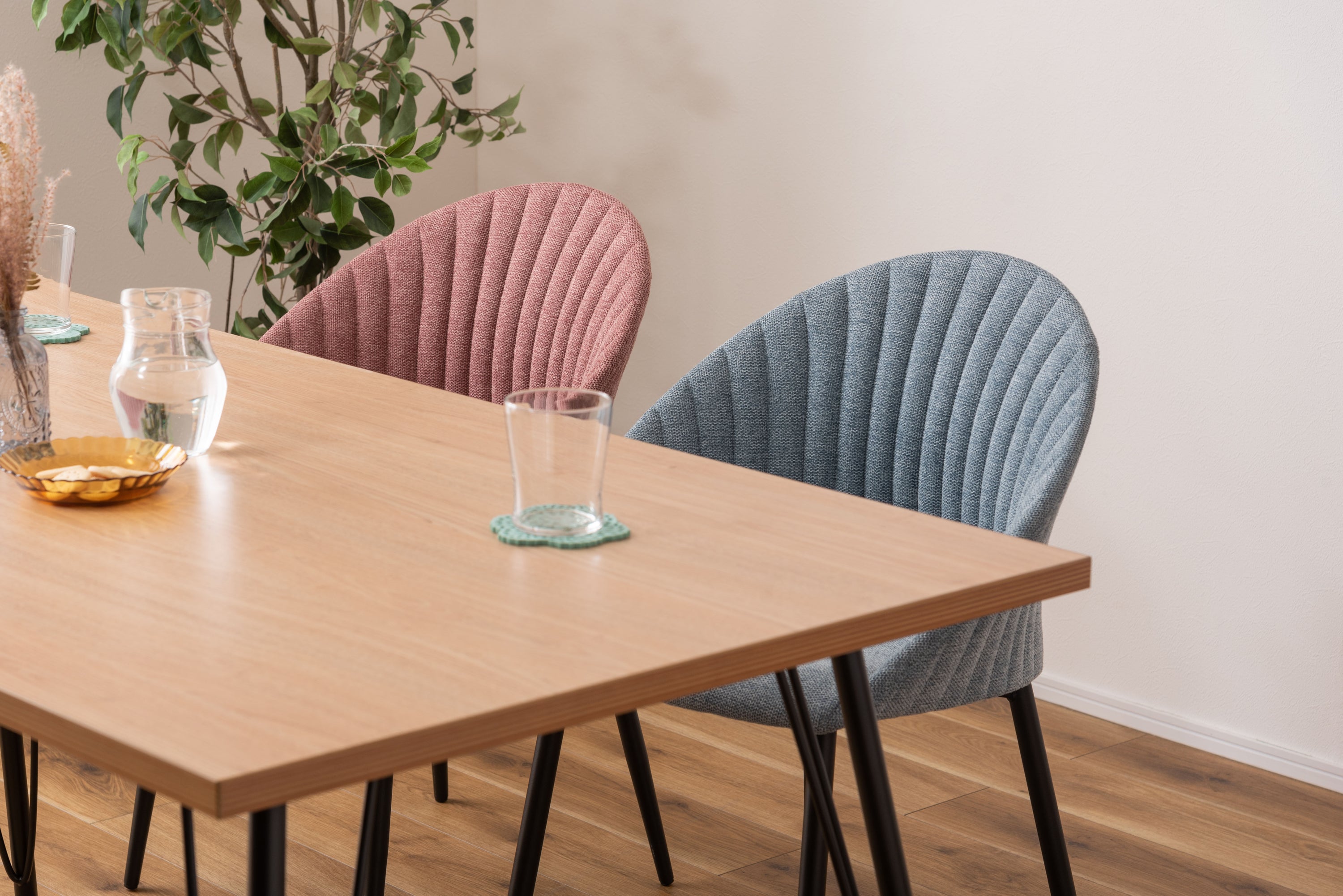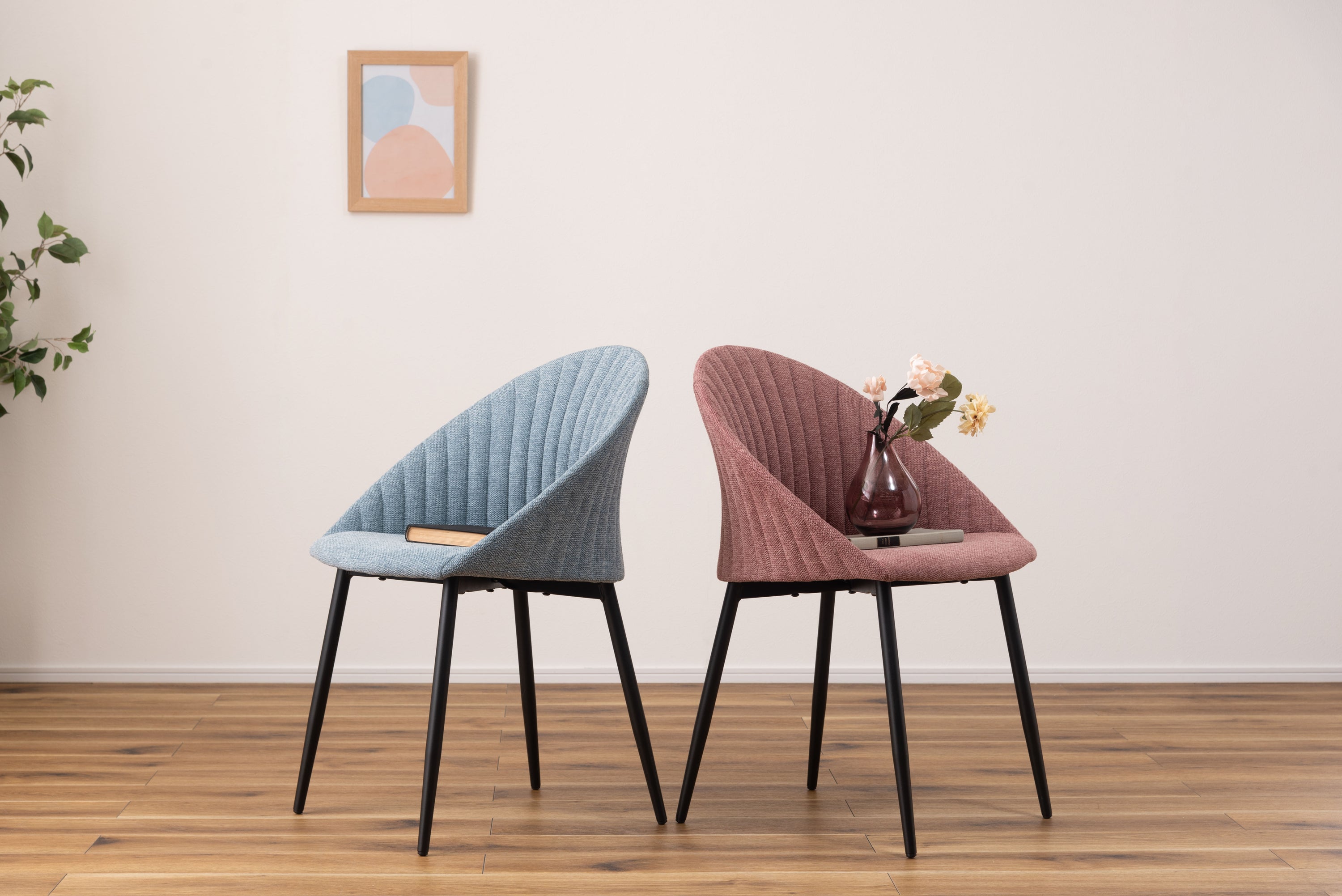 貝殻のようなコロンとした形が特徴的なリリムチェア。包み込まれるような立体構造でゆったりとくつろぐことができ、スタイリッシュなスチール脚がモダンな印象を与えます。ゆったりと座れる広めに作られた座面。背もたれの内側・外側どちらにも施されたデザイン性のあるステッチ。脚先に向けて細くなるテーパードレッグデザインなので、スチール脚のダイニングテーブルから北欧ナチュラルテイストのダイニングテーブルまで幅広く合わせられるチェア。脚先には保護パーツが付いているので、床への傷防止にもなり安心。