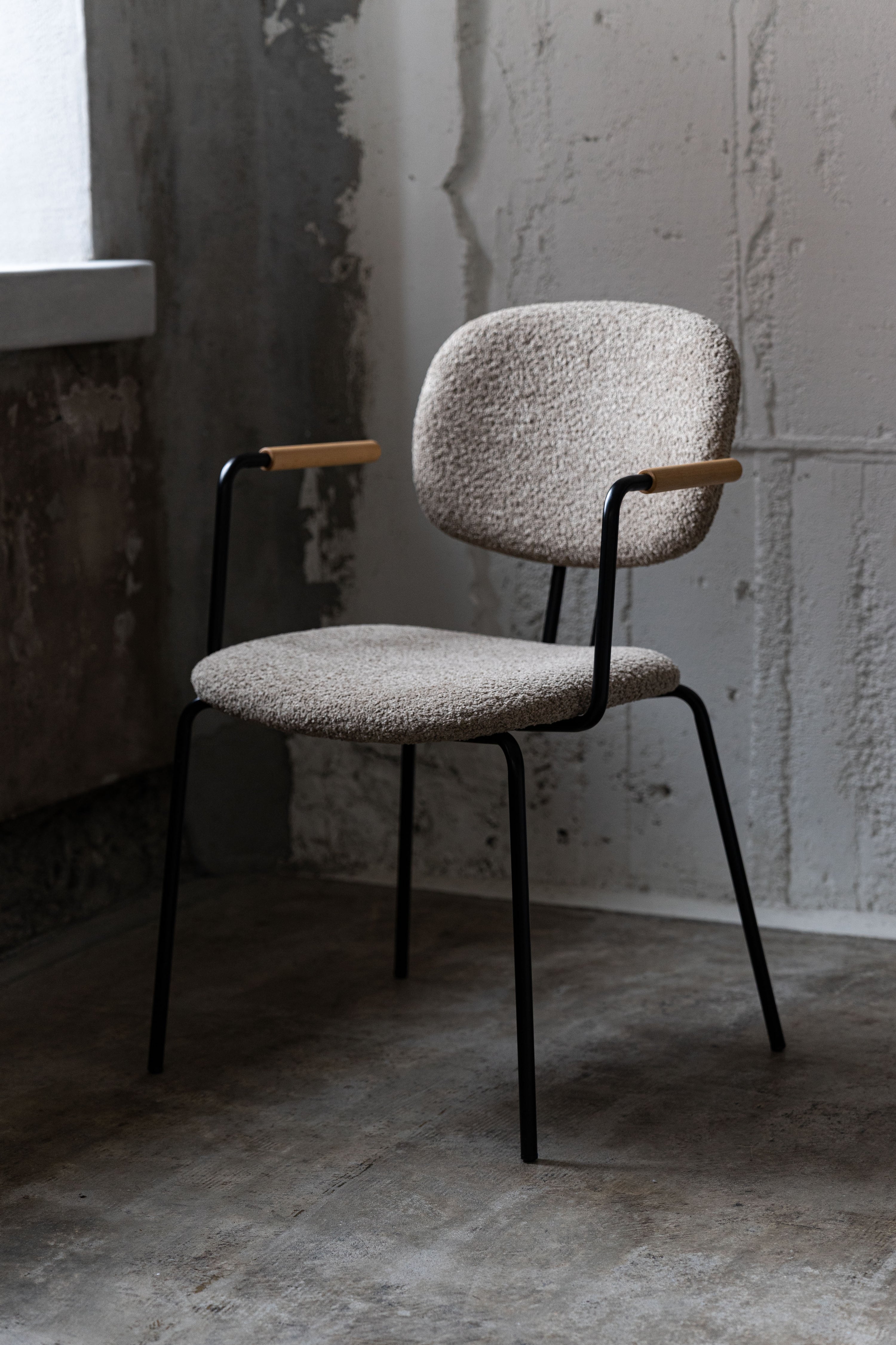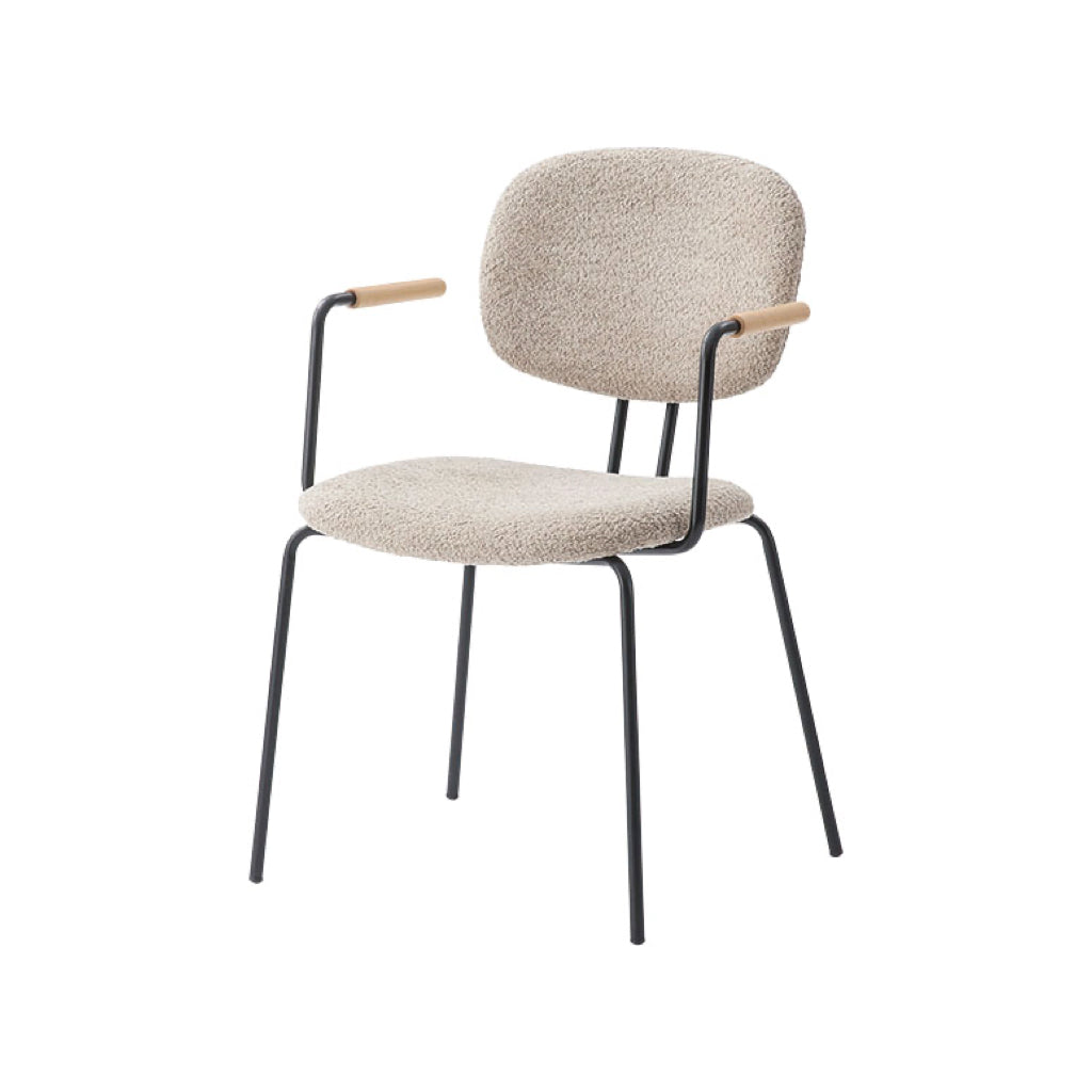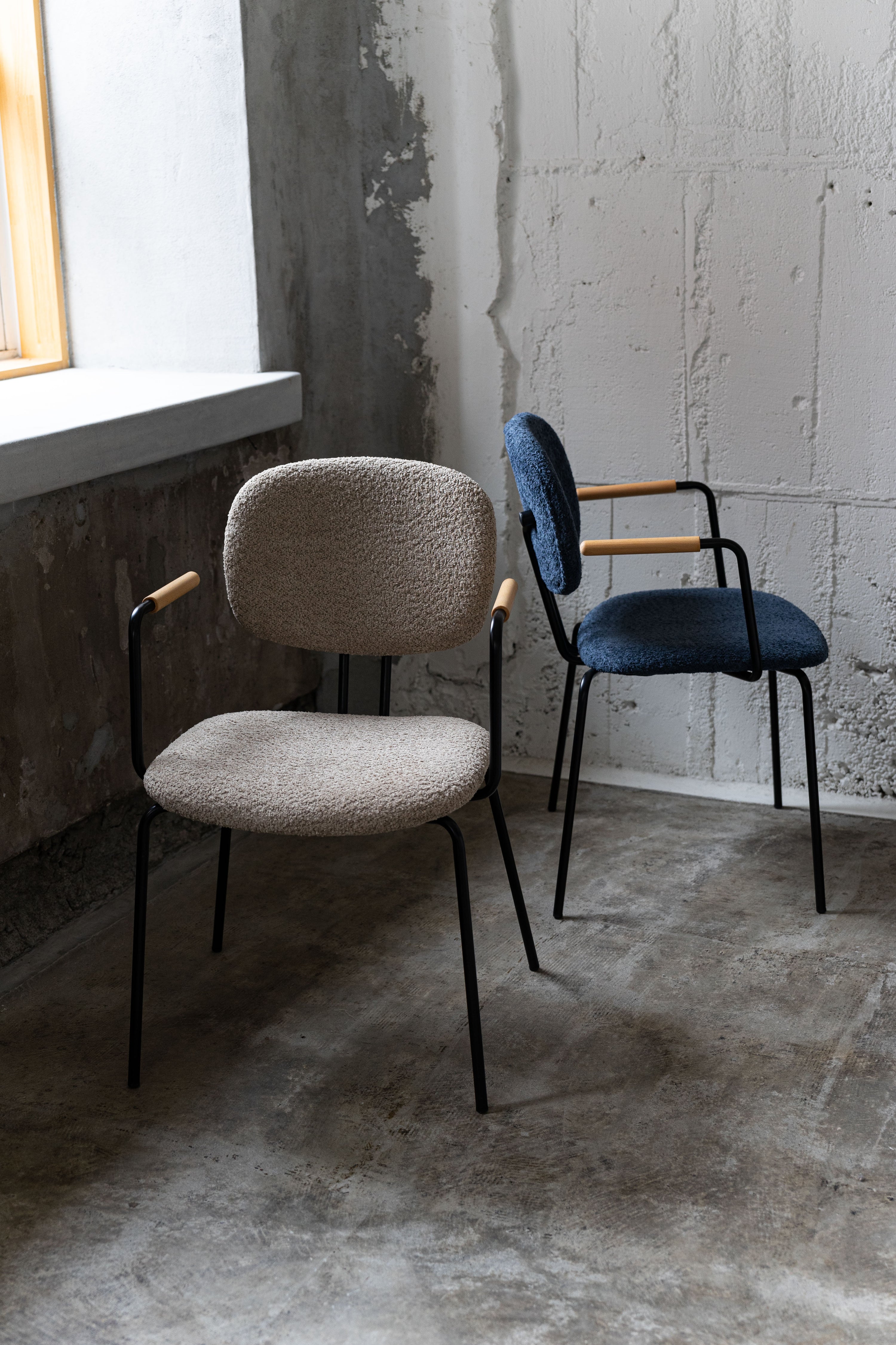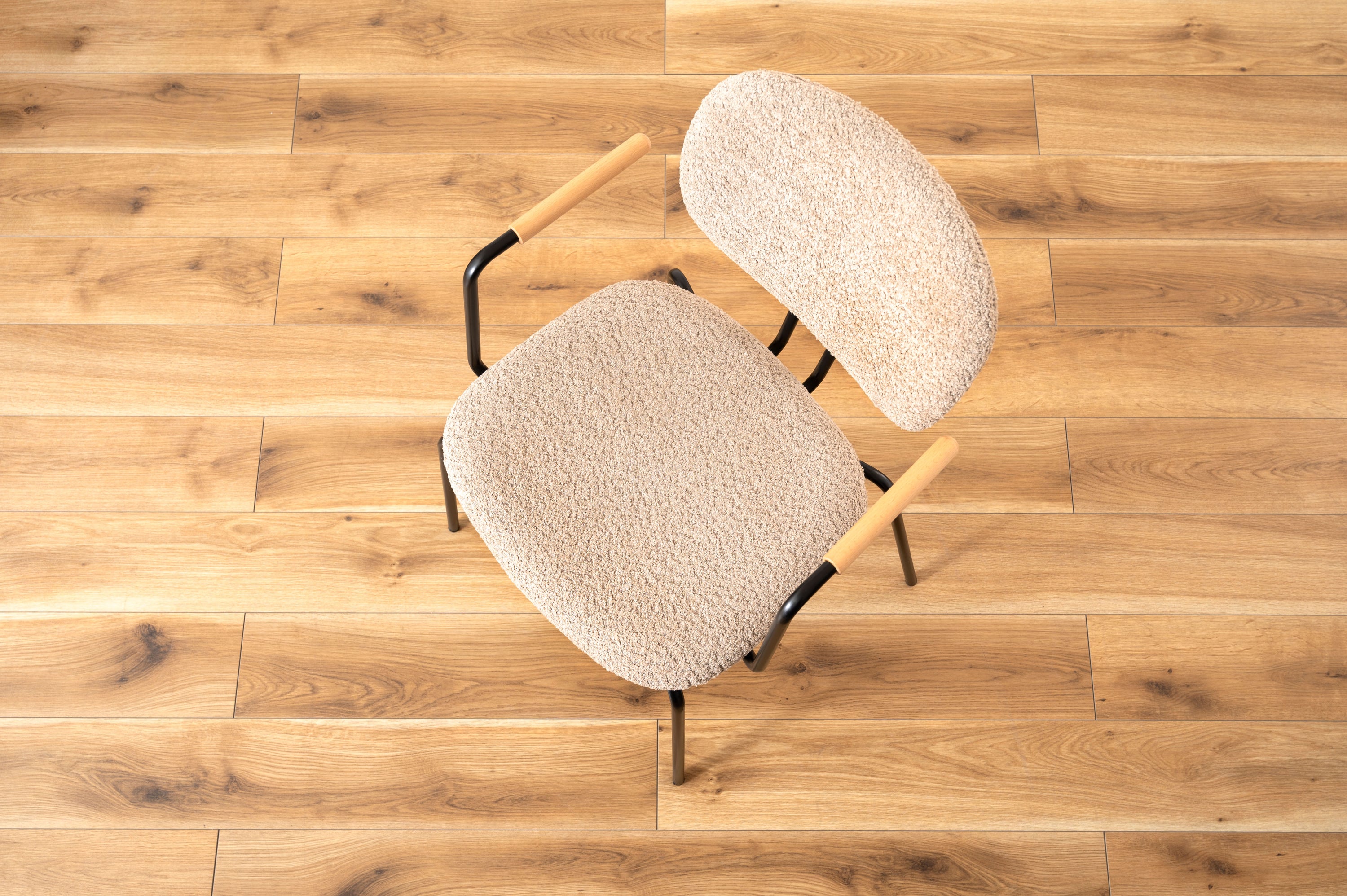 背面とアーム部分に個性的なデザインを施したアームチェアです。素材やディティールにもこだわり、唯一無二な存在感のある仕上がりになっています。面と背もたれのカーブが身体にフィットし、座りやすさをサポートします。しっかりと硬さのあるクッションで、長時間座っても疲れにくくなっています。