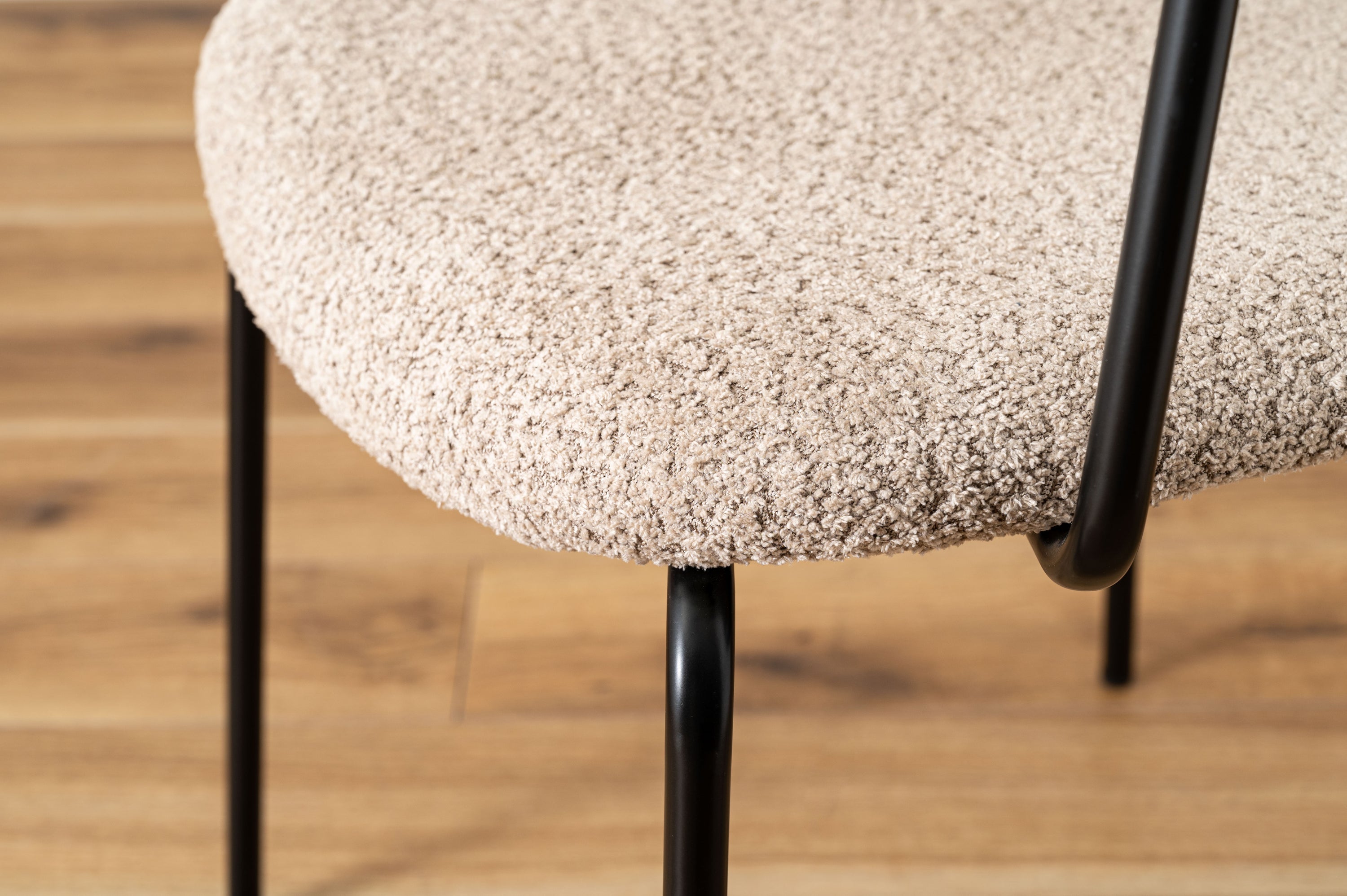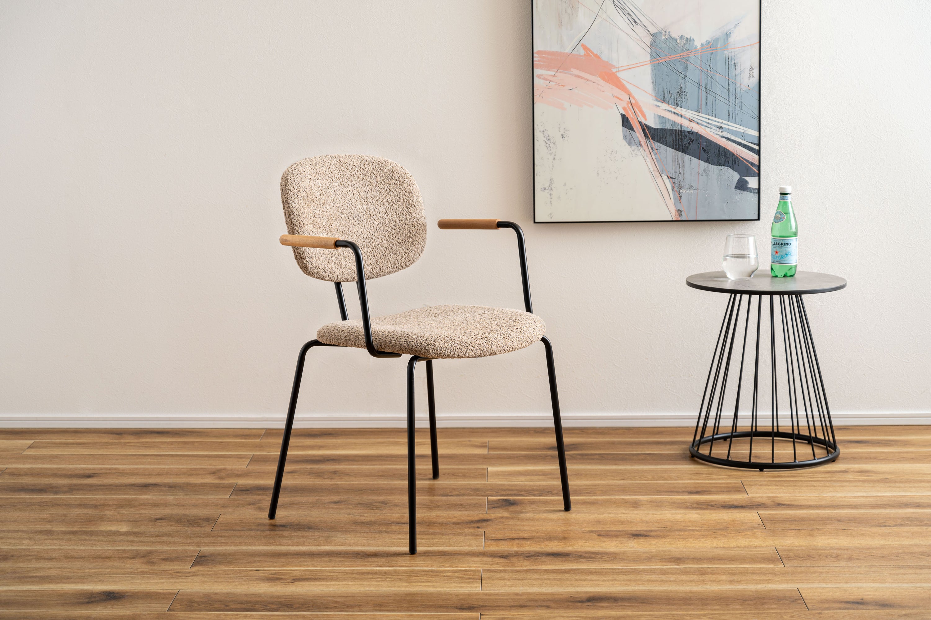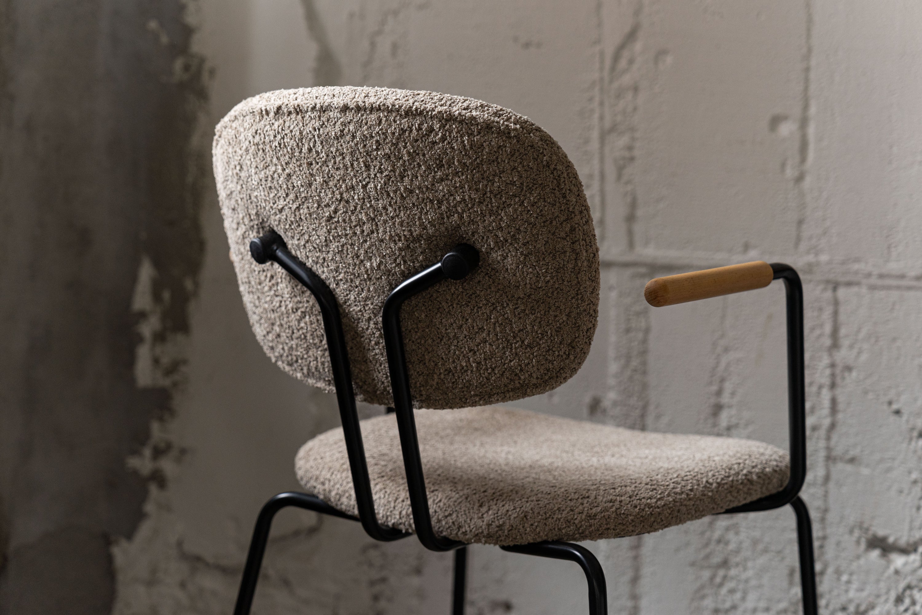 背面とアーム部分に個性的なデザインを施したアームチェアです。素材やディティールにもこだわり、唯一無二な存在感のある仕上がりになっています。面と背もたれのカーブが身体にフィットし、座りやすさをサポートします。しっかりと硬さのあるクッションで、長時間座っても疲れにくくなっています。