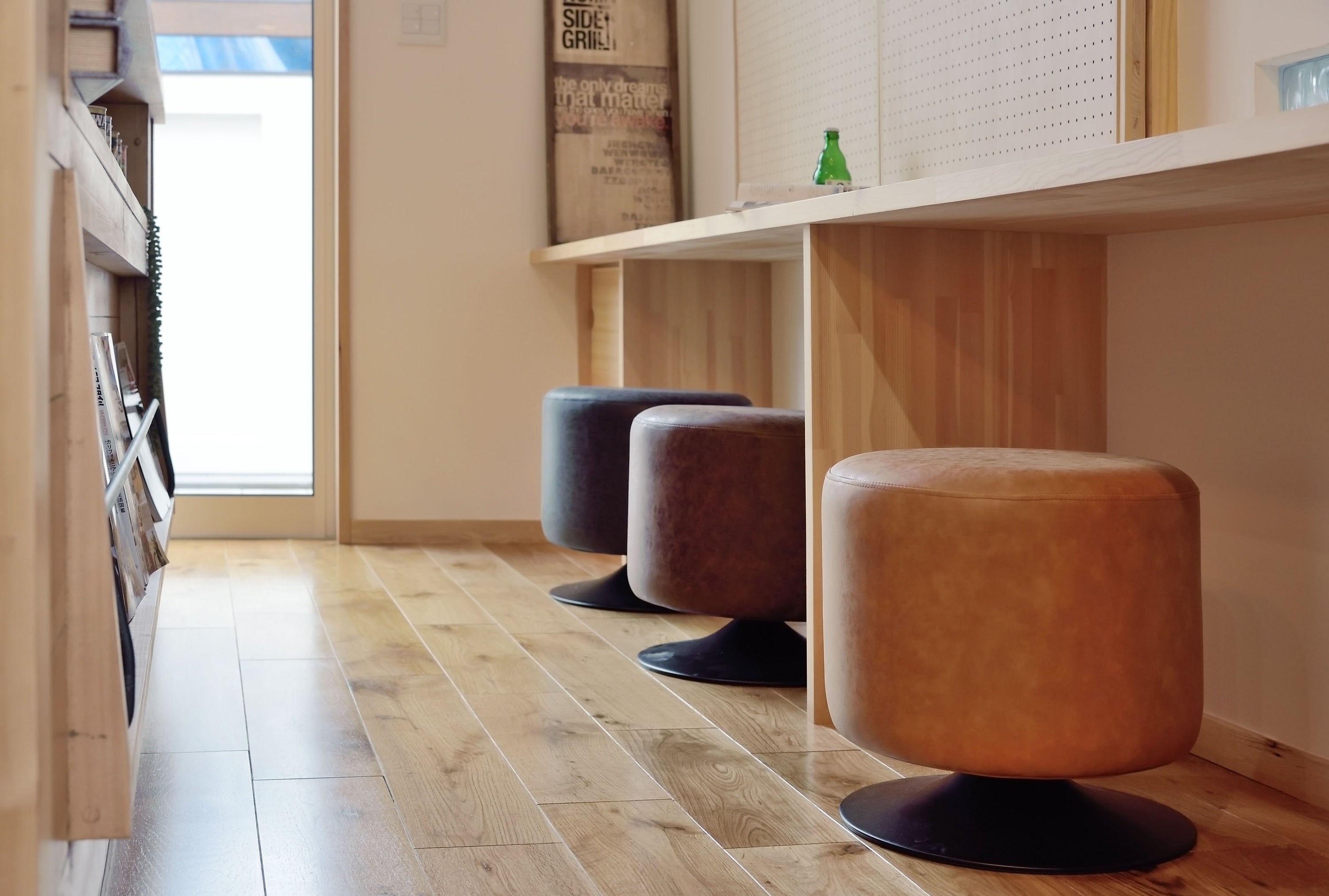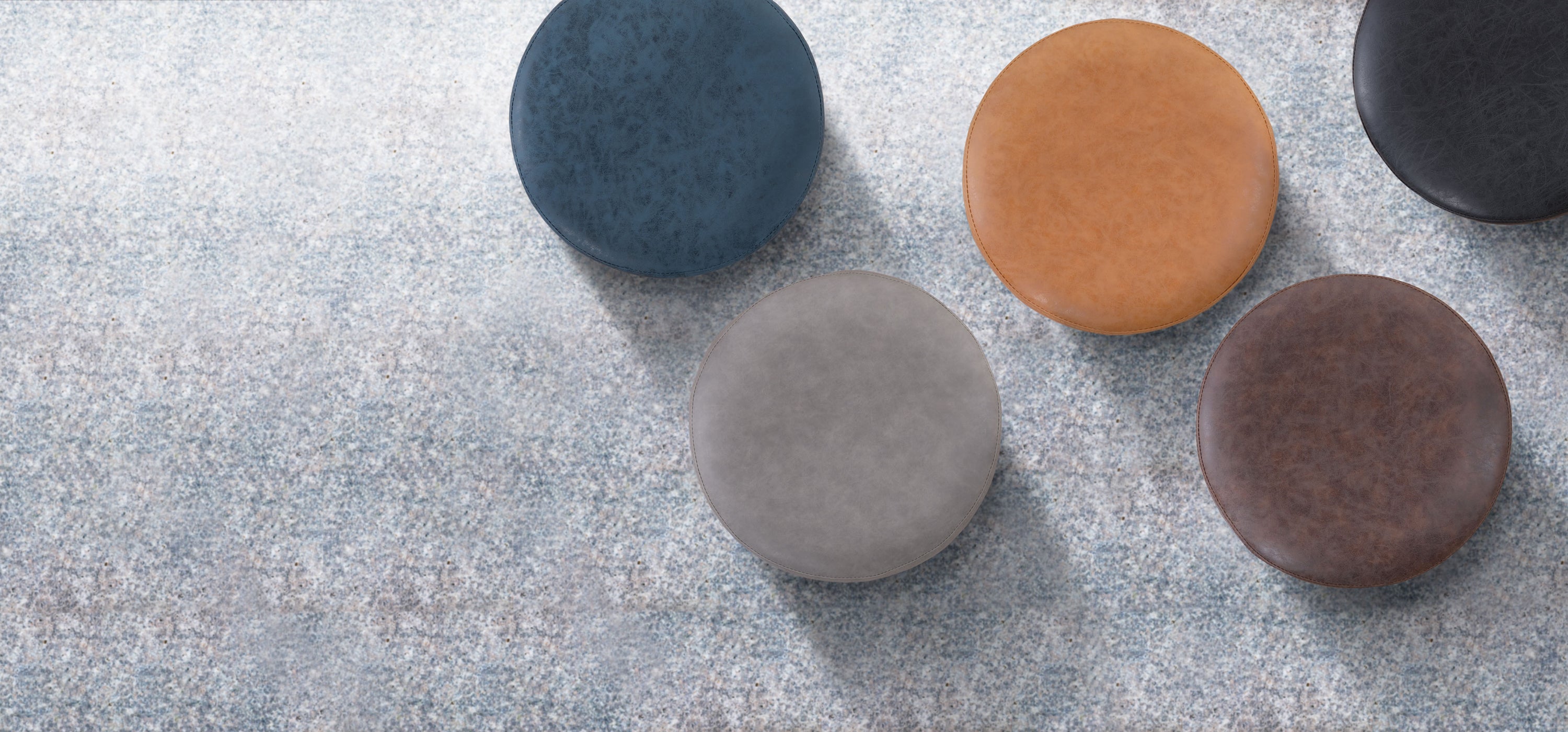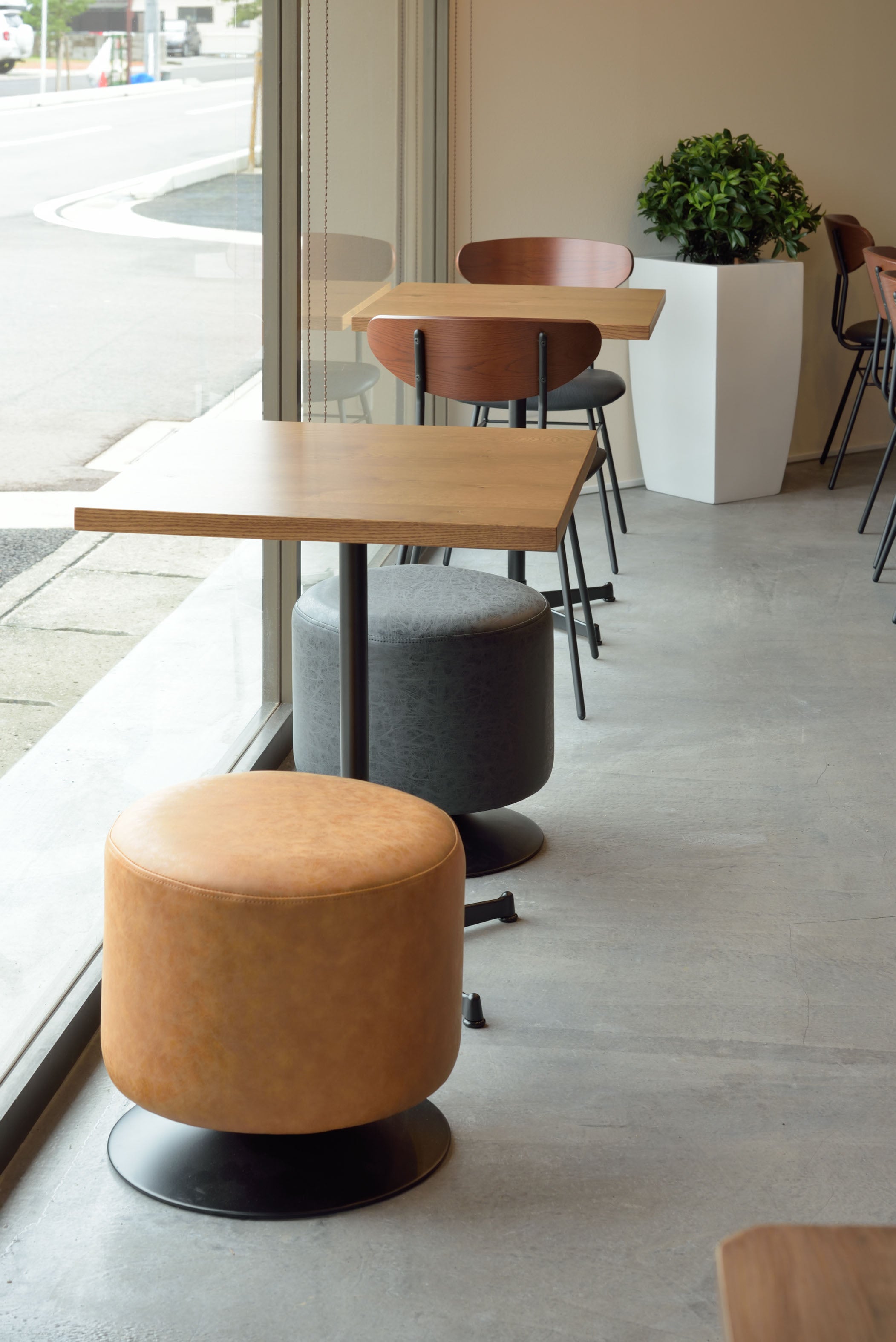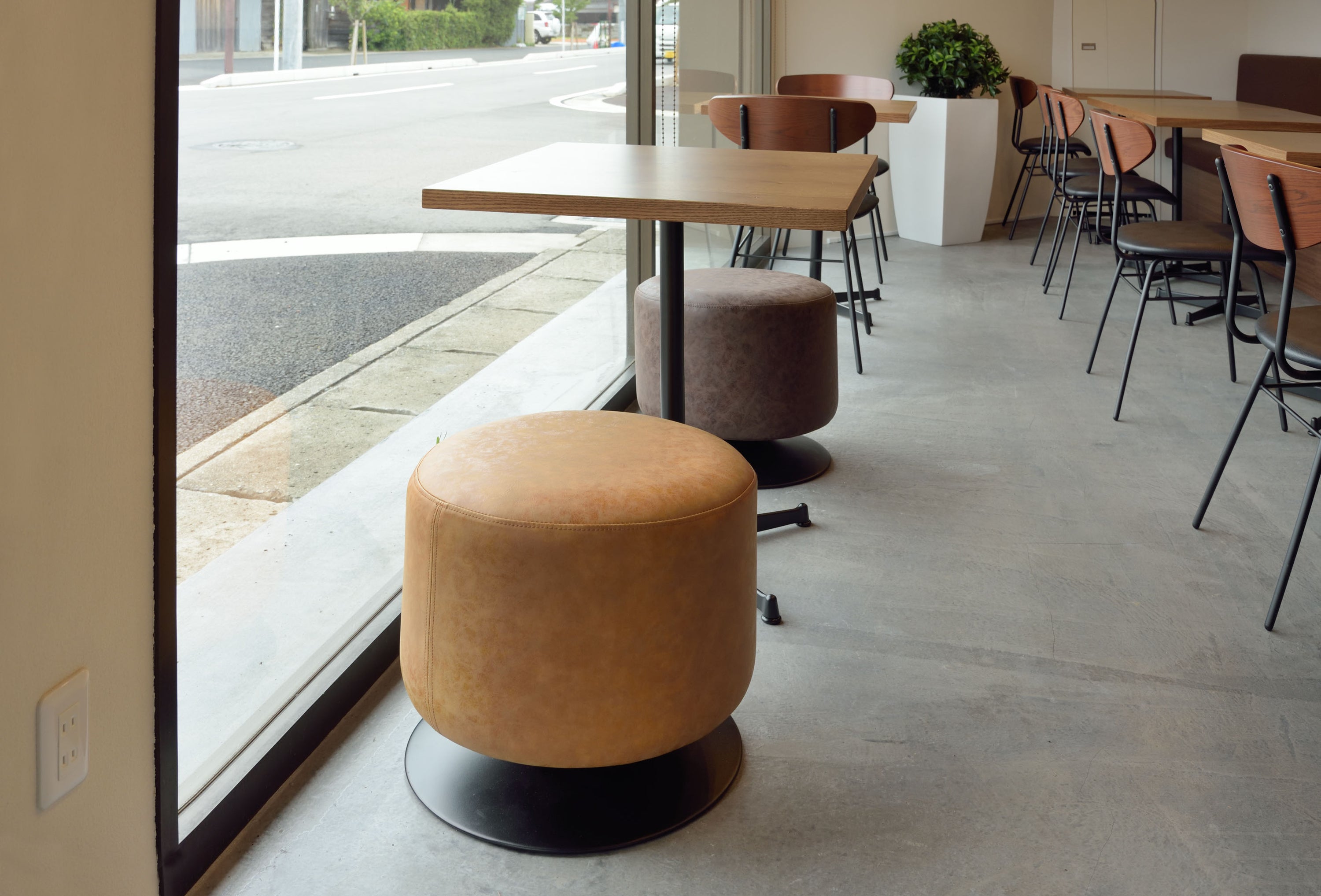 本革のような風合いのソフトレザーを使用した360°回転するスツール。 座面が直径40cm/本体重量約5kgと安定感のあるスツール。 土台となるスチールの裏面には保護材が付いた仕様。 ウレタン入り座面のしっかりとした座り心地。 座面高40cmとチェアに近い高さなので様々なシーンで使える丁度良いサイズ。 リビングなどの壁面作業台やサイドデスクのスツールとして。 寝室のデスク・ドレッサー周りのスツールとして。 ダイニング周りの予備スツールとして。 狭いスペースでも立ち座りしやすく玄関スツールとしても便利。 ソファ前に置いてオットマンとして。 ソファ横に置いてちょっとした小物置きスペースとしても。 直径40×高さ40cmの持ち運べるサイズ。