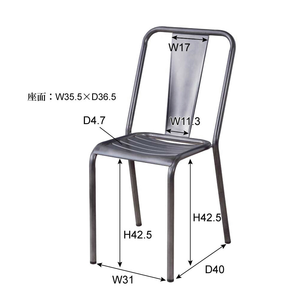 スチールの質感を生かし、シンプルなデザインに仕上げたチェア。 スタッキングが可能なため、ダイニングチェアとしてはもちろんのこと、 カフェやセミナー等にもご利用頂けます。