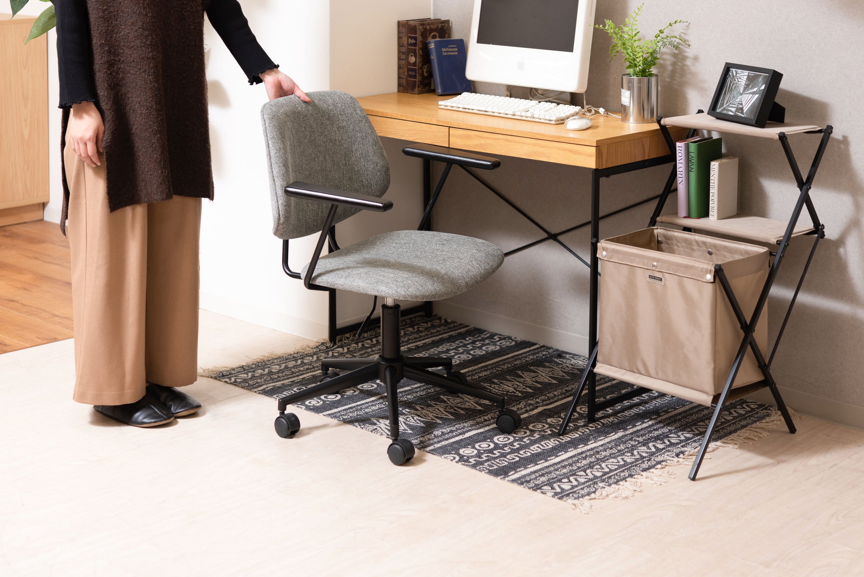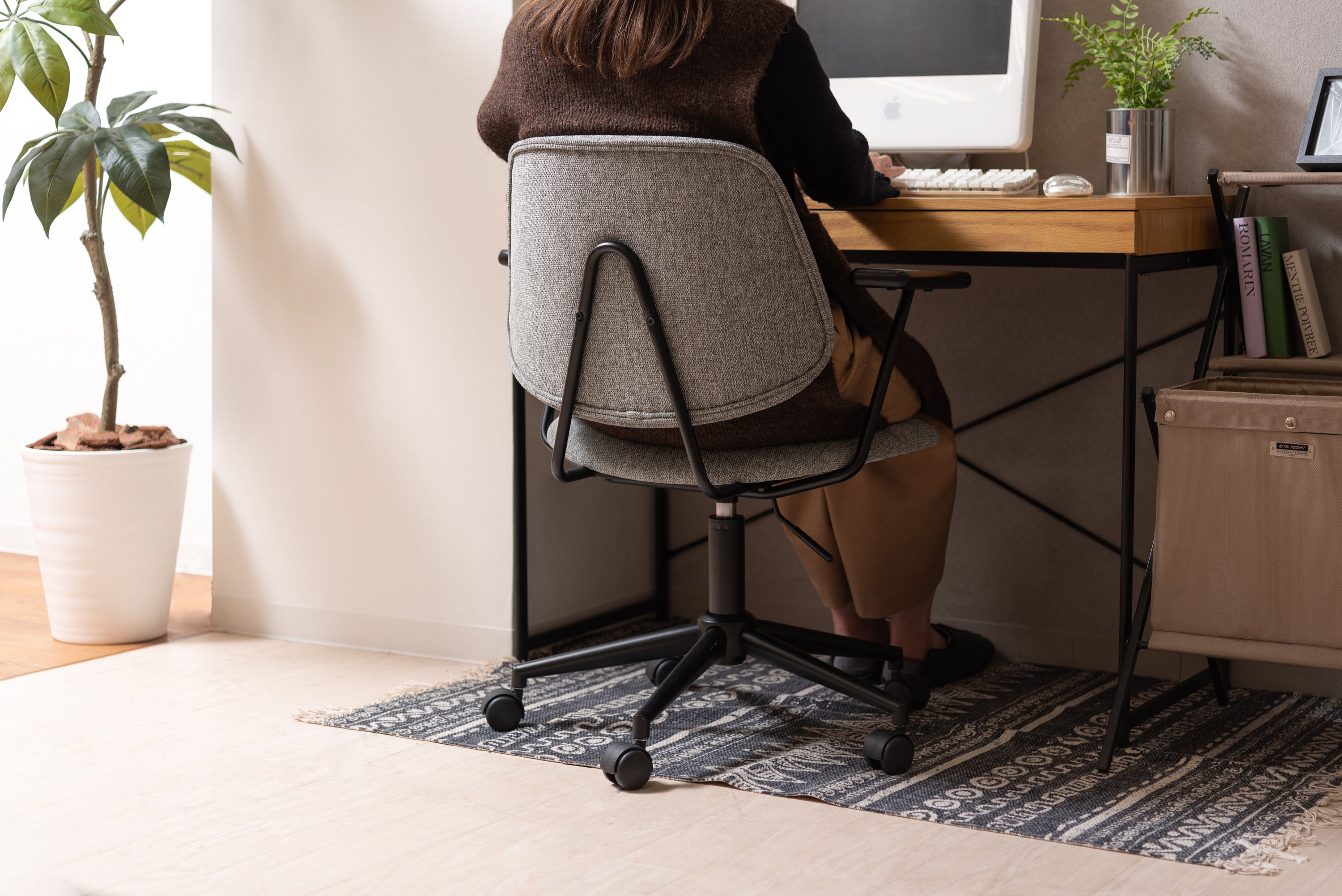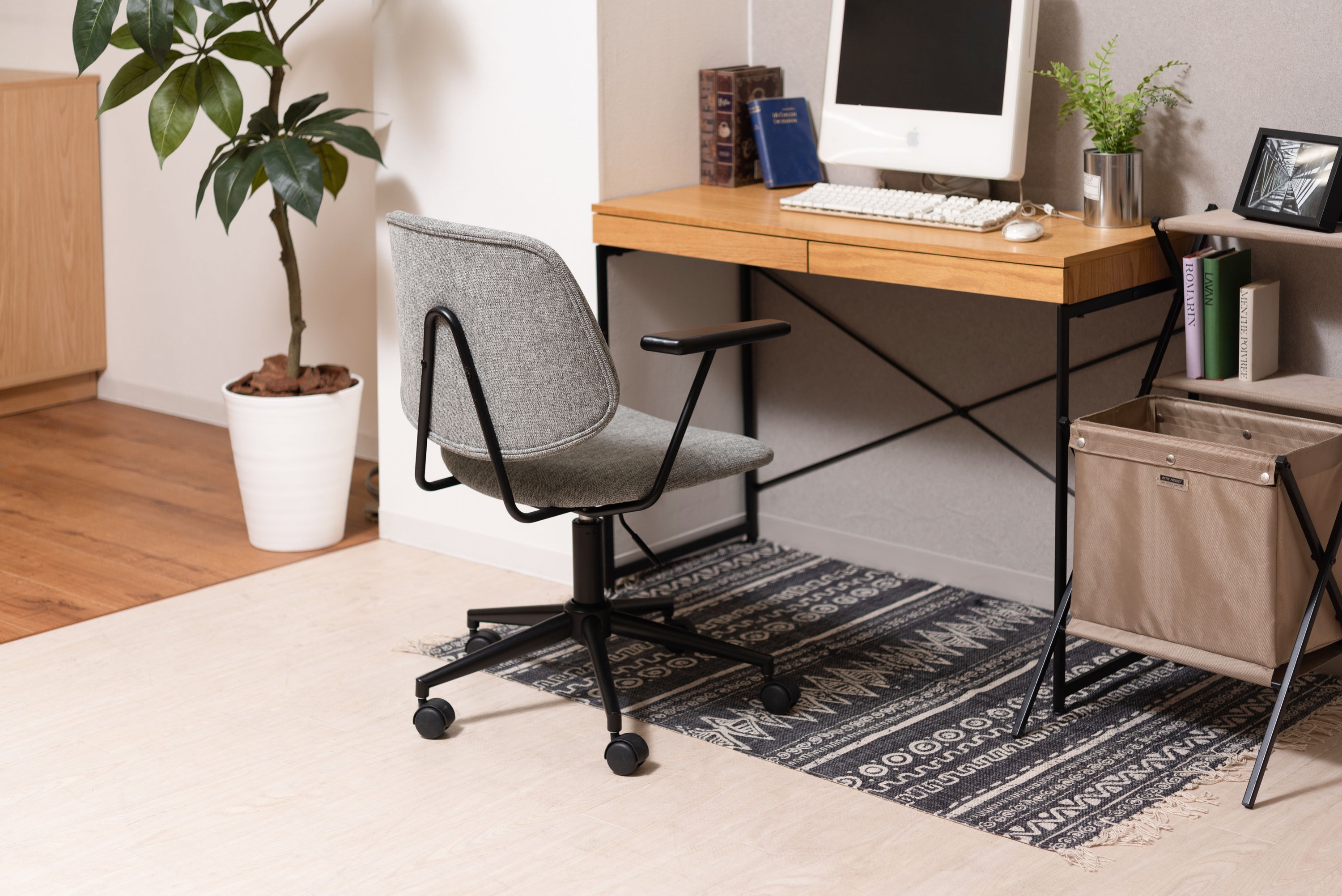 ROOMESSENCEのデスクチェアグレーです。長時間でも快適な座り心地を備え、ダイニングやワークスペースに活躍します。ブランドの美意識を感じる佇まいで、日常づかいから来客時まで幅広く対応。品番:PC-80GY。暮らしに上質なアクセントを添える一品です。