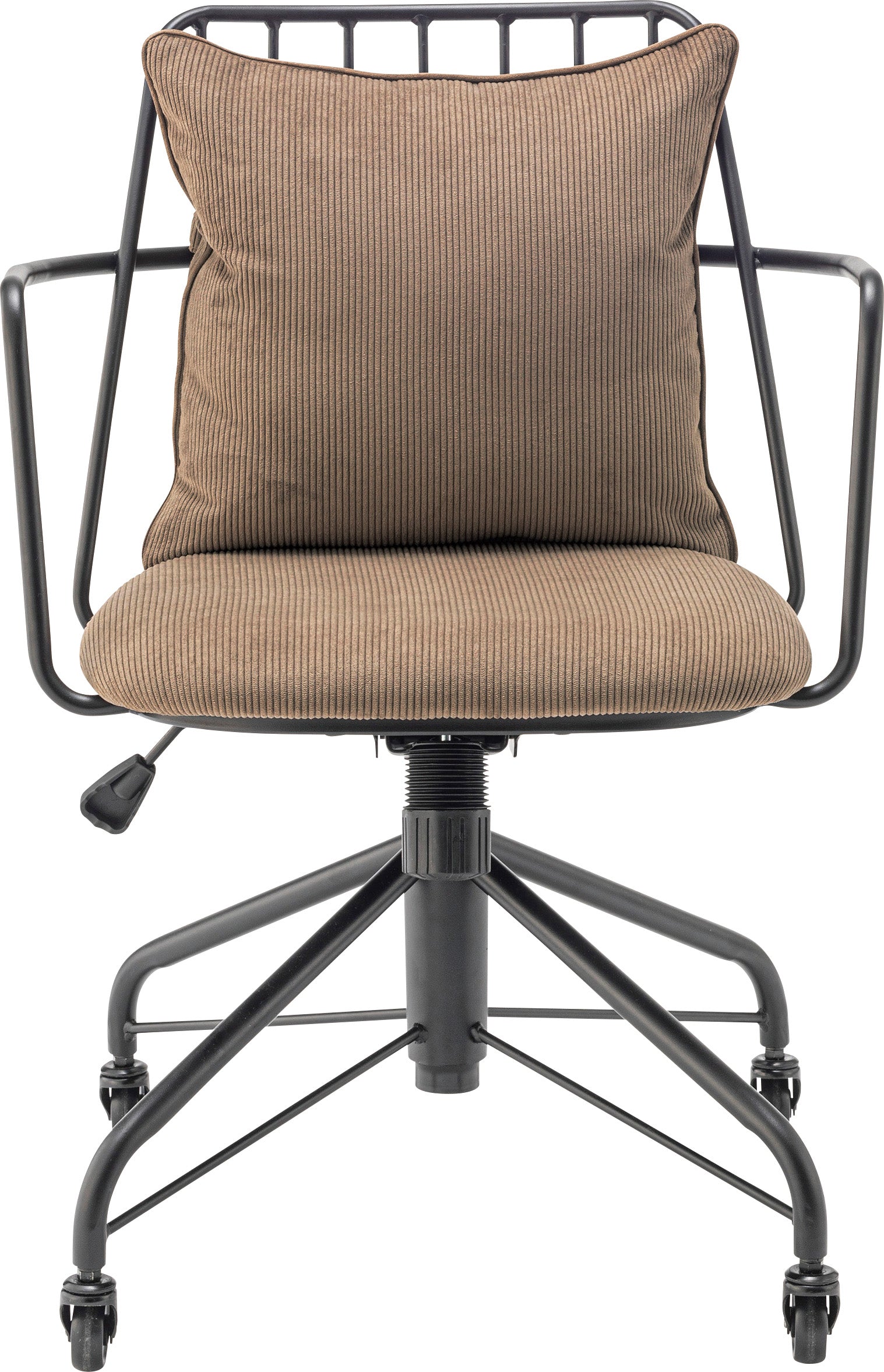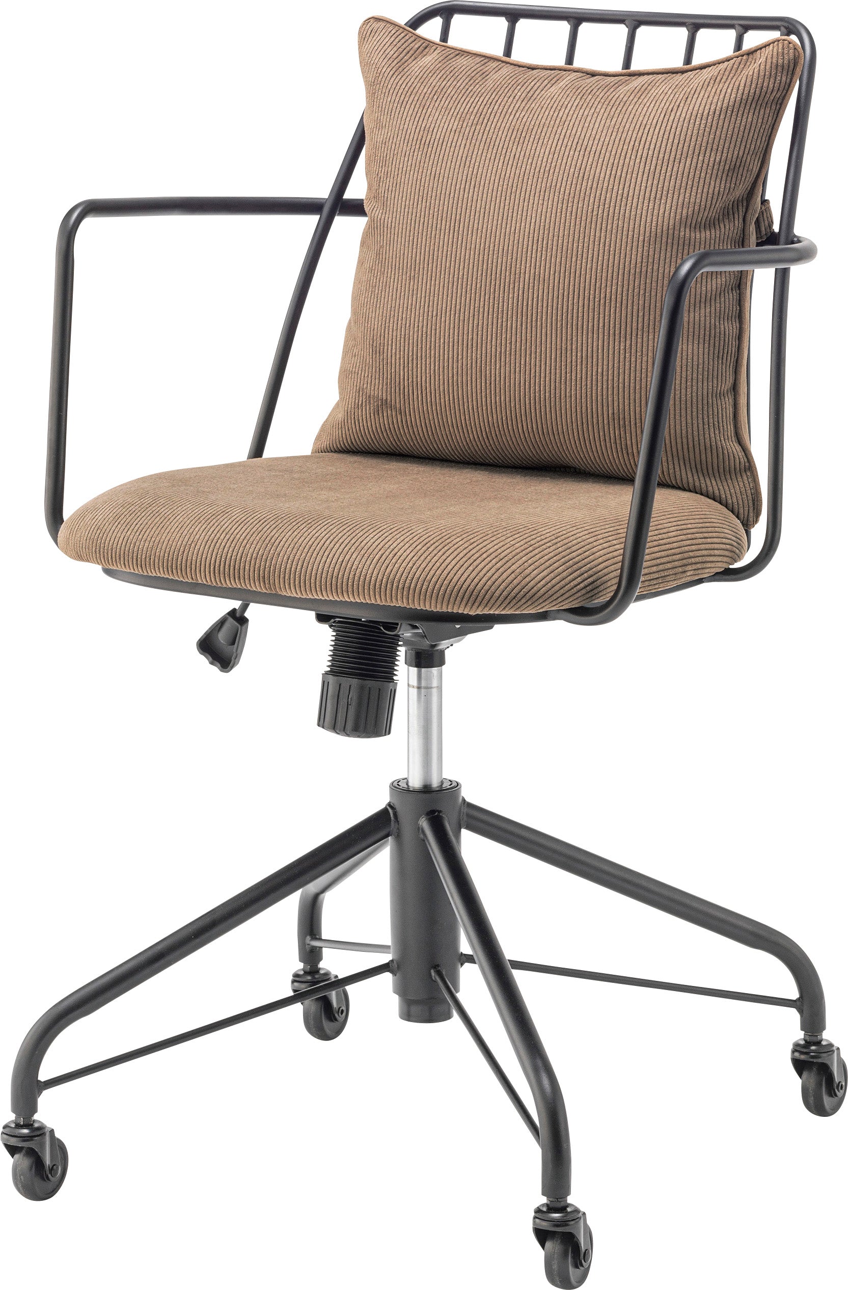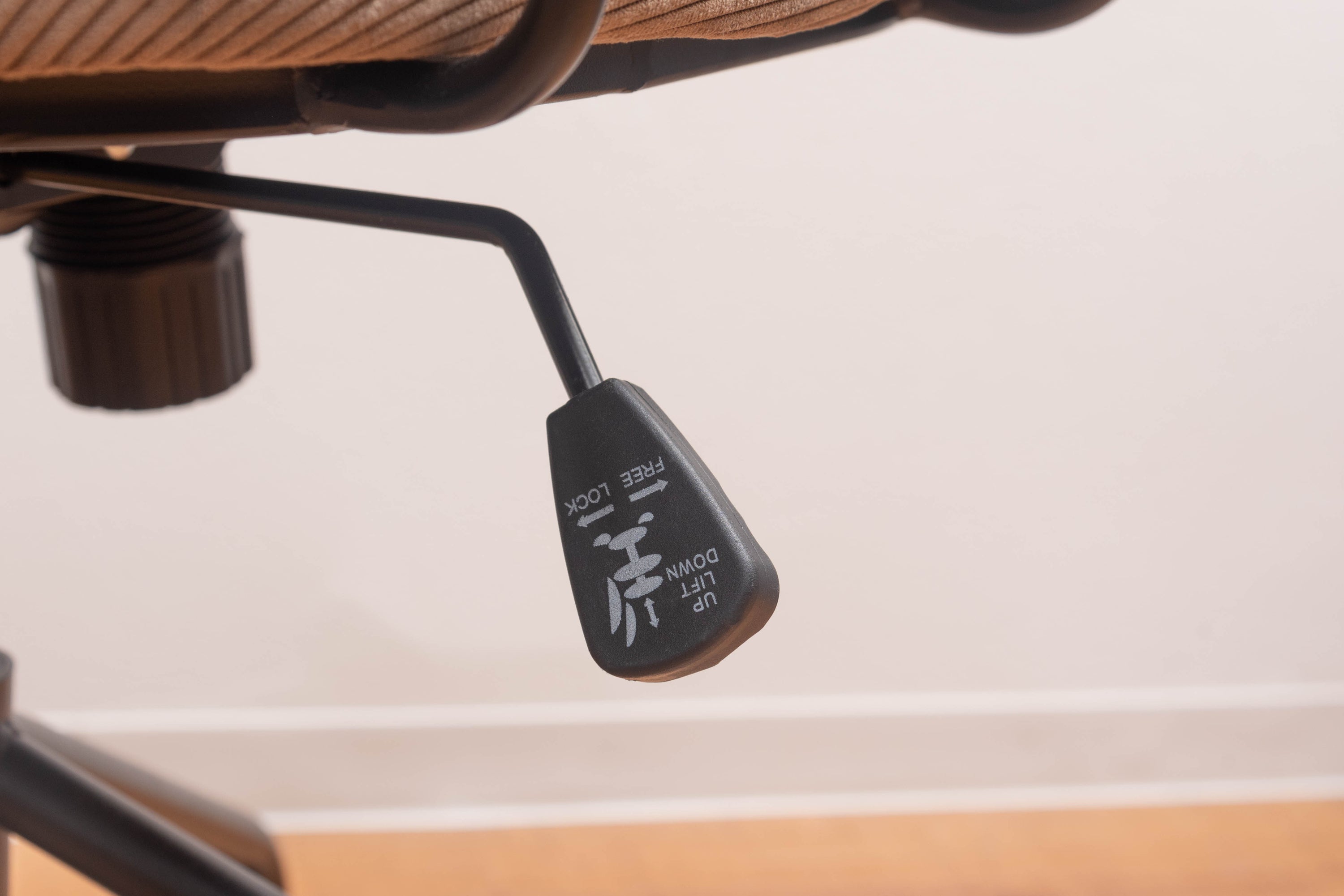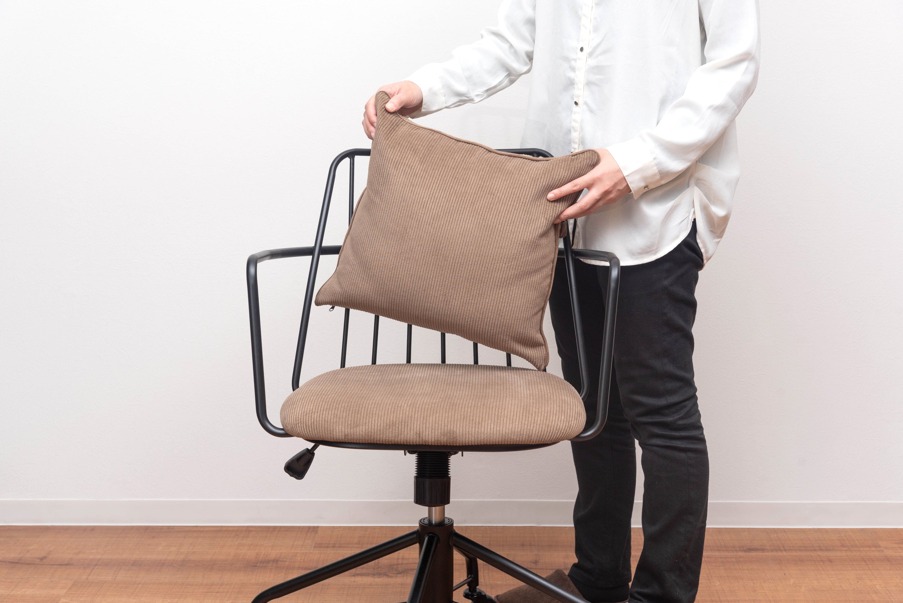 インテリア性の高いコーデュロイ生地を使用した、ヴィンテージテイストのデスクチェア。フレームには強度のあるシャープな印象のスチールを使用。座面の高さは47~54cmまで高さ調整が可能な昇降式。シリンダーを使用しているので、手元のレバーを操作するだけの簡単仕様。キャスター付きなので移動もらくらく。機能性と共にデザイン性も兼ね備えたデスクチェアなので、書斎はもちろんリビング・ダイニングルームでも使えるデザイン。ロッキング機能が付いているので、座面の前後の動きを時々の使用状況に合わせてロック・フリーどちらにも使い分けることができます。座面下にはロッキングの強さを調整できるダイヤル付き。