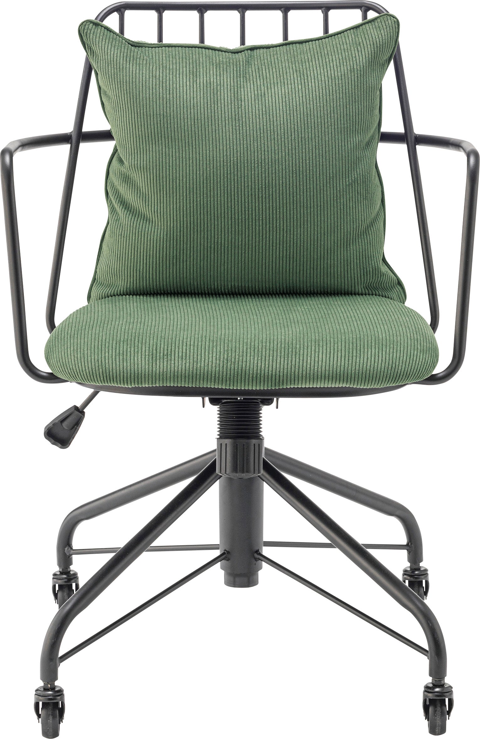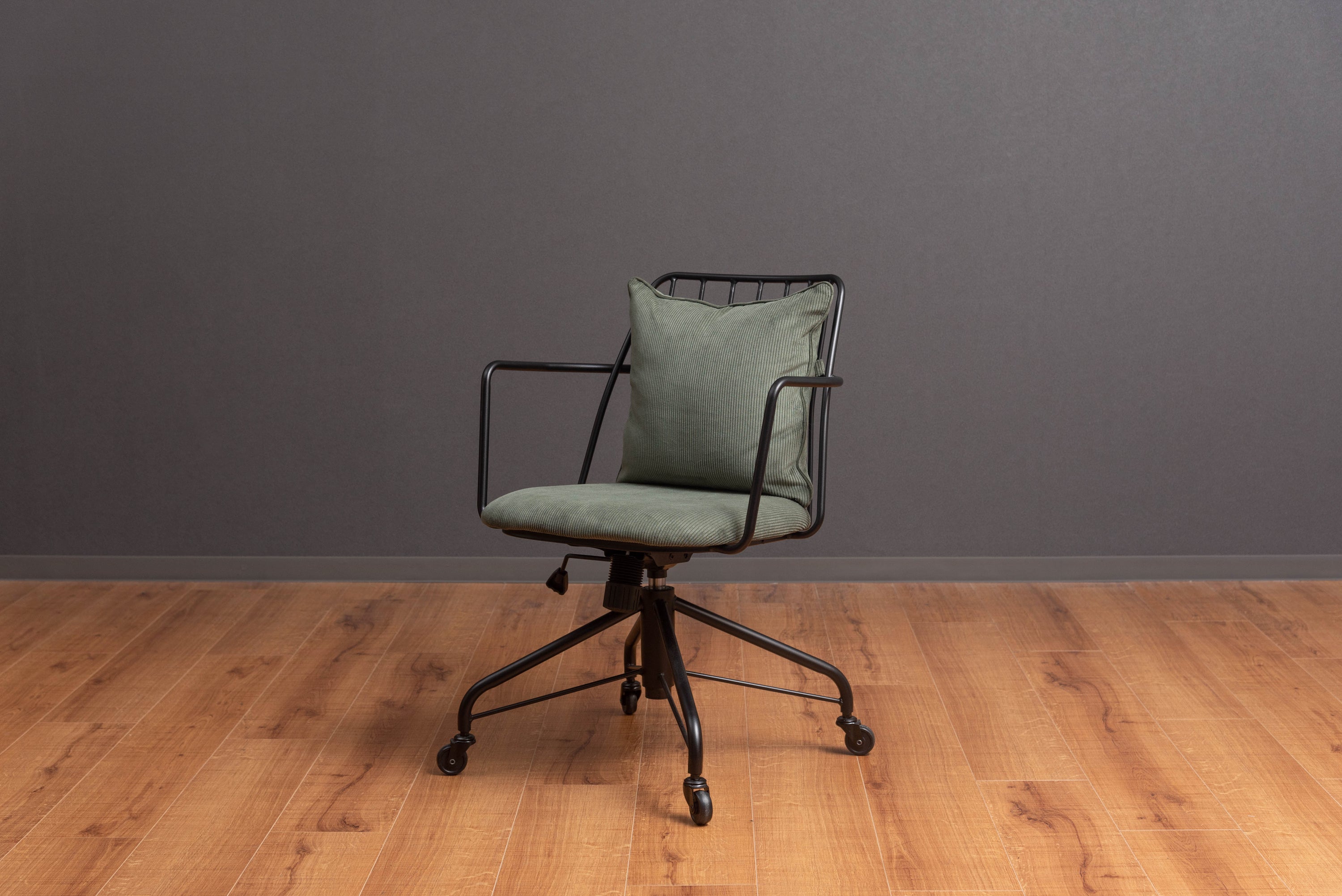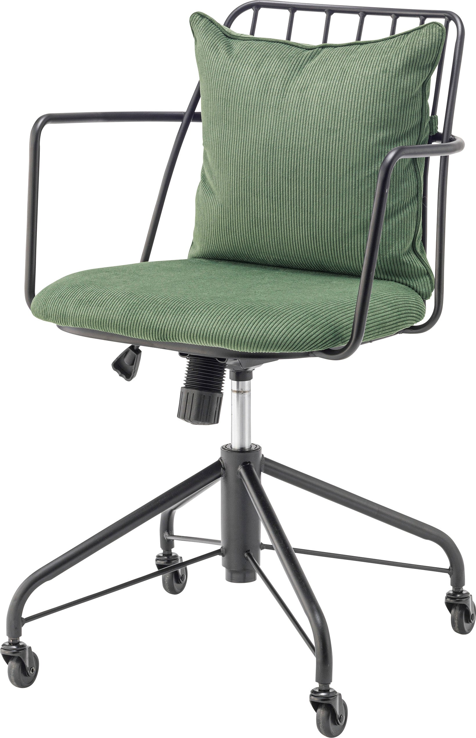 インテリア性の高いコーデュロイ生地を使用した、ヴィンテージテイストのデスクチェア。フレームには強度のあるシャープな印象のスチールを使用。座面の高さは47~54cmまで高さ調整が可能な昇降式。シリンダーを使用しているので、手元のレバーを操作するだけの簡単仕様。キャスター付きなので移動もらくらく。機能性と共にデザイン性も兼ね備えたデスクチェアなので、書斎はもちろんリビング・ダイニングルームでも使えるデザイン。ロッキング機能が付いているので、座面の前後の動きを時々の使用状況に合わせてロック・フリーどちらにも使い分けることができます。座面下にはロッキングの強さを調整できるダイヤル付き。