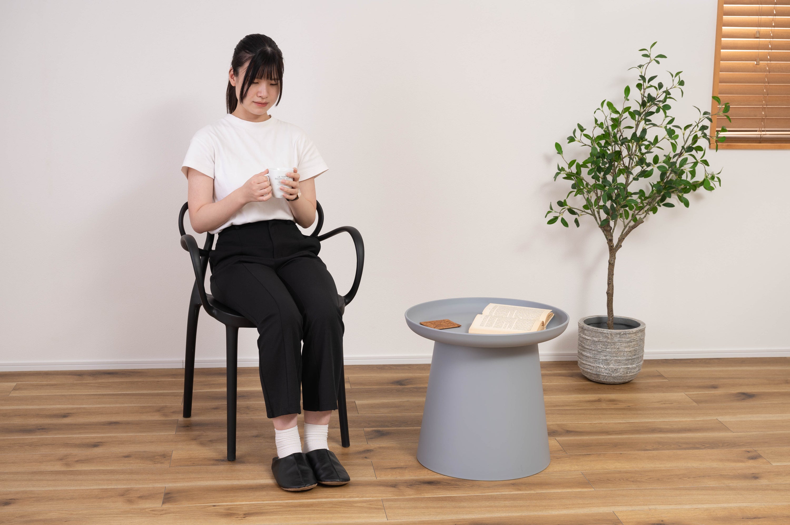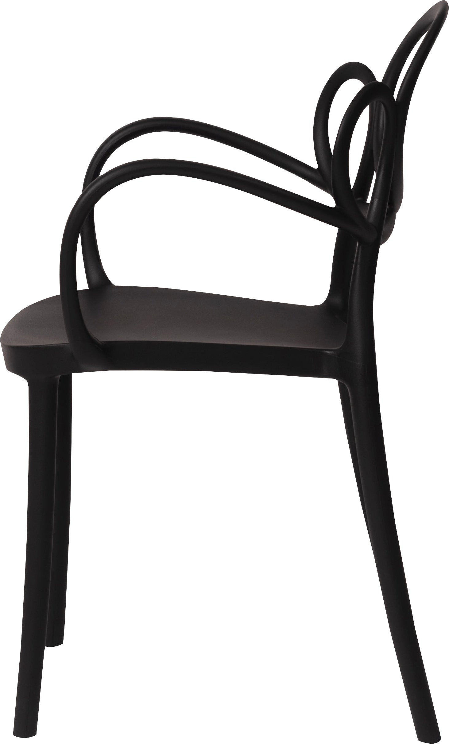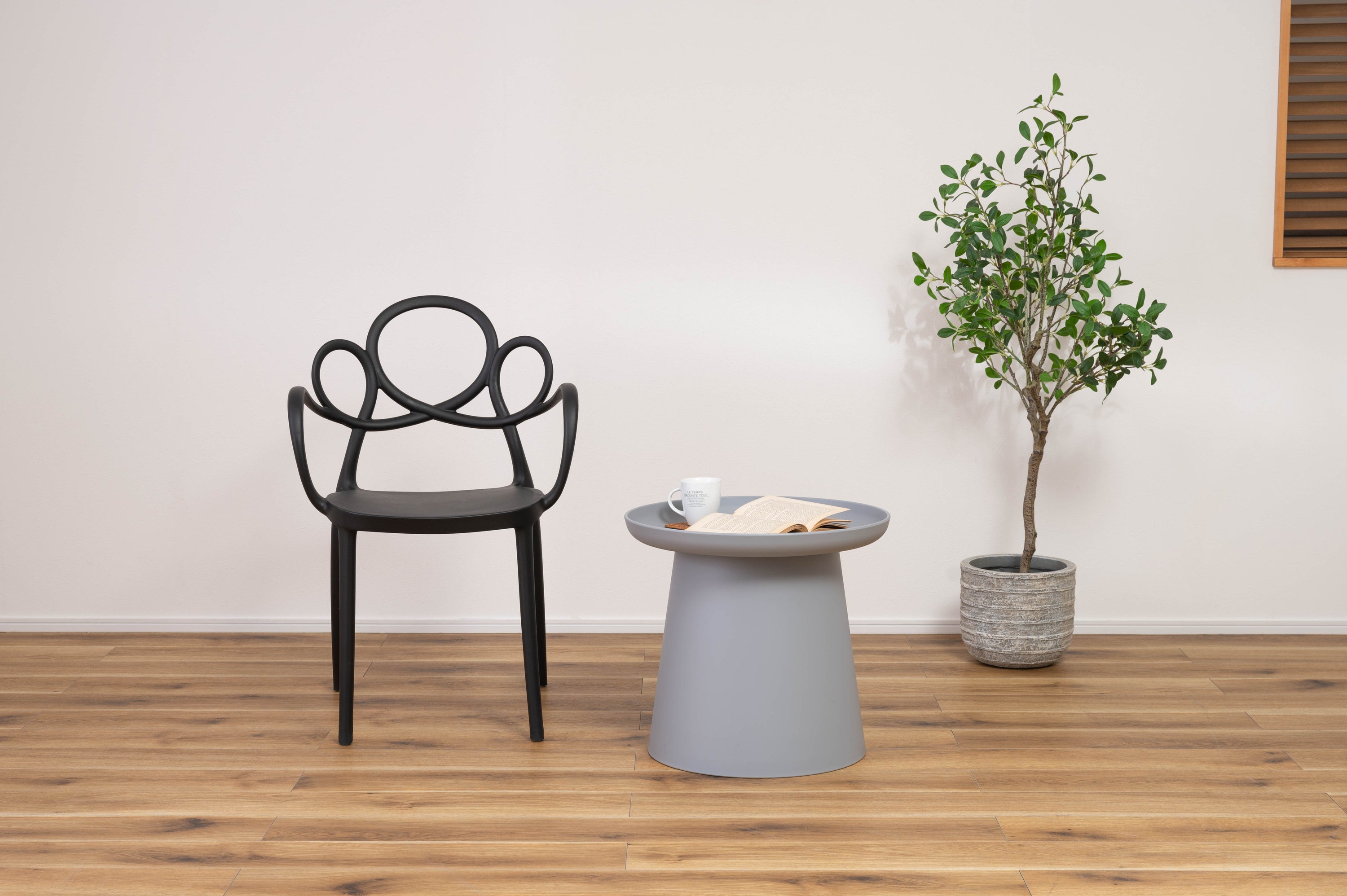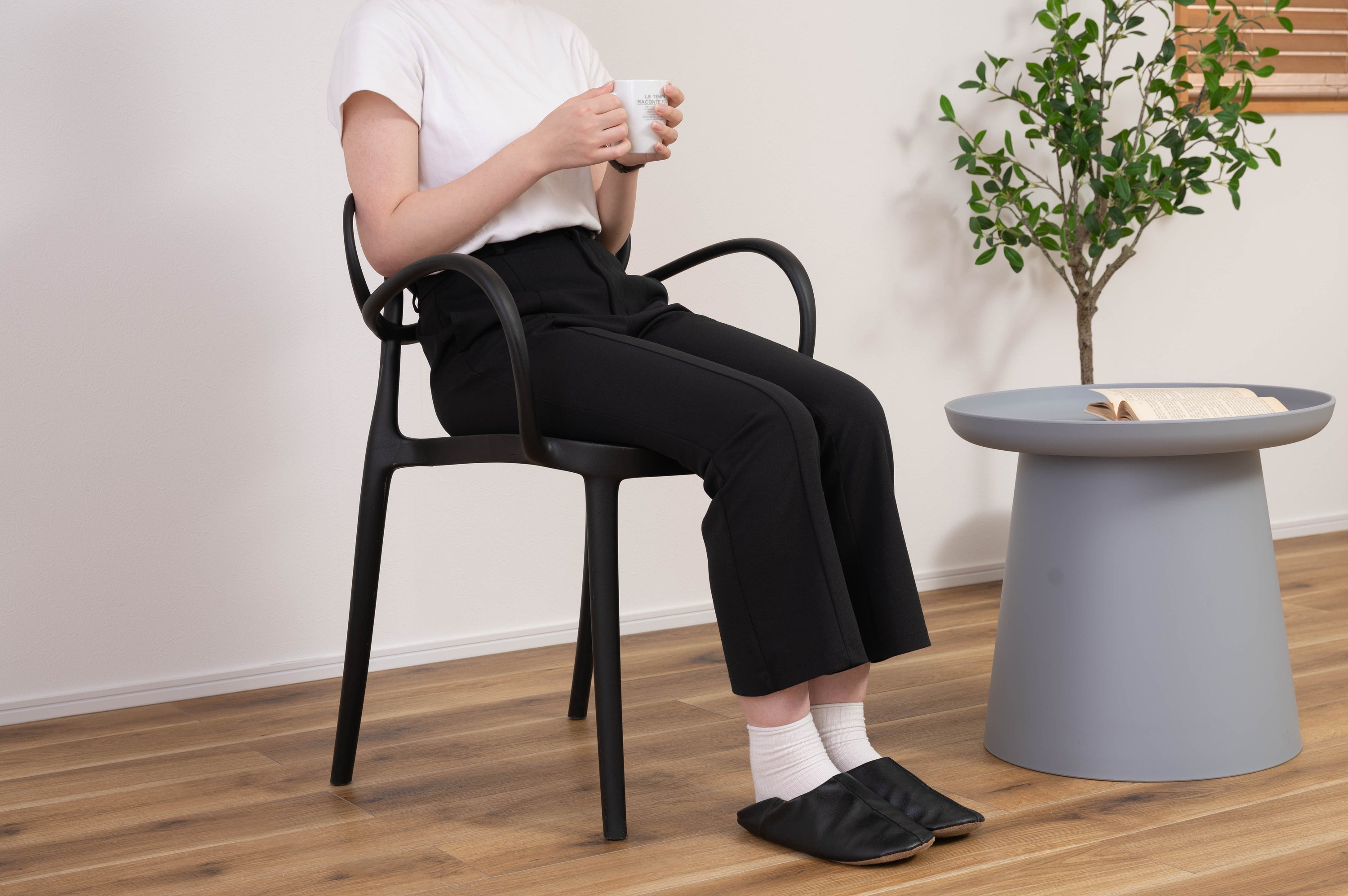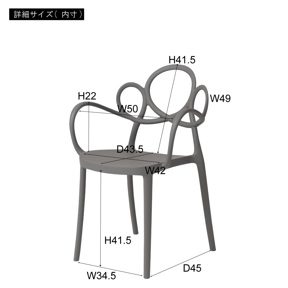 アーム部分の曲線がひじや手にぴったりと沿うデザインのチェアです。汚れてもお手入れのしやすいポリプロピレン素材を使用しています。スタッキング可能なのでコンパクトに収納できて場所を取らず、片付けも簡単です。