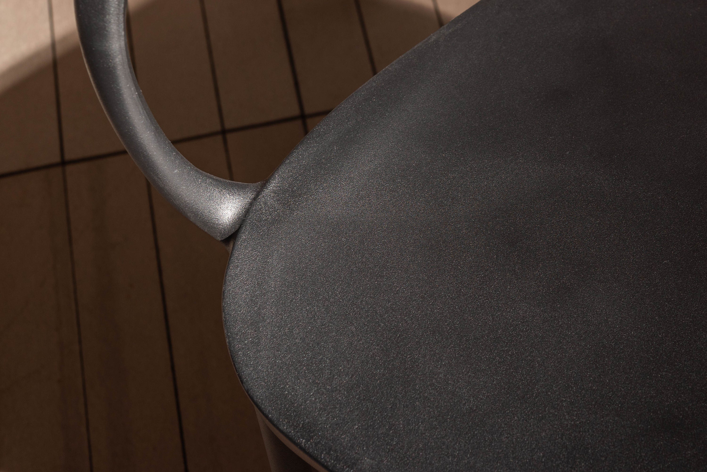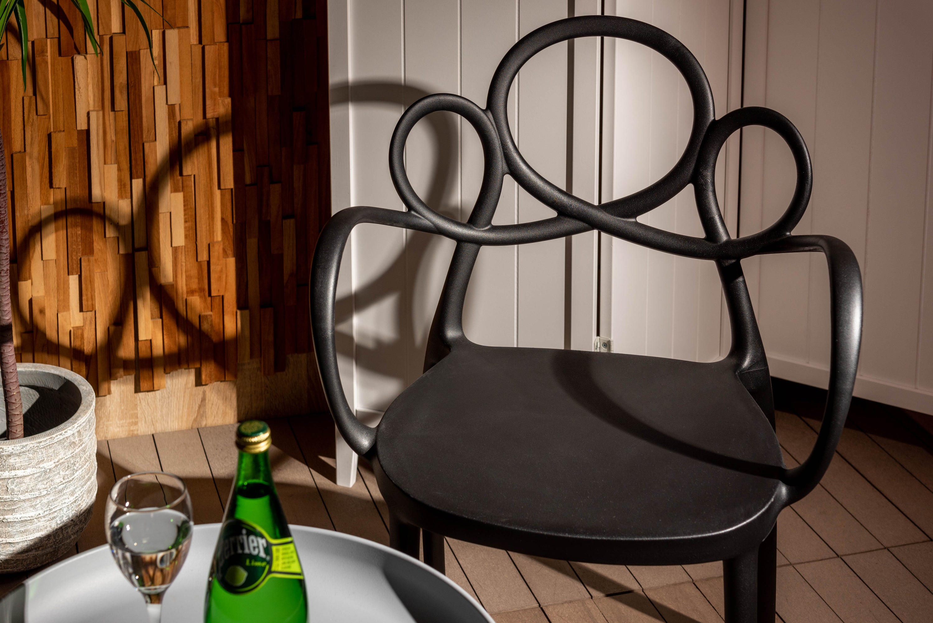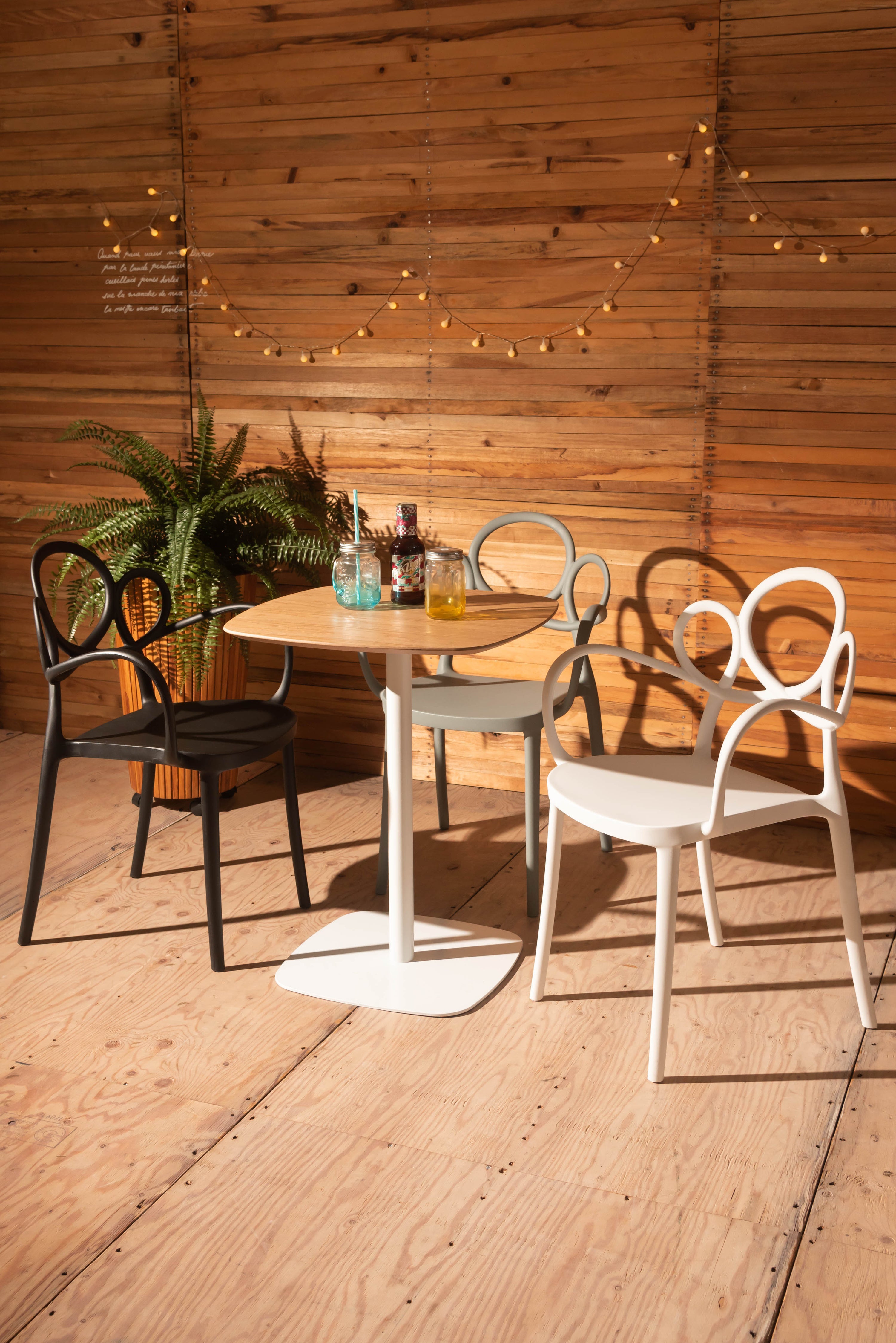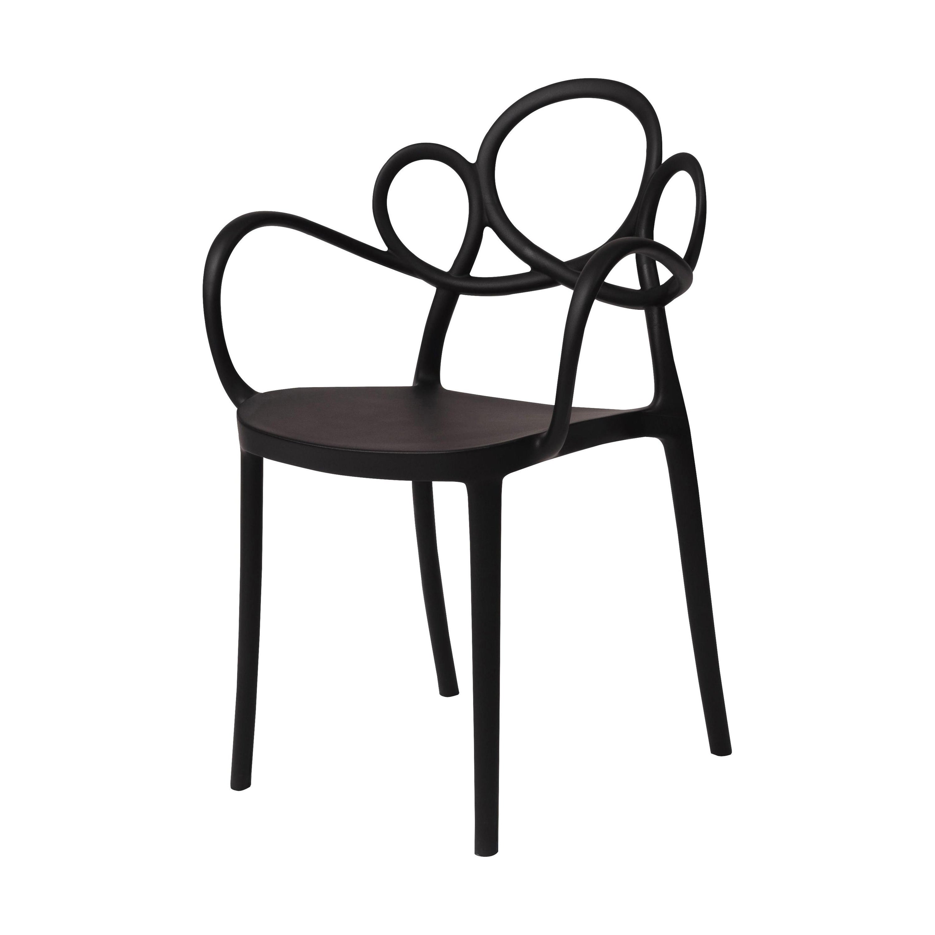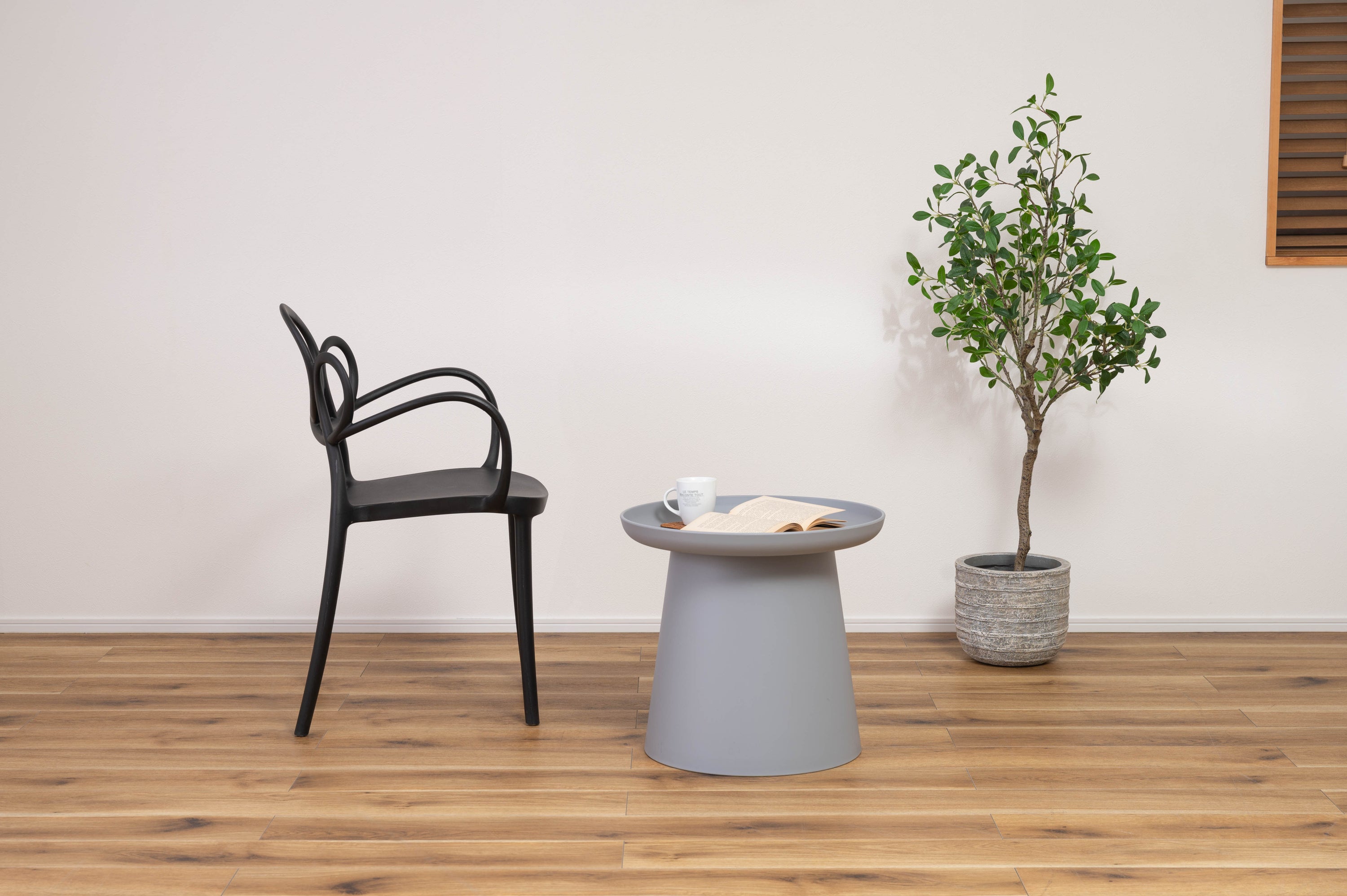 アーム部分の曲線がひじや手にぴったりと沿うデザインのチェアです。汚れてもお手入れのしやすいポリプロピレン素材を使用しています。スタッキング可能なのでコンパクトに収納できて場所を取らず、片付けも簡単です。