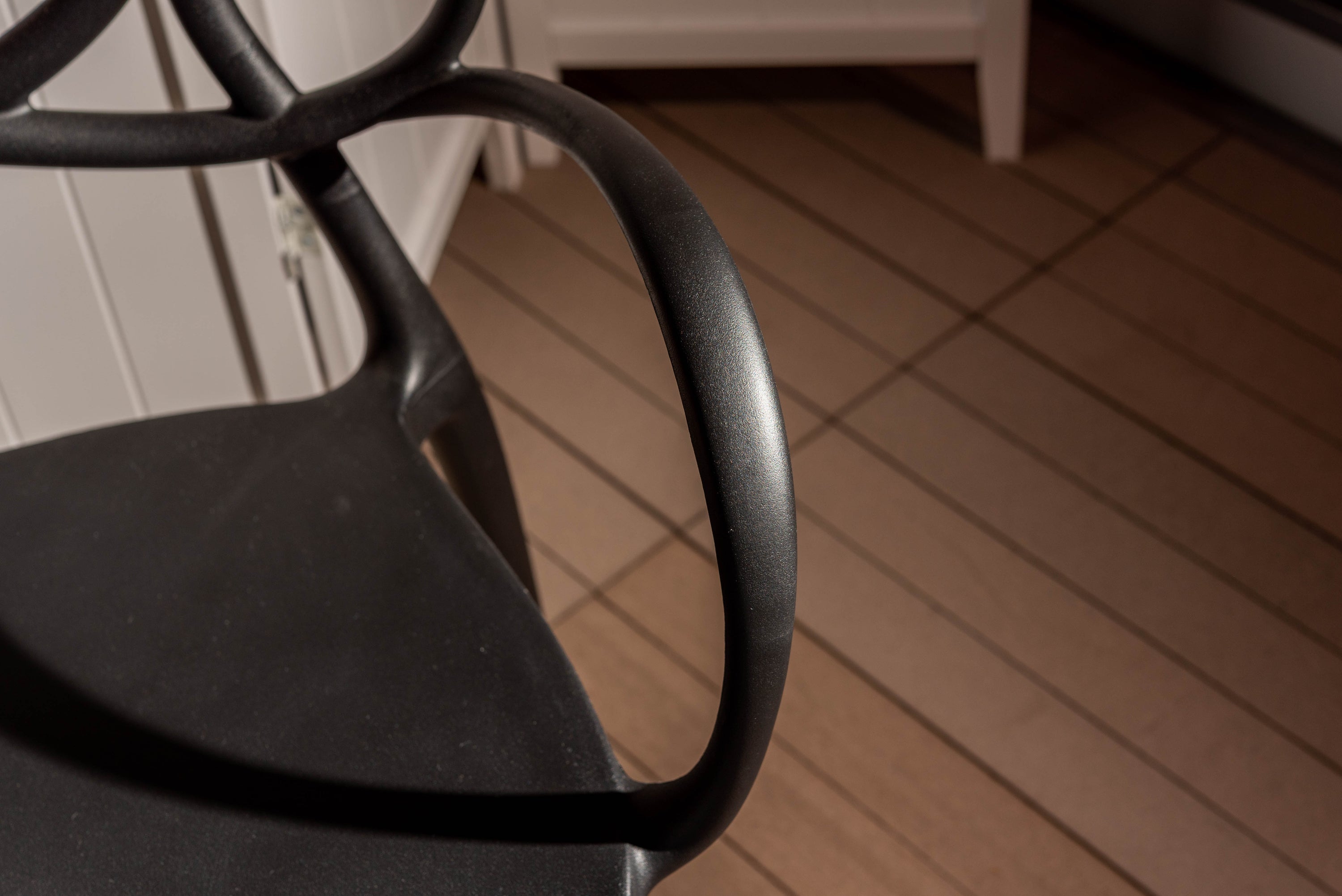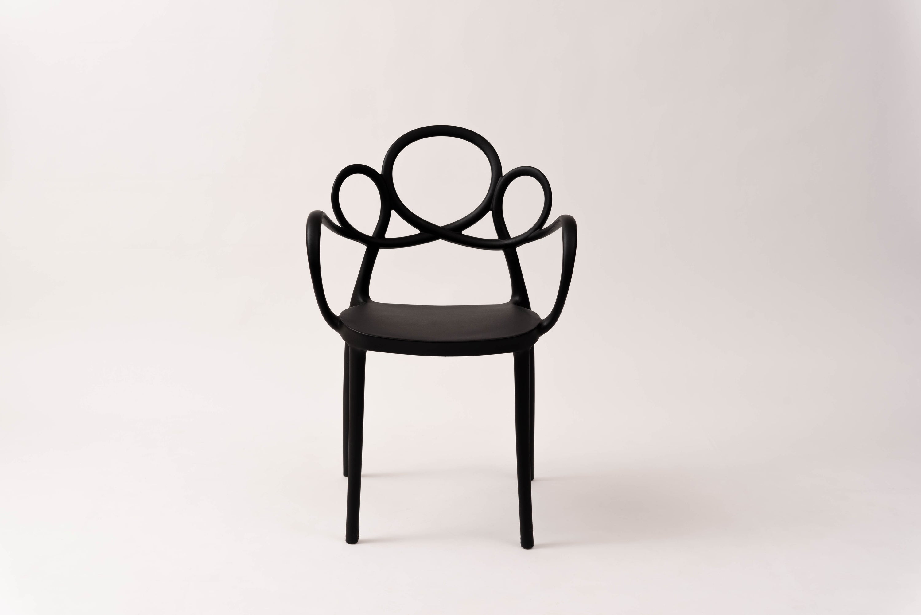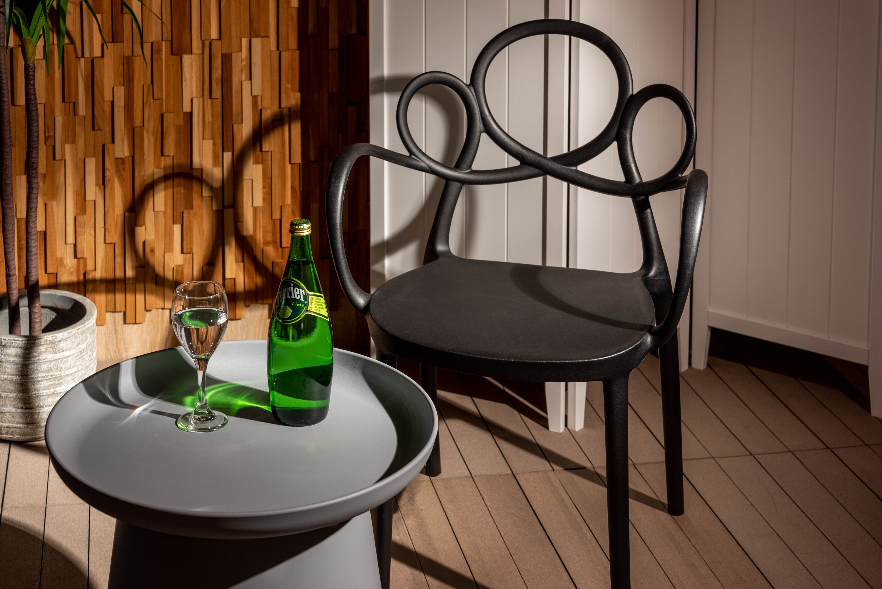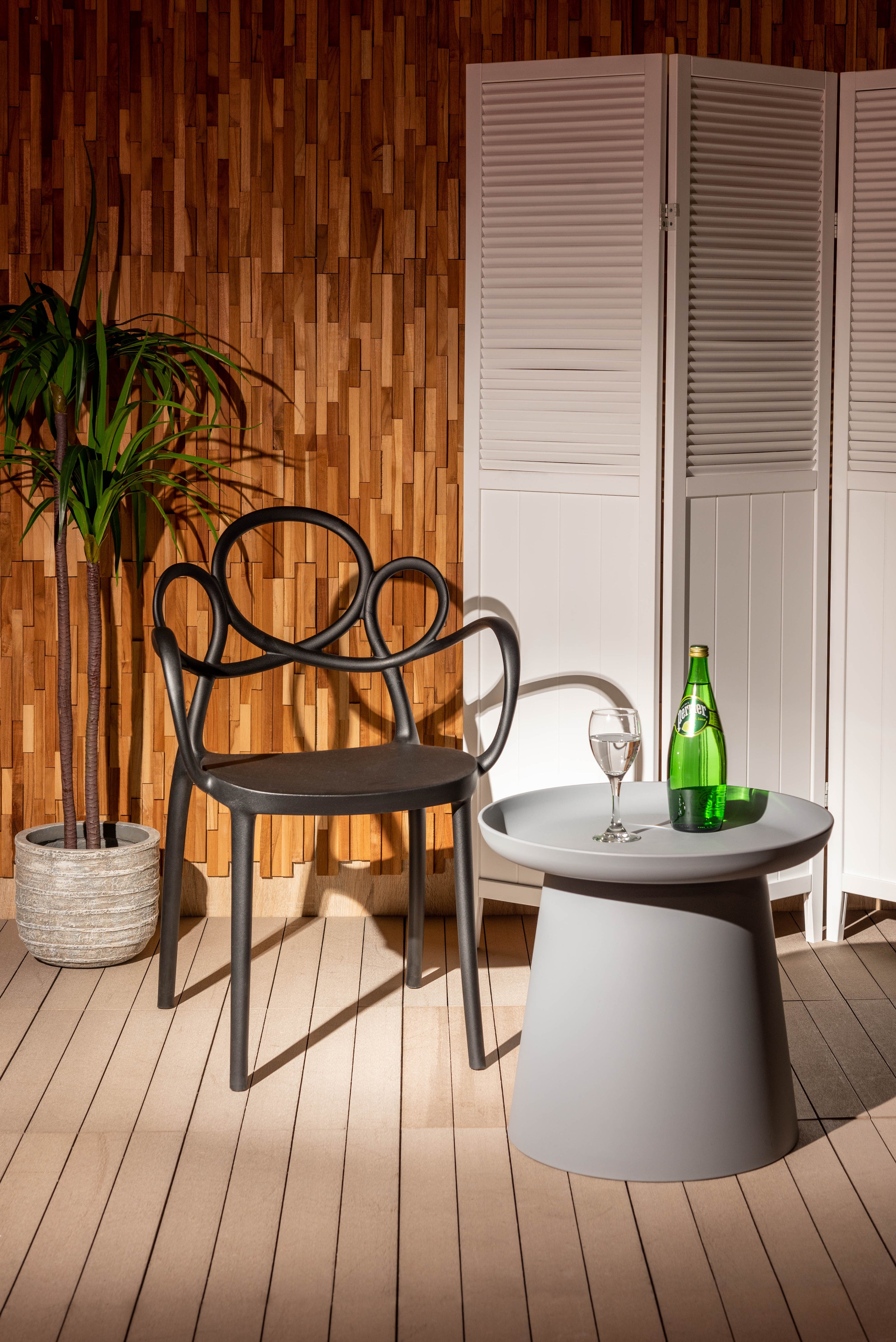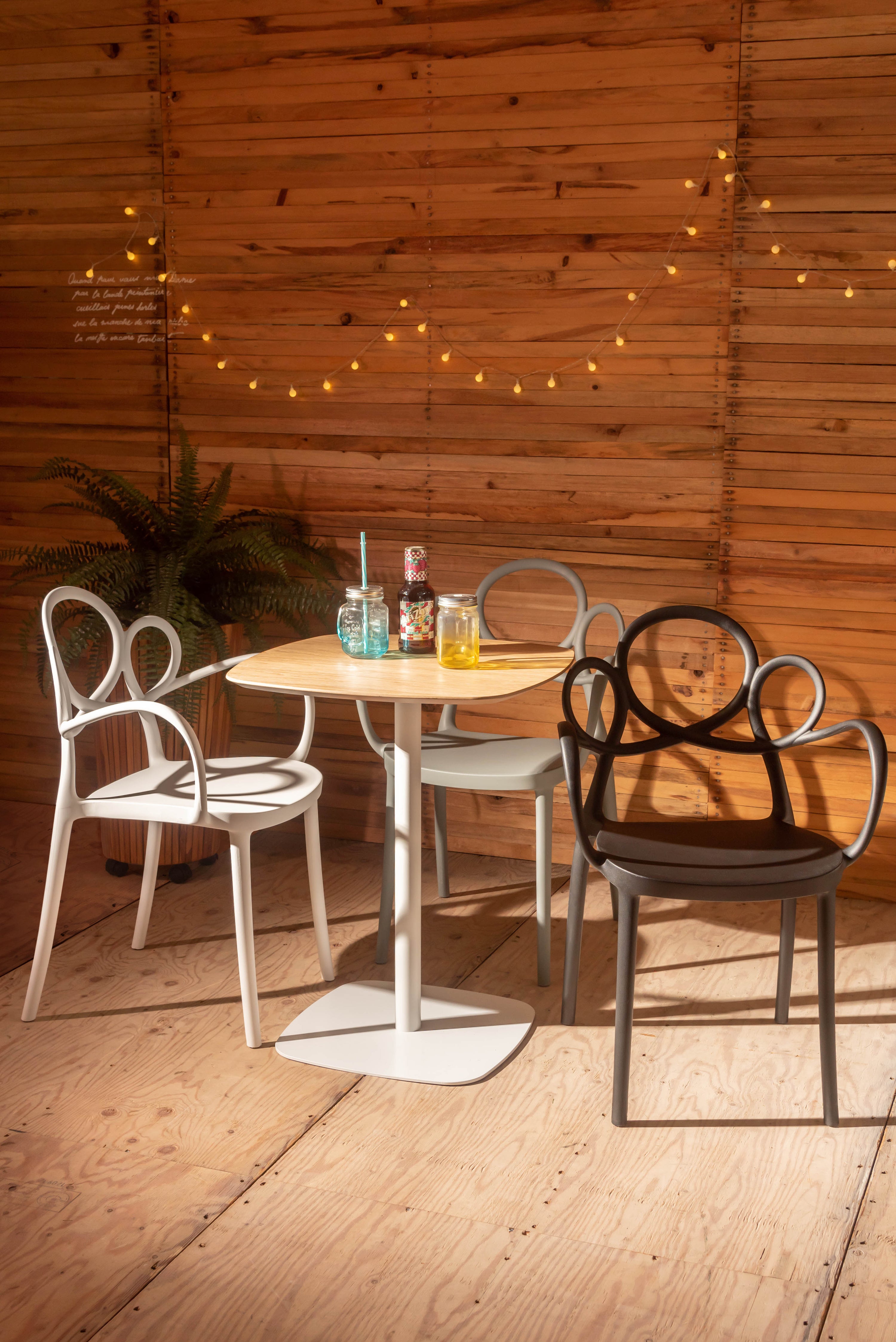 アーム部分の曲線がひじや手にぴったりと沿うデザインのチェアです。汚れてもお手入れのしやすいポリプロピレン素材を使用しています。スタッキング可能なのでコンパクトに収納できて場所を取らず、片付けも簡単です。